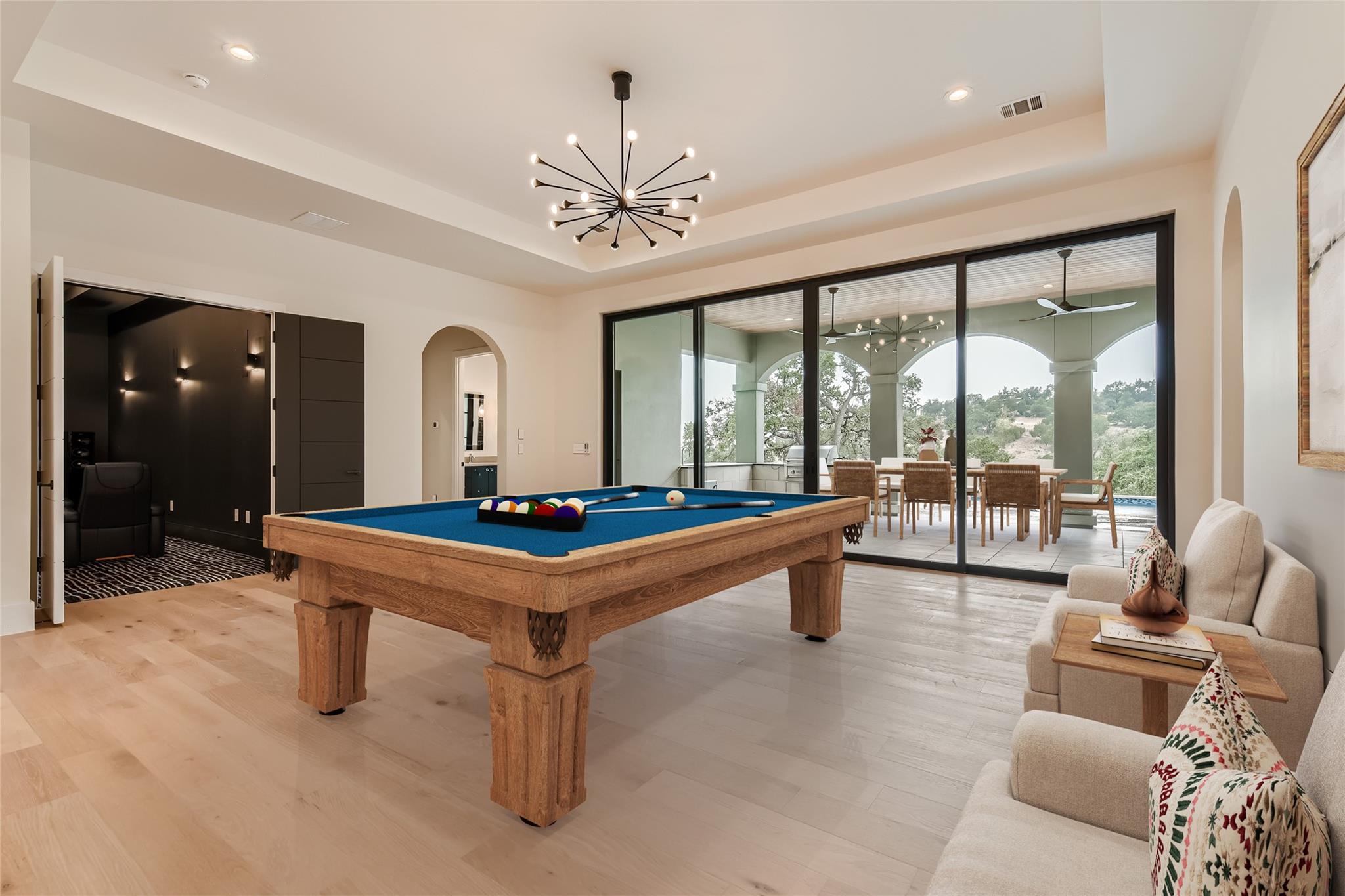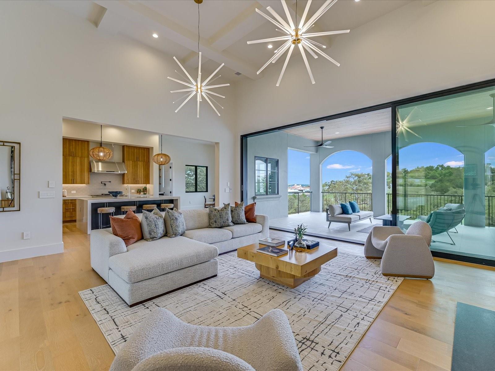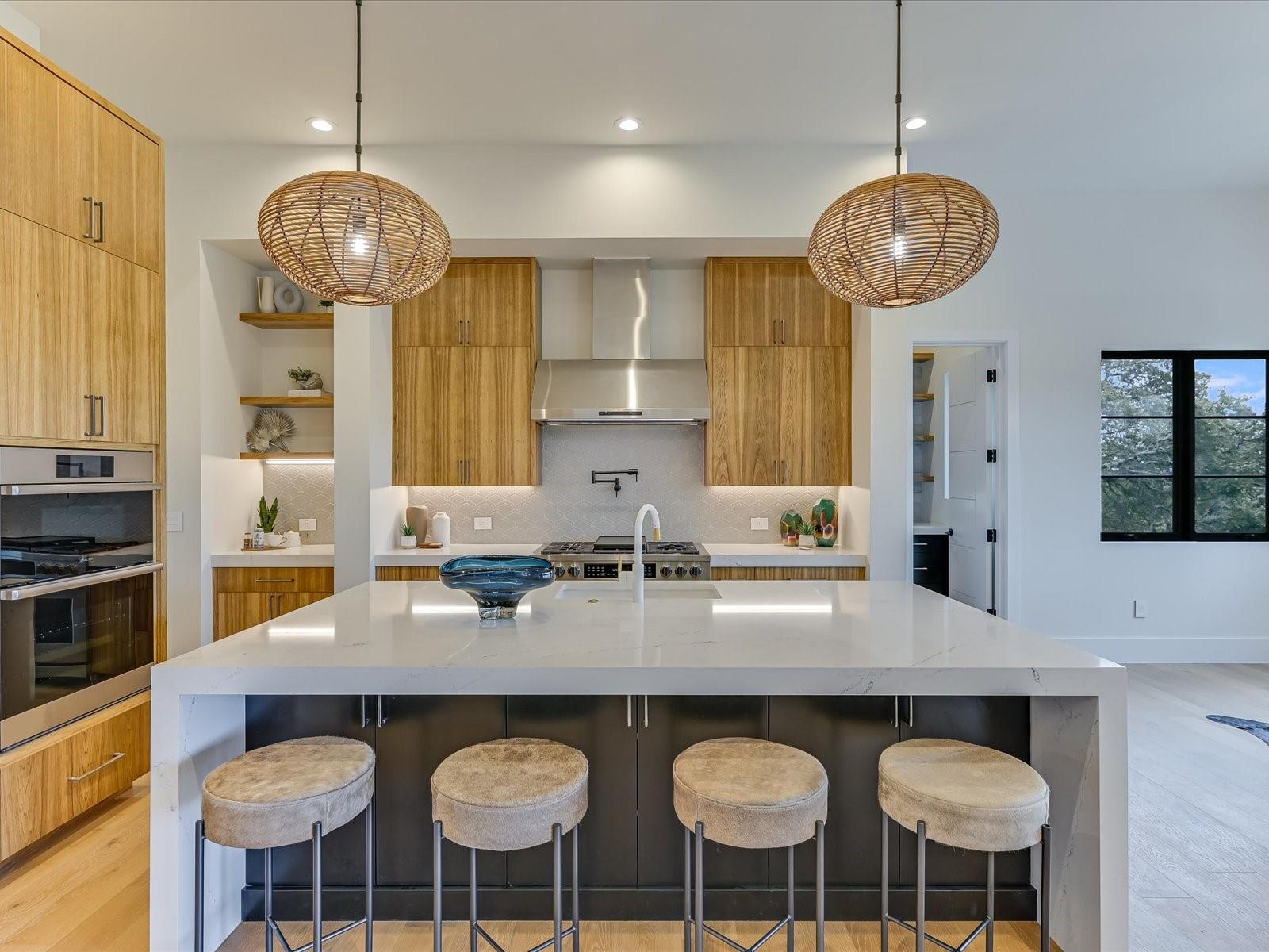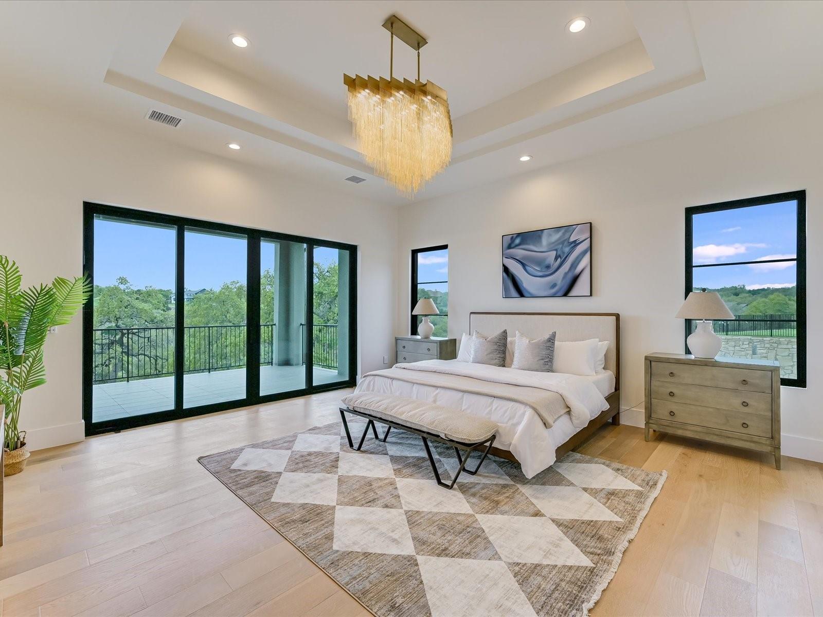 Tucked away in the gated, sought after community of Belvedere, this fully furnished, newly constructed sanctuary is truly a bespoke labor of love. There is no other like it! No backyard neighbors-the sweeping 1.3 acre lot extends all the way to the nature trails of an 80 acre nature preserve for utmost privacy and makes the addition of more garages and casita/pool house, or your very own small vineyard, a breeze! The ingenious reverse living floorpan maximizes the vast rolling hills VIEW! On the main level, the primary suite, guest suite, office, and living areas bask in an abundance of natural light, offering an enchanting retreat. Prepare to be awestruck as you step onto the verandah, the perfect perch to witness the dramatic sunsets. Downstairs,a world of entertainment awaits in the state-of-the-art home theater or in the expansive game room, outside the resort-style pool and hot tub grace the expansive backyard with limitless potential to create the oasis of your dreams. Positioned below street level, this home conceals its splendor, adding an extra layer of seclusion to its already private, cul-de-sac location. An addition of a driveway staircase, and additional parking pads at street level makes guest access and hosting large gatherings convenient. Prepare to be captivated by the soaring 12-20 foot ceilings throughout, intricate ceiling treatments, and dramatic arches that adorn this exquisite residence. An elevator shaft, wine cellar, superior Dacor appliances, premium glass doors & windows, waterfall Quartz island, 3 inch mitered counters, whole-house custom solid core doors, solid metal hardware, custom frameless European cabinets, and designer lights & fixtures further elevate this haven. Enjoy hiking trails, natural pools, a medley of nearby wineries and distilleries, only 30 min to central Austin, 20 min to the waters edge of Lake Travis,10 min to The Galleria’s vibrant shops, eateries, & entertainment. Enjoy the best of Austin at this address!