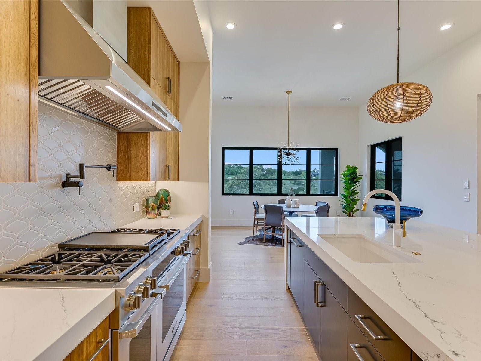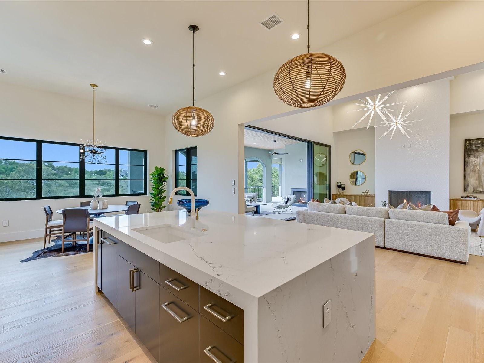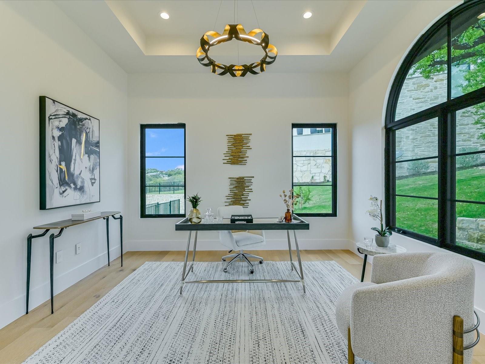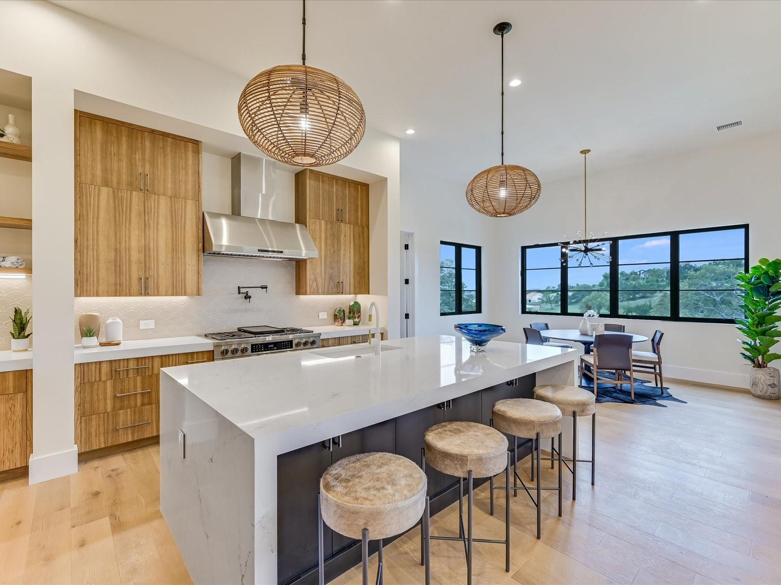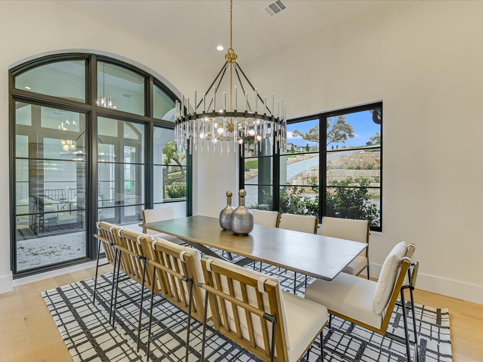 Tucked away in the gated, sought after community of Belvedere, this fully furnished, newly constructed sanctuary is truly a bespoke labor of love. There is no other like it! No backyard neighbors-the sweeping 1.3 acre lot extends all the way to the nature trails of an 80 acre nature preserve for utmost privacy and makes the addition of more garages and casita/pool house, or your very own small vineyard, a breeze! The ingenious reverse living floorpan maximizes the vast rolling hills VIEW! On the main level, the primary suite, guest suite, office, and living areas bask in an abundance of natural light, offering an enchanting retreat. Prepare to be awestruck as you step onto the verandah, the perfect perch to witness the dramatic sunsets. Downstairs,a world of entertainment awaits in the state-of-the-art home theater or in the expansive game room, outside the resort-style pool and hot tub grace the expansive backyard with limitless potential to create the oasis of your dreams. Positioned below street level, this home conceals its splendor, adding an extra layer of seclusion to its already private, cul-de-sac location. An addition of a driveway staircase, and additional parking pads at street level makes guest access and hosting large gatherings convenient. Prepare to be captivated by the soaring 12-20 foot ceilings throughout, intricate ceiling treatments, and dramatic arches that adorn this exquisite residence. An elevator shaft, wine cellar, superior Dacor appliances, premium glass doors & windows, waterfall Quartz island, 3 inch mitered counters, whole-house custom solid core doors, solid metal hardware, custom frameless European cabinets, and designer lights & fixtures further elevate this haven. Enjoy hiking trails, natural pools, a medley of nearby wineries and distilleries, only 30 min to central Austin, 20 min to the waters edge of Lake Travis,10 min to The Galleria’s vibrant shops, eateries, & entertainment. Enjoy the best of Austin at this address!