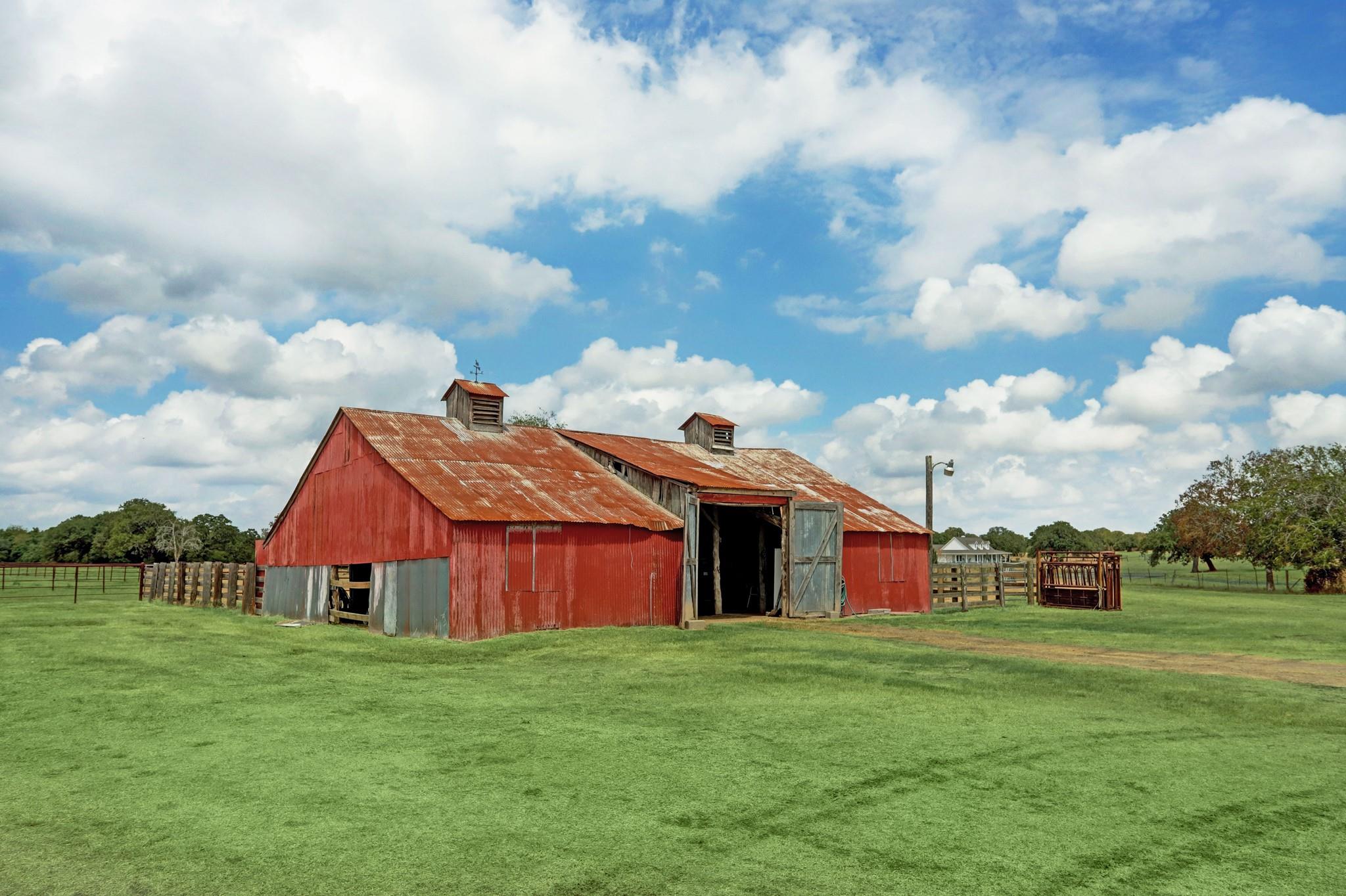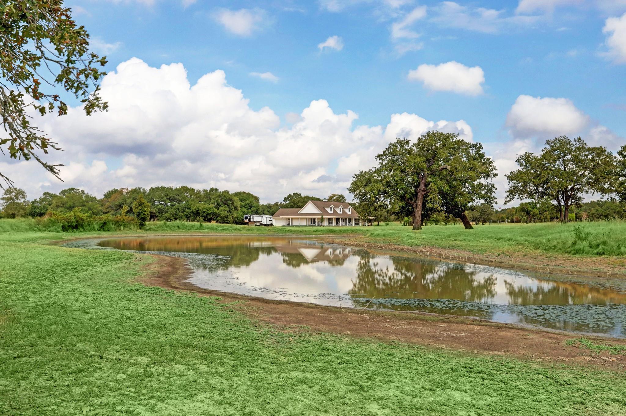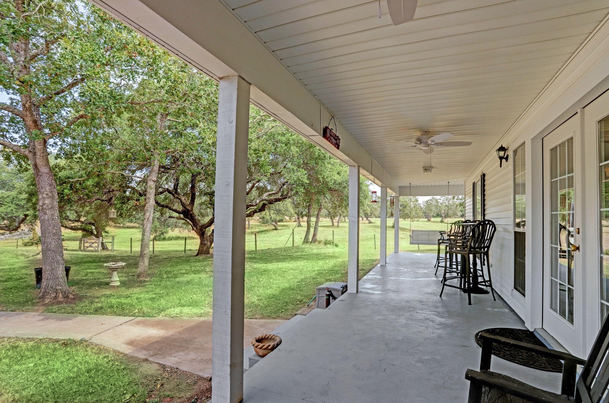 NO RESTRICTIONS. ALL MINERALS CONVEY WITH SALE. 3 bed/ 2.5 bath 2,440 sq ft ranch style home situated on 82.68 acres of rolling land with beautiful mature oak trees and 3 ponds. Wonderful views of open pasture, dense trees, sunrises, and sunsets are available from the 1,520 sq ft wrap around porch. The property has complete road frontage on the East (front) and North sides. The land is cross fenced, each section with its own pond for rotating and managing cattle. A wonderful barn with working pens adorns the property. 8 minutes from La Grange, 30 minutes from Round Top, 14 minutes from Flatonia. Come experience this ranch on an ATV tour!