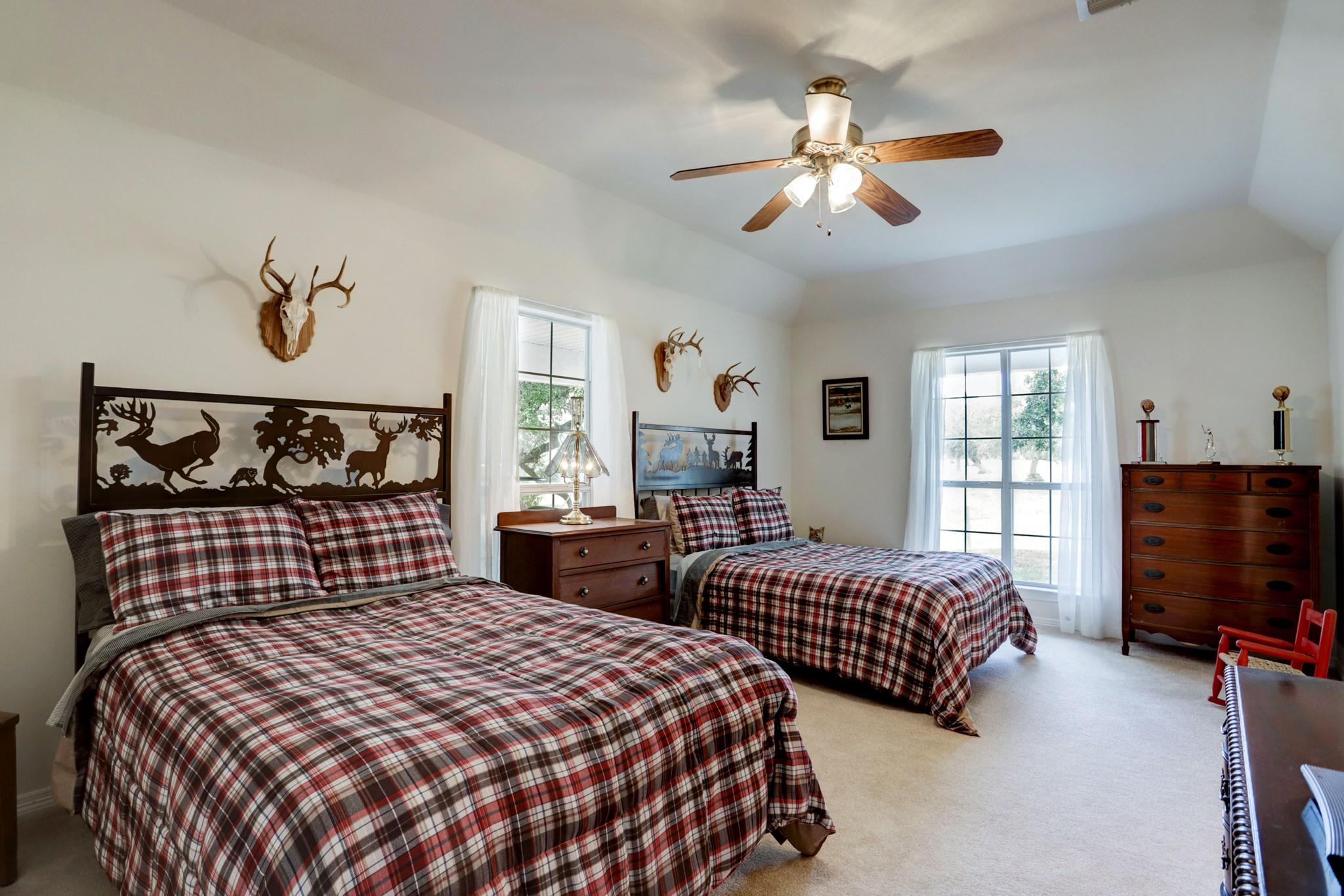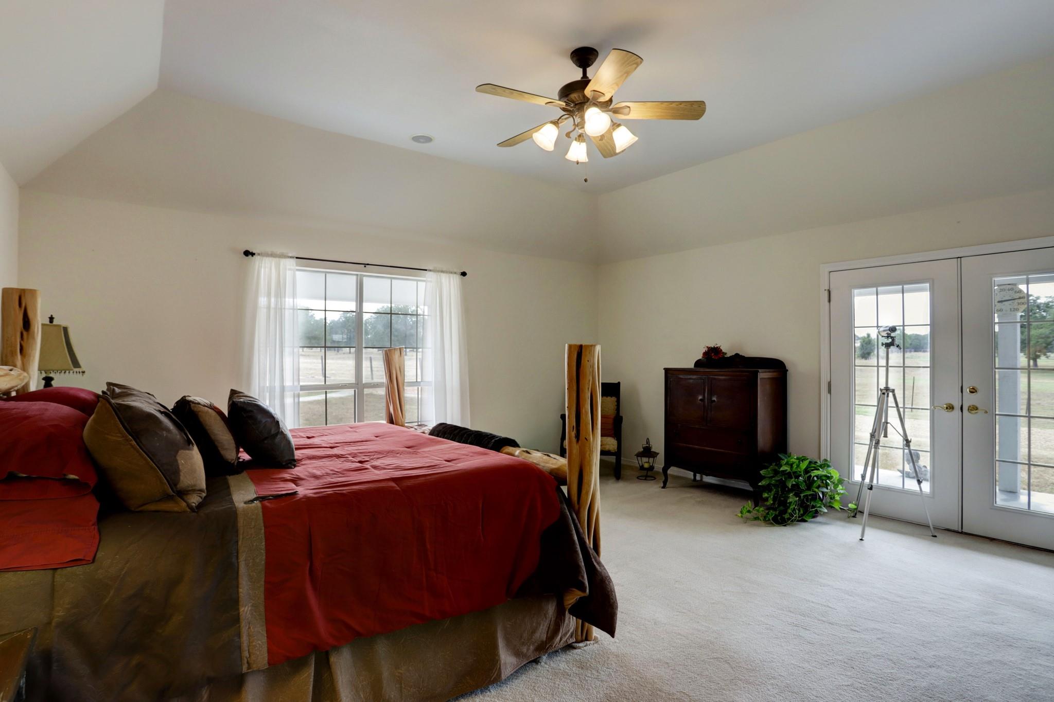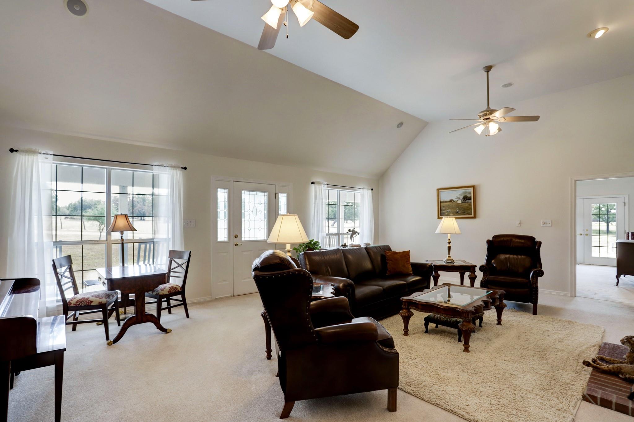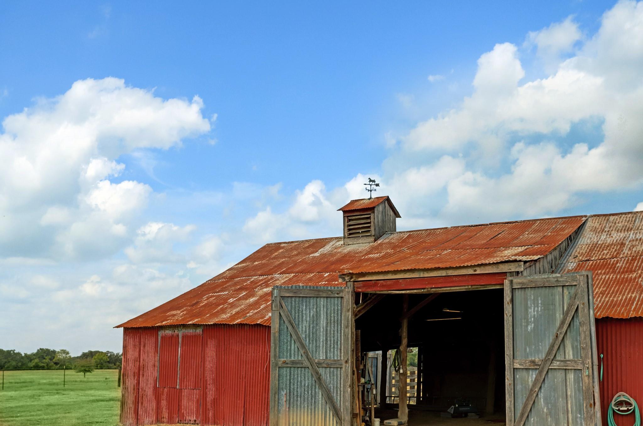 NO RESTRICTIONS. ALL MINERALS CONVEY WITH SALE. 3 bed/ 2.5 bath 2,440 sq ft ranch style home situated on 82.68 acres of rolling land with beautiful mature oak trees and 3 ponds. Wonderful views of open pasture, dense trees, sunrises, and sunsets are available from the 1,520 sq ft wrap around porch. The property has complete road frontage on the East (front) and North sides. The land is cross fenced, each section with its own pond for rotating and managing cattle. A wonderful barn with working pens adorns the property. 8 minutes from La Grange, 30 minutes from Round Top, 14 minutes from Flatonia. Come experience this ranch on an ATV tour!