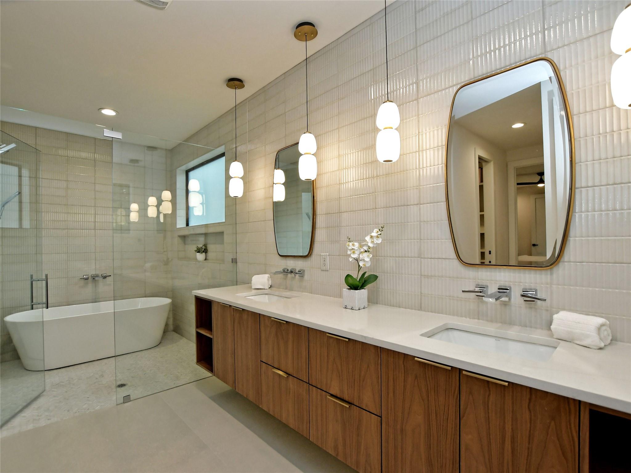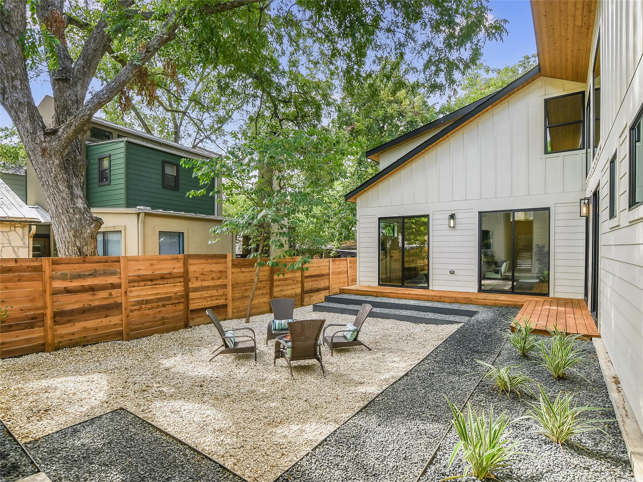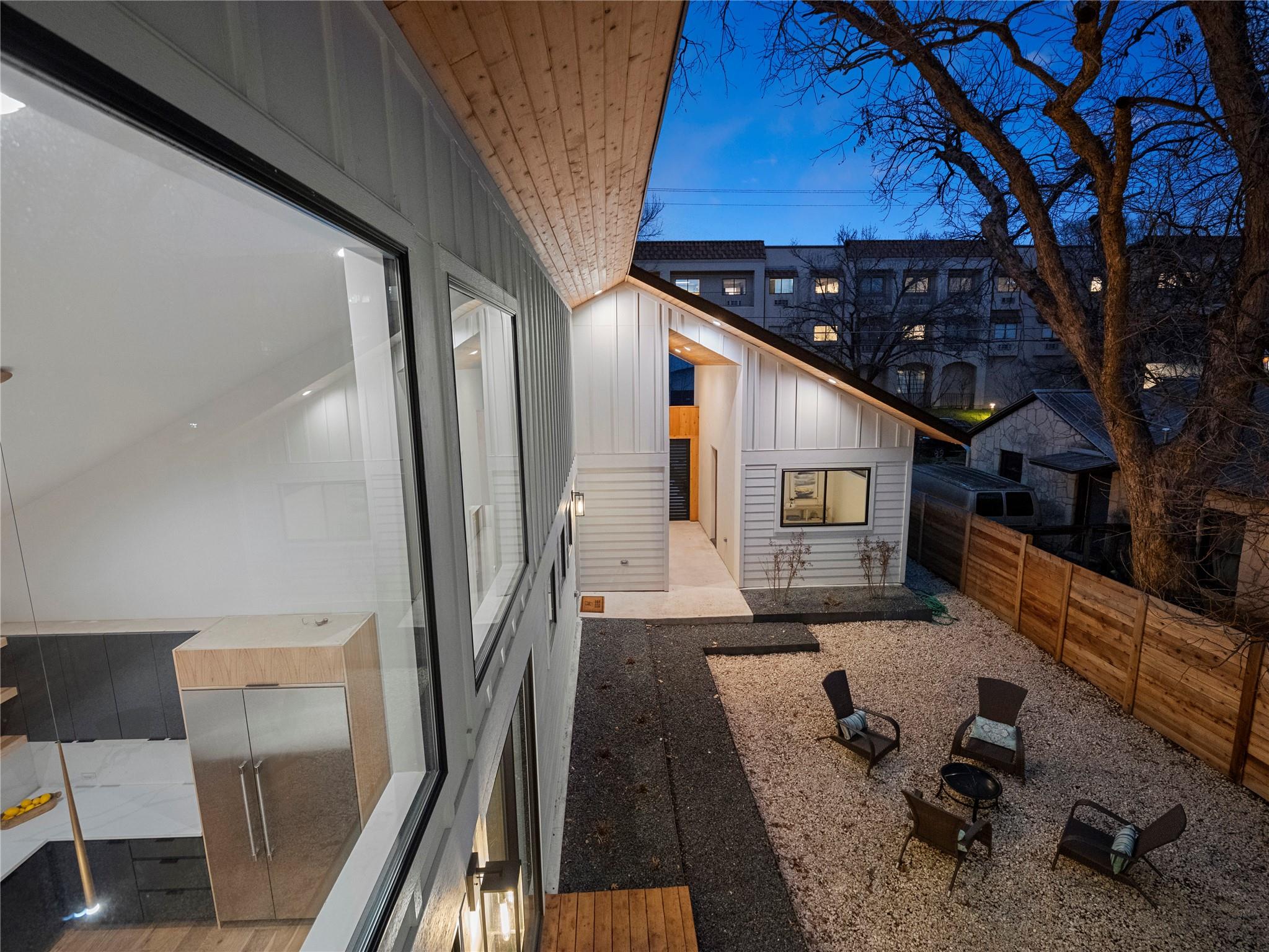 This newly built spacious urban oasis epitomizes privacy & a seamless connection to the outdoors. Enter through a custom iron gate & you're greeted by a private courtyard enveloped by the main house & charming casita. The main house is 2729 sq.ft. 4bed/4bath & Casita is 231 sq.ft. with full bath, walk-in closet & towering ceilings. The home itself is a masterpiece of design optimizing every square foot for both functionality & comfort. The chef's kitchen stands out w/high-end Thermador appliances, exquisite custom cabinets, sumptuous lighting & expansive island. Flowing effortlessly into the dining & living areas, this space creates an inviting hub for family& friends to gather. 4 sliding glass doors not only frame picturesque courtyard views but also flood the rooms w/natural light. The first-floor owner's suite offers a private sanctuary w/sliding glass doors to the backyard. Featuring custom walnut vanities, a Roman bath & a spacious walk-in closet, it adds a touch of luxury to daily life. On the same floor, you'll discover a versatile office/bedroom w/frosted glass pocket door & high ceilings. An adjacent full bath complements this space w/walk-in shower, dramatic wallpaper, & chic lighting. Ascending the stairs, a second living area awaits, complete with a skylight that frames nature’s views, creating a tranquil & peaceful atmosphere. Additionally, two generous bedrooms each w/ private bathrooms & walk-in closets are upstairs. The separate casita with its own entrance, a full bath, & walk-in closet, offers a versatile living space ideal for guests, home office, etc. With its luxurious features, spacious layout & unwavering attention to detail, this home sets the stage for comfortable & stylish living in one of Austin's most coveted neighborhoods. Located just steps away from Ramsey Park w/playgrounds, tennis, basketball & pool! Within walking distance to restaurants, coffee shops & Central Market, this property offers a lifestyle that's both relaxed & vibrant.