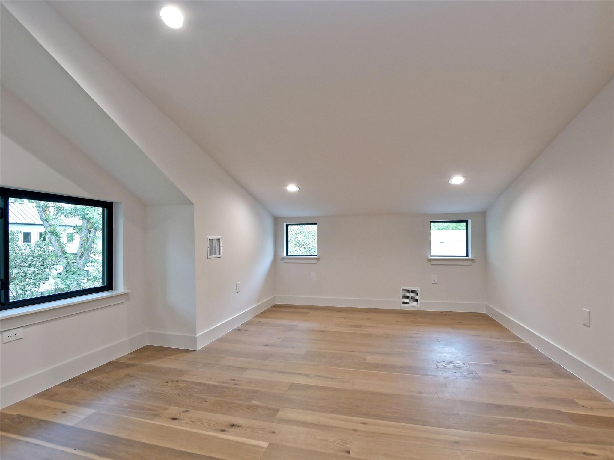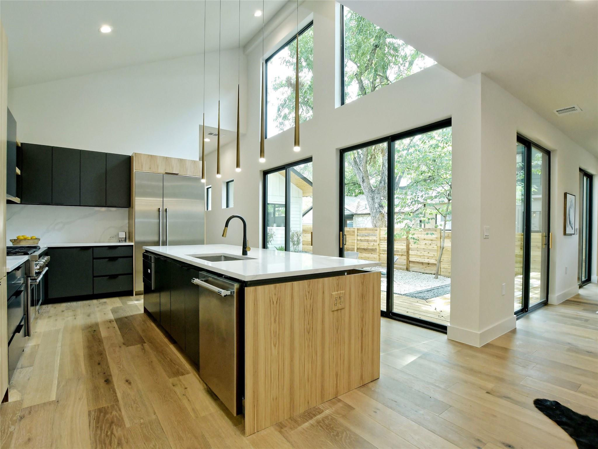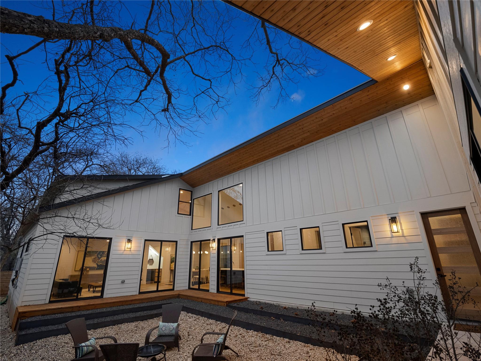 This newly built spacious urban oasis epitomizes privacy & a seamless connection to the outdoors. Enter through a custom iron gate & you're greeted by a private courtyard enveloped by the main house & charming casita. The main house is 2729 sq.ft. 4bed/4bath & Casita is 231 sq.ft. with full bath, walk-in closet & towering ceilings. The home itself is a masterpiece of design optimizing every square foot for both functionality & comfort. The chef's kitchen stands out w/high-end Thermador appliances, exquisite custom cabinets, sumptuous lighting & expansive island. Flowing effortlessly into the dining & living areas, this space creates an inviting hub for family& friends to gather. 4 sliding glass doors not only frame picturesque courtyard views but also flood the rooms w/natural light. The first-floor owner's suite offers a private sanctuary w/sliding glass doors to the backyard. Featuring custom walnut vanities, a Roman bath & a spacious walk-in closet, it adds a touch of luxury to daily life. On the same floor, you'll discover a versatile office/bedroom w/frosted glass pocket door & high ceilings. An adjacent full bath complements this space w/walk-in shower, dramatic wallpaper, & chic lighting. Ascending the stairs, a second living area awaits, complete with a skylight that frames nature’s views, creating a tranquil & peaceful atmosphere. Additionally, two generous bedrooms each w/ private bathrooms & walk-in closets are upstairs. The separate casita with its own entrance, a full bath, & walk-in closet, offers a versatile living space ideal for guests, home office, etc. With its luxurious features, spacious layout & unwavering attention to detail, this home sets the stage for comfortable & stylish living in one of Austin's most coveted neighborhoods. Located just steps away from Ramsey Park w/playgrounds, tennis, basketball & pool! Within walking distance to restaurants, coffee shops & Central Market, this property offers a lifestyle that's both relaxed & vibrant.