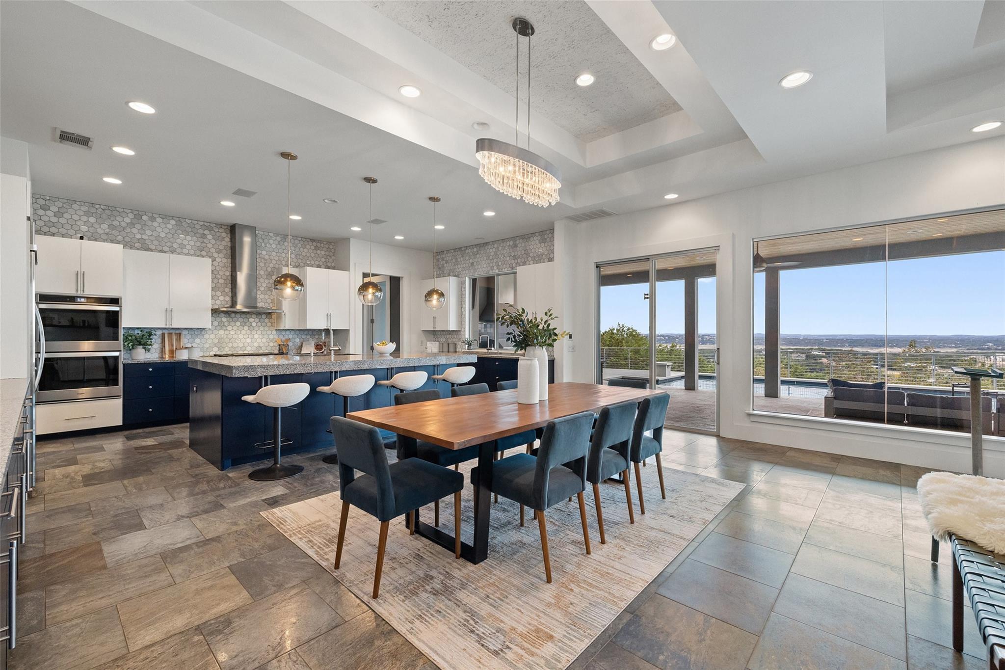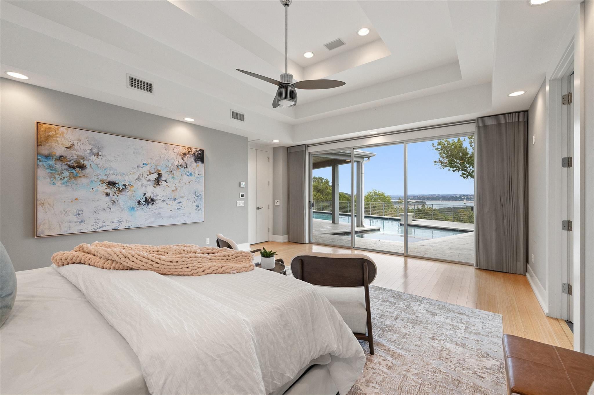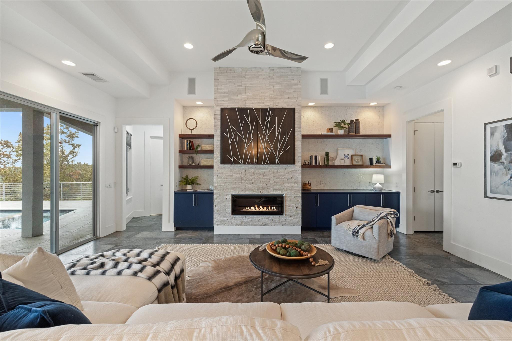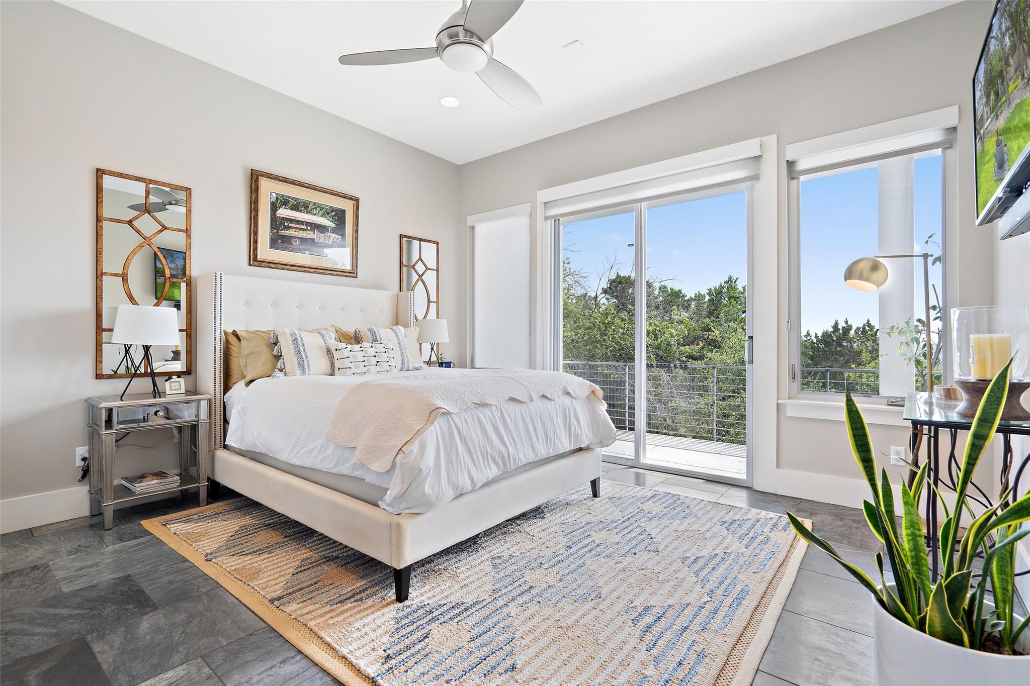 Welcome to this magnificent luxury home perched atop a serene hill, providing breathtaking panoramic views of lake Travis that sprawls across the horizon. Nestled within a private gated community, this residence offers an unparalleled level of exclusivity, privacy, and security on a 2-acre lot that backs to the LCRA reservation. Upon entering the elegant estate, you are greeted by high ceilings and expansive windows throughout that showcase the captivating lake views. The gourmet kitchen is a culinary enthusiast's dream, fitted with top-of-the-line appliances, custom cabinetry, and a large center island, making it a delightful space for both preparing meals and entertaining guests. The master suite is a tranquil oasis offering a private retreat from the world with its own access to the pool area and romantic lake views. The en-suite bathroom exudes sophistication, featuring a spa-like soaking tub, a walk-in shower, and dual vanities. The outdoor area is a testament to refined leisure, featuring a gorgeous pool and spa, wired surround sound, and lovely outdoor firepit patio area. A spacious outdoor kitchen and entertaining area make al fresco entertaining a pleasure, as you and your guests relish the fresh air and stunning vistas. As a part of an exemplary school district, families can rest assured that their children will receive an outstanding education, adding to the desirability of this exceptional location. Includes a neighborhood tennis court, sport court, and private walking trails. Only 2 minutes from the Riviera Marina and 5 minutes from the VIP Marina. This luxury home represents the epitome of refined living, offering an unmatched blend of elegance, tranquility, and natural beauty. It is a rare opportunity to experience a lifestyle of prestige and comfort in one of the most coveted locations imaginable.