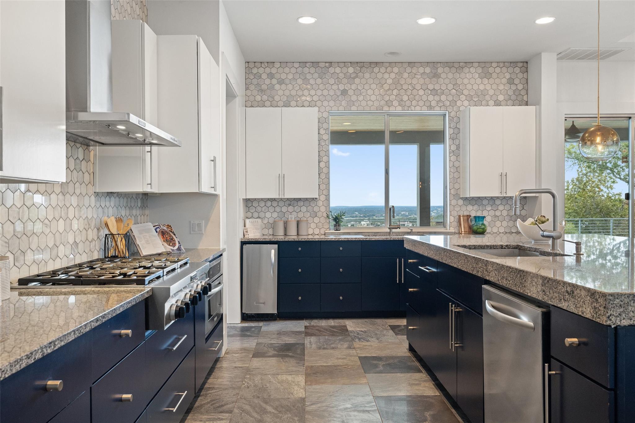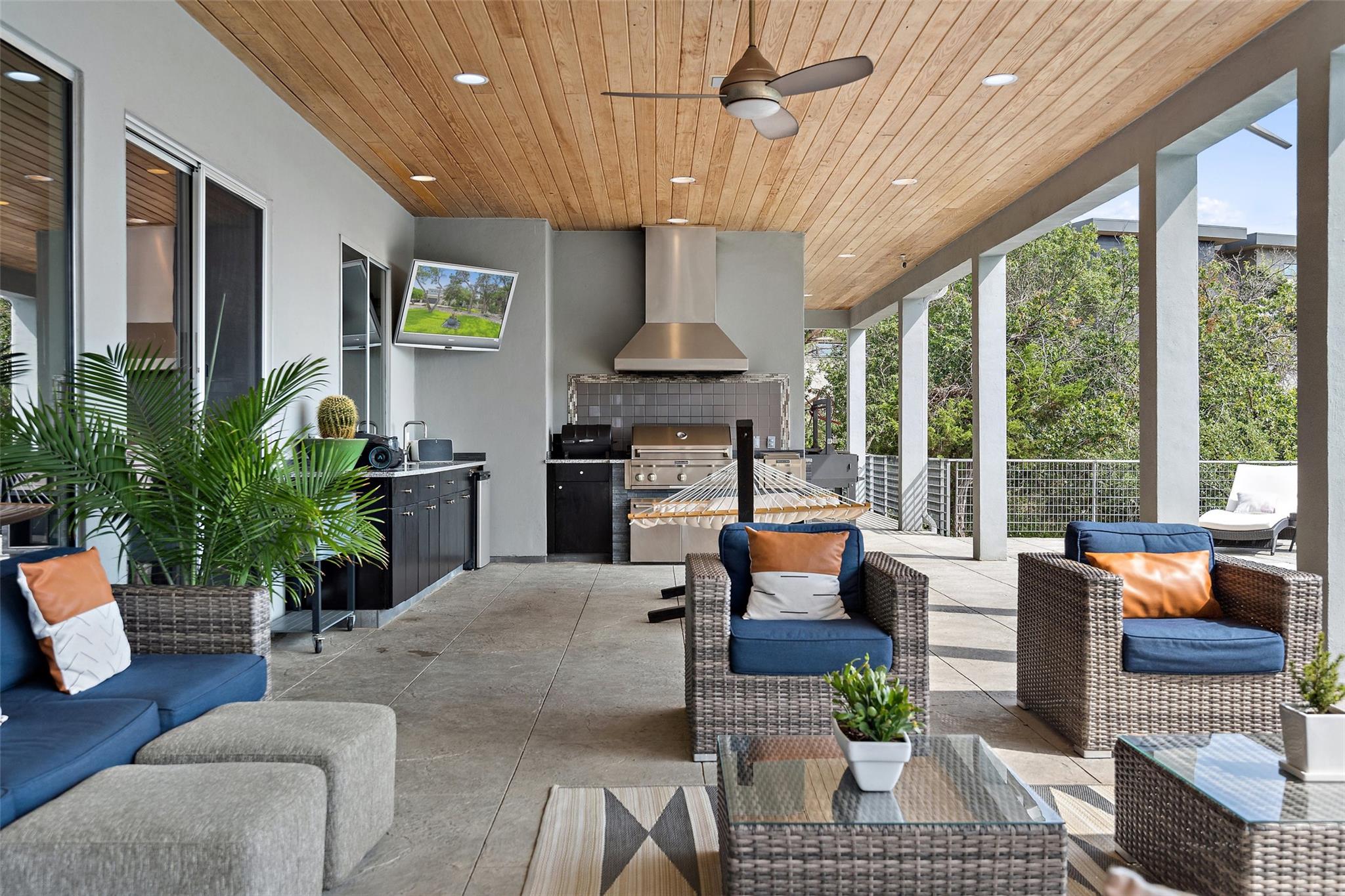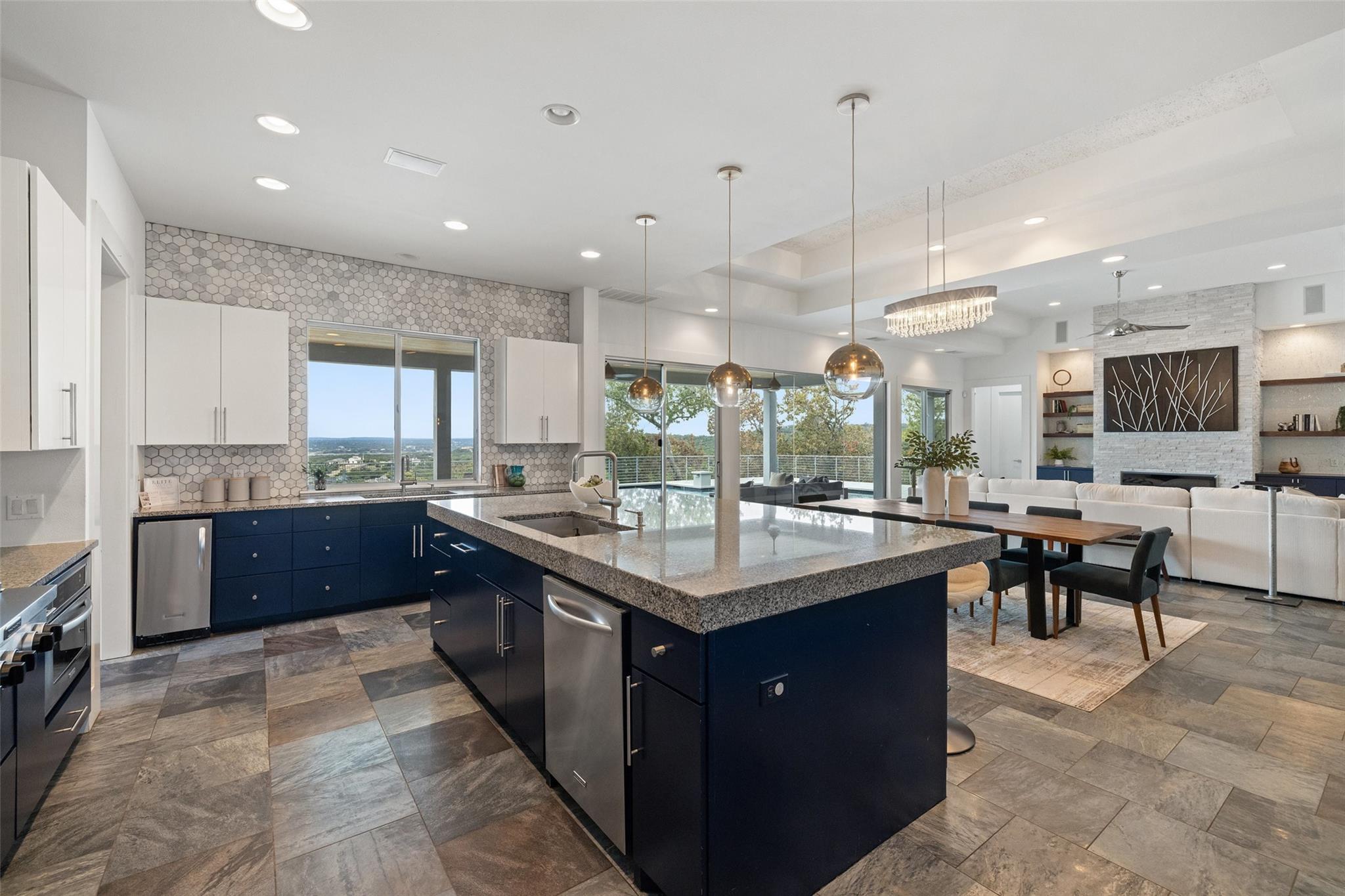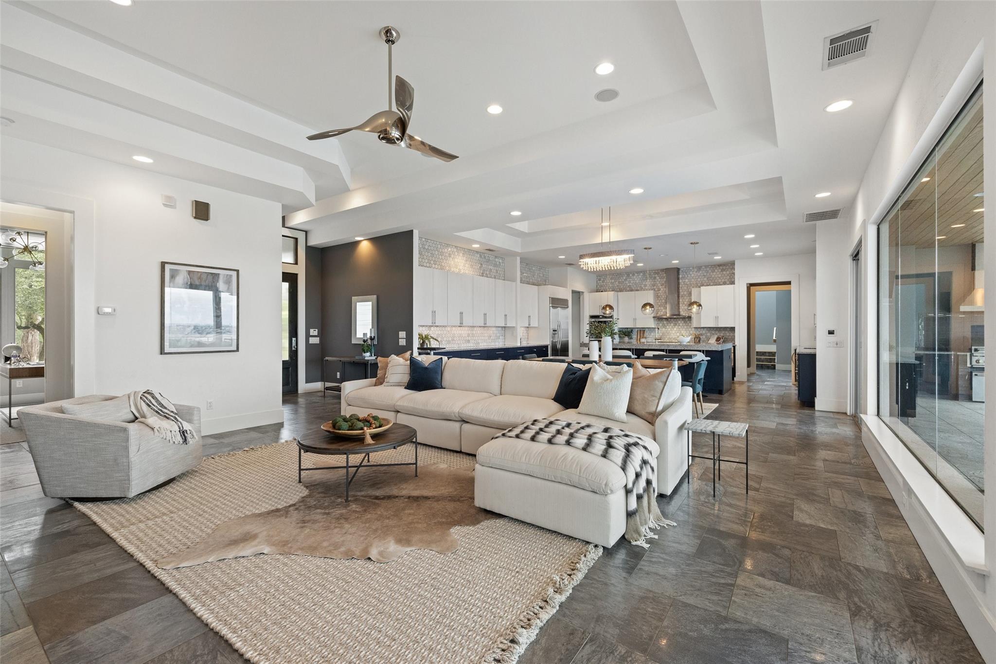 Welcome to this magnificent luxury home perched atop a serene hill, providing breathtaking panoramic views of lake Travis that sprawls across the horizon. Nestled within a private gated community, this residence offers an unparalleled level of exclusivity, privacy, and security on a 2-acre lot that backs to the LCRA reservation. Upon entering the elegant estate, you are greeted by high ceilings and expansive windows throughout that showcase the captivating lake views. The gourmet kitchen is a culinary enthusiast's dream, fitted with top-of-the-line appliances, custom cabinetry, and a large center island, making it a delightful space for both preparing meals and entertaining guests. The master suite is a tranquil oasis offering a private retreat from the world with its own access to the pool area and romantic lake views. The en-suite bathroom exudes sophistication, featuring a spa-like soaking tub, a walk-in shower, and dual vanities. The outdoor area is a testament to refined leisure, featuring a gorgeous pool and spa, wired surround sound, and lovely outdoor firepit patio area. A spacious outdoor kitchen and entertaining area make al fresco entertaining a pleasure, as you and your guests relish the fresh air and stunning vistas. As a part of an exemplary school district, families can rest assured that their children will receive an outstanding education, adding to the desirability of this exceptional location. Includes a neighborhood tennis court, sport court, and private walking trails. Only 2 minutes from the Riviera Marina and 5 minutes from the VIP Marina. This luxury home represents the epitome of refined living, offering an unmatched blend of elegance, tranquility, and natural beauty. It is a rare opportunity to experience a lifestyle of prestige and comfort in one of the most coveted locations imaginable.