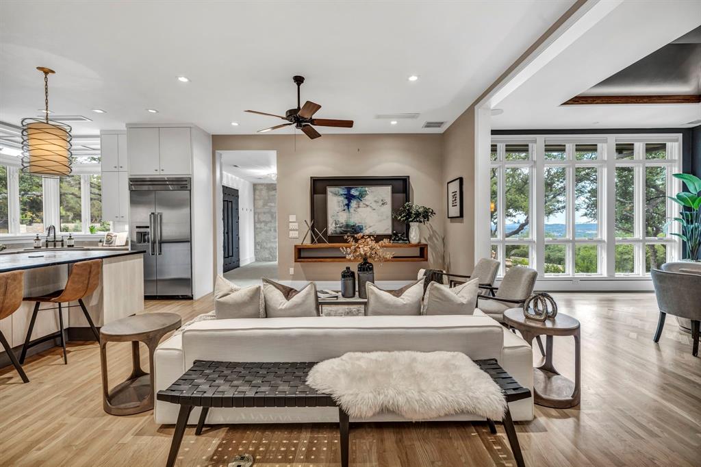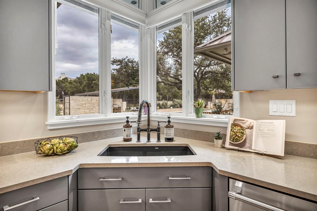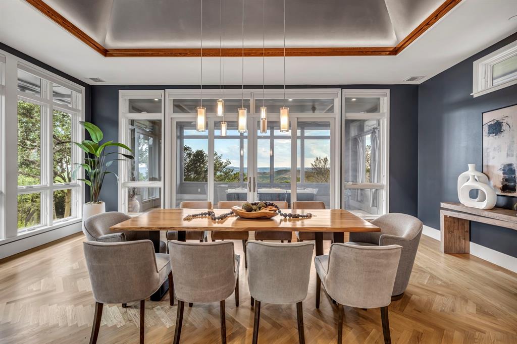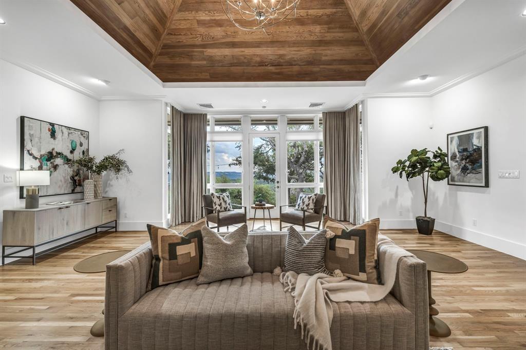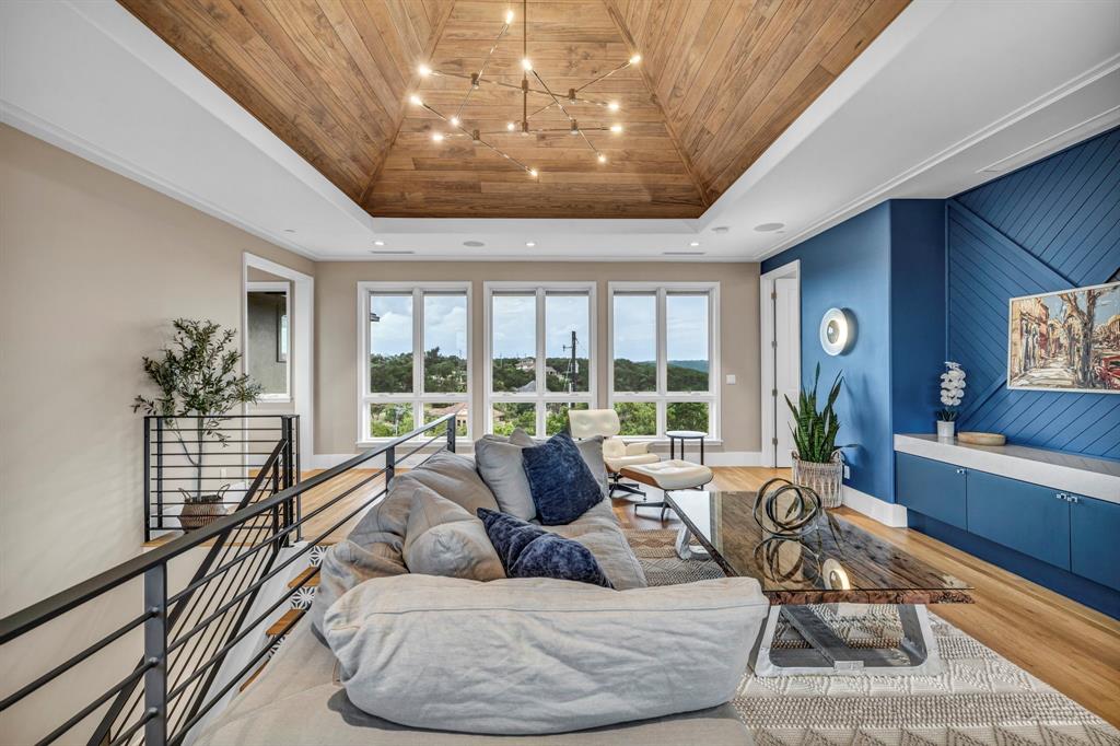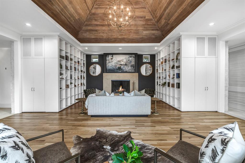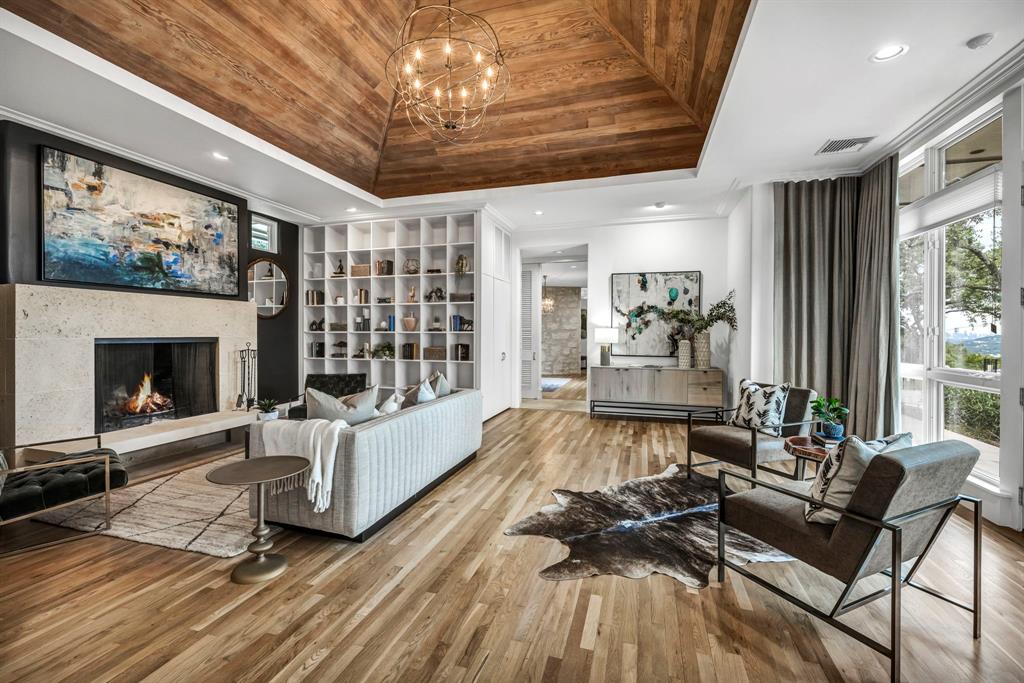 Bookcases, Breakfast Bar, Built-in Features, Ceiling Fan(s), Beamed Ceilings, Coffered Ceiling(s), High Ceilings, Tray Ceiling(s), Vaulted Ceiling(s), Chandelier, Corian Counters, Quartz Counters, Stone Counters, Double Vanity, Electric Dryer Hookup, Eat-in Kitchen, Entrance Foyer, High Speed Internet, Interior Steps, Kitchen Island, Multiple Living Areas, Open Floorplan, Pantry, Primary Bedroom on Main, Recessed Lighting, Soaking Tub, Sound System, Storage, Two Primary Closets, Walk-In Closet(s), Washer Hookup, Wet Bar, Wired for Sound |