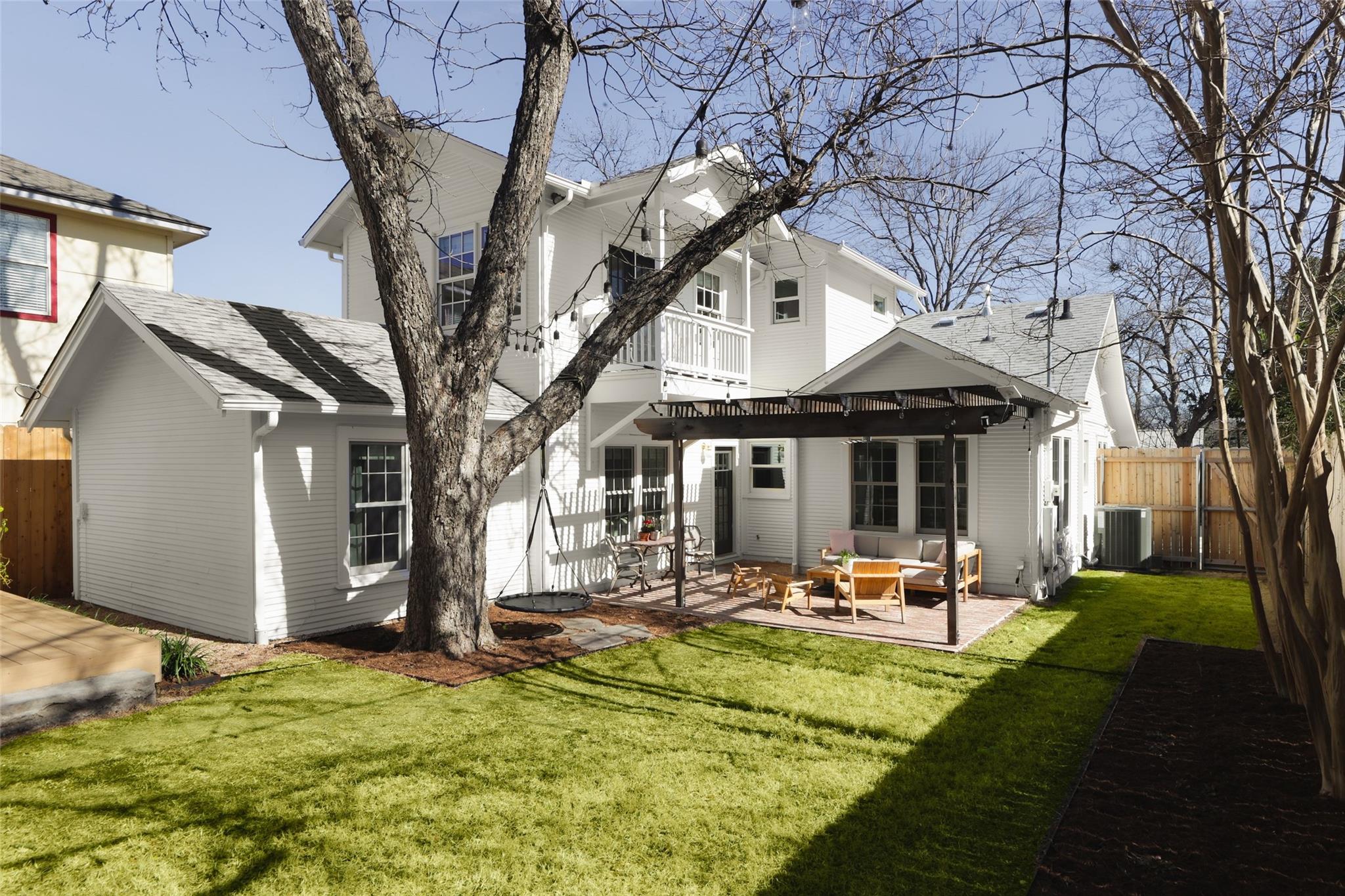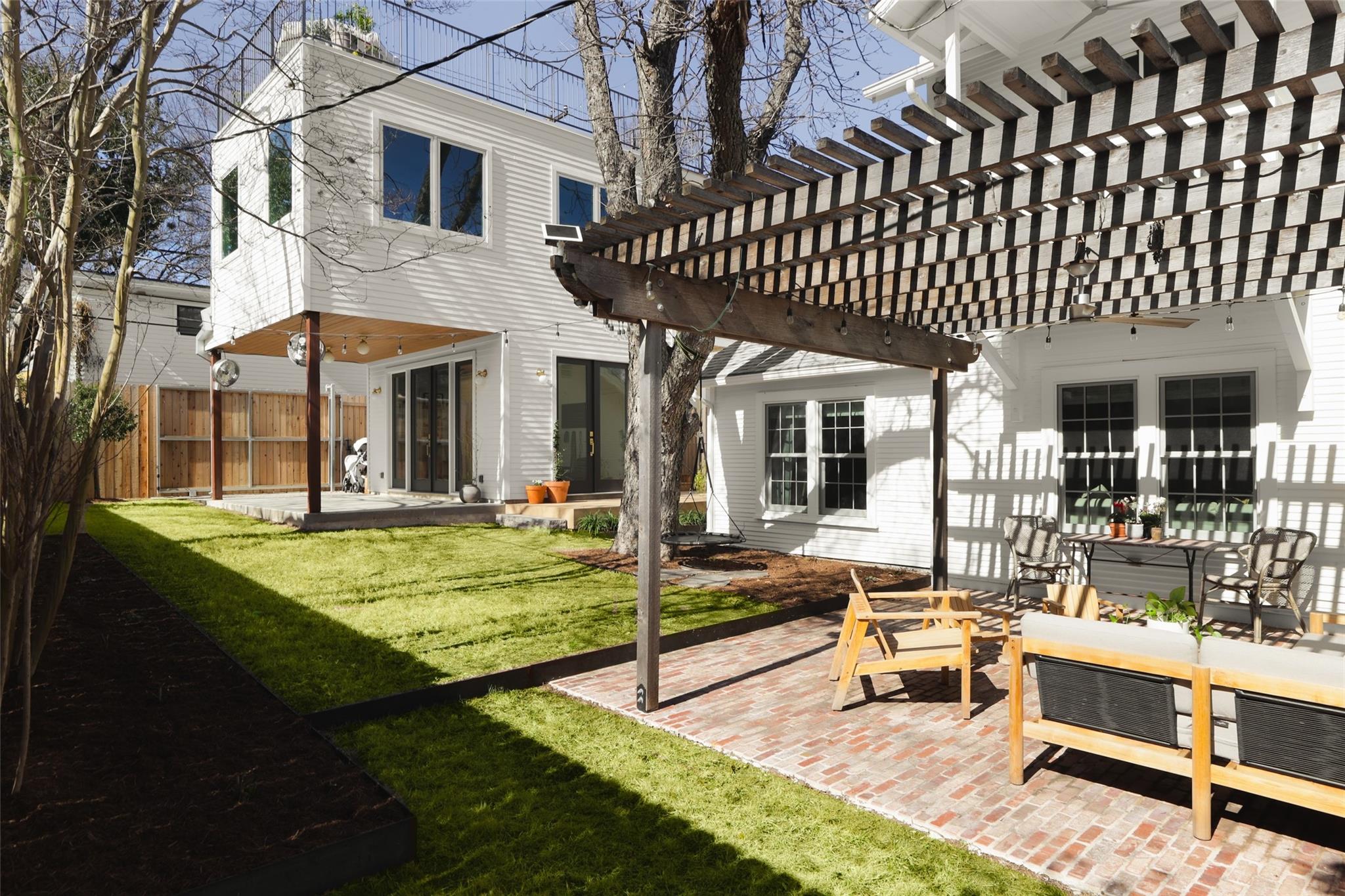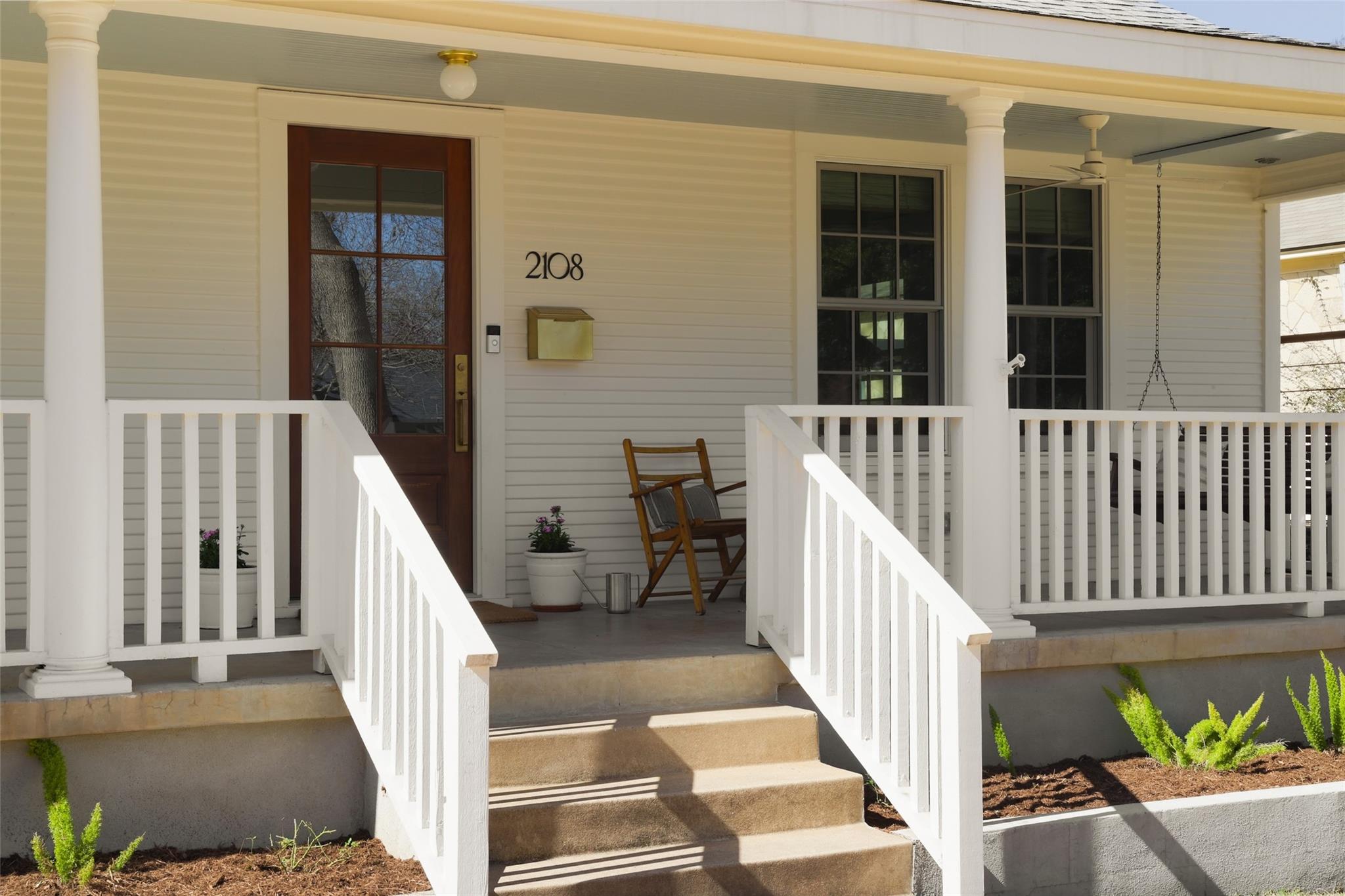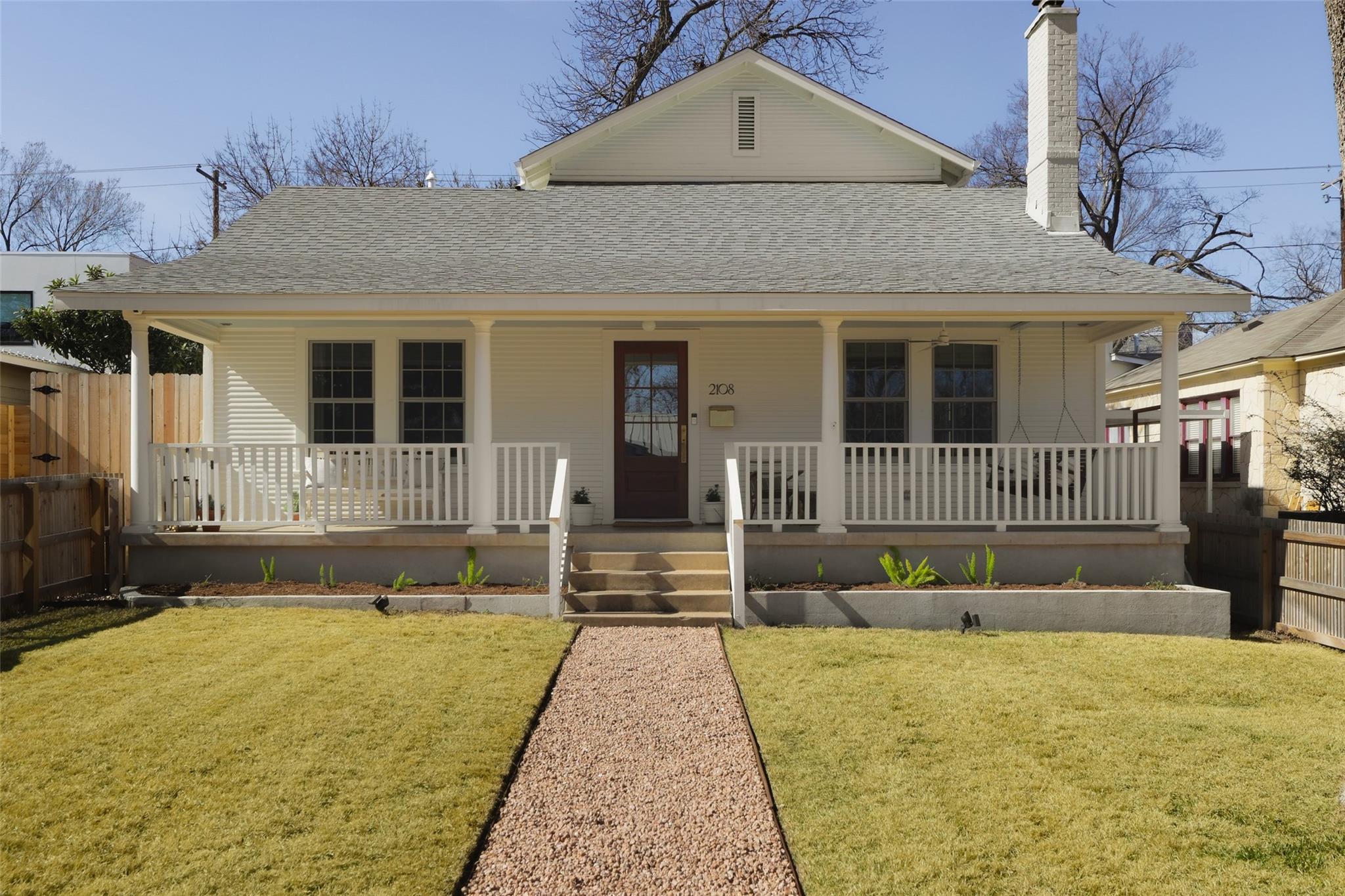 Welcome to 2108 Kenwood Avenue; a charming 1930's home nestled in the Travis Heights neighborhood. Renovated with care and updated with contemporary comforts, this residence effortlessly marries the charm of classic early American craftmanship with modern living. When you step inside, the natural light fills the open floor plan, seamlessly connecting the living room, dining area, kitchen, and playroom—an inviting space perfect for everyday living or hosting guests. The main house boasts two downstairs bedrooms sharing a full bath, while the upstairs primary suite is framed by beautiful trees. A separate backhouse spans three levels with alley access and a versatile carport. The main floor offers endless possibilities, whether you use it as a gym, office, or flex space. Upstairs is a studio with a kitchenette and full bathroom, followed by a rooftop deck where you can savor a breeze year-round. Outside, a large front porch, fenced yard, shaded backyard, and a custom brick patio beckon for leisurely afternoons or lively gatherings. With ample space to play, garden, or entertain, this home embodies tranquility within urban convenience. Within walking distance of shops, restaurants, and parks and just a short drive from downtown Austin, this renovated 1930s home offers the perfect blend of timeless charm, modern amenities, and prime location—an embodiment of Austin living at its finest.