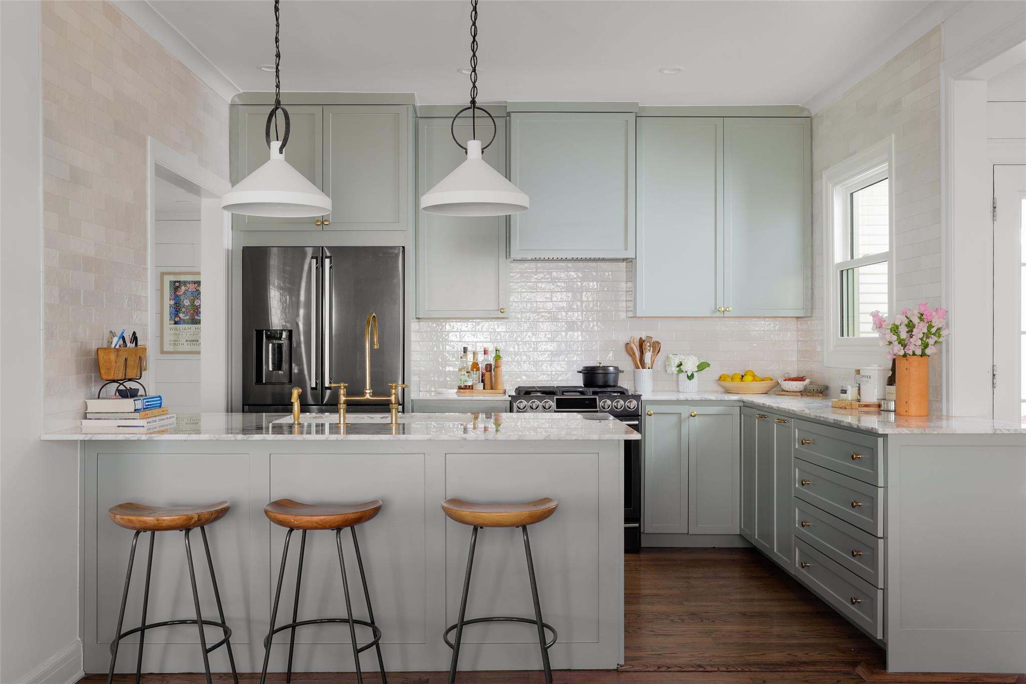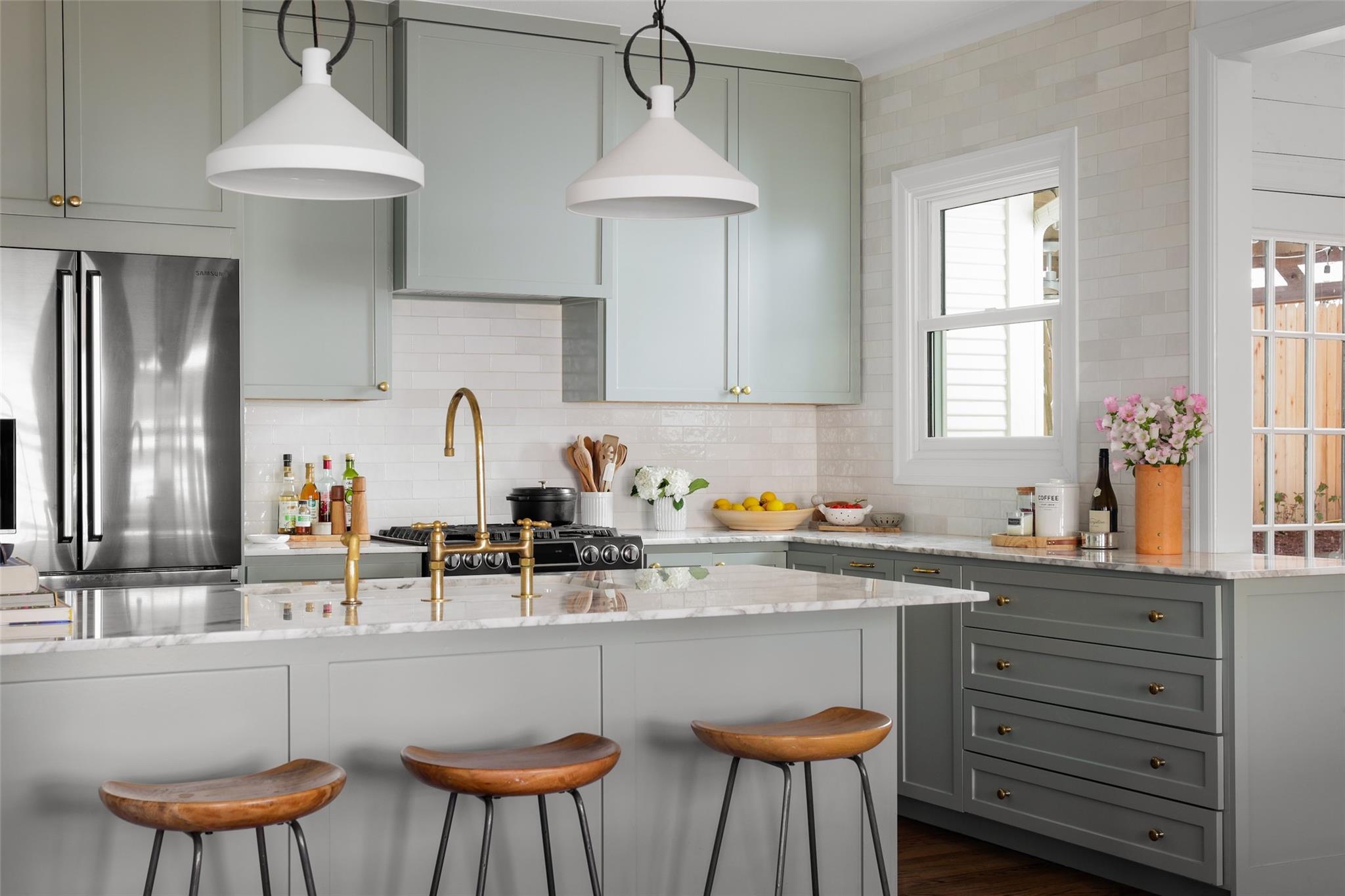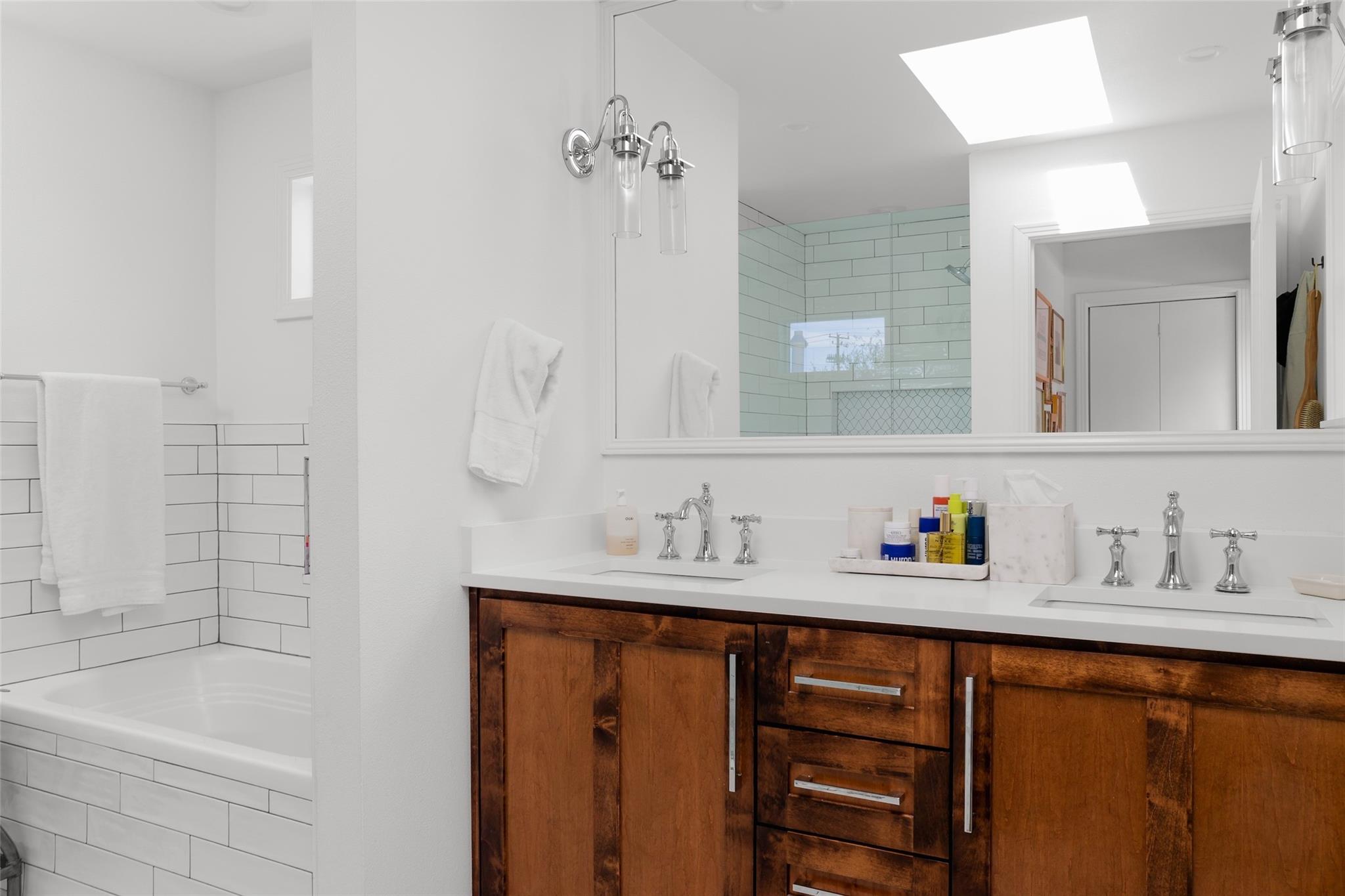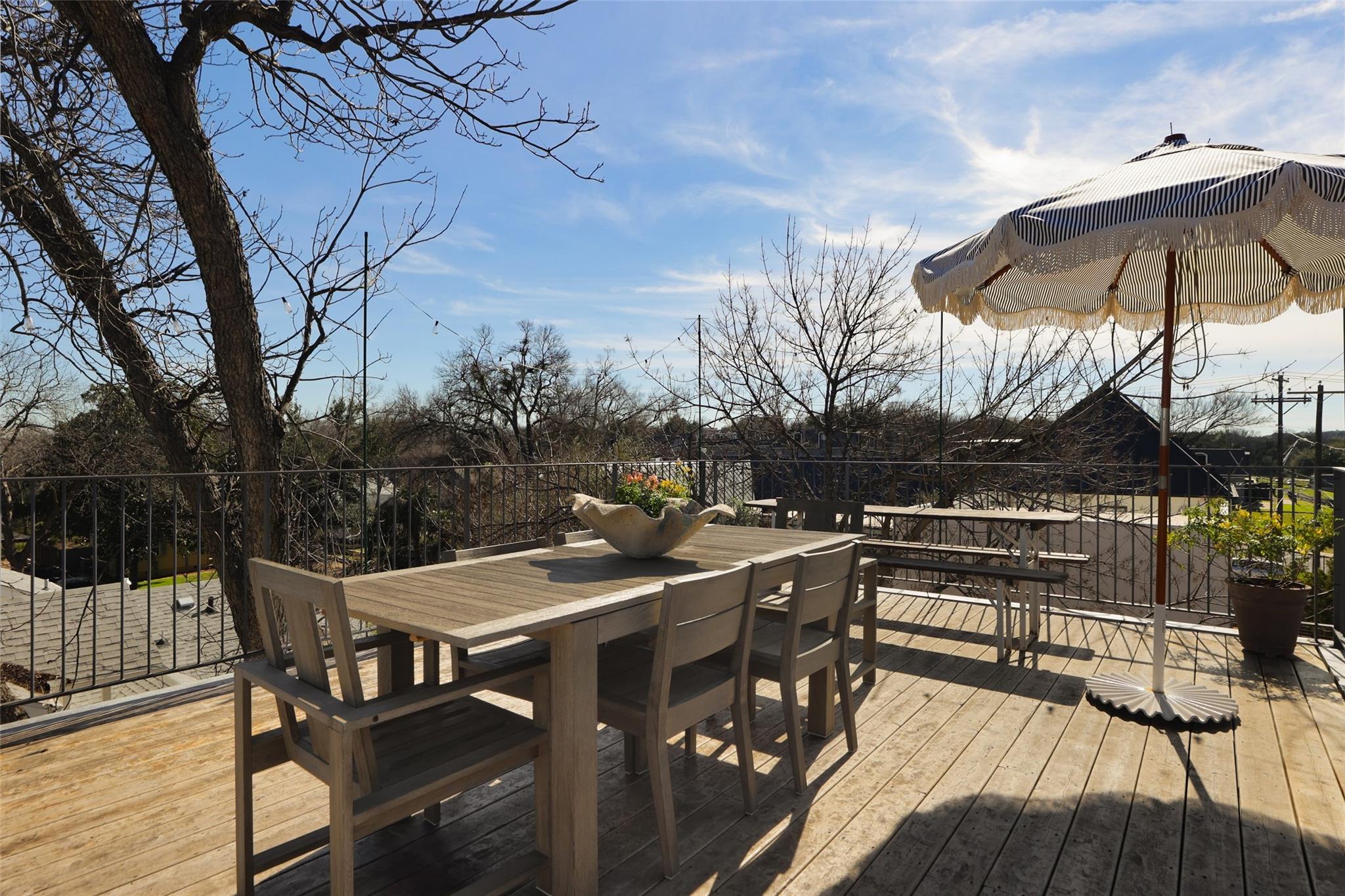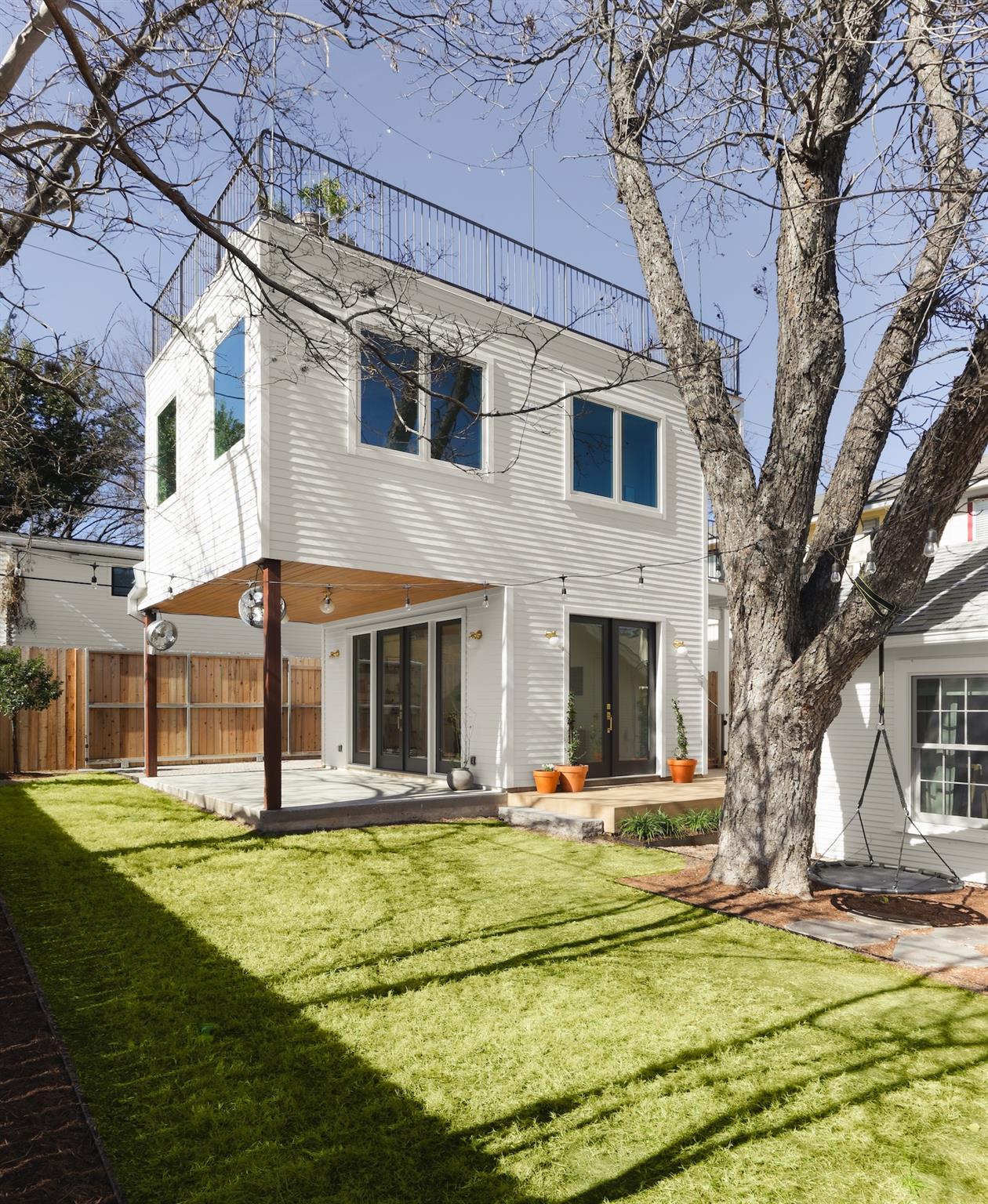 Welcome to 2108 Kenwood Avenue; a charming 1930's home nestled in the Travis Heights neighborhood. Renovated with care and updated with contemporary comforts, this residence effortlessly marries the charm of classic early American craftmanship with modern living. When you step inside, the natural light fills the open floor plan, seamlessly connecting the living room, dining area, kitchen, and playroom—an inviting space perfect for everyday living or hosting guests. The main house boasts two downstairs bedrooms sharing a full bath, while the upstairs primary suite is framed by beautiful trees. A separate backhouse spans three levels with alley access and a versatile carport. The main floor offers endless possibilities, whether you use it as a gym, office, or flex space. Upstairs is a studio with a kitchenette and full bathroom, followed by a rooftop deck where you can savor a breeze year-round. Outside, a large front porch, fenced yard, shaded backyard, and a custom brick patio beckon for leisurely afternoons or lively gatherings. With ample space to play, garden, or entertain, this home embodies tranquility within urban convenience. Within walking distance of shops, restaurants, and parks and just a short drive from downtown Austin, this renovated 1930s home offers the perfect blend of timeless charm, modern amenities, and prime location—an embodiment of Austin living at its finest.