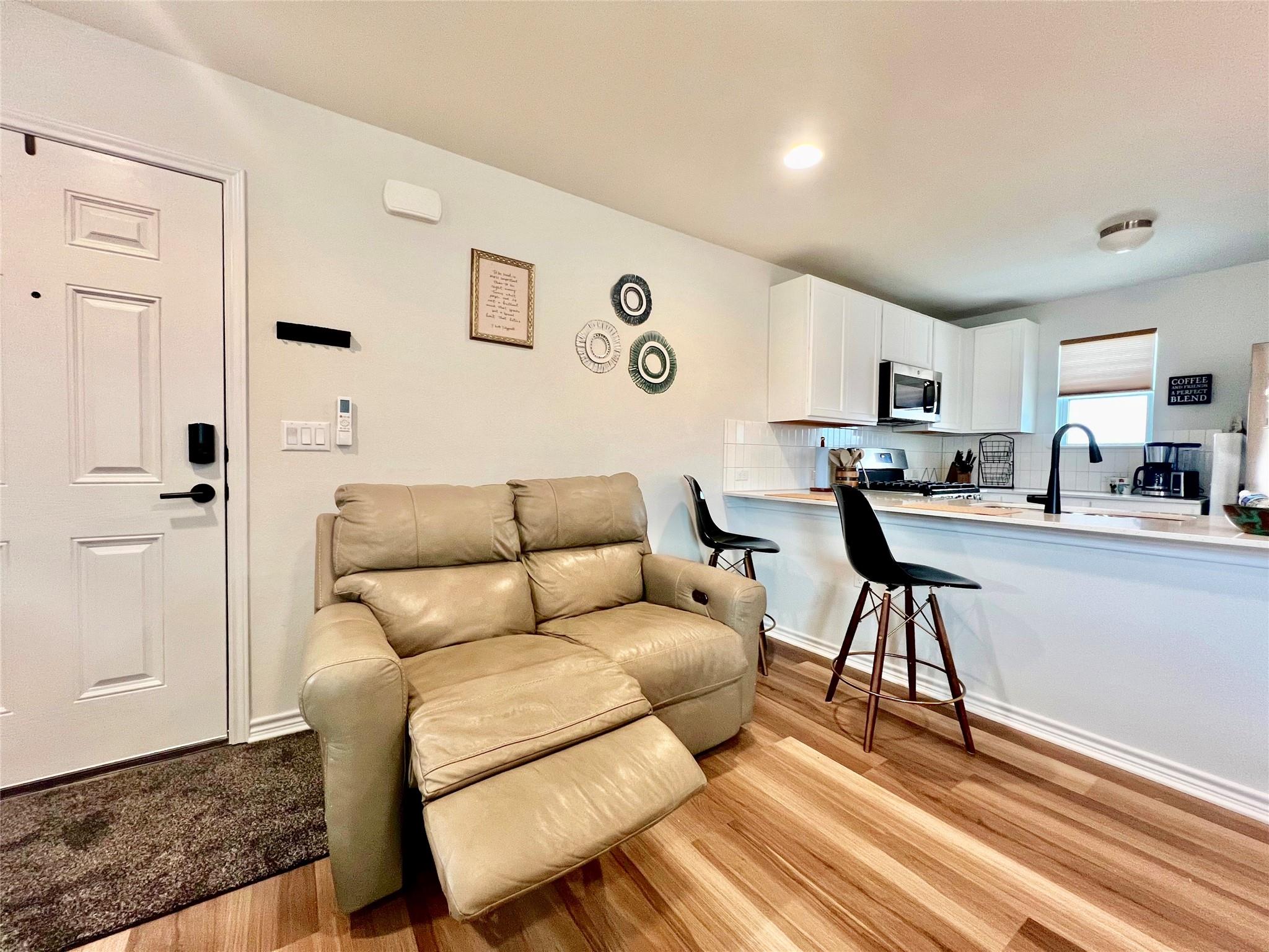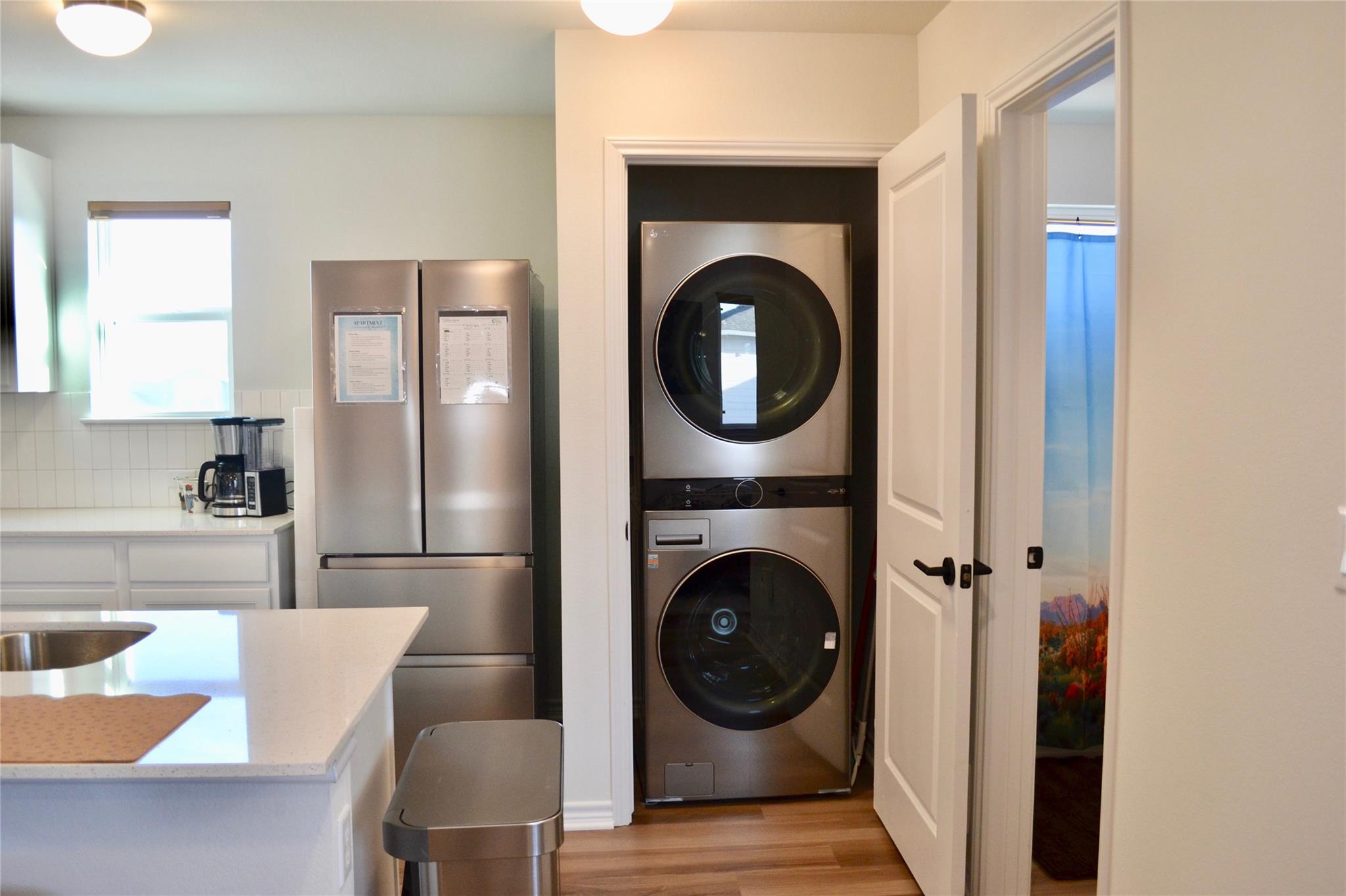 Low maintenance living for those on the go! Fully furnished and tastefully designed detached studio garage unit in the hugely popular Easton Park community. Bright and cozy space with easy care laminate wood flooring. Full kitchen that includes stainless steel appliances, including refrigerator. Quartz countertops and a spacious breakfast bar with seating for three. Full bath with tiled shower. Stacked washer and dryer. Stay active with access to a host of community amenities including pool, fitness center, oodles of trails, and a park for the pooch. For that early morning jog or evening hike, McKinney Falls State Park is just minutes from your door. Convenient commuting to ABIA, Tesla, and your favorite shopping and dining spots on South Congress. Monthly rent covers all utilities.