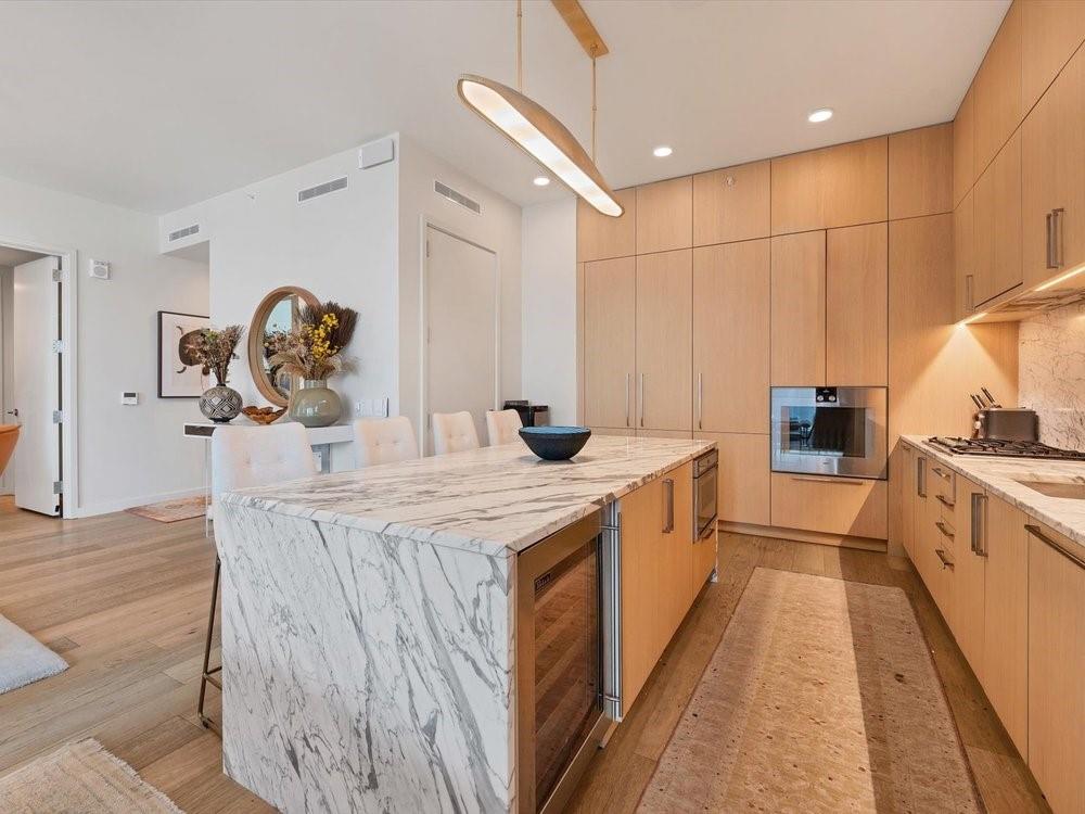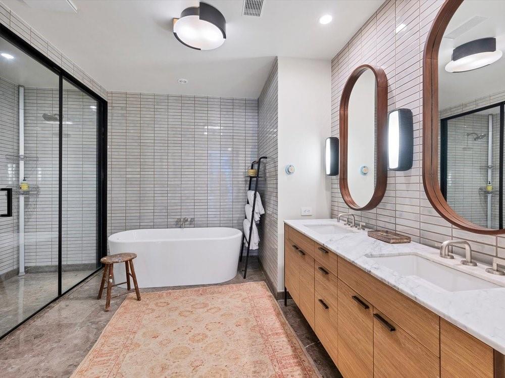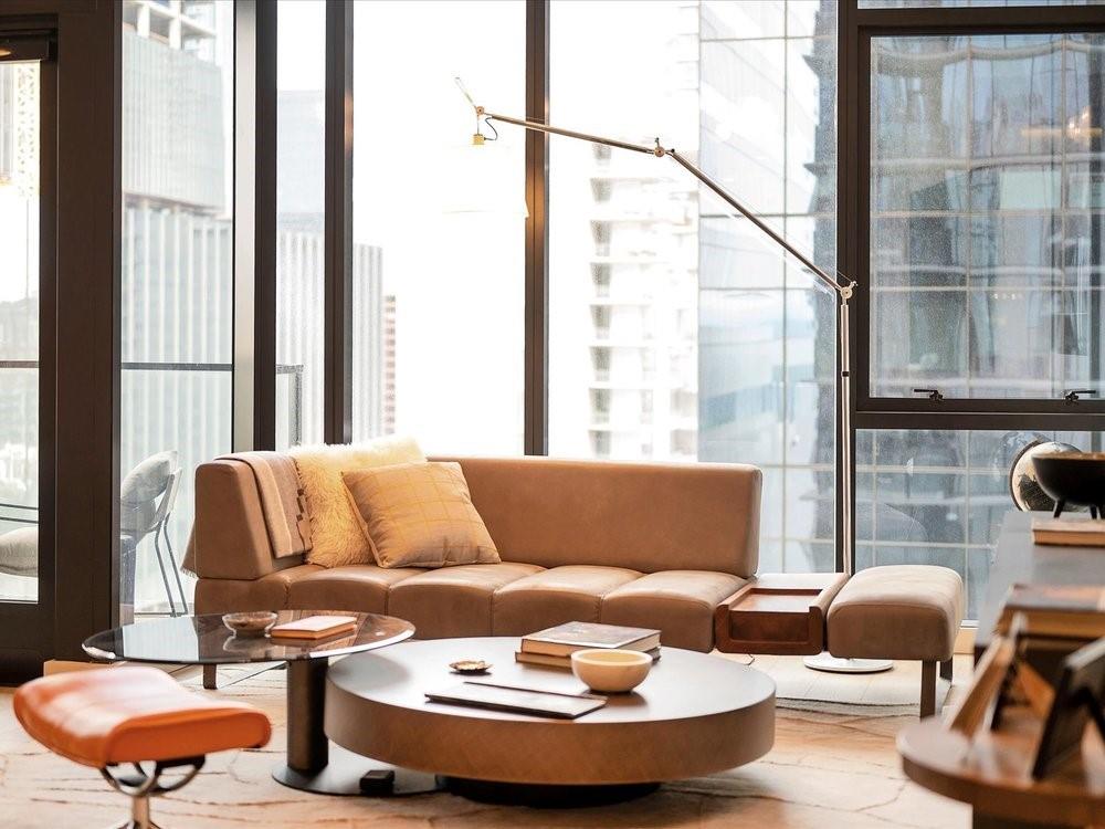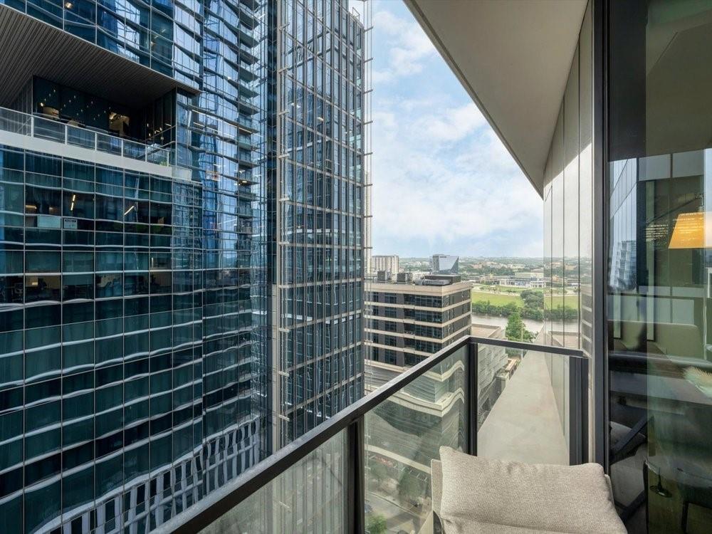 Experience luxury city living at its finest in this remarkable corner residence within the esteemed Austin Proper Hotel & Residences. This coveted floor plan sits on the 14th level, offering easy access to the private resident lounge, pool, and amenity level only one floor below. The home spans an impressive 1,646 sq ft of living space with no detail overlooked from custom blackout shades and California closet buildouts to high-end built-in surround system and custom home theater. Upon entering this lavish residence, you're greeted by expansive 10' floor-to-ceiling windows that amplify natural light and frame stunning views of downtown Austin and Republic Square Park. The interior design showcases Kelly Wearstler's signature style of casual sophistication while custom light fixtures add a touch of elegance throughout. The kitchen is outfitted with top-of-the-line Gaggenau appliances and seamlessly integrates with the open-concept living area for effortless entertaining. Luxury extends beyond your front door with 24/7 valet/concierge service, hotel and resident pools, a state-of-the-art fitness facility, and exquisite dining options curated by MML Hospitality all within the tower. The exclusive amenity level features a private pool, an indoor-outdoor lounge, library and outdoor kitchen perfect for hosting friends or simply enjoying an evening at home. This property's Main + Main location grants direct access to Lady Bird Lake and Seaholm District where you'll find Trader Joe’s grocery store along with unique local boutiques. You're also steps away from ACL-LIVE entertainment venue among other vibrant lifestyle amenities that make Austin one of America's most beloved cities. Two dedicated parking spaces convey with sale. Storage unit (10x10) and furnishings are available at additional cost, please inquire for pricing.
