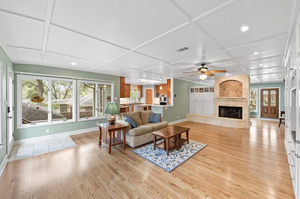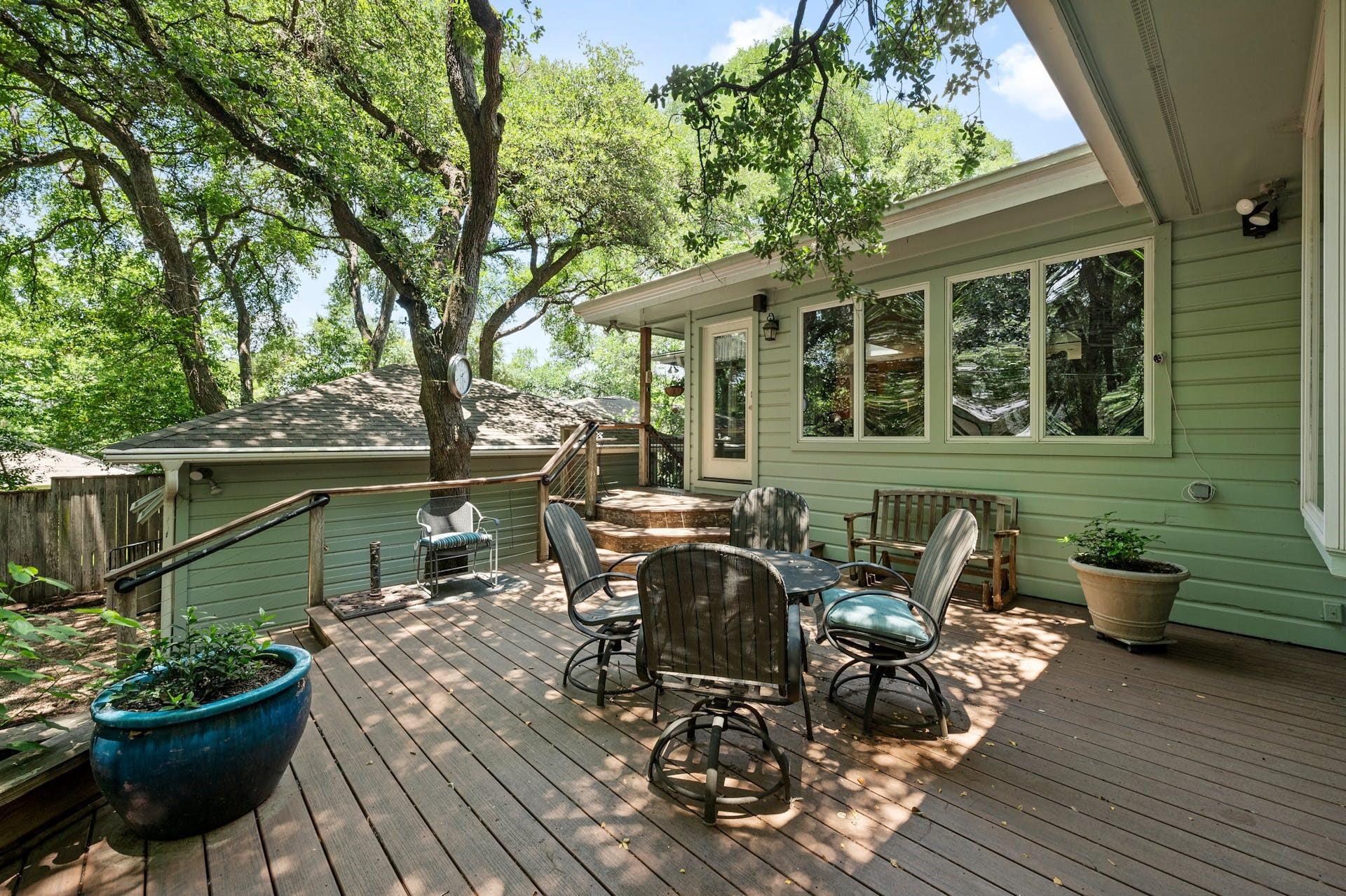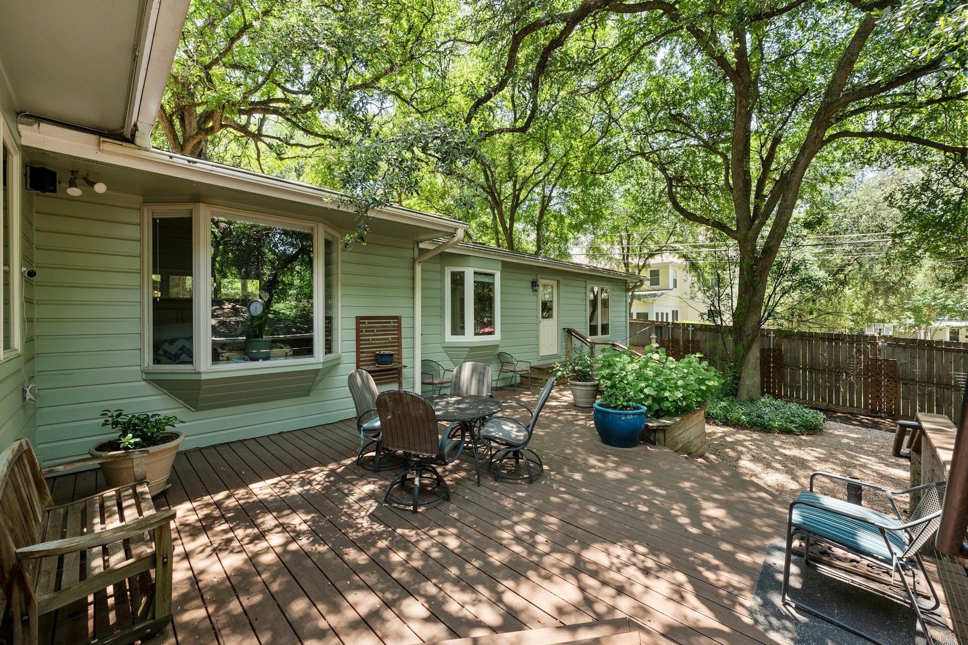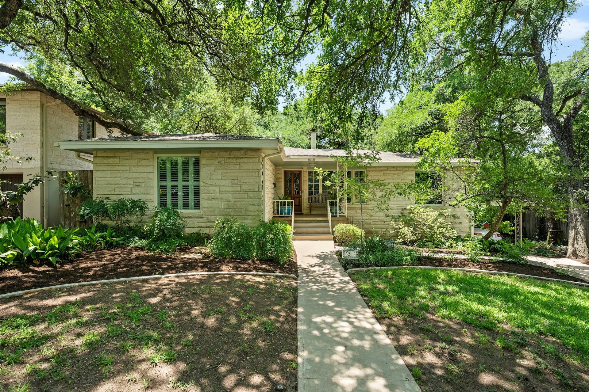 Tarrytown charmer! This home is a wonderful fusion of classic mid-century architectural elements and contemporary updates. Ready for immediate move-in or ripe for bringing your creativity. This home offers endless possibilities to make it your own. Situated on .22 acres, this property offers a rare opportunity to own a piece of Tarrytown's prestigious landscape, enhanced by beautiful shade trees that provide a canopy of tranquility and privacy. Upgrades include solid oak hardwood floors throughout, gourmet kitchen with granite counters, custom wood cabinets, and large corner pantry and top-of-line appliances, with microwave flex/double oven. Pella windows and living area skylights take advantage of the gorgeous shade trees while still allowing a bright and airy living space. Multiple built-in cabinets throughout with extended limestone hearth complementing the gas log fireplace. Separate office space lined with wooden bookshelves supplements the large primary bedroom. Completely remodeled primary bath with separate jetted tub, tumbled travertine flooring and stone tiled shower. Cedar lined walk-in closet in primary suite. An expansive composite deck in back, surrounded by majestic shade trees, creates an oasis of tranquility, perfect for unwinding after a long day or hosting memorable gatherings with friends and family. Ideal Tarrytown location with parks, restaurants, and downtown Austin just a short distance away. Note: Ring cameras at the home are monitored by homeowner