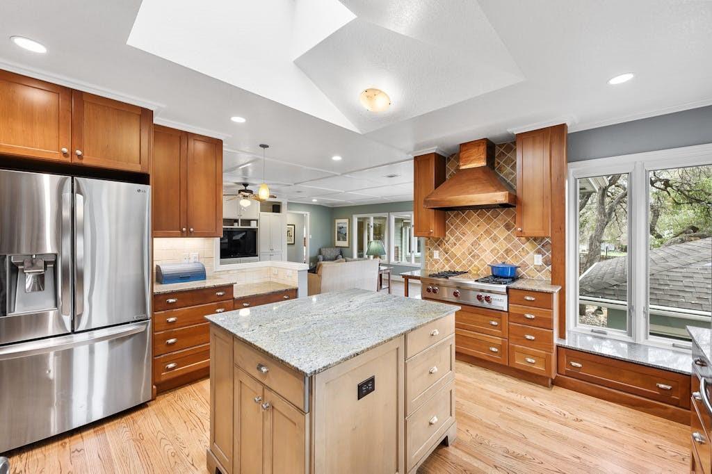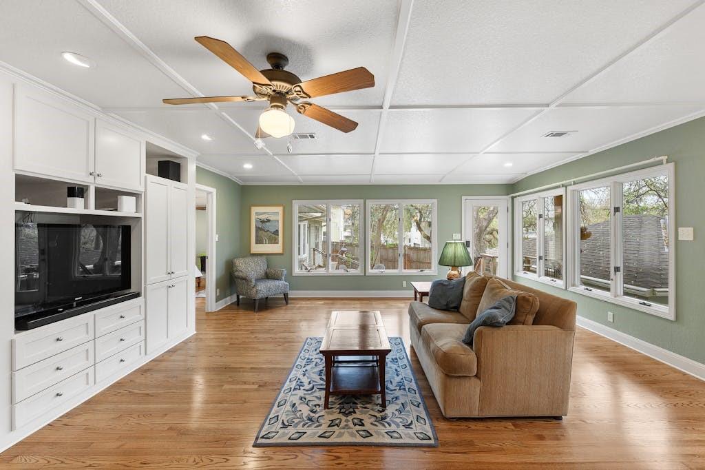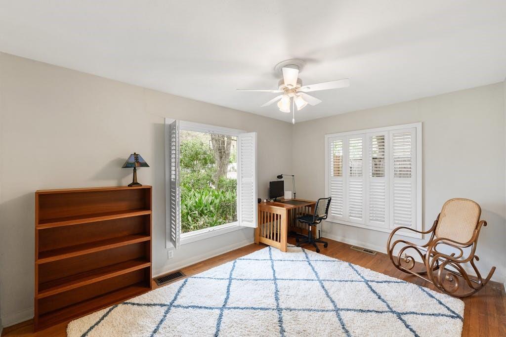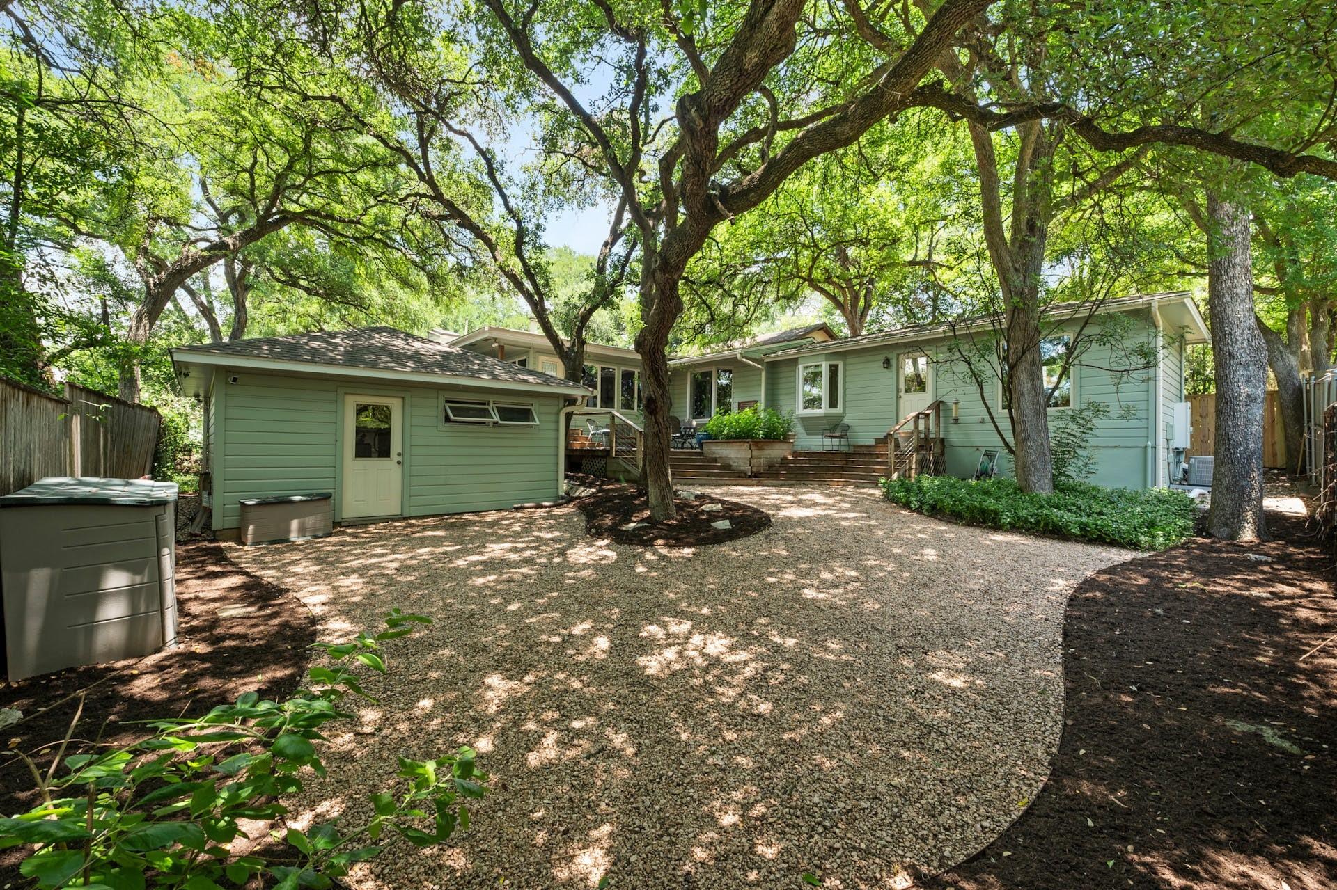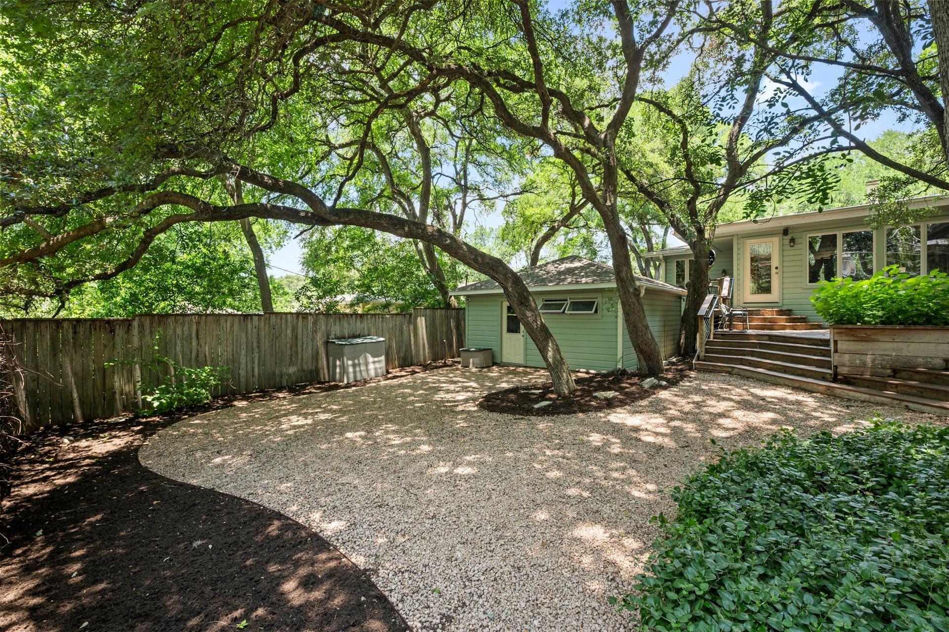 Tarrytown charmer! This home is a wonderful fusion of classic mid-century architectural elements and contemporary updates. Ready for immediate move-in or ripe for bringing your creativity. This home offers endless possibilities to make it your own. Situated on .22 acres, this property offers a rare opportunity to own a piece of Tarrytown's prestigious landscape, enhanced by beautiful shade trees that provide a canopy of tranquility and privacy. Upgrades include solid oak hardwood floors throughout, gourmet kitchen with granite counters, custom wood cabinets, and large corner pantry and top-of-line appliances, with microwave flex/double oven. Pella windows and living area skylights take advantage of the gorgeous shade trees while still allowing a bright and airy living space. Multiple built-in cabinets throughout with extended limestone hearth complementing the gas log fireplace. Separate office space lined with wooden bookshelves supplements the large primary bedroom. Completely remodeled primary bath with separate jetted tub, tumbled travertine flooring and stone tiled shower. Cedar lined walk-in closet in primary suite. An expansive composite deck in back, surrounded by majestic shade trees, creates an oasis of tranquility, perfect for unwinding after a long day or hosting memorable gatherings with friends and family. Ideal Tarrytown location with parks, restaurants, and downtown Austin just a short distance away. Note: Ring cameras at the home are monitored by homeowner