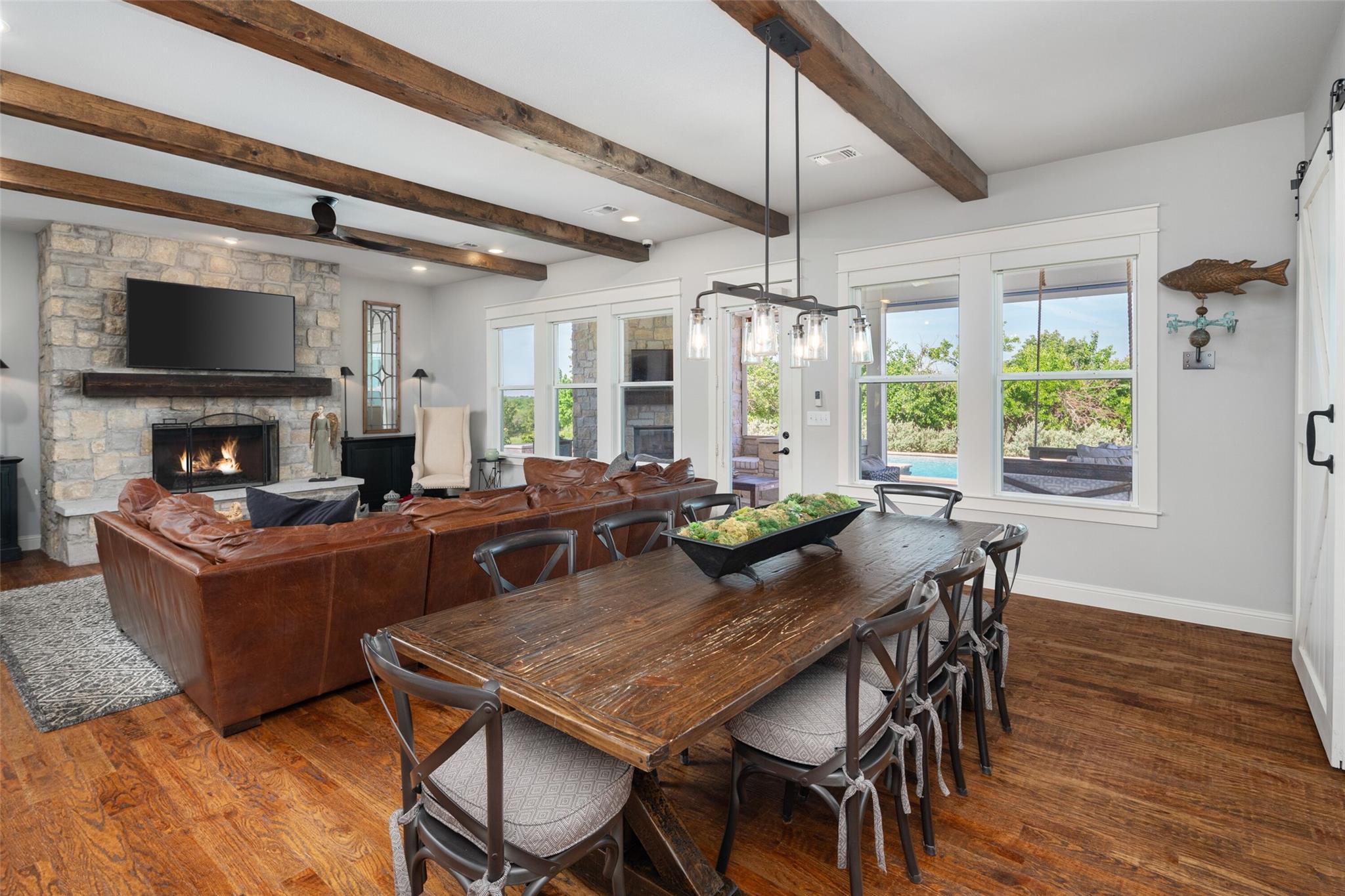 | Interior Features | Bookcases, Breakfast Bar, Ceiling Fan(s), Beamed Ceilings, Quartz Counters, Crown Molding, Double Vanity, Electric Dryer Hookup, Entrance Foyer, Kitchen Island, Multiple Living Areas, Pantry, Primary Bedroom on Main, Soaking Tub, Storage, Walk-In Closet(s), Washer Hookup, Wired for Sound | |