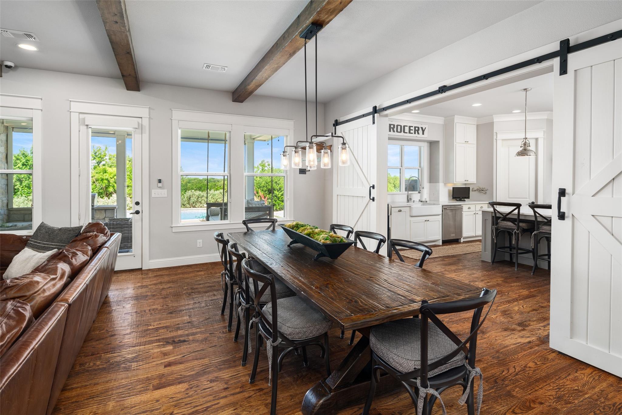 Are you looking for a tranquil place to call home with plenty of elbow room? Come visit this beautiful home with a large gourmet kitchen featuring a 5-burner gas cooktop, pot filler, farmhouse sink, large island with extra storage, sizable walk-in pantry, cozy family room with fireplace, 4 bedrooms each with an ensuite bath, outdoor kitchen for easy entertaining, 2 fireplaces (family room & outdoors), pool-spa, plus acres to roam. Come see how you would enjoy country living and yet be so close to downtown McKinney where there is an abundance of restaurants, great shopping, and easy strolls around the square. Safe room next to family room. The barn is divided with one side open for easy maneuvering of equipment or storage extra toys that won't fit in the 3-car garage; other side is cooled and perfect for exercise equipment, hobbies, music equipment, etc. This property currently has an ag exemption, two large pastures and heavily treed areas. Buyer and Buyers Agent to verify all information.