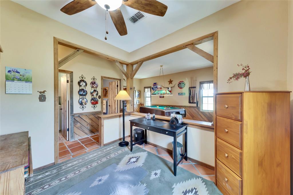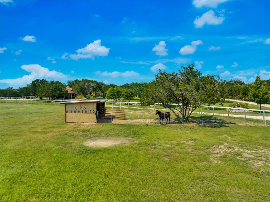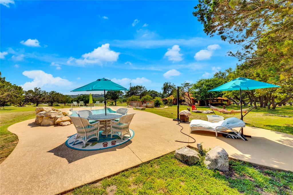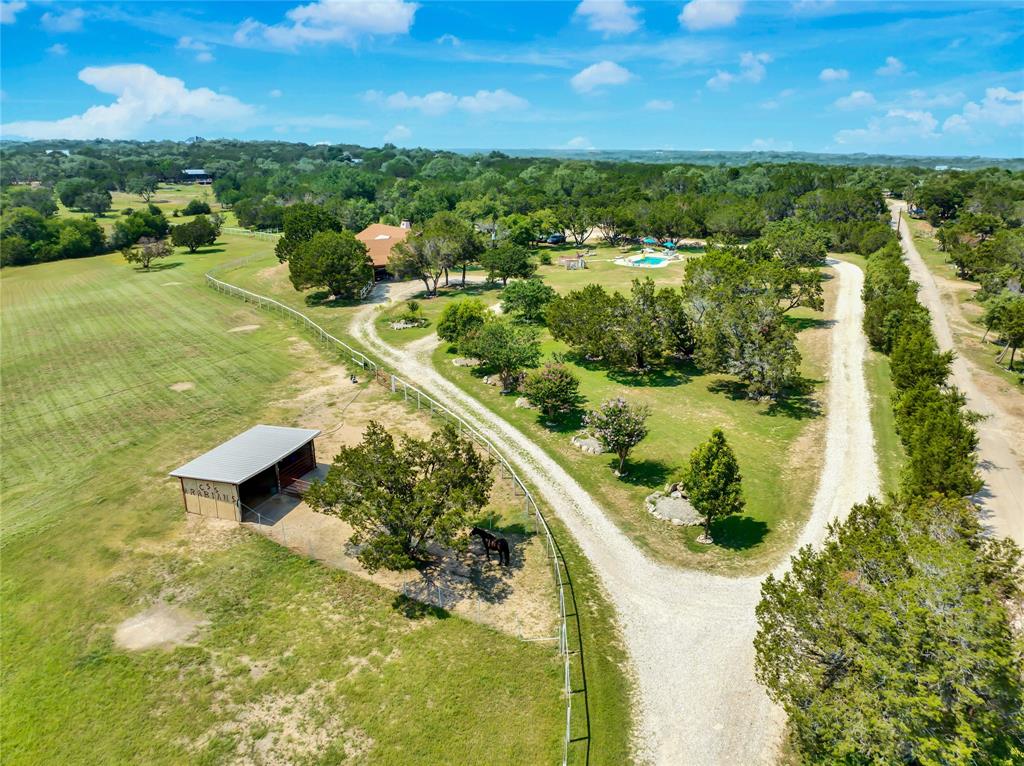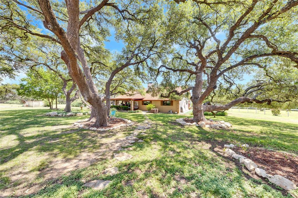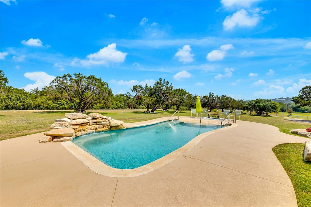 Fabulous horse ranch located in fast growing Leander! This resort style property has lots of potential with over 23.5 acres to roam. There's beautiful hill country views, plenty of green pasture with fenced horse pens, a barn, storage room and stable. Large, majestic oak trees provide shade behind the home, while an inviting swimming pool features a waterfall and rock gardens all around! The Spanish ranch style home features 3 bedrooms, 3.5 baths, a formal dining room, vaulted ceiling living room with a cozy, stacked-stone fireplace! There's also a game room featuring a rustic bar plus an office. Out back there's a huge covered rear patio with built in grill, a bar, and large hot tub area overlooking the wet weather creek and hill country sunsets! Saltillo tile floors throughout most rooms! A unique and rare property with endless possibilities located close in! Highly rated Leander ISD schools. Welcome to The Ranch, your own private Hacienda!