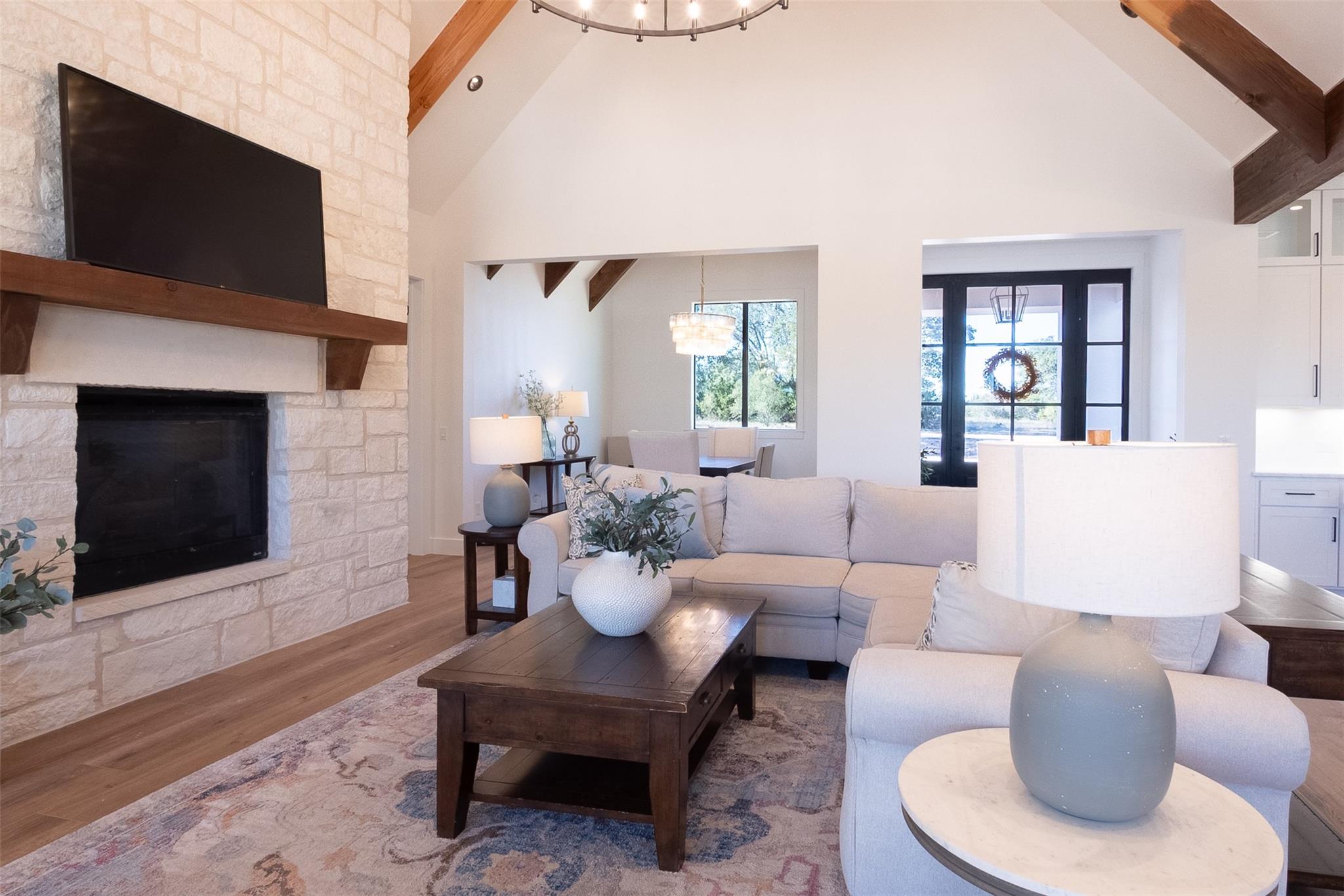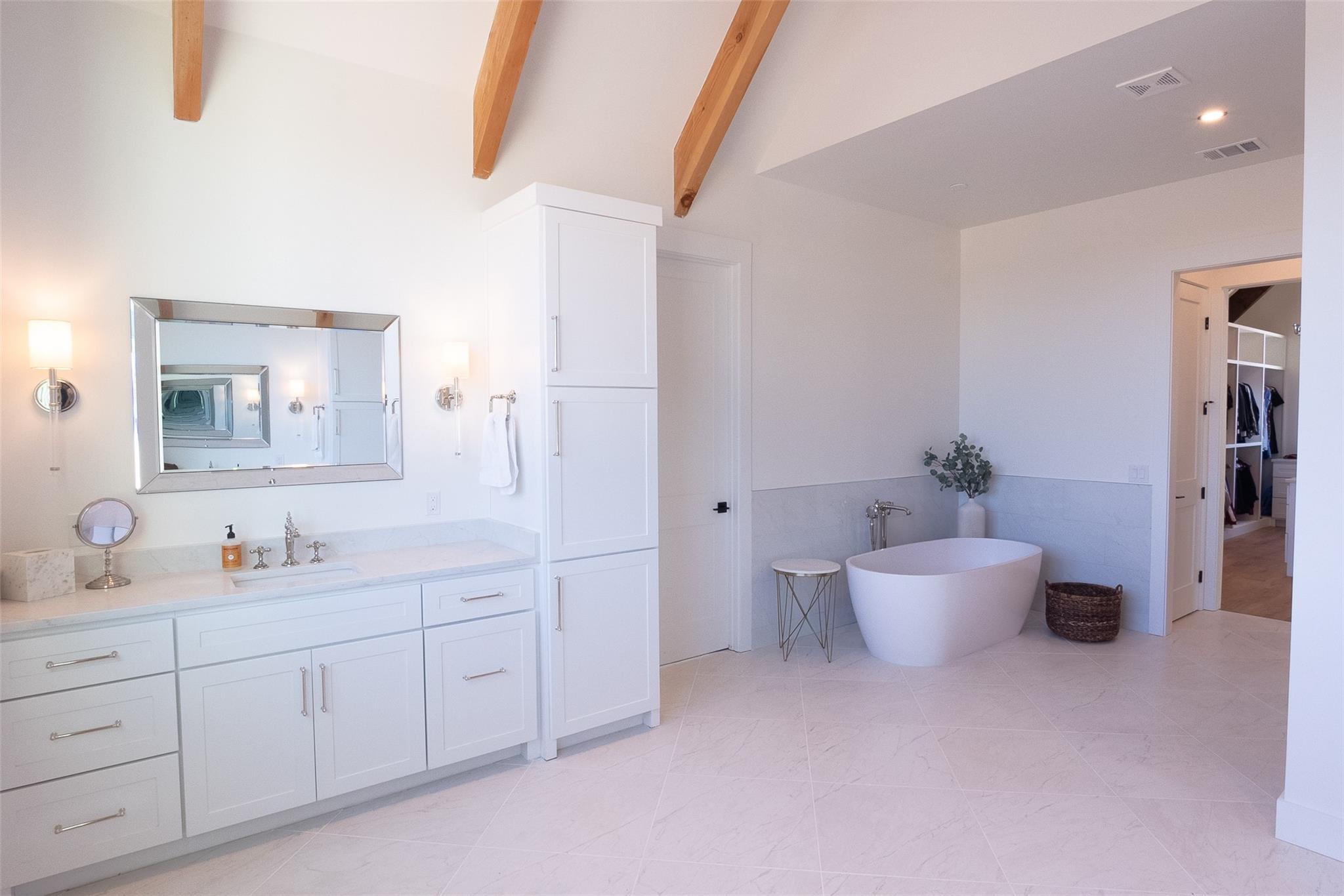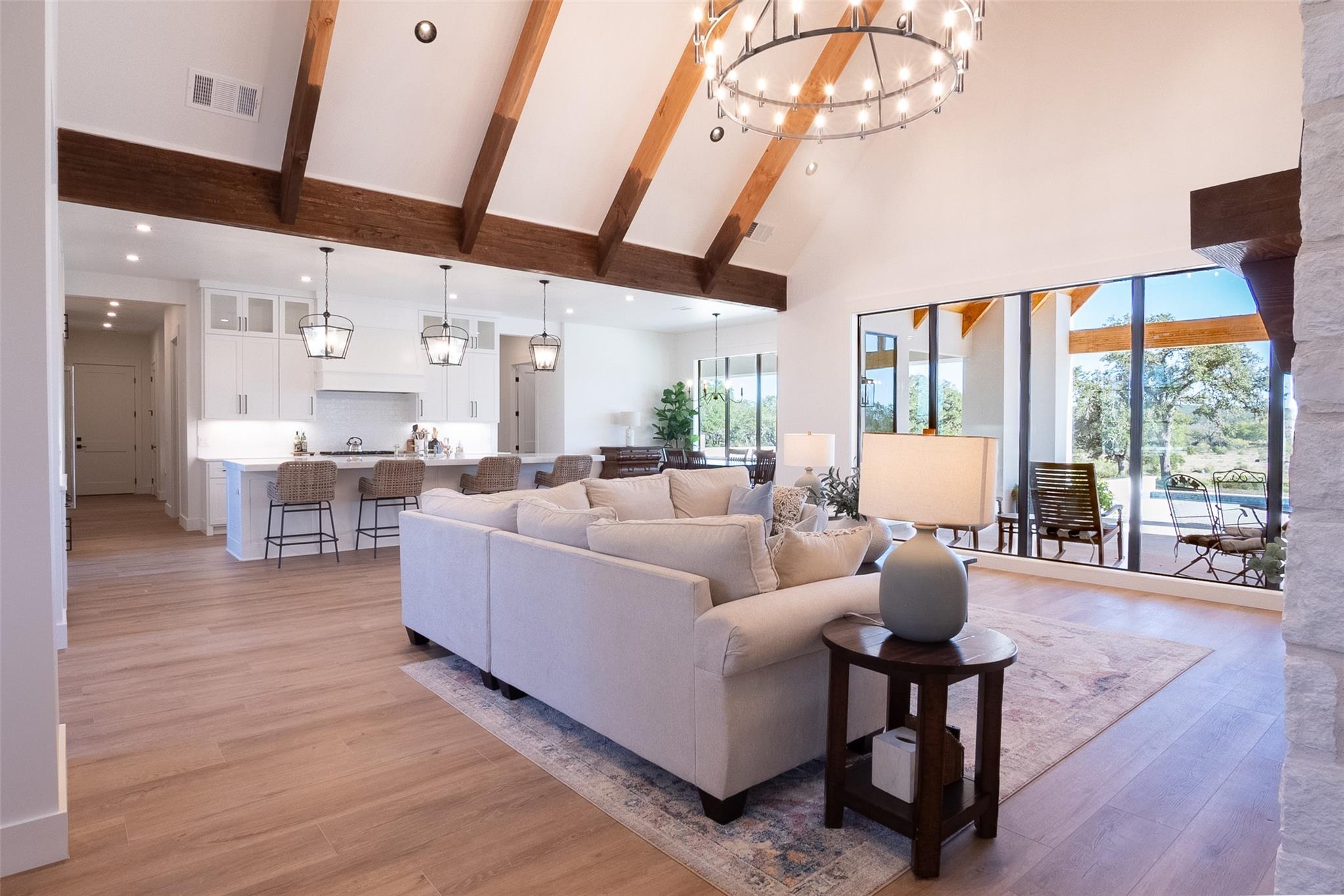 | Interior Features | Beamed Ceilings, Quartz Counters, Double Vanity, In-Law Floorplan, Multiple Living Areas, Open Floorplan, Primary Bedroom on Main | |