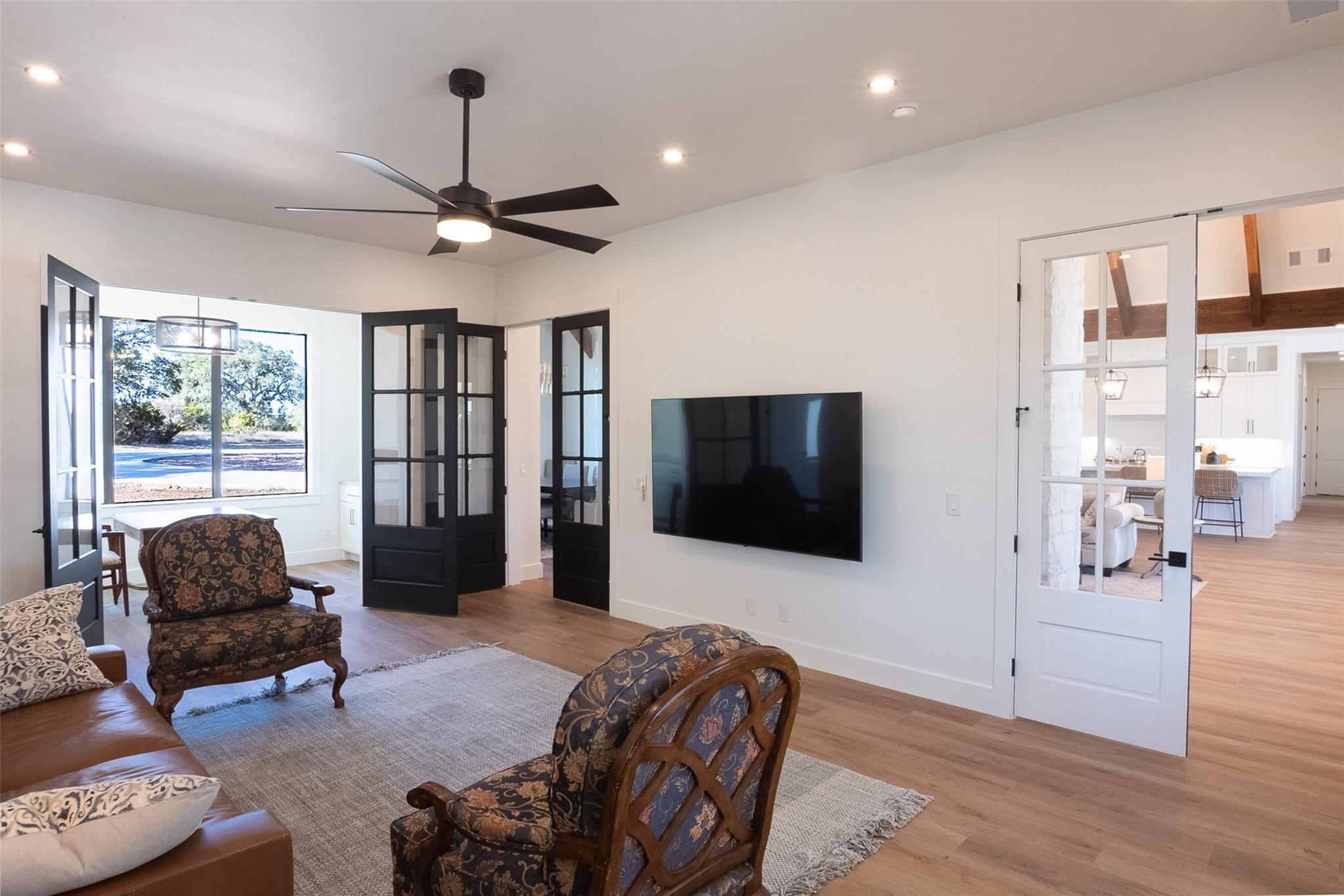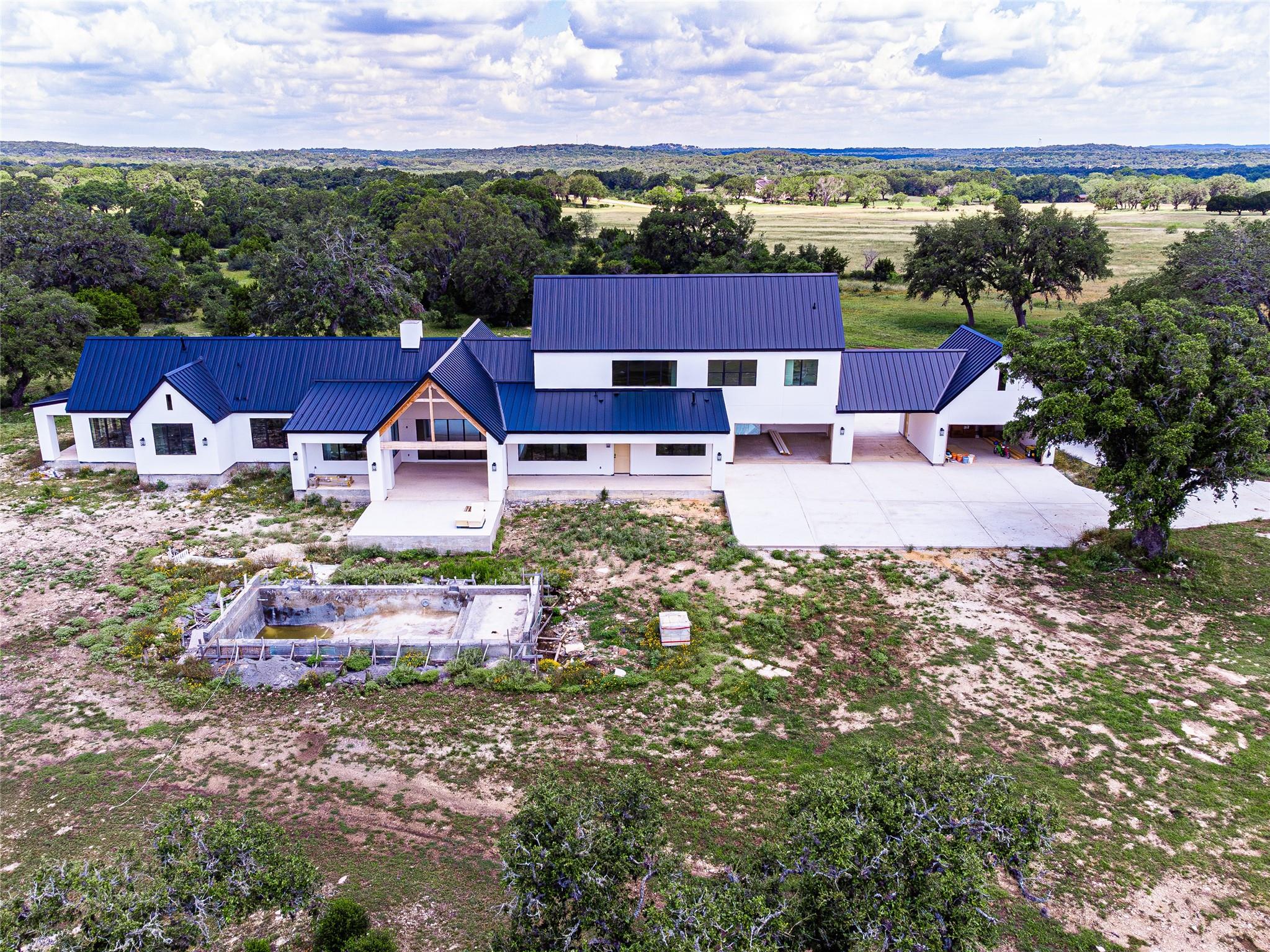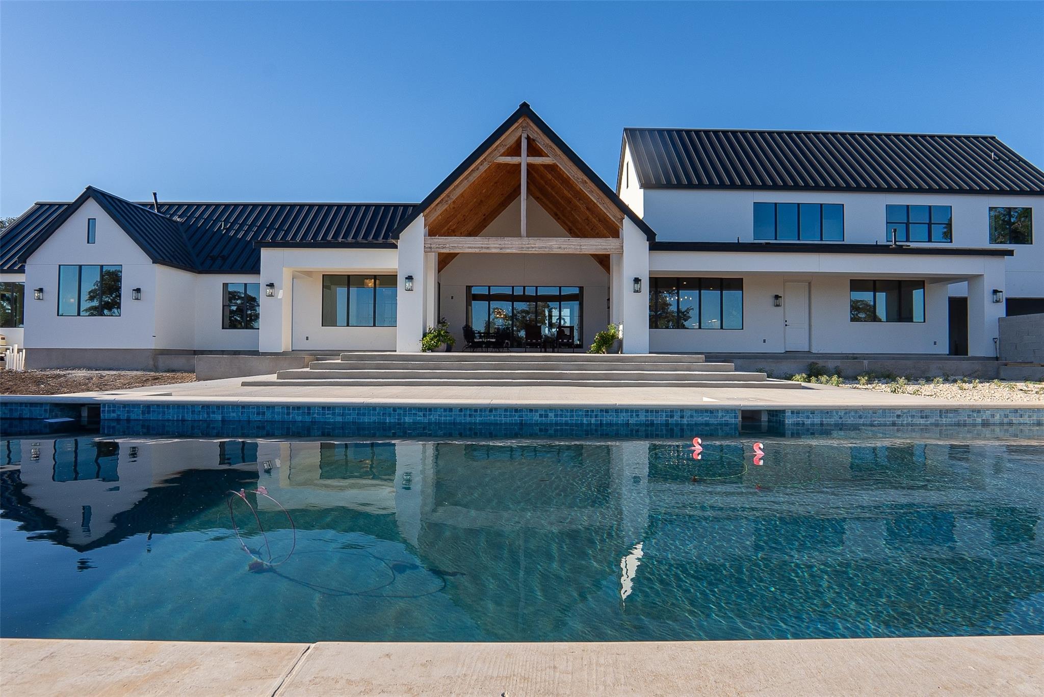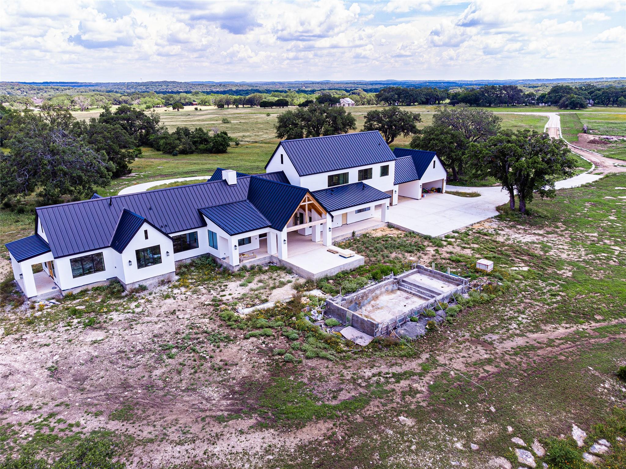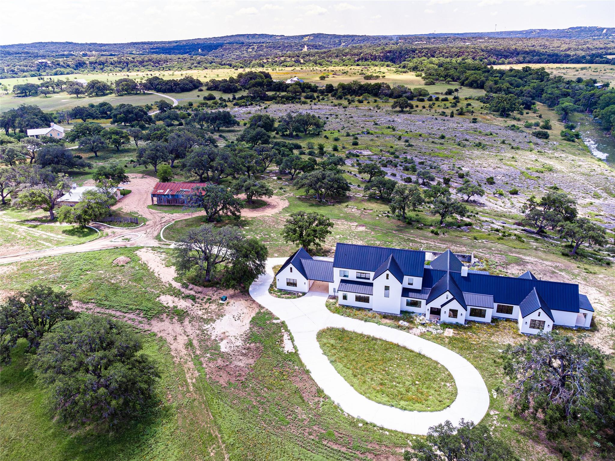 Nestled on an 18-acre property in Spring Branch, Texas, this stunning estate provides a luxurious retreat. Passing through a private gate, you'll be greeted by blooming wildflowers, enhancing the picturesque landscape. The main house, with its high wood beamed ceilings and tall windows, exudes elegance and invites abundant natural light. Its smart design combines functionality with aesthetic appeal. The primary suite offers a den and two offices, providing a "his and her" workspace arrangement. Inspired by the Ritz-Carlton hotel, the primary bathroom showcases exquisite finishes. Adjacent to the suite, a private gym and morning porch offer opportunities for exercise and serene sunrises. Upstairs, a game room with a bar and built-in desks caters to entertainment and productivity. Two bedrooms with private bathrooms ensure comfort and privacy, complemented by a convenient ground floor guest room. A charming 700 square foot guest house features three bedrooms and two bathrooms. The property boasts 700 feet of unobstructed river views, accessible through a private pool area. Explore the enchanting surroundings, passing boulders, escarpments, and even a rare fossil. An original old school outhouse and smoke house add character, while a covered storage area accommodates boats, RVs, ATVs, or horses. With its blend of modern luxury and classic Texas charm, this estate offers a unique opportunity to enjoy the countryside and embrace an extraordinary living experience. *Buyer to verify all*