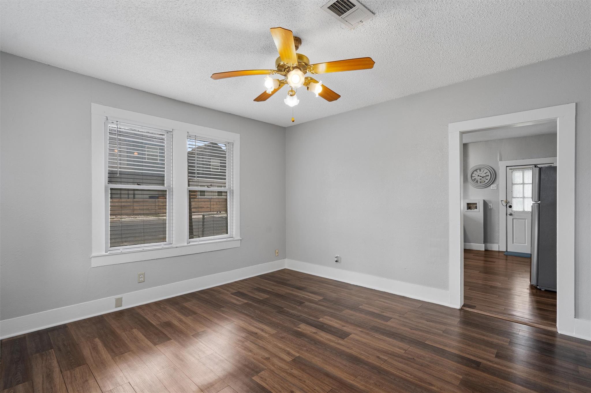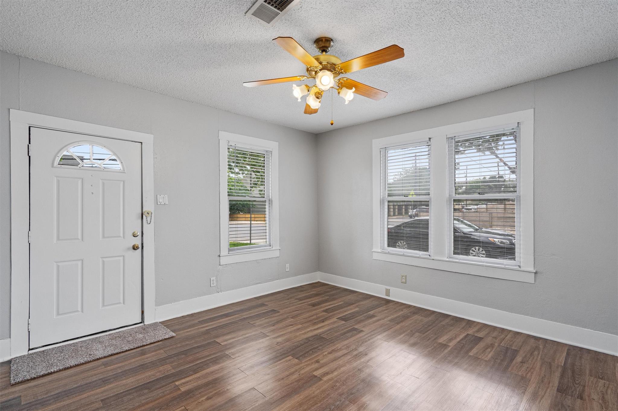 Step into this delightful two-bedroom, one-bath single story home with a sizable, fenced backyard with a shed in the developing St. Johns area. This home has ceiling fans in all the rooms, including the living room, and large windows throughout. The updated eat-in kitchen includes plenty of cabinet space, a gas stove, washer and dryer connection and a new refrigerator. There are wood-grained vinyl floors in the common areas and newly replaced carpet in the bedrooms. The home is conveniently located with easy access to I-35 and Highway 183. APPLY ONLINE! Application is required for each individual 18 and older. A non-refundable pet deposit is required for pets; $500 for the first pet and $250 for the second. The tenant is responsible for verifying the schools zoned to the address and for maintenance of the yard.