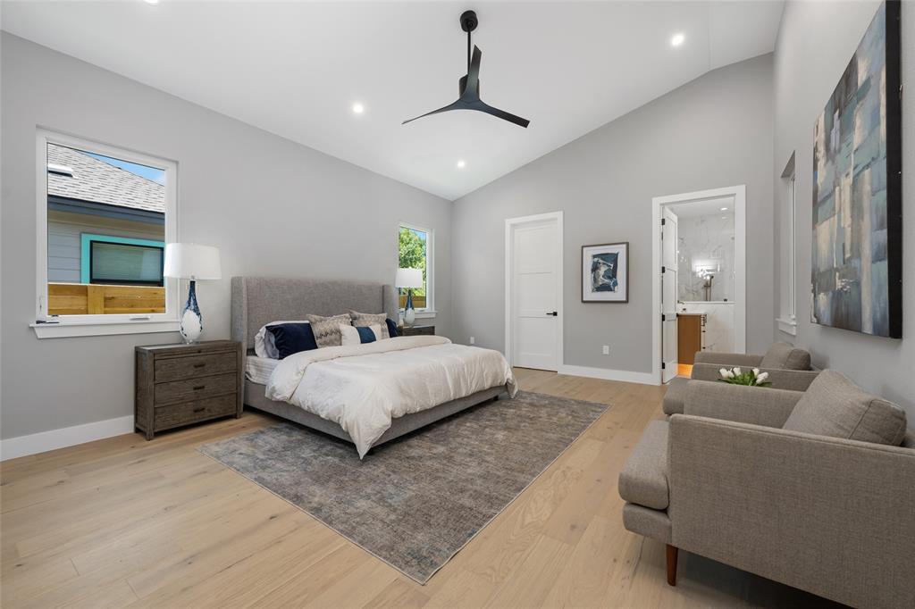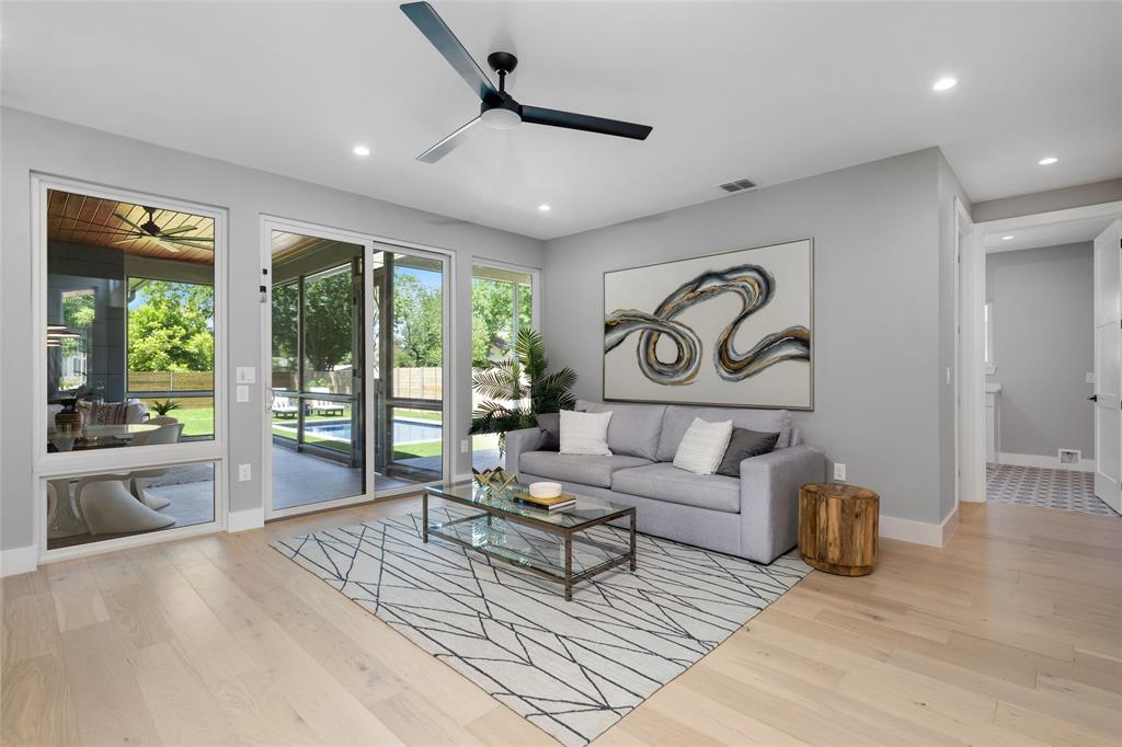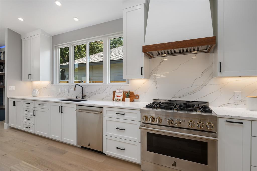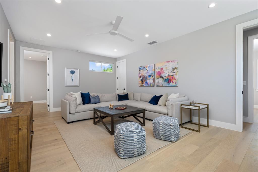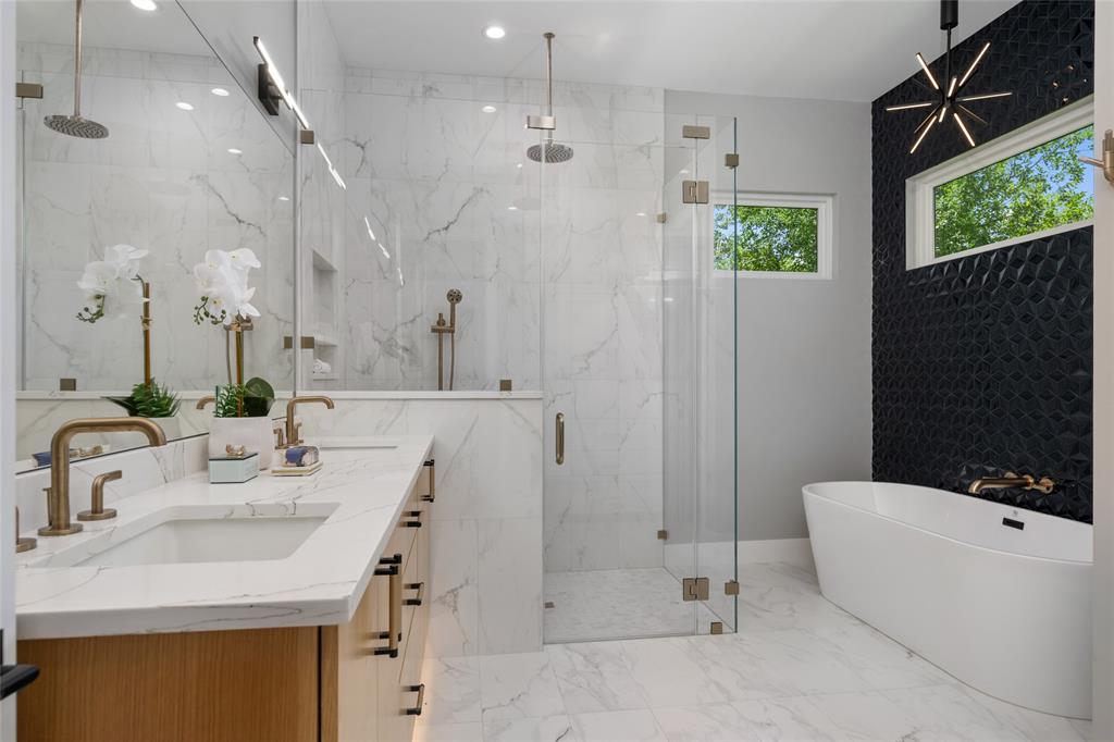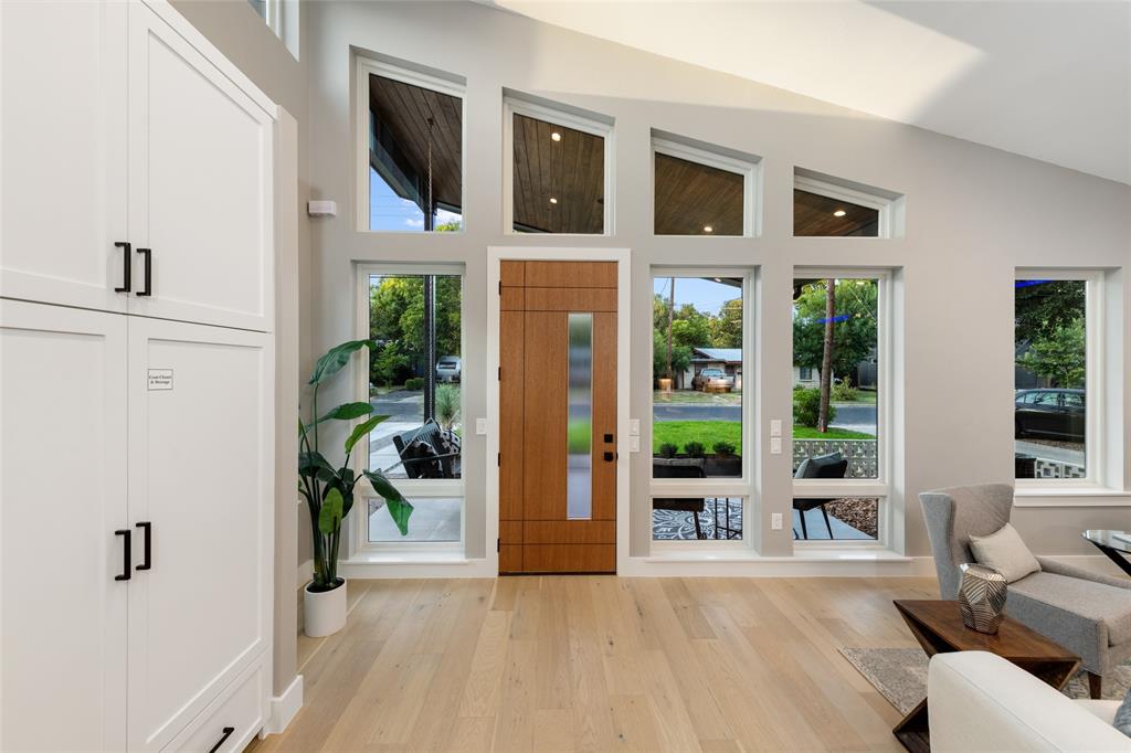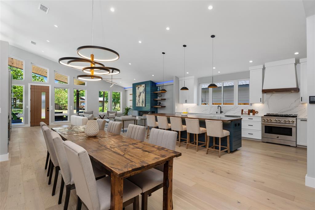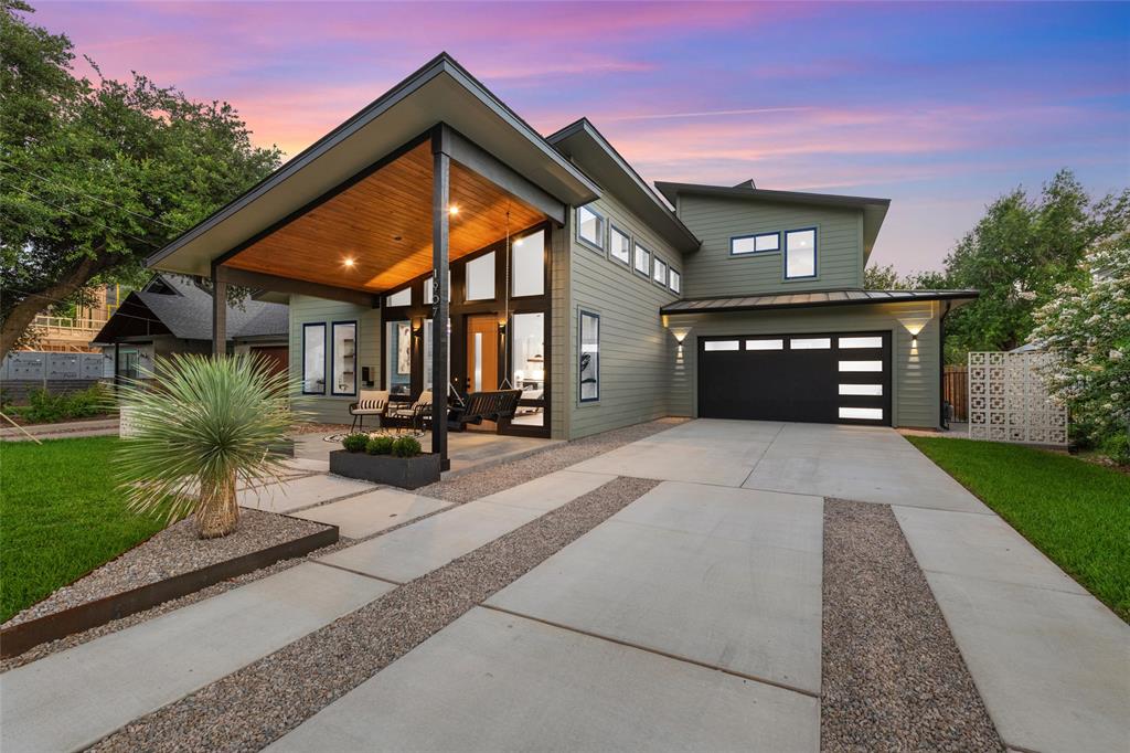 We invite you to another gorgeous Butlin Homes new build with a modern flair in popular Crestview. This neighborhood builder is well-known for their one-of-a-kind floor plans filled with loads of natural light, vaulted ceilings, abundant storage and meticulous attention to quality and detail. Enter into an expansive open floor plan starting in the relaxing living room with a natural gas fireplace, floating walnut shelves, built-in bar, and custom walnut buffet. The gourmet kitchen with high-end JennAir appliances invites you to sit at the 10 foot island for a quick bite or to share stories of the day. We're sure you'll enjoy the ample storage in the striking butler’s pantry. The dining room is illuminated by an elegant modern chandelier and 15 foot high clerestory windows. The main floor primary suite encourages you to relish in the total spa experience of a large walk-in shower, soaking tub, double vanity and designer fixtures. Main floor also provides a 2nd living room, office, laundry, powder bath, and 2-car garage with electric car outlet. Upstairs serves as a haven for kids or guests including 3 bedrooms, 2 full baths, and a flexible gameroom. Unwind with a glass of wine on the front porch swing enjoying the sunset and the soothing water feature. Or cheer on your favorite sports team & visit with friends on the large screened back patio any time of year while you cook up a storm in the well-appointed outdoor kitchen. Cool off in the sparkling pool on hot Texas days, or enjoy a warm heated swim on cool nights. The perfect place to embrace all that Central Austin has to offer: Burnet Road bars & restaurants, The Domain, Austin FC Stadium, and Downtown Austin. Convenient to neighborhood hot spots Fresh Plus Market, Little Deli, Stiles Switch BBQ, and Violet Crown Wine Bar.