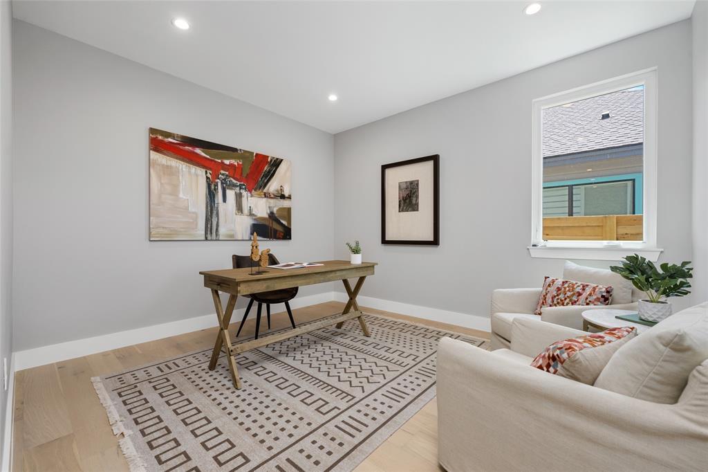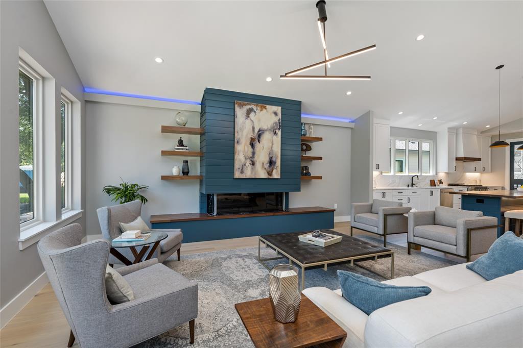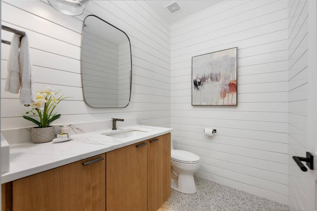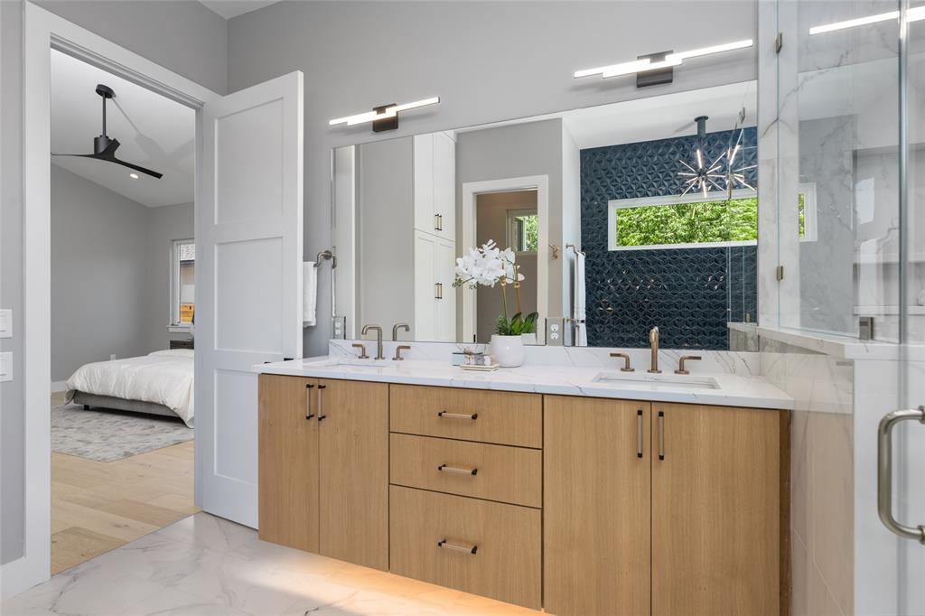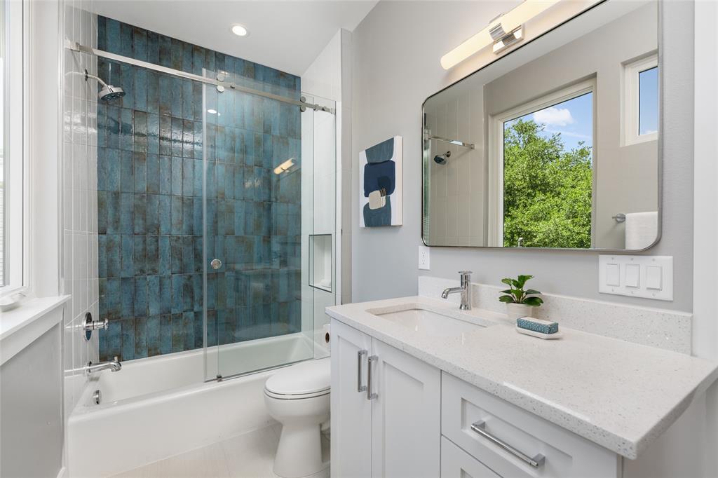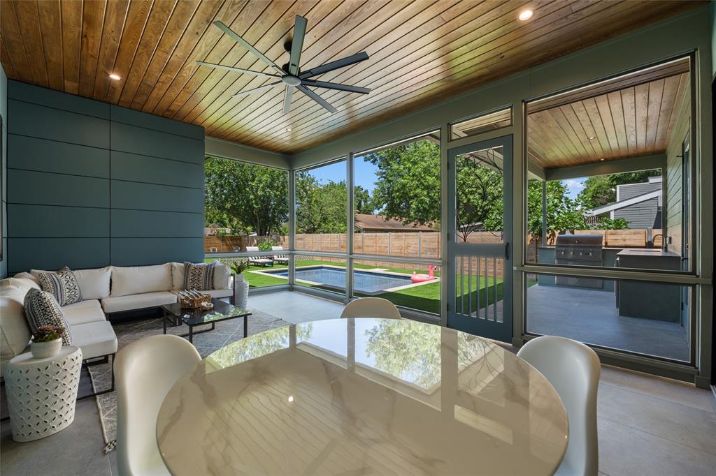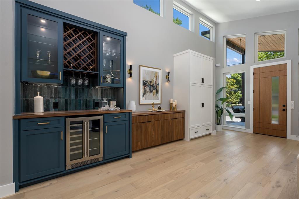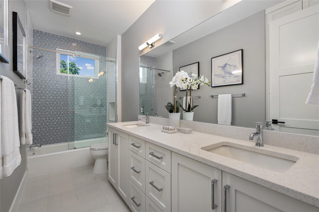 We invite you to another gorgeous Butlin Homes new build with a modern flair in popular Crestview. This neighborhood builder is well-known for their one-of-a-kind floor plans filled with loads of natural light, vaulted ceilings, abundant storage and meticulous attention to quality and detail. Enter into an expansive open floor plan starting in the relaxing living room with a natural gas fireplace, floating walnut shelves, built-in bar, and custom walnut buffet. The gourmet kitchen with high-end JennAir appliances invites you to sit at the 10 foot island for a quick bite or to share stories of the day. We're sure you'll enjoy the ample storage in the striking butler’s pantry. The dining room is illuminated by an elegant modern chandelier and 15 foot high clerestory windows. The main floor primary suite encourages you to relish in the total spa experience of a large walk-in shower, soaking tub, double vanity and designer fixtures. Main floor also provides a 2nd living room, office, laundry, powder bath, and 2-car garage with electric car outlet. Upstairs serves as a haven for kids or guests including 3 bedrooms, 2 full baths, and a flexible gameroom. Unwind with a glass of wine on the front porch swing enjoying the sunset and the soothing water feature. Or cheer on your favorite sports team & visit with friends on the large screened back patio any time of year while you cook up a storm in the well-appointed outdoor kitchen. Cool off in the sparkling pool on hot Texas days, or enjoy a warm heated swim on cool nights. The perfect place to embrace all that Central Austin has to offer: Burnet Road bars & restaurants, The Domain, Austin FC Stadium, and Downtown Austin. Convenient to neighborhood hot spots Fresh Plus Market, Little Deli, Stiles Switch BBQ, and Violet Crown Wine Bar.