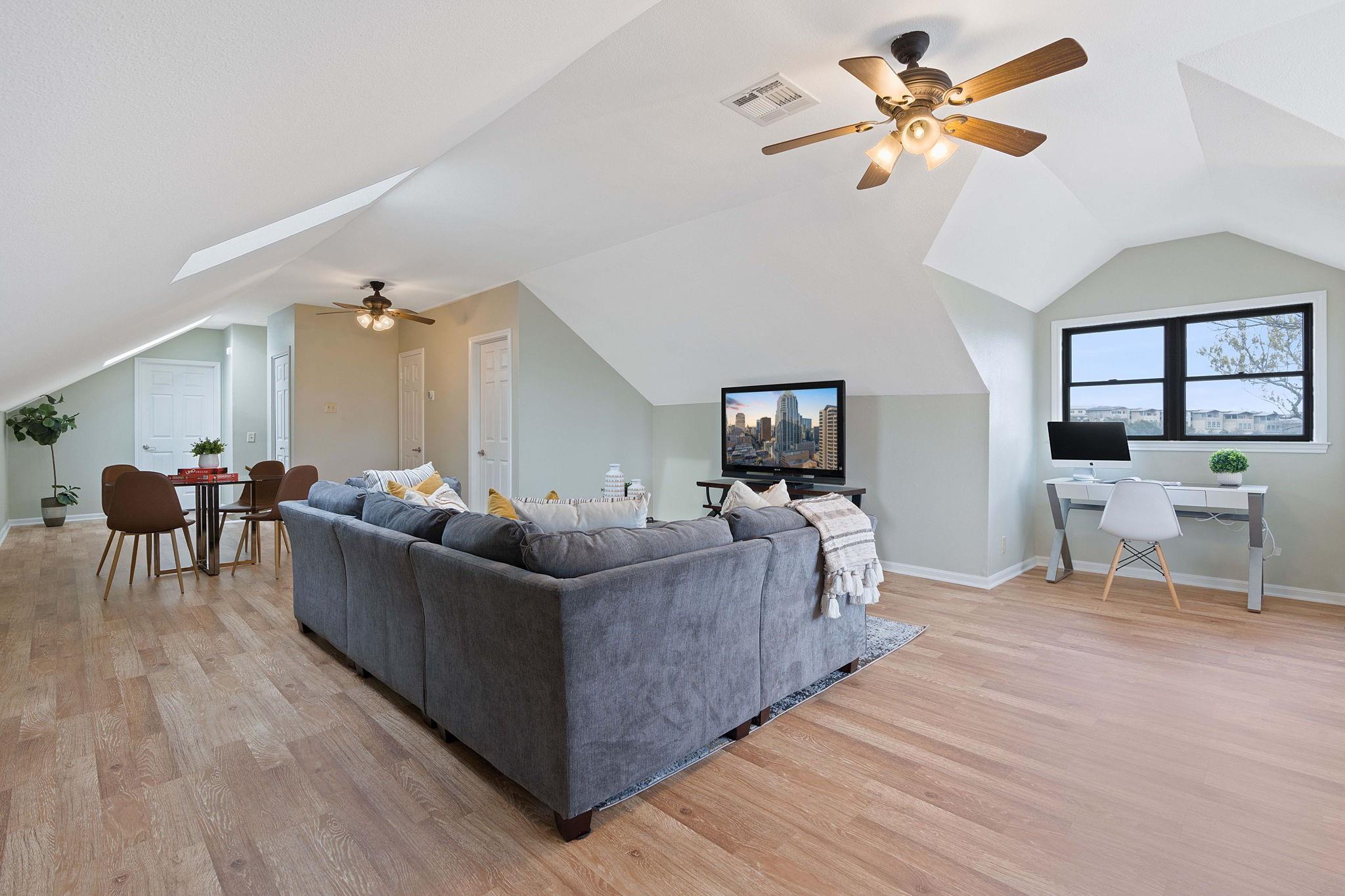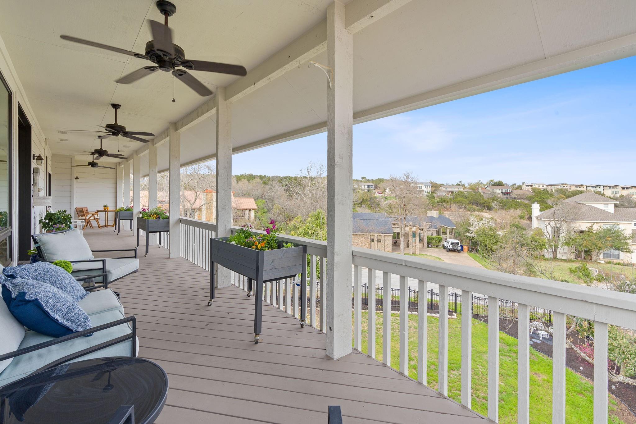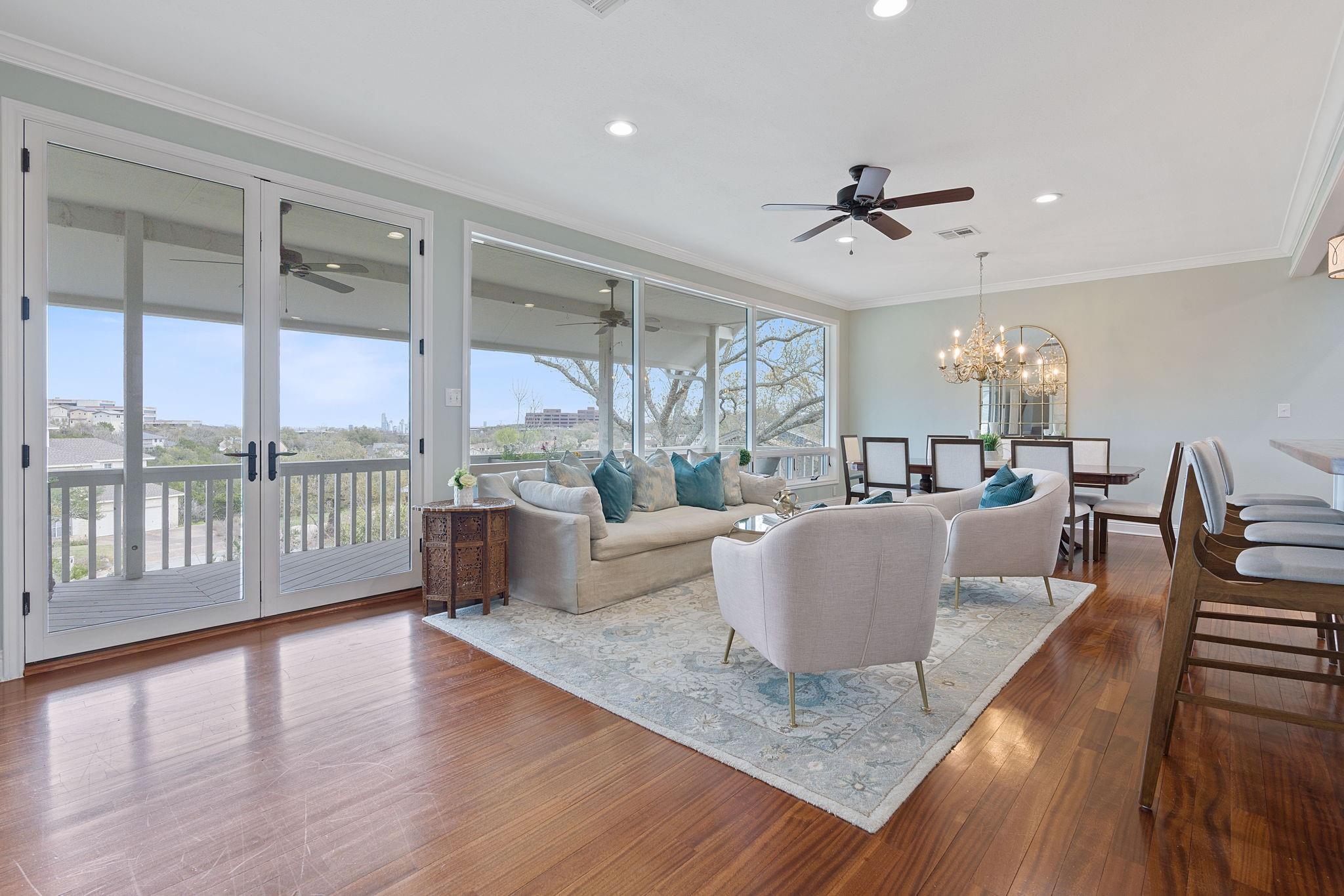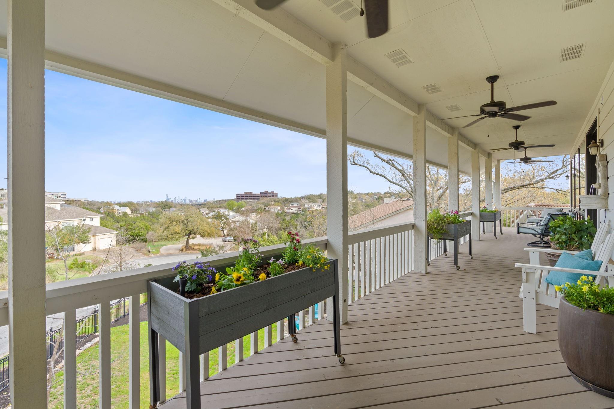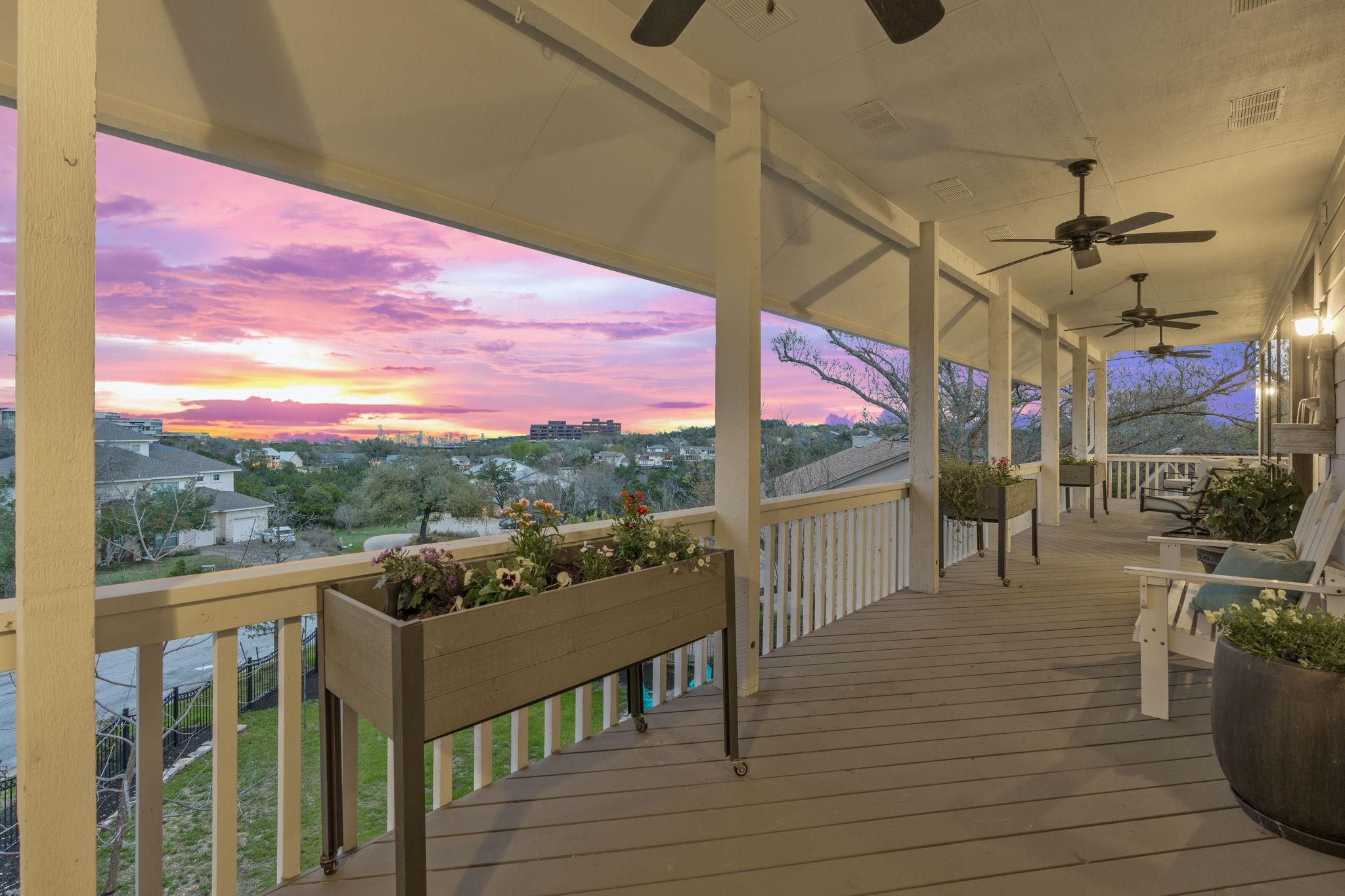 Enjoy one of the best downtown views in the highly sought after Lost Creek neighborhood! This stunning remodeled home boasts 5 bedrooms, 4 full bathrooms, 1 half bathroom, 3 large living areas, and a two-car garage located between two cul-de-sacs. Unwind on two expansive covered patios spanning both floors while taking in panoramic downtown views overlooking the large backyard with multiple entertainment spaces with potential for a pool. The home offers ample space for everyone with three separate living areas, complemented by the warmth of three gas-assisted wood-burning fireplaces. Appreciate the elegance of high ceilings adorned with crown molding throughout, adding a touch of sophistication. The remodeled kitchen seamlessly integrates the living and dining areas with large picture windows showcasing stunning downtown views, creating an ideal layout for entertaining. Additionally, the owners installed high-end appliances and quartz countertops to elevate the space. Further improvements include the installation of an HVAC system and tankless water heater. The first floor encompasses a large living area with fireplace, three bedrooms, and two full bathrooms all with fresh paint and wood floors. The third-floor also underwent renovations including popcorn ceiling removal, paint, and laminate wood floors. The recent bathroom remodel on the third floor includes beautiful tile floors, vanity sink, modern lighting, subway tile, and a spacious walk-in shower. The home's bedrooms and bathrooms are generously sized, with the owner's suite on the second/main level featuring high ceilings, a gas assisted wood-burning fireplace,French doors that open to the covered outdoor deck, and a large private en-suite bathroom with a double vanity, granite countertop, soaking jetted tub, walk-in shower and sizable walk-in closet. This residence is tailored for those who relish in the art of entertaining, the allure of outdoor spaces and the breathtaking views that define luxury living.