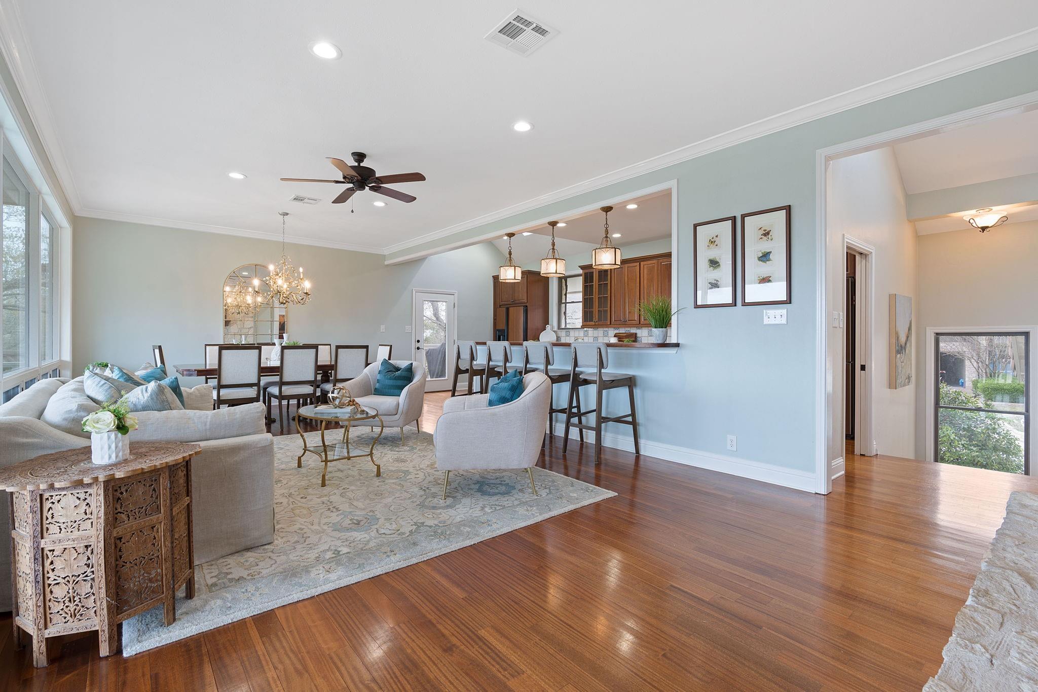 | Interior Features | Breakfast Bar, Ceiling Fan(s), High Ceilings, Chandelier, Granite Counters, Quartz Counters, Double Vanity, French Doors, Interior Steps, Multiple Dining Areas, Multiple Living Areas, Open Floorplan, Primary Bedroom on Main, Recessed Lighting, Soaking Tub, Two Primary Closets, Walk-In Closet(s) | |