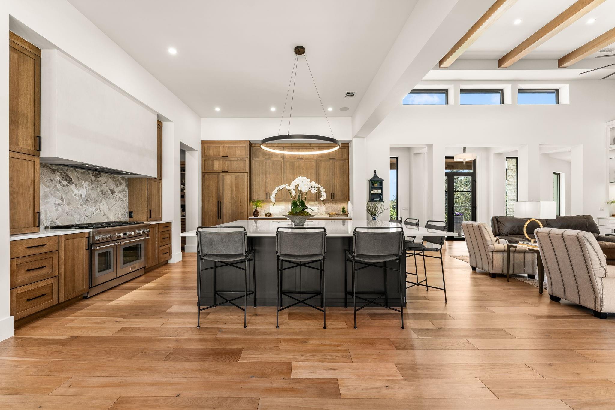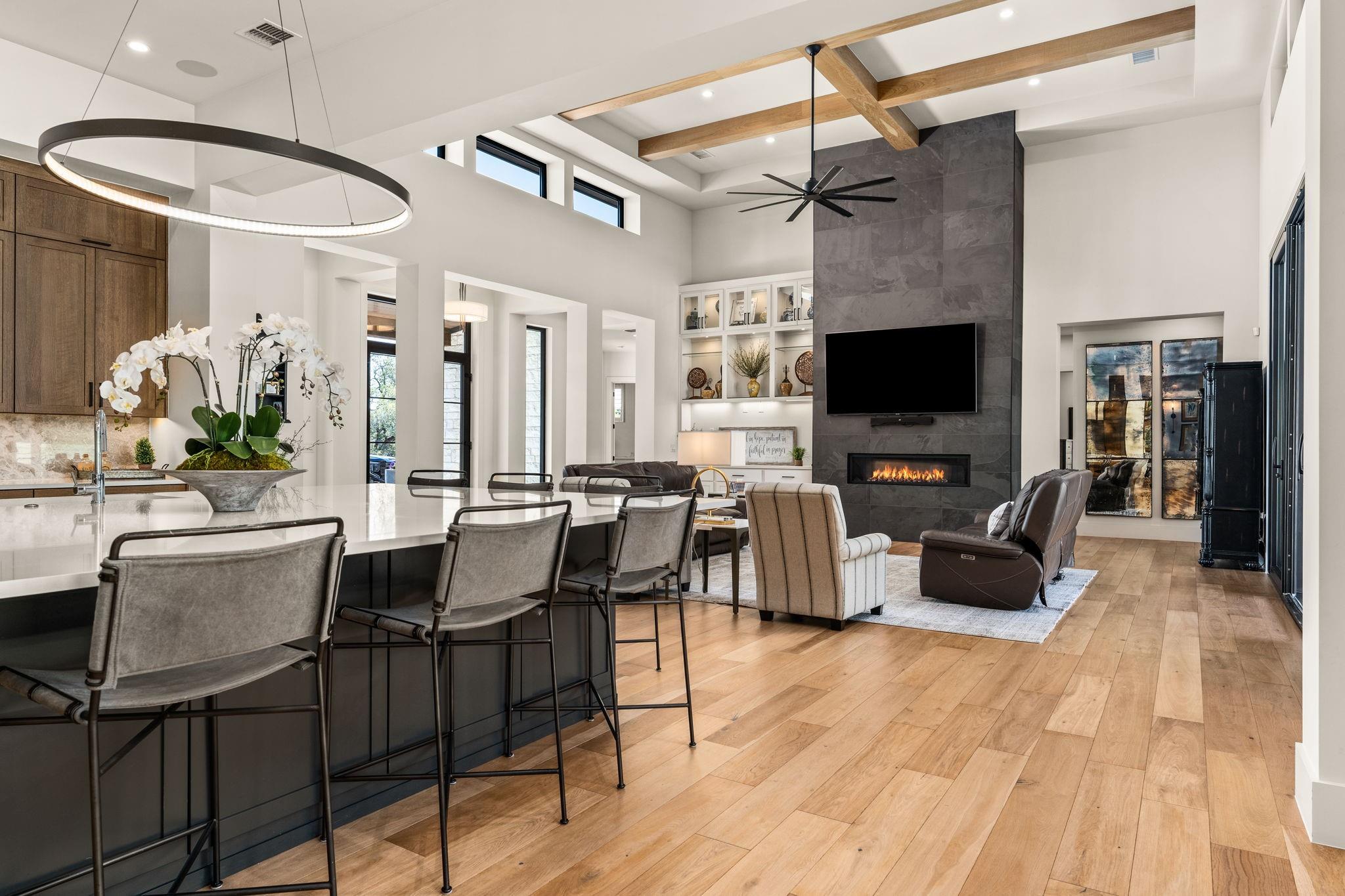 | Interior Features | Breakfast Bar, Built-in Features, Ceiling Fan(s), Beamed Ceilings, High Ceilings, Chandelier, Quartz Counters, Entrance Foyer, Kitchen Island, No Interior Steps, Open Floorplan, Pantry, Primary Bedroom on Main, Recessed Lighting, Walk-In Closet(s), Wet Bar, Wired for Sound | |