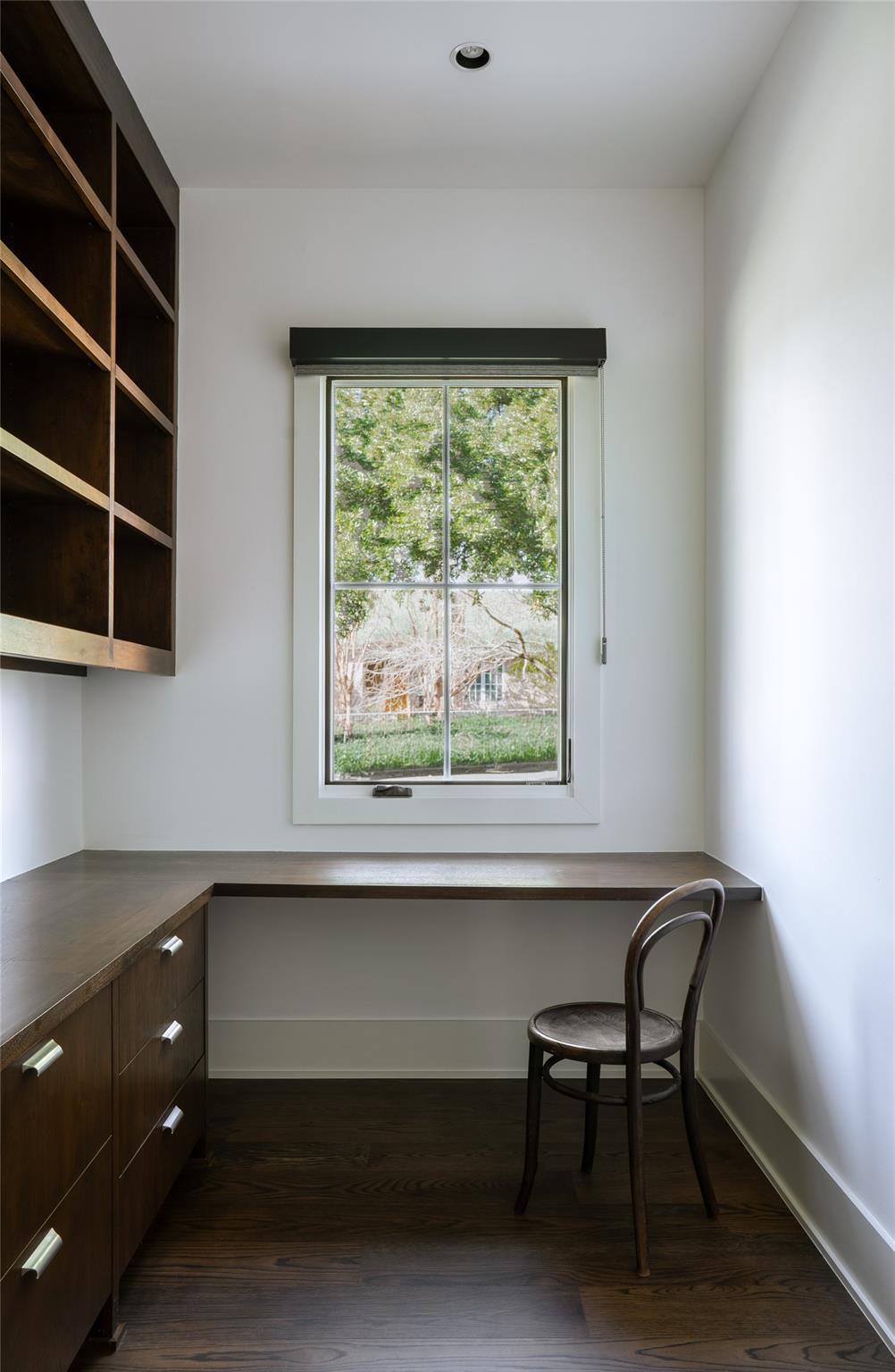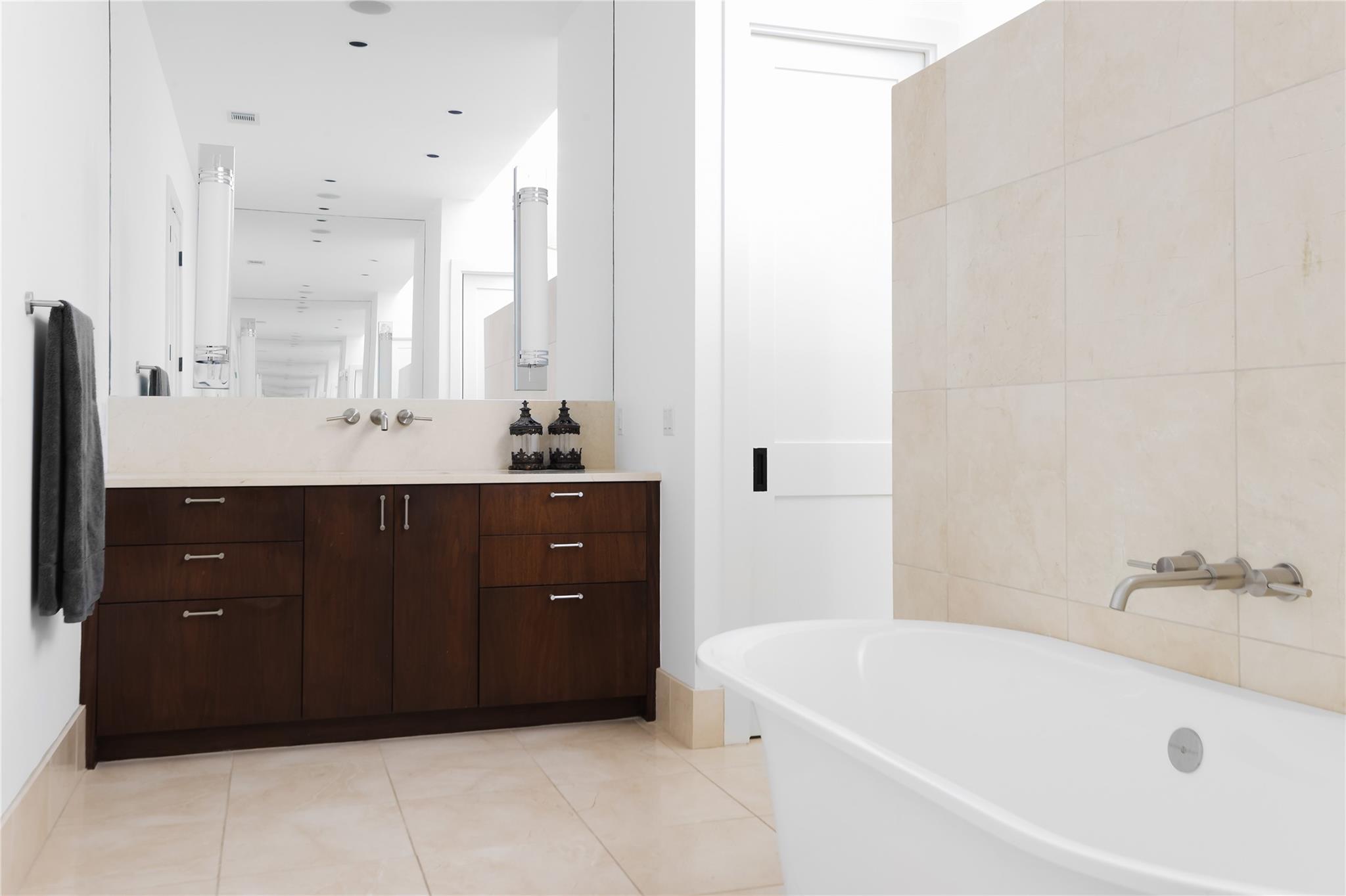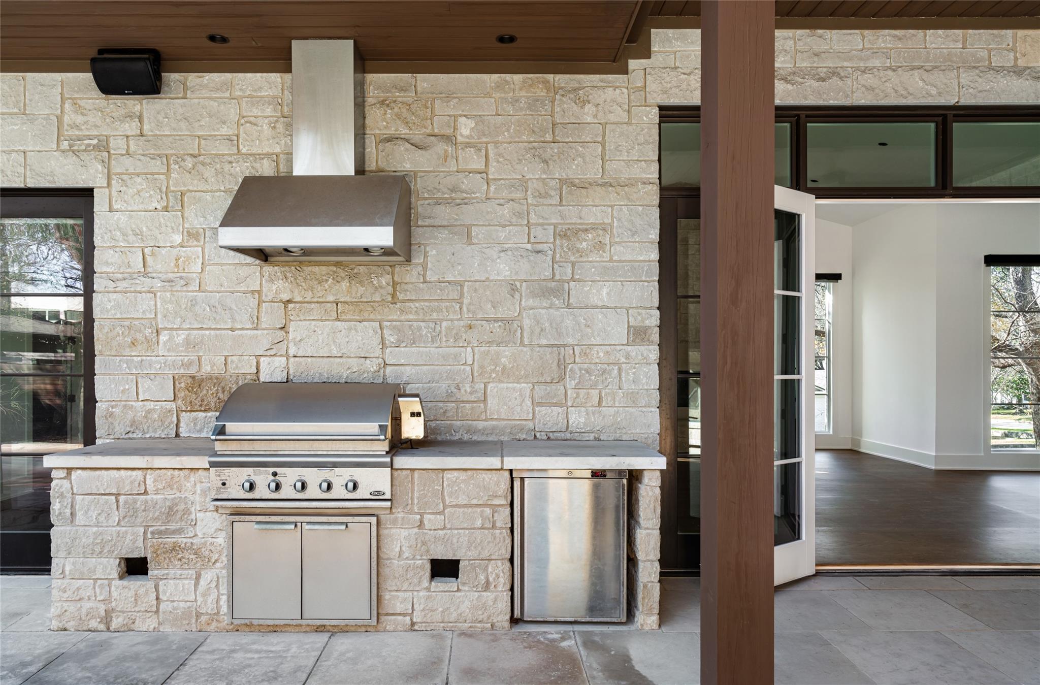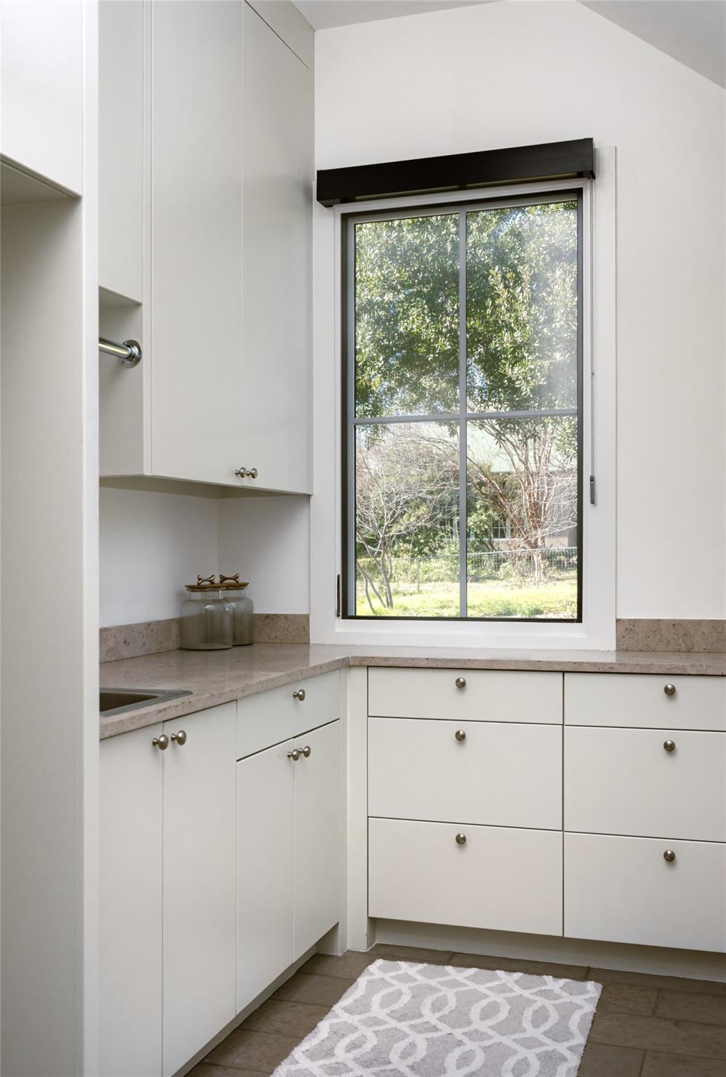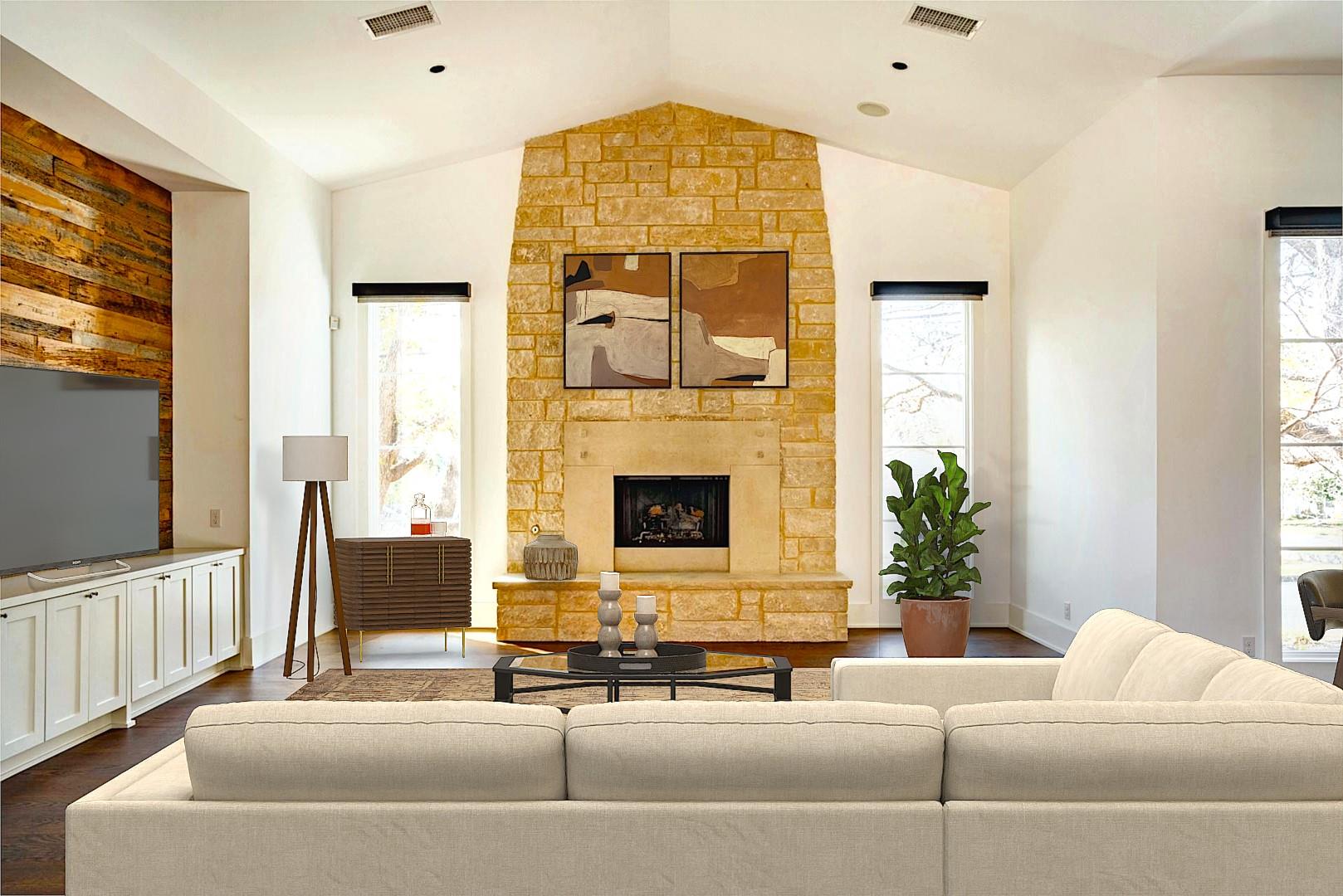 Sophisticated contemporary in ultra-convenient Tarrytown, one of Austin’s most desirable neighborhoods. This established enclave is filled with shady, walkable streets hosting beautiful homes; a quaint neighborhood shopping center is just a few blocks away as is Lions Municipal Golf Course. While the environment is quiet and serene, you can be downtown in less than 10 minutes without getting on the highway. Set on a large corner lot shaded with mature pecan and oak trees, this property enjoys a very private backyard where you will find yourself enjoying dinner on the patio, a fire on cool evenings or splashing in the pool. A large, level lawn provides plenty of space to run and play. The stone-clad home is a warm and modern with the rockwork continuing inside to add texture and depth to the rich wide-plank oak floors, limestone fireplace and fresh white walls. A cozy formal living area or executive office space at the front of the house features a hidden desk area making the space multi-functional. A convenient bar welcomes you to the main living area which is bracketed by large windows looking out over the side lawn and the covered terrace. The bright gourmet kitchen centers the living/entertaining space and allows the cook to be part of the fun while preparing. The flowing layout provides plenty of space for entertaining and encourages guests to enjoy indoor and outdoor spaces. The main-floor primary suite is set privately towards the back of the house and enjoys a sleek, skylit bath with soaking tub and large walk-through shower – two walk-in closets provide a place for everything. The main floor also features an en-suite guest room that has direct access to the back yard. Upstairs, two additional bedrooms surround a game room perfect for movie night or kid’s entertaining. Additional amenities include a second office/planning area and a large utility/laundry with sink.
