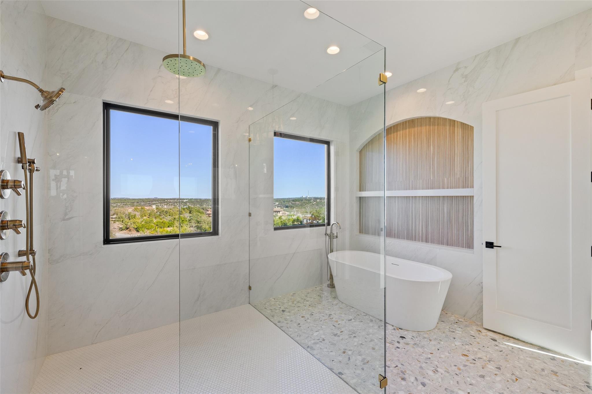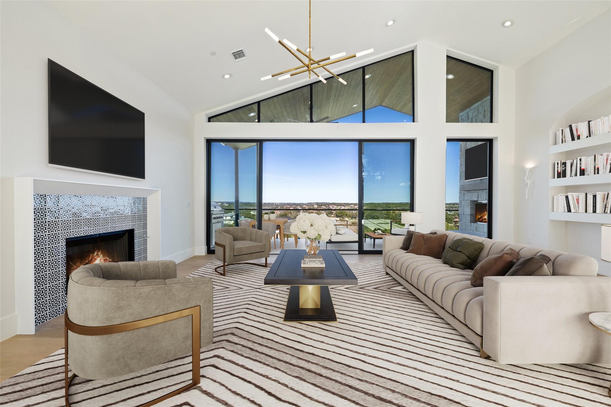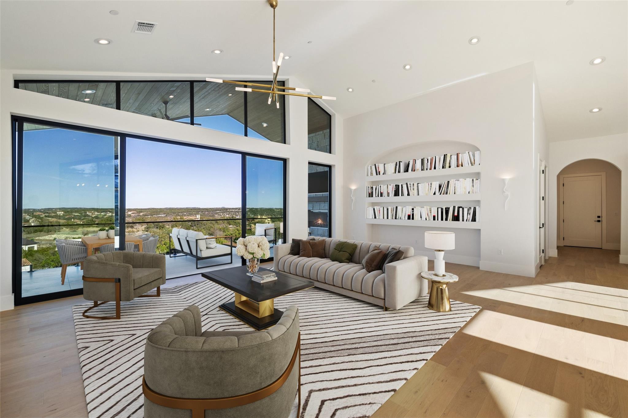 Situated on one of the highest points in the exclusive community of Spanish Oaks, this brand new construction home embodies life at the top. The coveted single story floor plan features 5 bedrooms, 5 bathrooms, game room, exercise room and a centrally focused kitchen/living/dining. The opulent primary suite is as spacious as well as functional and provides a welcome respite. From the oversized outdoor living space you’ll come to find why the view steals the show as downtown Austin and 180 degree views of the Hill Country take center stage. The Spanish Oaks neighborhood offers 24/7 manned gate Security, Private Spanish Oaks Golf Club/Course, Miles of Hike and Bike Trails, a fully stocked Fish Camp and Community Pool Pavilion. In addition to community amenities, Spanish Oaks is located in the Lake Travis ISD. Several private school options are within 10 miles of the community gates, as well.