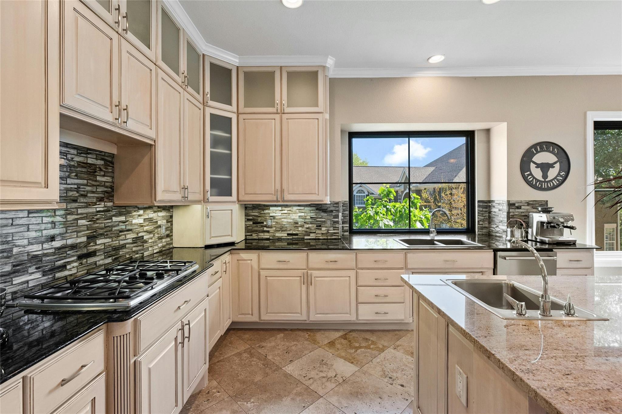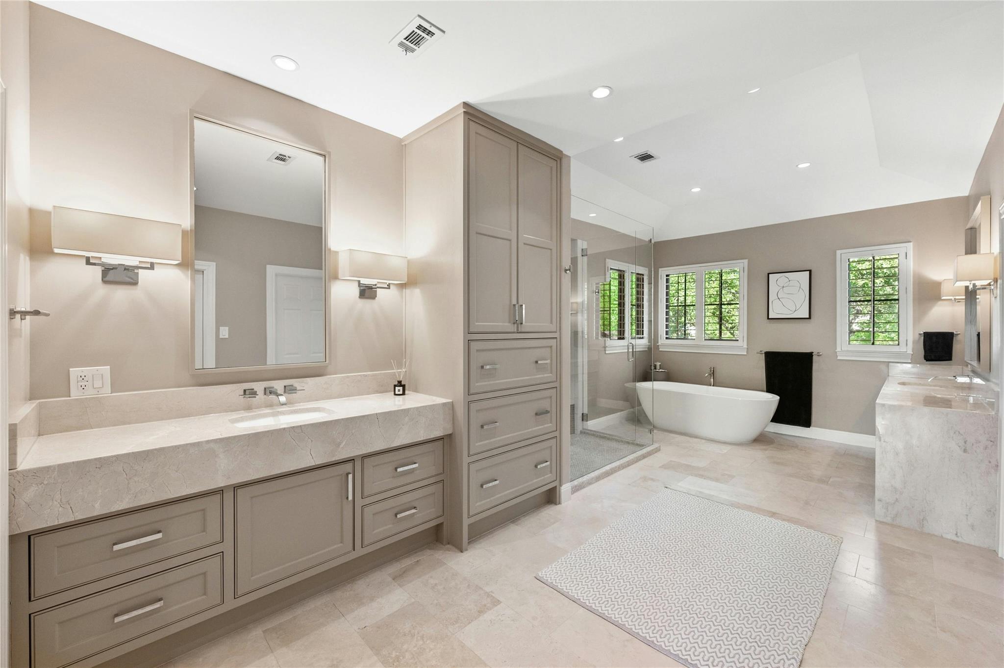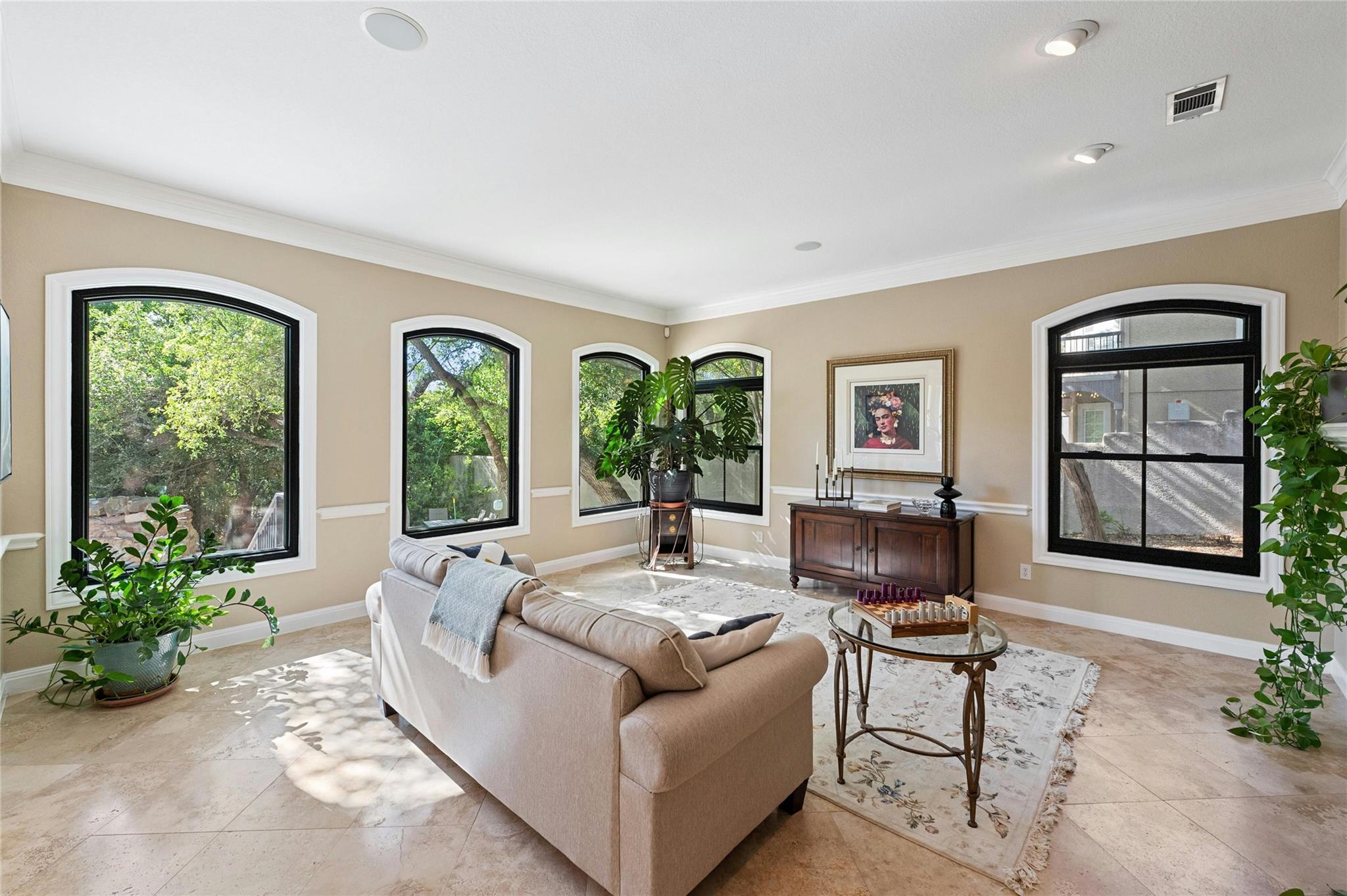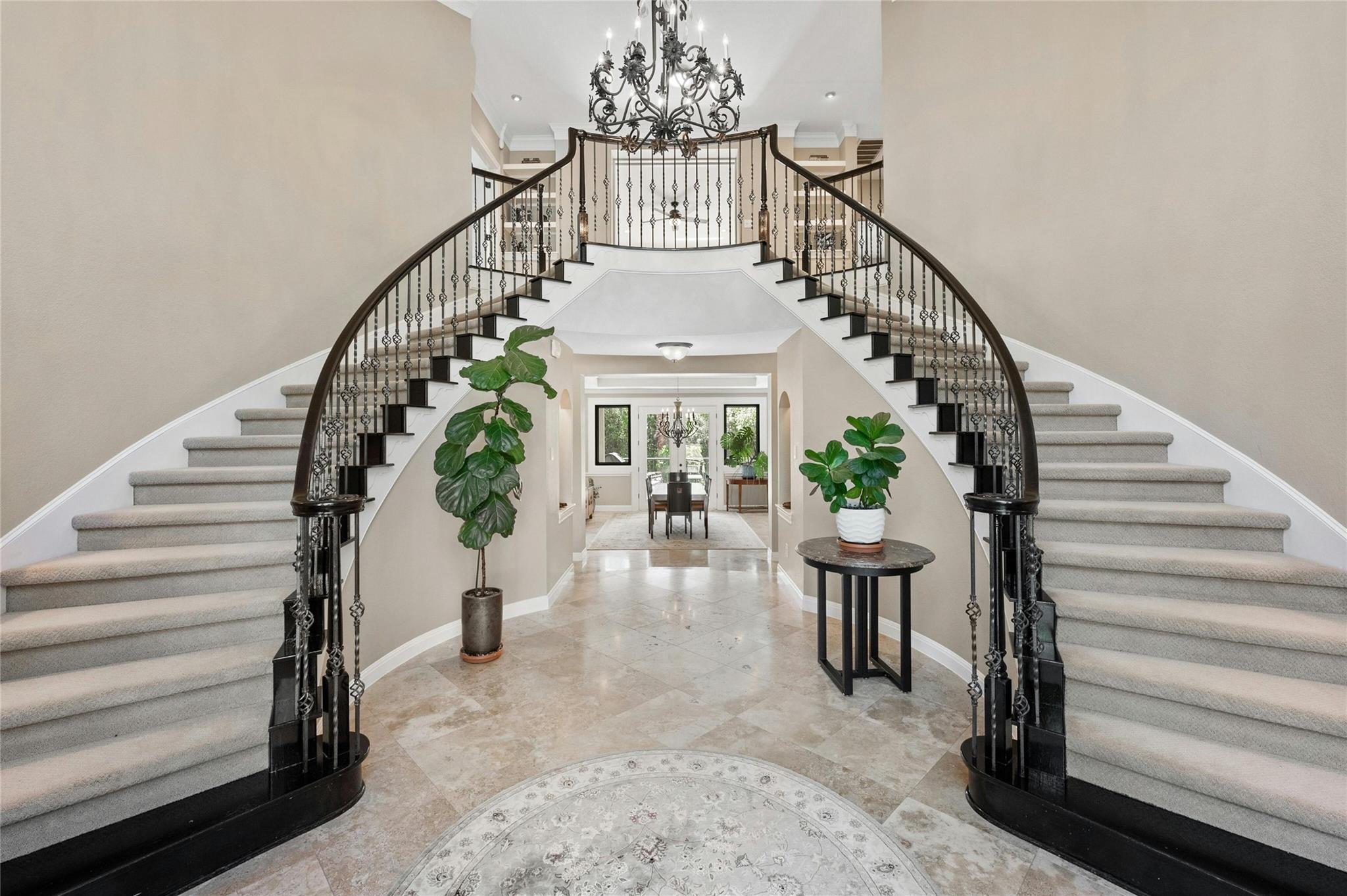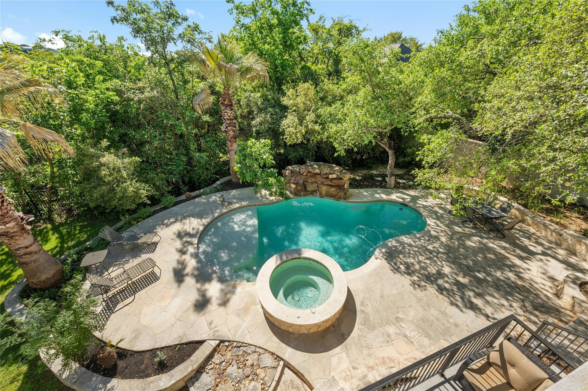 You must see this stunning Westlake home in a private, gated community! From the moment you walk up, it's obvious this home was built with elegance in mind. You're greeted with ornate metal doors which open up to dual, curved entry stairs that frame the formal dining room and greenbelt oasis back yard. This home features natural stone flooring throughout the downstairs, two large living rooms (each with a gas fireplace), a gourmet kitchen with granite counters, dual ovens, and a gas cooktop. There are 4 bedrooms up, starting with the massive primary retreat with space for a workout area or just an additional private living area. The upstairs also includes a media room w/attached balcony overlooking the pool, as well as 3 secondary bedrooms. Downstairs you'll also find a sizable guest room with ensuite as well as an executive office. The 2, 2 car garages offer room for the auto collector and the back yard is built for entertaining with a pool, hot tub, outdoor dining and yard! Additional Key Info Includes: -Tesla Universal wall charger in left garage -Whole house HD DITEK Surge Protector -HVAC's replaced in 2019 -Tankless Water Heater's added in 2020 -Replaced all windows to Anderson dual-pane SmartSun Tempered with Argon 2022 -Replaced pool equipment. Pump, filter, added wifi capable controls with internet connectivity. 2022 -Replaced Tile on Patio and Balcony 2024 -Replaced kitchen dishwasher and garbage disposal -Recent interior paint -Security gate w camera -Cul-de-sac home -Direct greenbelt access/backs to greenbelt -Pool with sun shelf and water fall feature -Hot tub