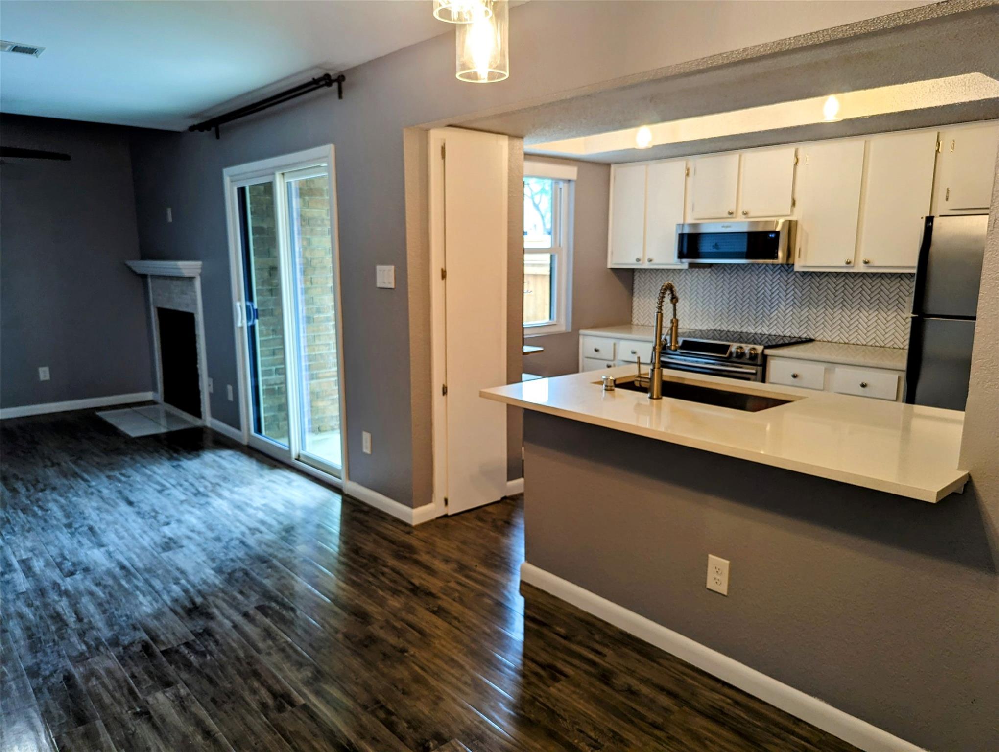 Discover this charming townhouse-style condo in a private gated community in the heart of Austin. With easy access to major highways and close proximity to downtown, the Domain, Austin FC soccer stadium, entertainment venues, restaurants, and premier shopping destinations, this condo offers convenience and comfort. The open floor plan features a cozy fireplace, hardwood flooring, and abundant natural light. The kitchen boasts granite countertops and ample storage. Step outside to the covered patio, surrounded by majestic oak trees and a cedar wood fence for privacy. Upstairs, you'll find two bedrooms, including a primary suite with a walk-in closet and custom lighted shoe storage/display. Enjoy the community pool and two dedicated parking spaces. This condo is ideal for students, professionals, and families seeking a convenient and comfortable residence in Austin.