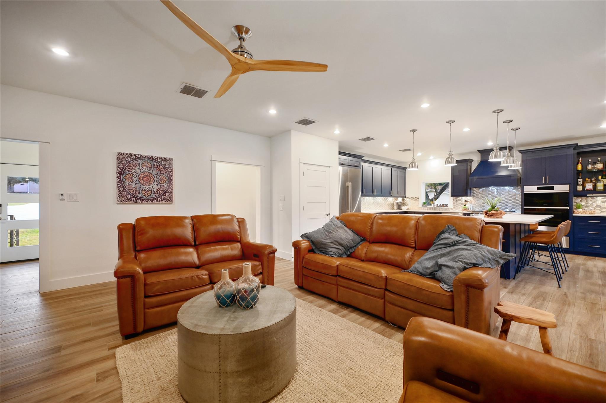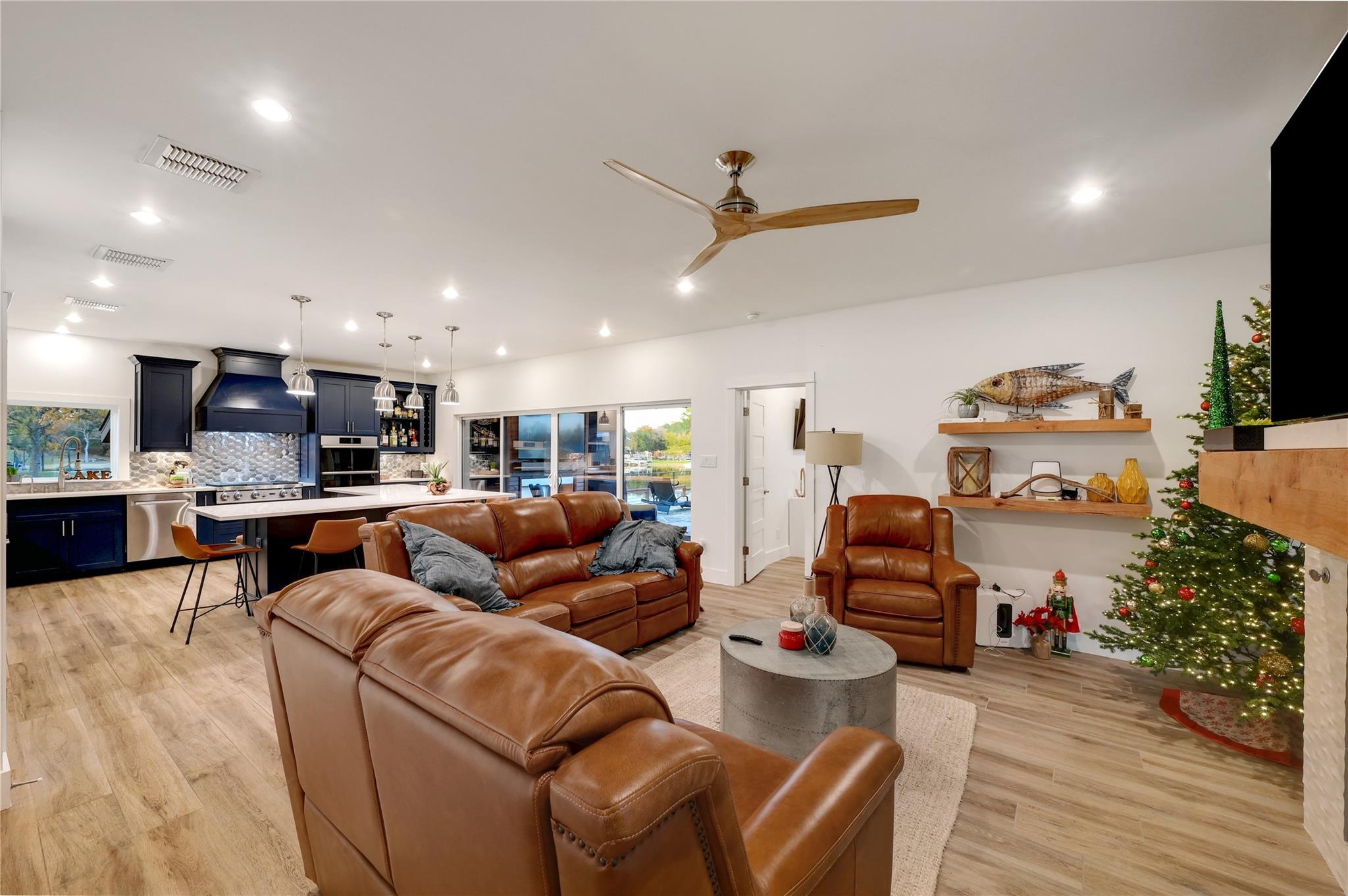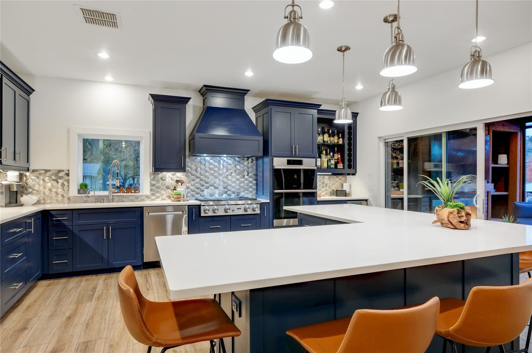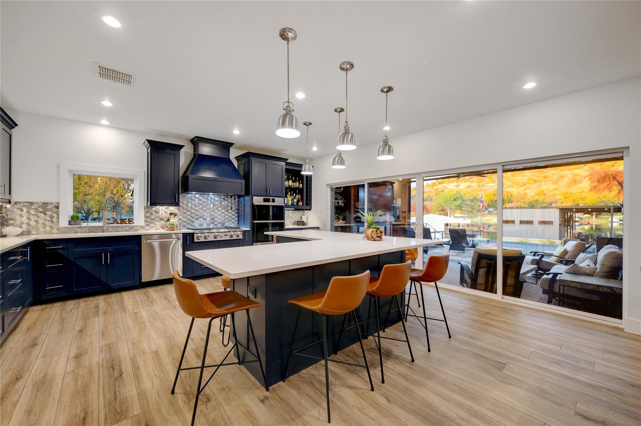Luxurious Lakefront Getaway in Sunrise Beach! Check out this freshly remodeled 3 bedroom, 2 bath plus office which was taken down to the studs and completely rebuilt from the foundation up. All single-story, very open floor plan with up-to-date finishes including a gorgeous kitchen with gas cook top, double oven and large eat-at center island with beautiful views out to the back yard and pool. Cozy living room with fireplace plus 3 spacious bedrooms, a large office / flex space and two bathrooms including the beautiful master en-suite with double vanity and walk-in shower. Step outside to the covered back porch out to the outdoor living room with fireplace and TV overlooking the newly built swimming pool. Firepits set the tone at night and provide the perfect ambiance for lake life! Don't miss the full outdoor kitchen on the side of the home where you will enjoy grilling out with friends and family all year around. Steel-constructed boat dock with huge tack room, oversized boat slip plus potential for a second boat slip or use as-is for wave runners. Lots of outdoor seating area space on the dock as well. This east-facing lot is set back in a very desirable, large cove to protect against rough boat traffic and provide the ideal spot to fish, paddleboard and swim. This builder-owned Lake House has everything you could want or need and is move-in ready for the discerning buyer. Qualified prospects reach out to learn more or to schedule your private tour today.