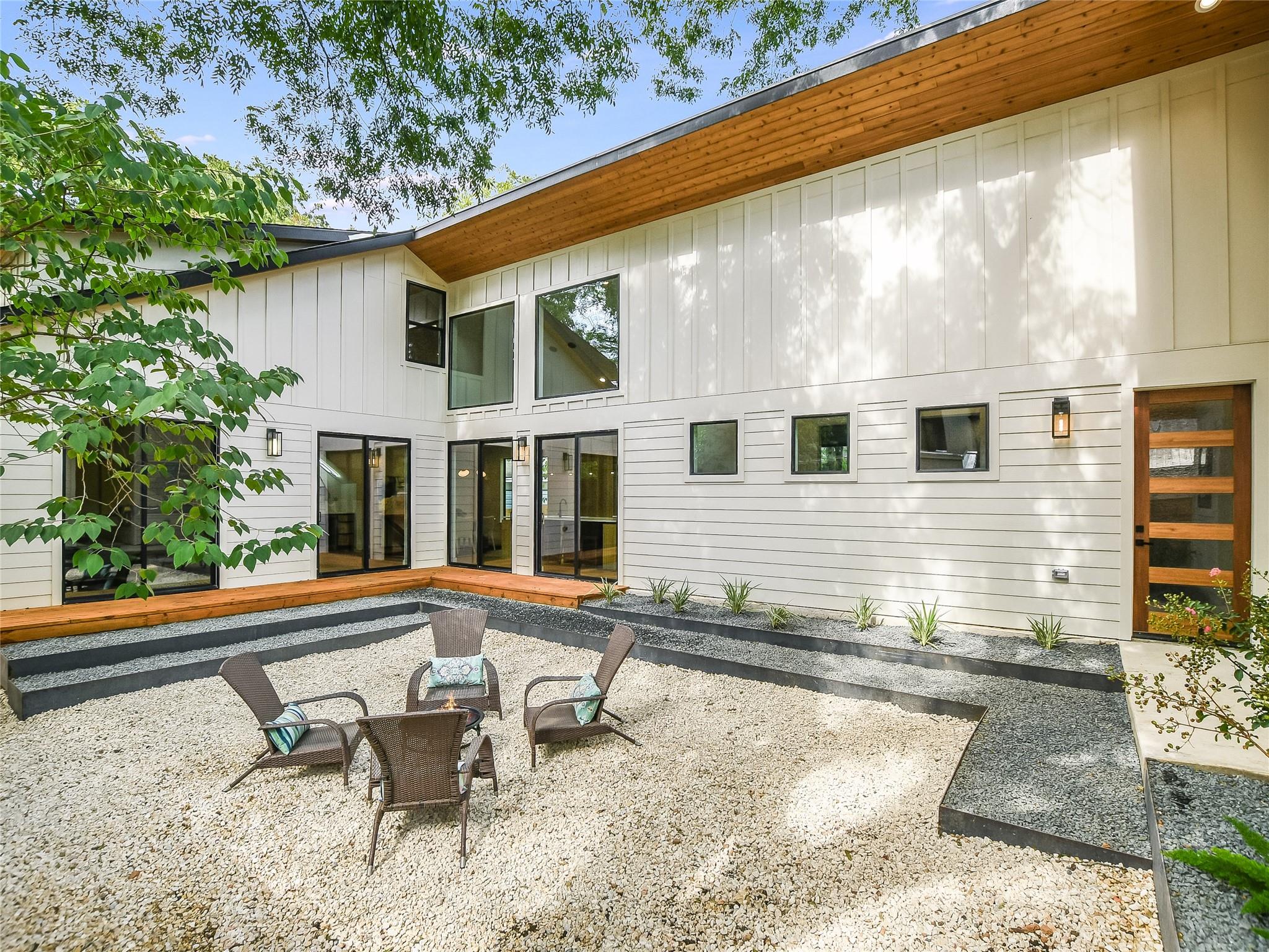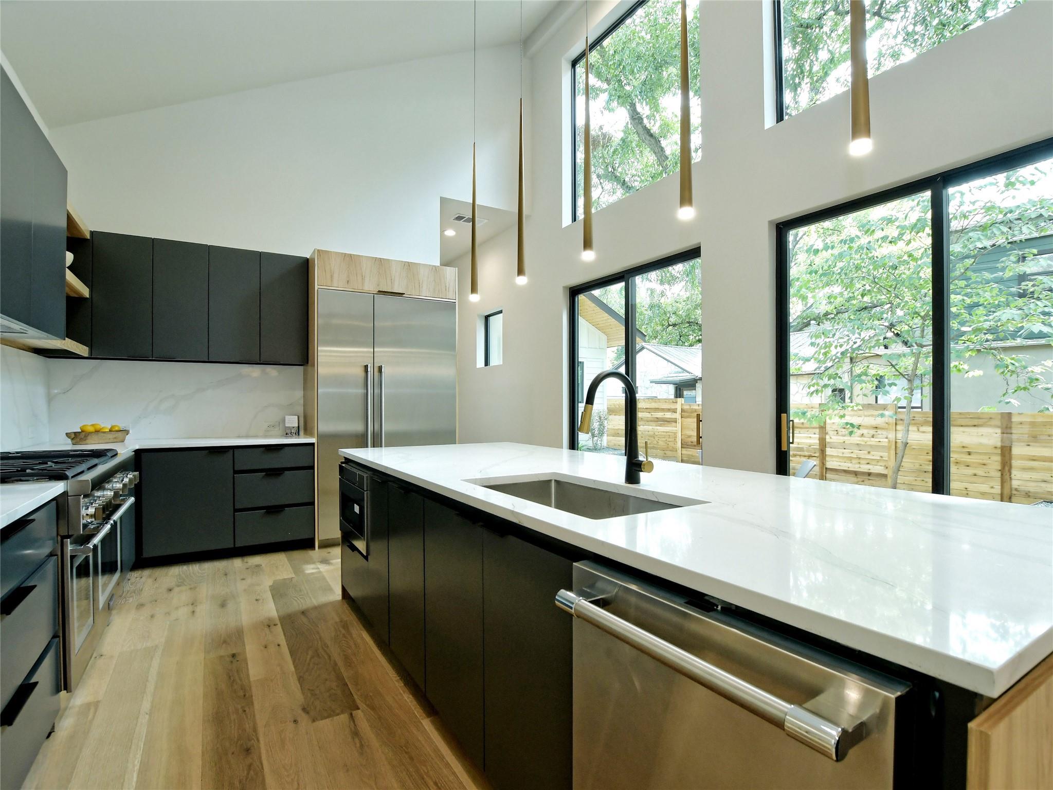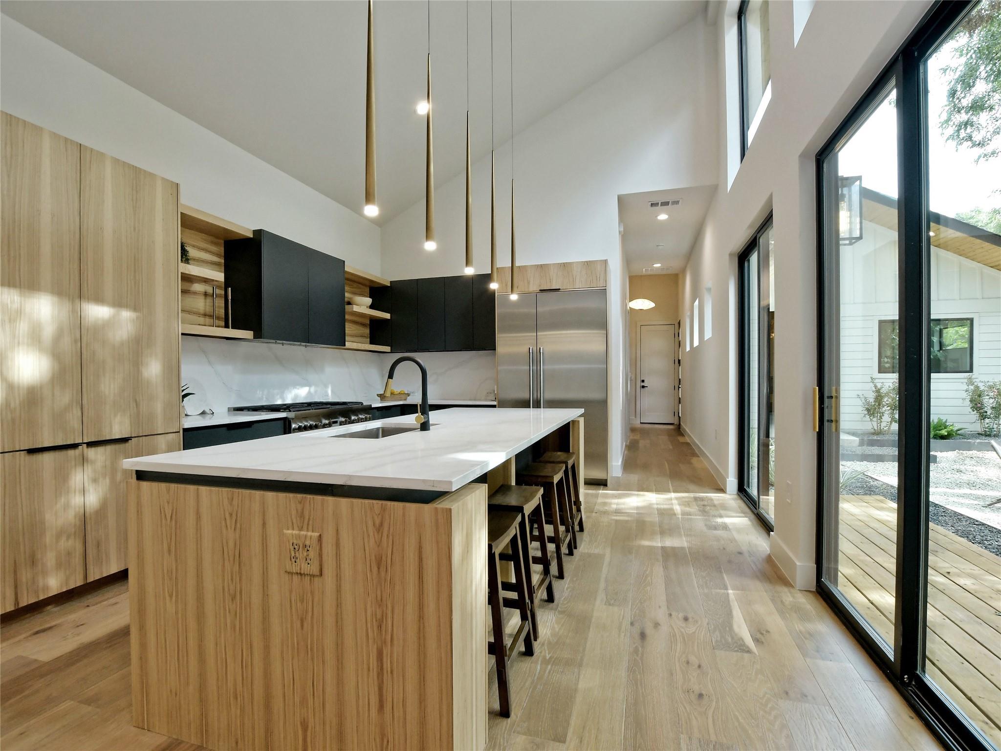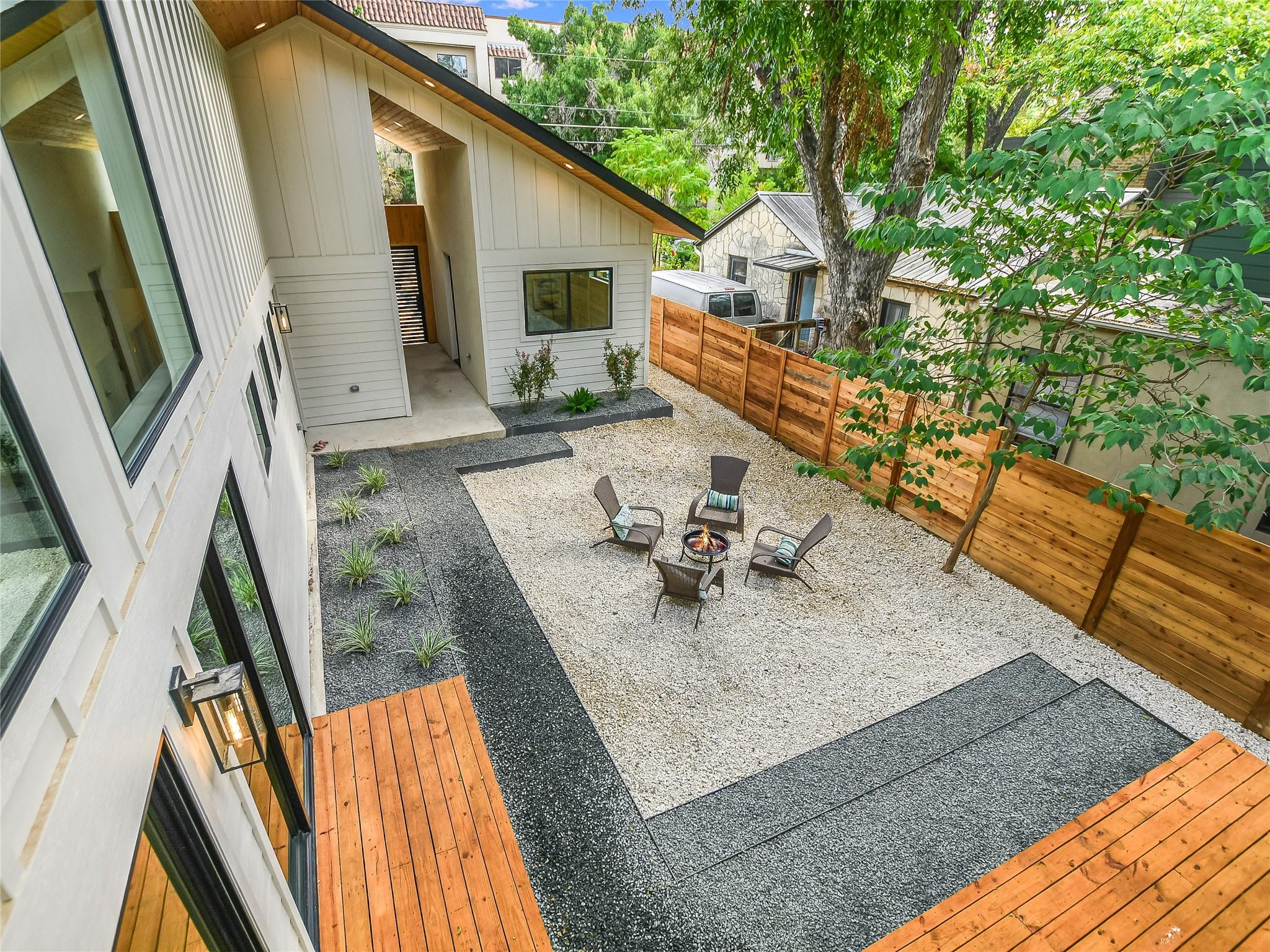 This newly built spacious urban oasis epitomizes privacy & a seamless connection to the outdoors. Enter through a custom iron gate & you're greeted by a private courtyard enveloped by the main house & charming casita. Main house is 2729 sq.ft. 4bed/4bath & Casita is 231 sq.ft. with full bath, walk-in closet & towering ceilings. The home itself is a masterpiece of design optimizing every square foot for both functionality & comfort. The chef's kitchen stands out w/high-end Thermador appliances, exquisite custom cabinets, sumptuous lighting & expansive island. Flowing effortlessly into the dining & living areas, this space creates an inviting hub for family& friends to gather. 4 sliding glass doors not only frame picturesque courtyard views but also flood the rooms w/natural light. The first-floor owner's suite offers a private sanctuary w/sliding glass doors to the backyard. Featuring custom walnut vanities, a Roman bath & a spacious walk-in closet, it adds a touch of luxury to daily life. On the same floor, you'll discover a versatile office/bedroom w/frosted glass pocket door & high ceilings. An adjacent full bath complements this space w/walk-in shower, dramatic wallpaper, & chic lighting. Ascending the stairs, a second living area awaits, complete with a skylight that frames nature views, creating a tranquil & peaceful atmosphere. Additionally, two generous bedrooms each w/ private bathrooms & walk-in closets are upstairs. The separate casita, boasting its own entrance, a full bath, & walk-in closet, offers a versatile living space ideal for guests, home office, etc. With its luxurious features, spacious layout & unwavering attention to detail, this home sets the stage for comfortable & stylish living in one of Austin's most coveted neighborhoods. Located just steps away from Ramsey Park w/playgrounds, tennis, basketball & pool! Within walking distance to restaurants, coffee shops & Central Market, this property offers a lifestyle that's both serene & vibrant.