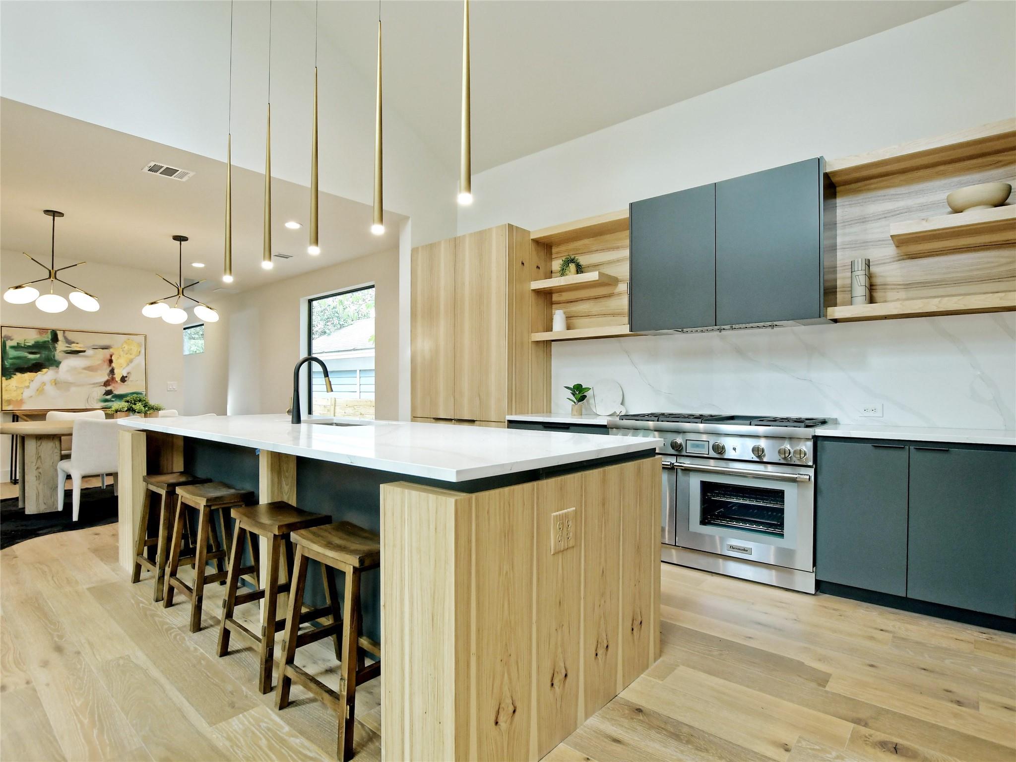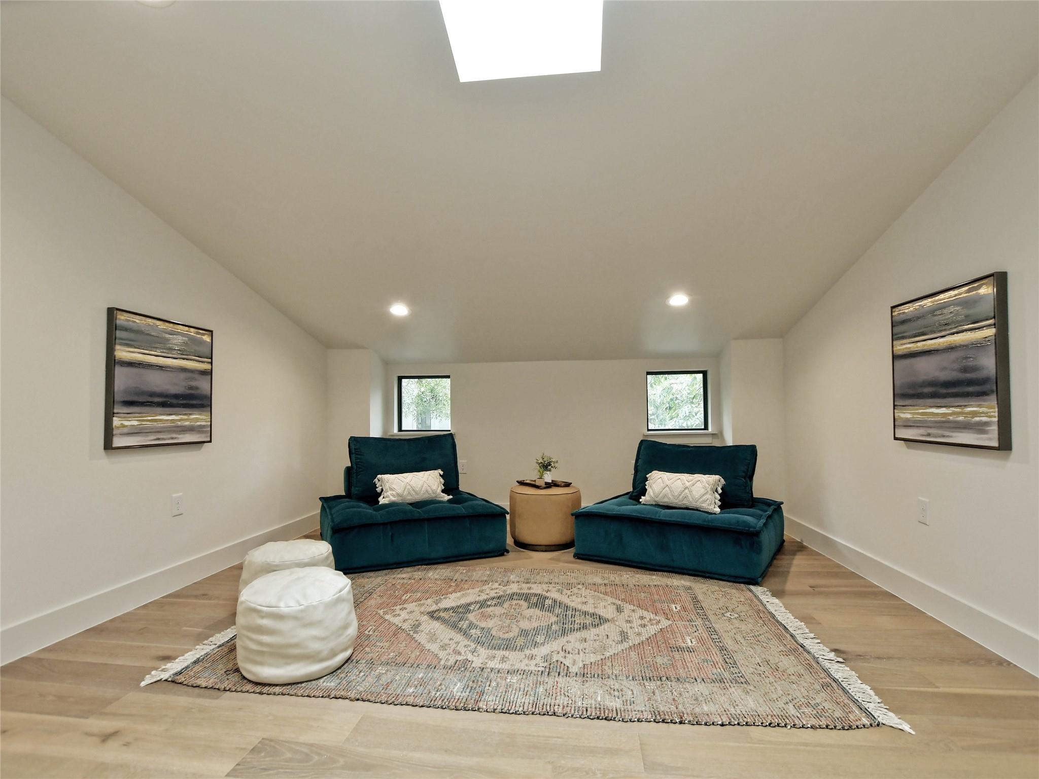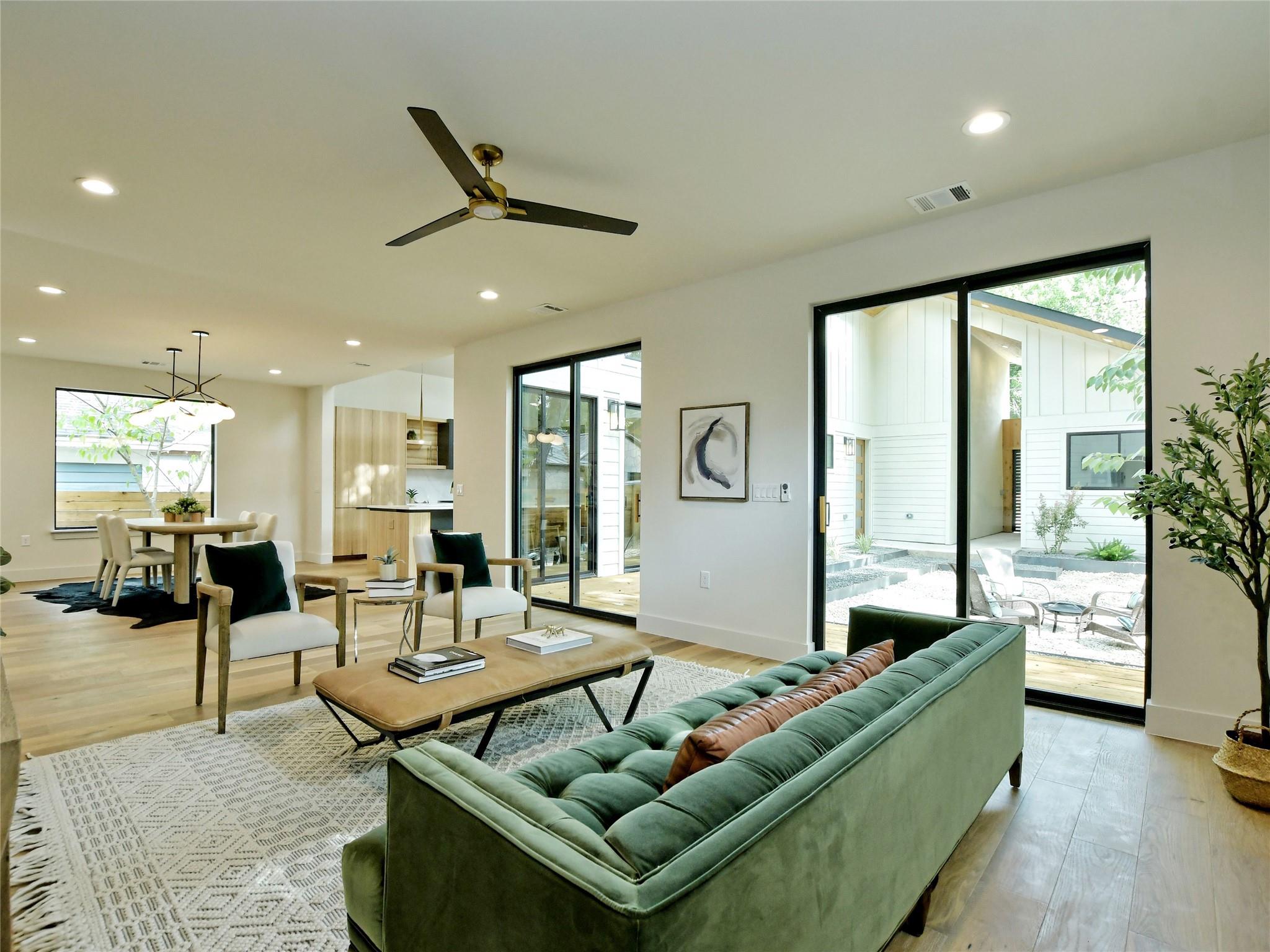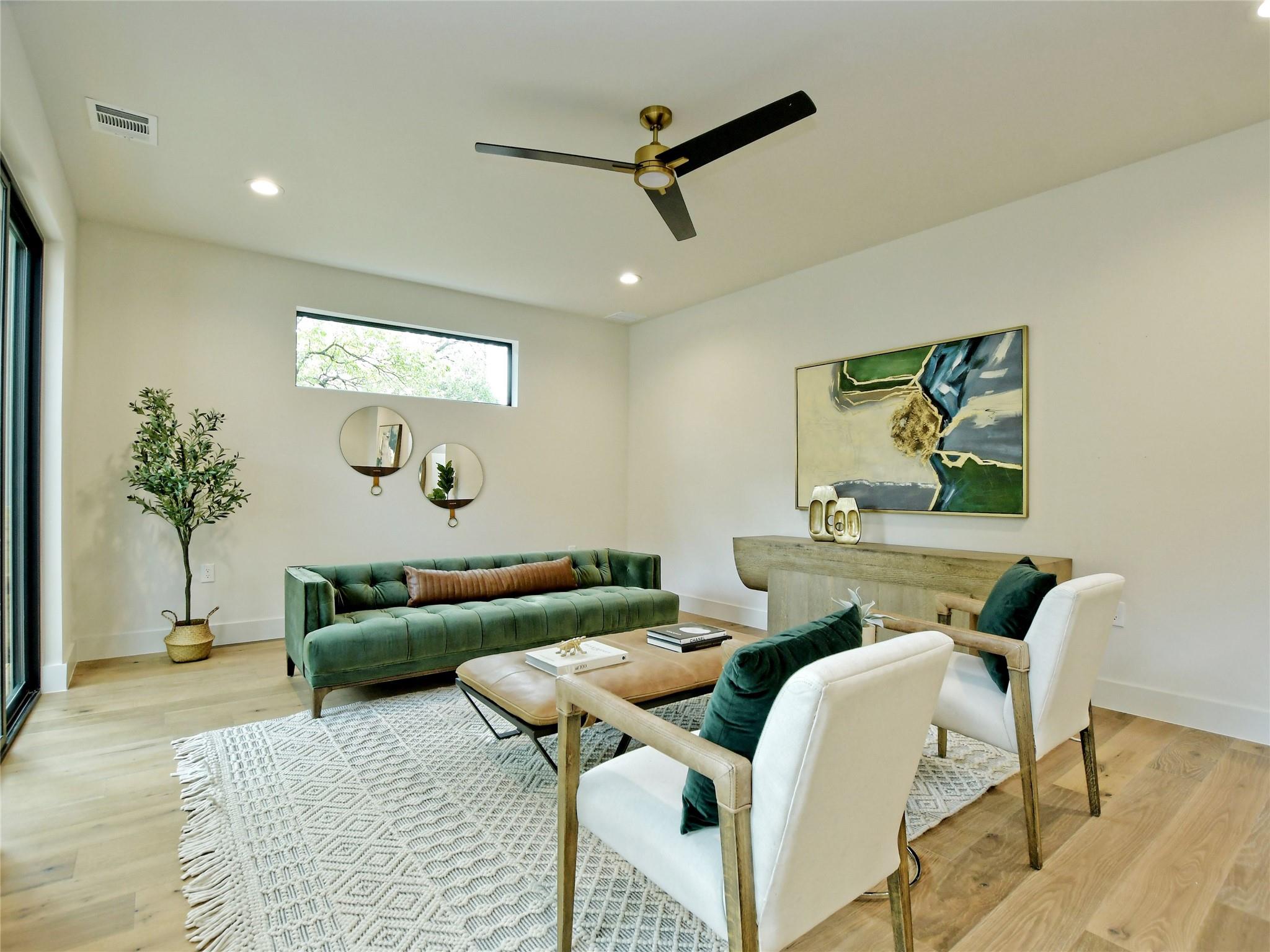This newly built spacious urban oasis epitomizes privacy & a seamless connection to the outdoors. Enter through a custom iron gate & you're greeted by a private courtyard enveloped by the main house & charming casita. Main house is 2729 sq.ft. 4bed/4bath & Casita is 231 sq.ft. with full bath, walk-in closet & towering ceilings. The home itself is a masterpiece of design optimizing every square foot for both functionality & comfort. The chef's kitchen stands out w/high-end Thermador appliances, exquisite custom cabinets, sumptuous lighting & expansive island. Flowing effortlessly into the dining & living areas, this space creates an inviting hub for family& friends to gather. 4 sliding glass doors not only frame picturesque courtyard views but also flood the rooms w/natural light. The first-floor owner's suite offers a private sanctuary w/sliding glass doors to the backyard. Featuring custom walnut vanities, a Roman bath & a spacious walk-in closet, it adds a touch of luxury to daily life. On the same floor, you'll discover a versatile office/bedroom w/frosted glass pocket door & high ceilings. An adjacent full bath complements this space w/walk-in shower, dramatic wallpaper, & chic lighting. Ascending the stairs, a second living area awaits, complete with a skylight that frames nature views, creating a tranquil & peaceful atmosphere. Additionally, two generous bedrooms each w/ private bathrooms & walk-in closets are upstairs. The separate casita, boasting its own entrance, a full bath, & walk-in closet, offers a versatile living space ideal for guests, home office, etc. With its luxurious features, spacious layout & unwavering attention to detail, this home sets the stage for comfortable & stylish living in one of Austin's most coveted neighborhoods. Located just steps away from Ramsey Park w/playgrounds, tennis, basketball & pool! Within walking distance to restaurants, coffee shops & Central Market, this property offers a lifestyle that's both serene & vibrant.
