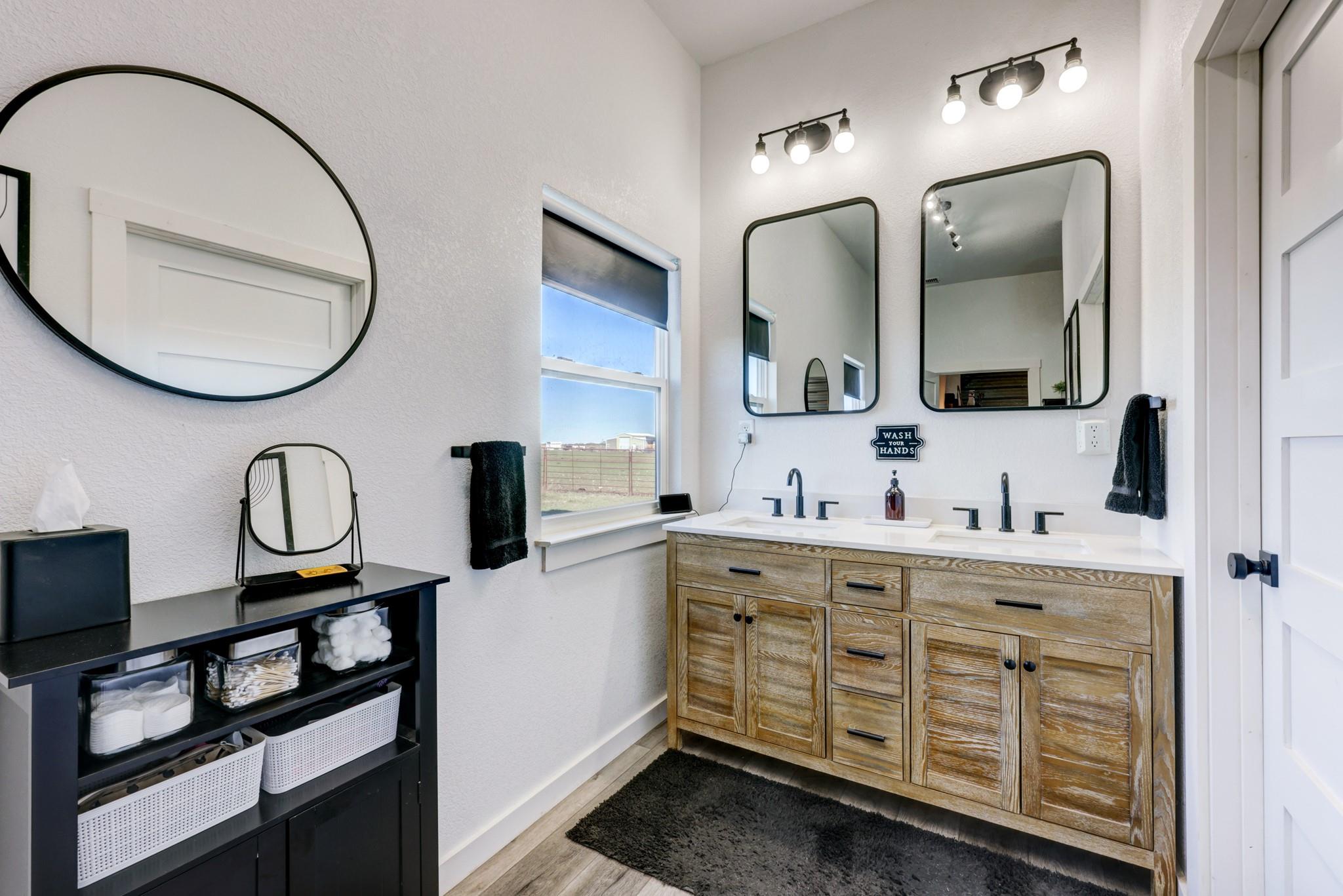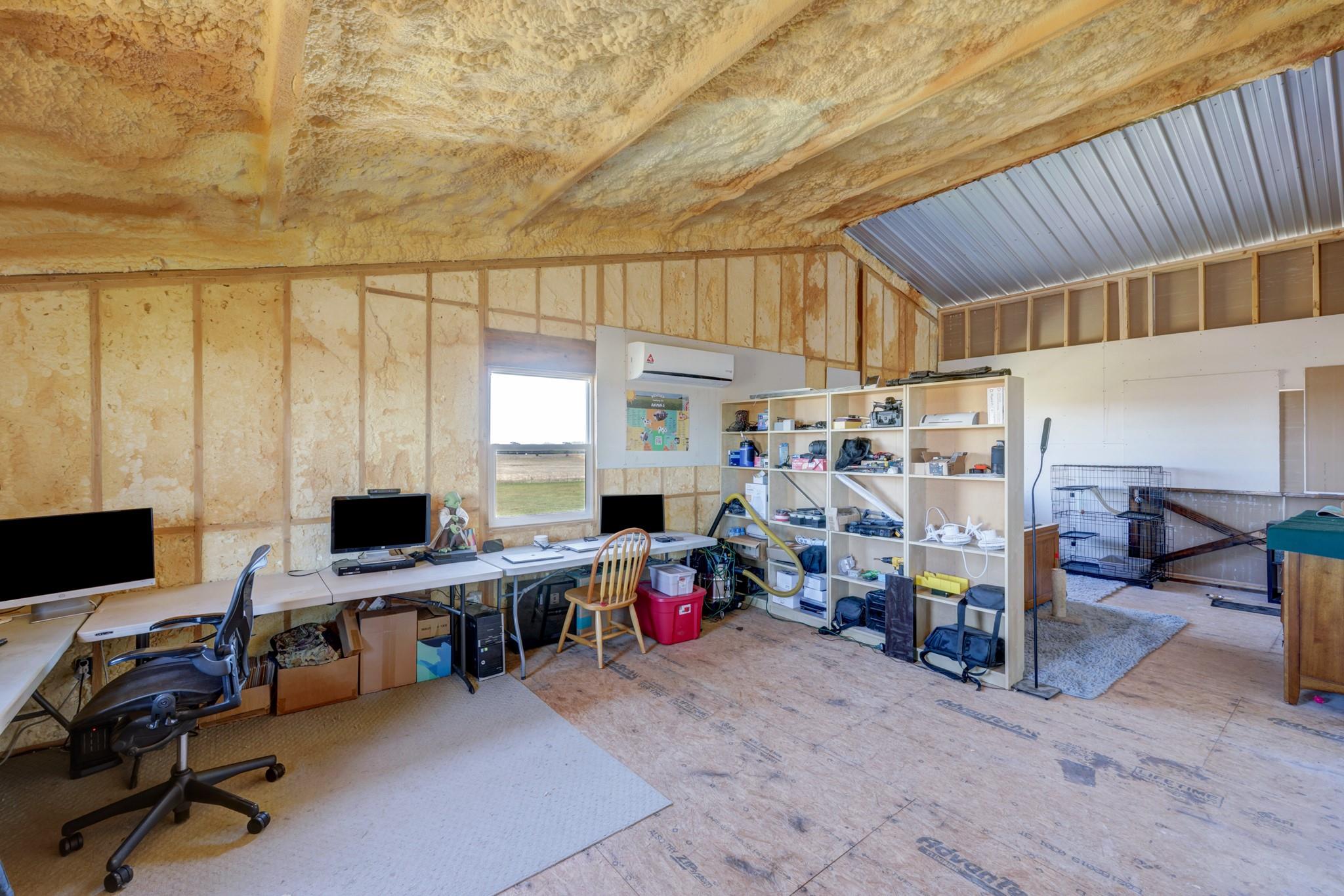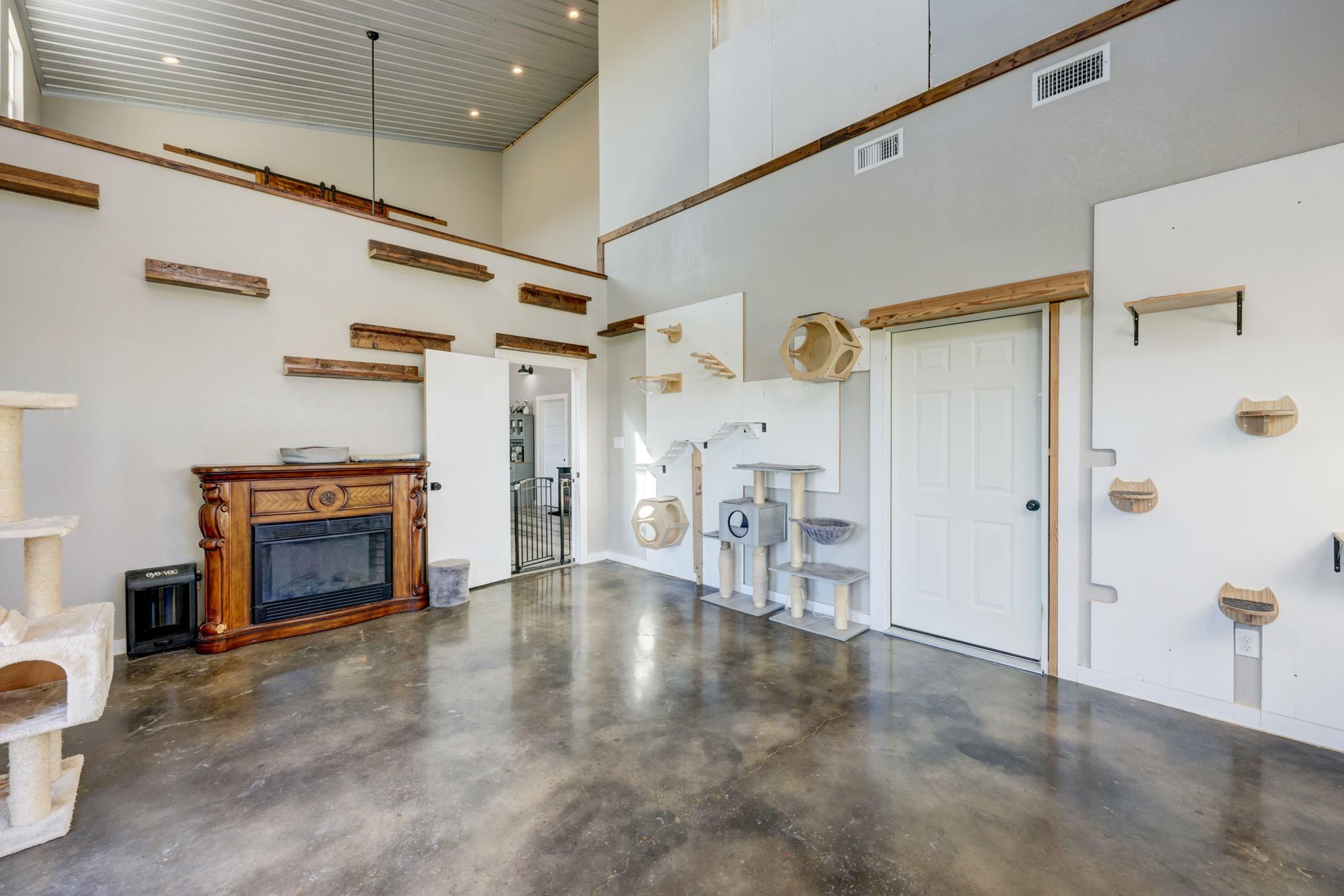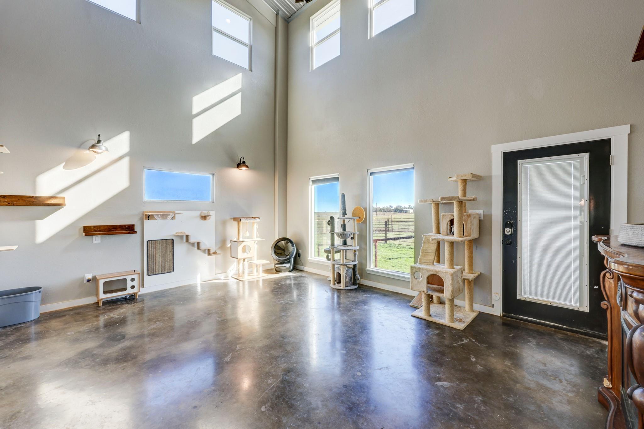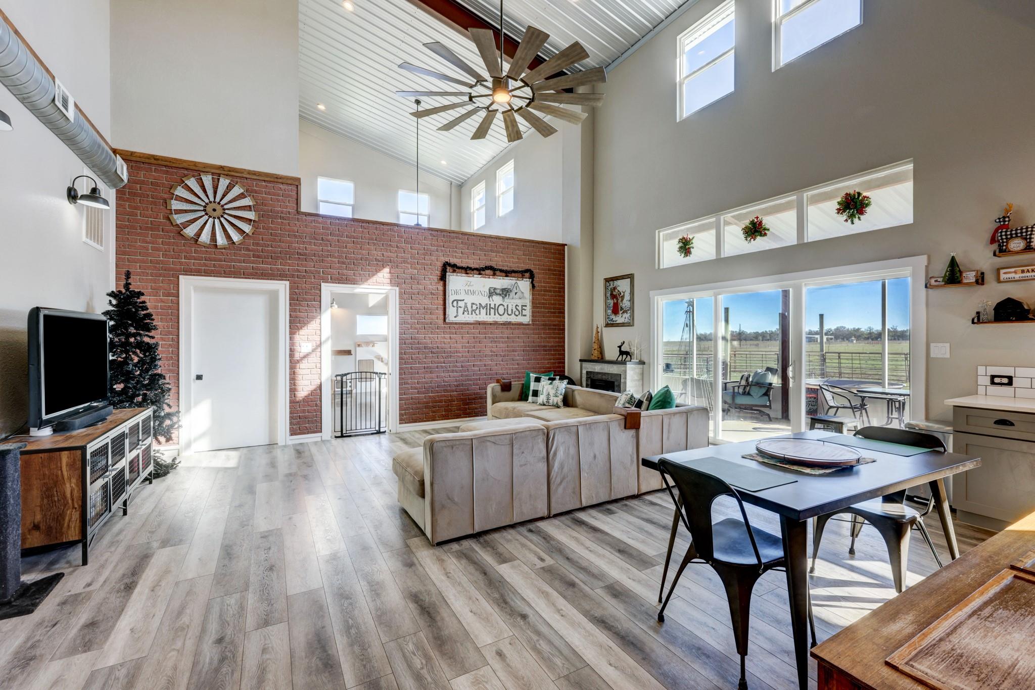 Step into this stunning ranch nestled on 54.374 acres of prime Texas land, offering unrestricted freedom. Discover a magnificent 3-bed, 3-bath, 4,692 sqft residence thoughtfully designed for both luxury & functionality. Accessible via a private gated entrance from CR 221, experience the tranquility of this secluded estate surrounded by picturesque rolling pastures. Inside, bask in the spaciousness of the open floor plan featuring vaulted ceilings & an abundance of windows, flooding the home with natural light. Convenient stained concrete & LVP flooring, ensures effortless maintenance. The chef's kitchen boasts modern stainless steel appliances, ample cabinetry, a walk-in pantry & an oversized island. Two main floor bedrooms offer privacy with ensuite bathrooms and walk-in closets, while the owner's suite doubles as a storm shelter. Upstairs, a partially finished area presents versatile possibilities, from extra bedrooms to a media room or homeschool space, and a rough-plumbed bath. Indulge in bug-free outdoor relaxation on the screened porch. The property features a commercial greenhouse, a starter greenhouse & a 40’x8’x9’ high cube, Conex container for all your agricultural needs. A deep well with a 2,500-gallon tank housed in an insulated well house ensures ample water supply, with electricity available to the home, greenhouse & animal pens. For remote work, a private 10’x12’ insulated external office equipped with electric & networking awaits. Bring your beloved animals to this expansive fenced property, which offers two run-in barns, three enclosed farm animal homes, & multiple spacious penned areas. Your furry friends will appreciate a climate-controlled 12’x24’ doghouse with private yards. Additional amenities include a 16’x24’ feed barn, storage shed & breathtaking panoramic views, creating a sense of serene seclusion while remaining conveniently accessible to nearby towns & cities. Welcome home to unparalleled comfort and natural beauty.