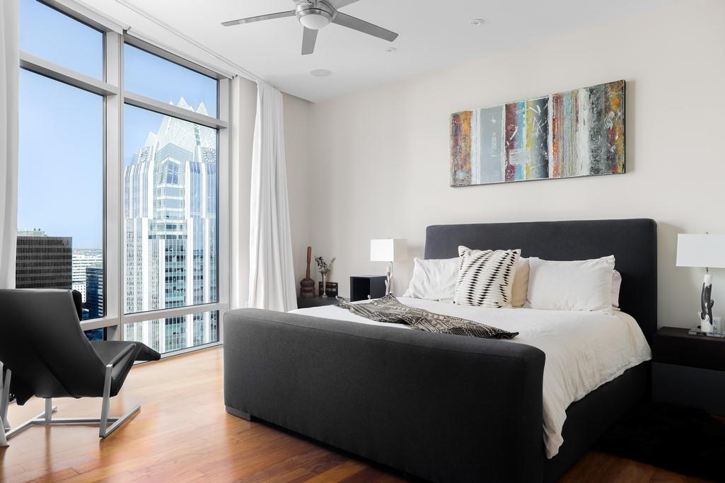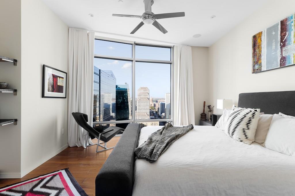 Welcome to the stunning 29E residence at The Austonian, located in the heart of Austin, TX. This luxurious 2-bedroom and 2-bathroom corner-unit residence spans over 1,918 square feet and boasts breathtaking North and West views including Lady Bird Lake, Zilker Park, the Frost Bank Tower, and the Texas State Capitol. The current owners have renovated this home into a stylish urban aerie with the finest finishes that make it both glamorous and livable. The living area, dining area, and kitchen are flooded with natural light through walls of floor-to-ceiling windows that highlight the extraordinary forever views. The highly upgraded kitchen features Scavollini® custom cabinets, Miele® dishwasher, Sub Zero refrigerator, an 18-bottle showcase wine fridge, and a Wolf® 36” gas 4-burner range w. infrared griddle. A spacious balcony (over 100 SqFt) offers room for dining and seating while enjoying some of the best views in Austin.The primary suite includes a spa-like bathroom with a soaking tub and separate shower. In-ceiling audiophile speakers throughout the entire unit including theater provide quality sound. LED accent lighting, designer hardware, and hidden pull-out wine storage complete this jewel-like space. The Austonian provides its residents with world-class amenities such as a pool, cabanas, outdoor kitchens and fireplaces on the 10th-floor deck, a billiard and game room, spa room, dog grooming room & park library theater conference room fitness center located on the 56th floor! Agent/Office Infor