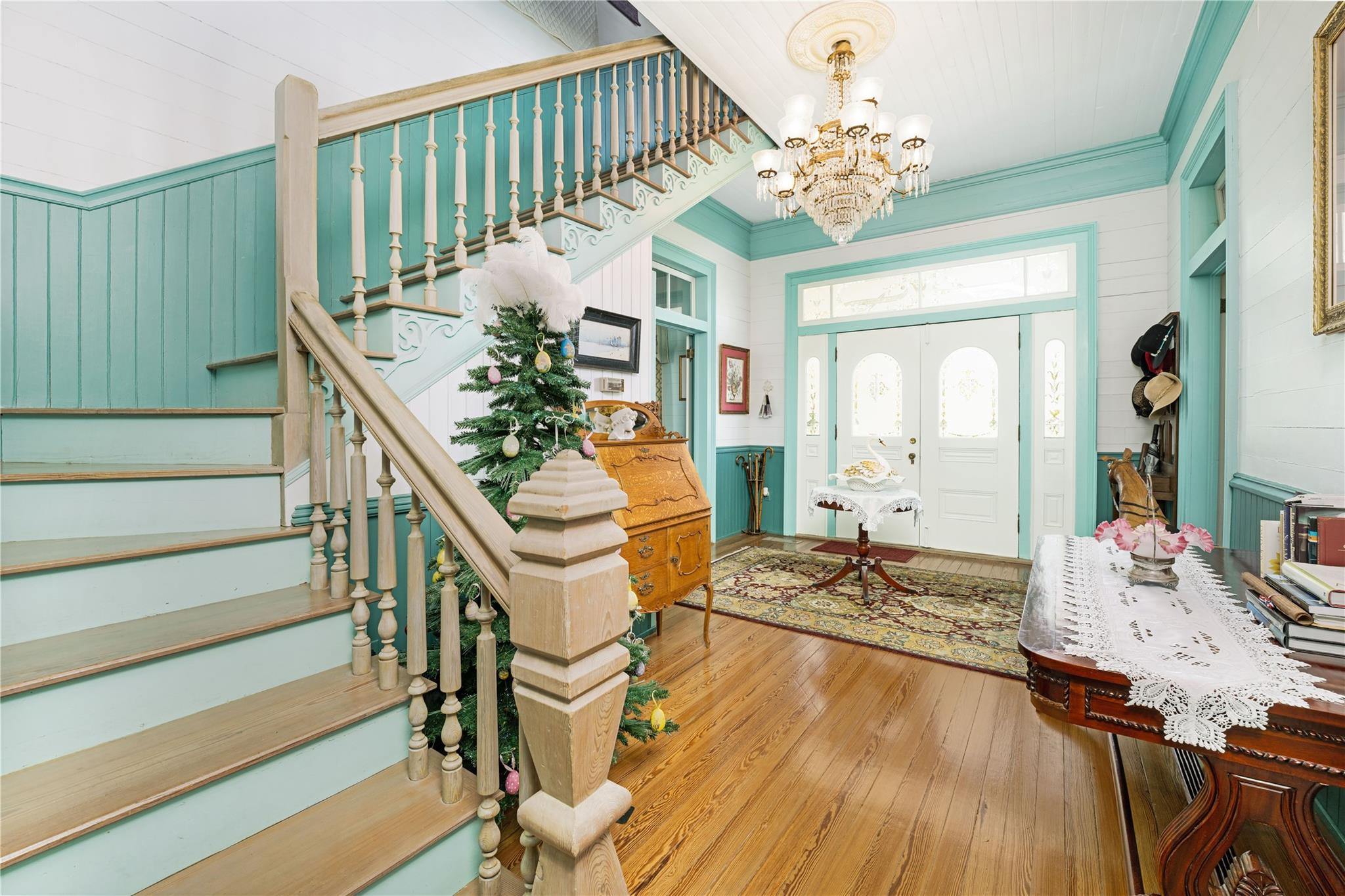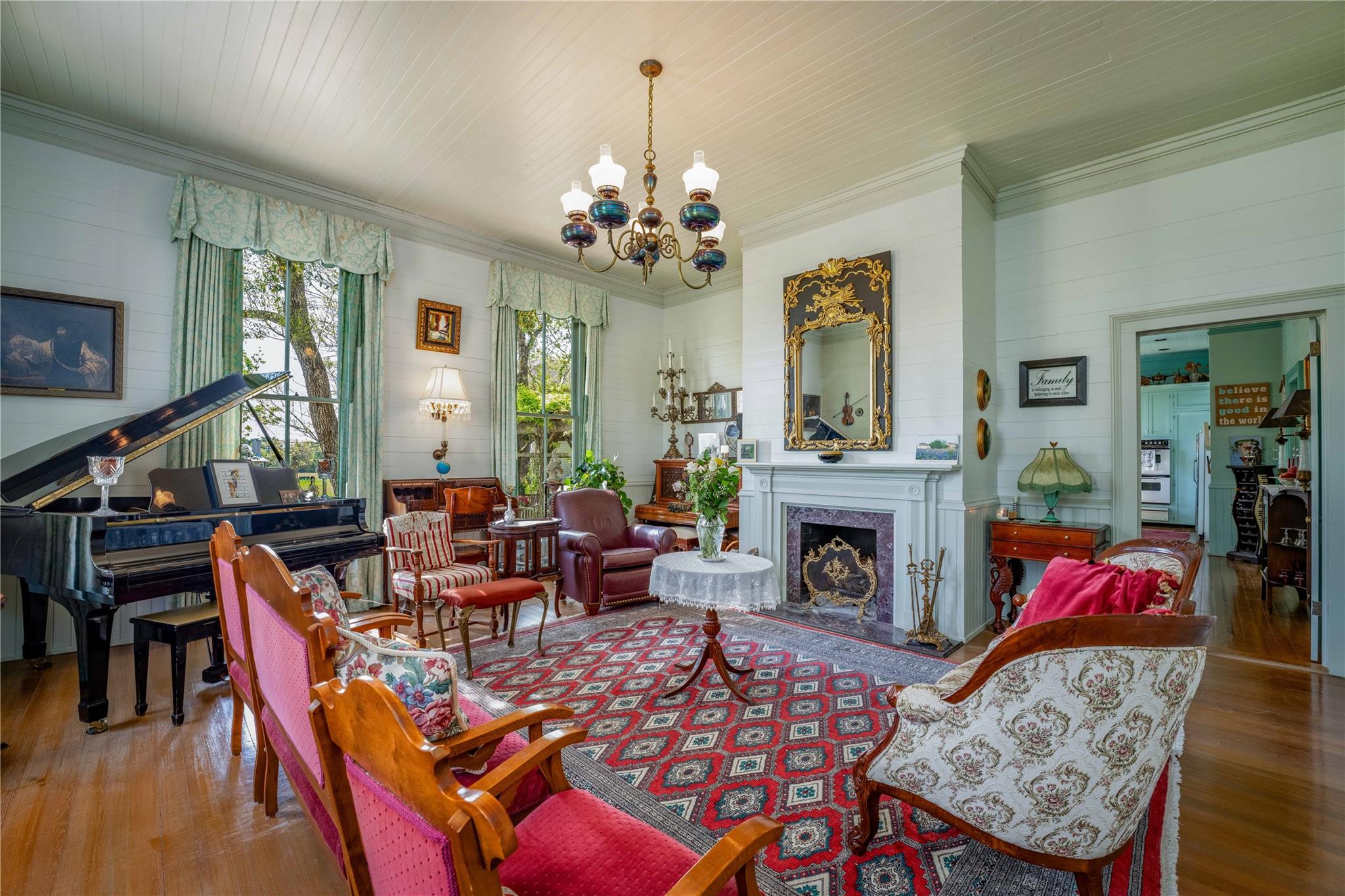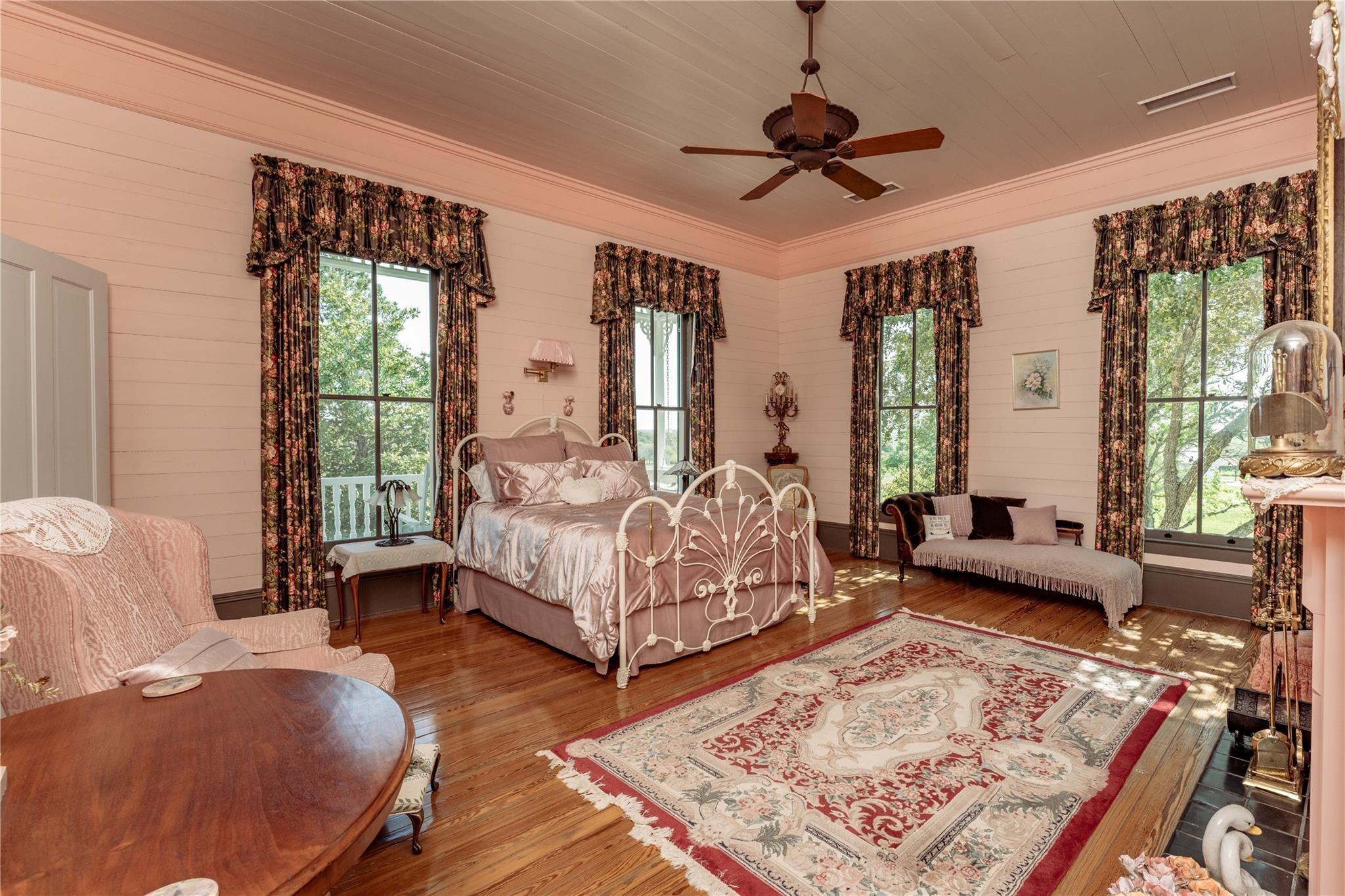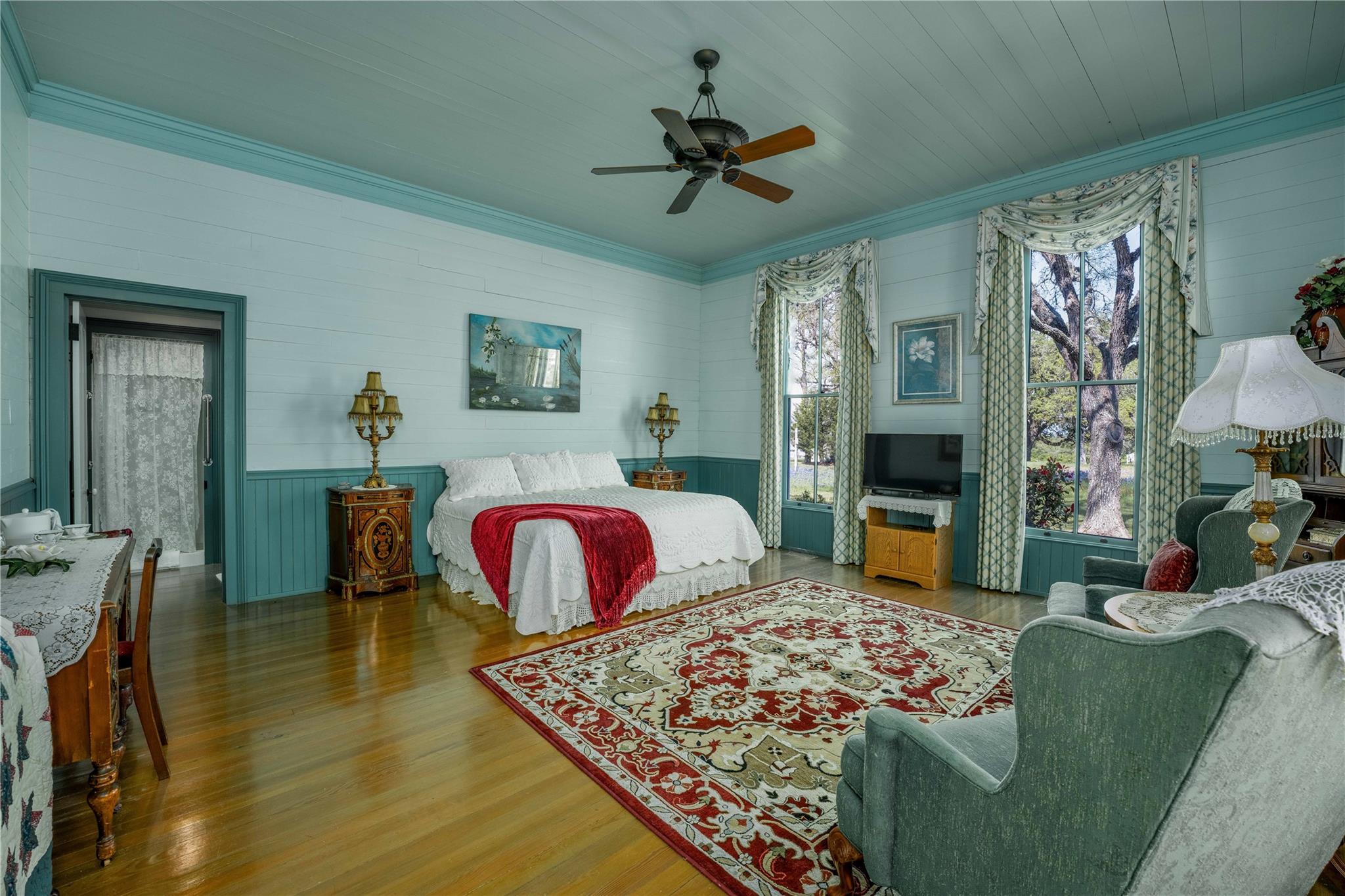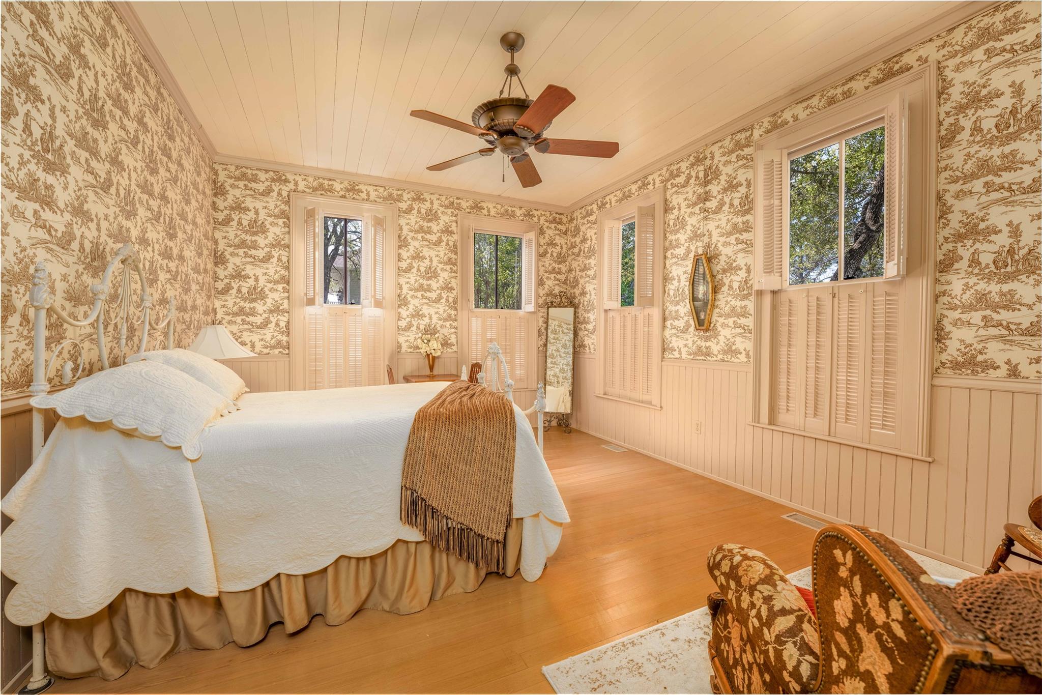 "The Belle of Round Top" stands on the highest wildflower covered hill in the city limits of the antique/design capital of Round Top, TX. An 1881 Victorian home and carriage house, the Belle has been featured in several magazines as a luxury B&B. It was closed to the public in 2020 and has since been a private family compound. The 6 acres allows for privacy, peaceful mornings & quiet evenings on the 3 grand verandas. The fully restored main house has original double doors with etched glass windows that invite you to step back in time. High ceilings and tall windows throughout bring sunshine into the rooms. Three cozy fireplaces add warm ambiance. The Belle has a cozy country kitchen, formal LR & 4 large bdrms with ensuite baths + 2 half baths. The carriage house includes over 1000 SF of parking/storage space. The lower floor includes 2 offices & a half bath. The 2nd floor is a 2/2 with a large living space. The Belle represents an era of fine country estate living of the early 20th century.