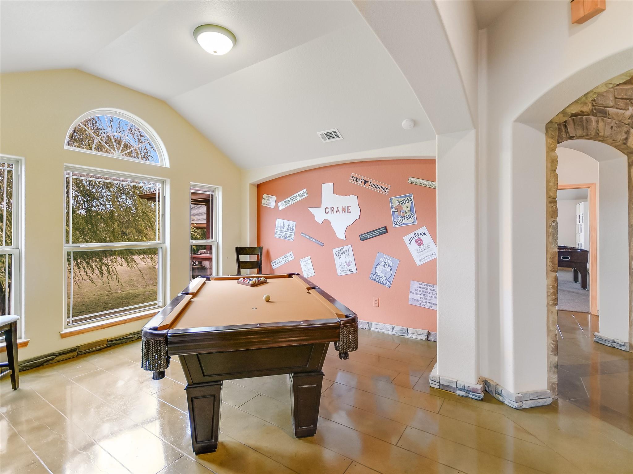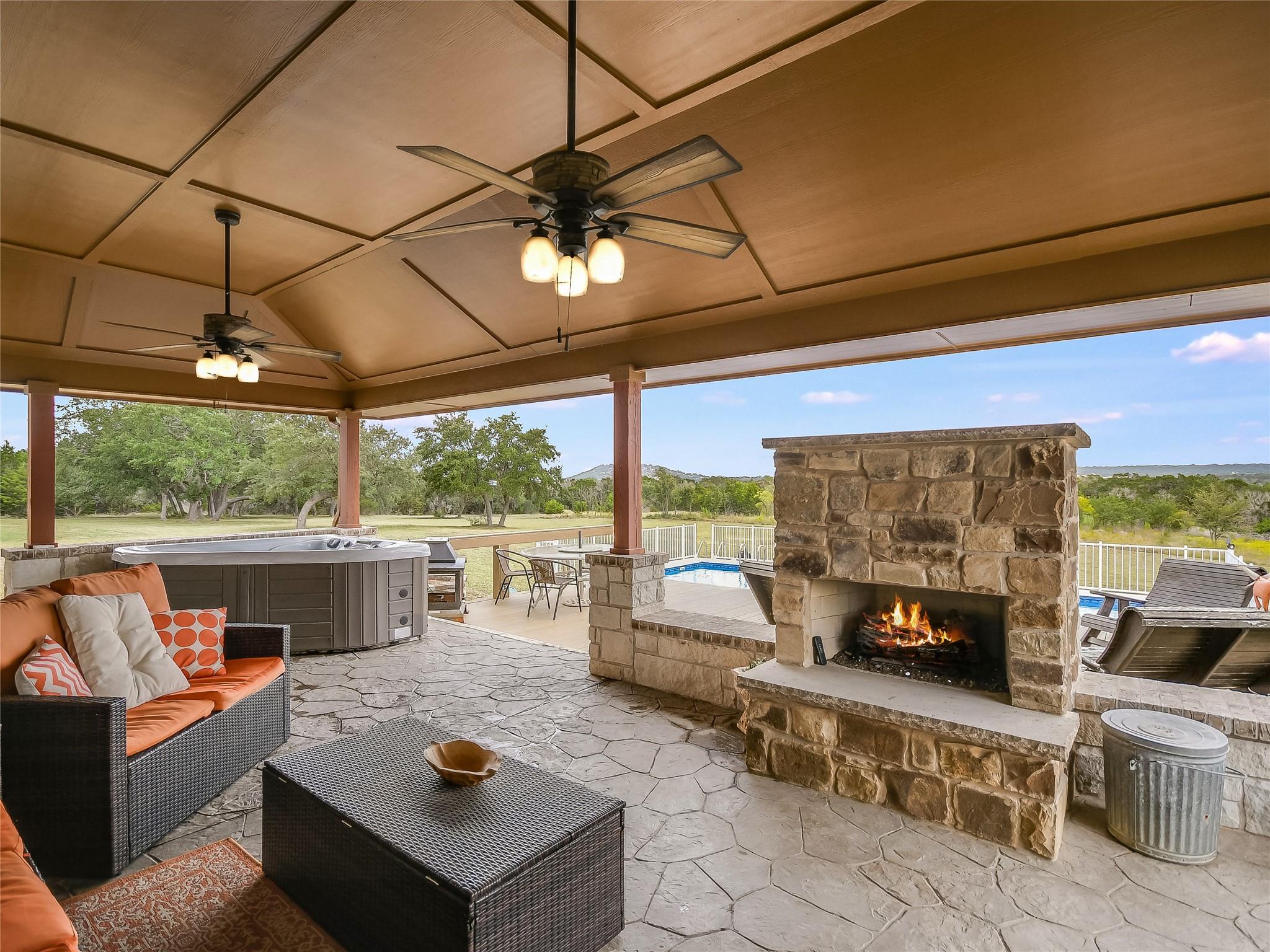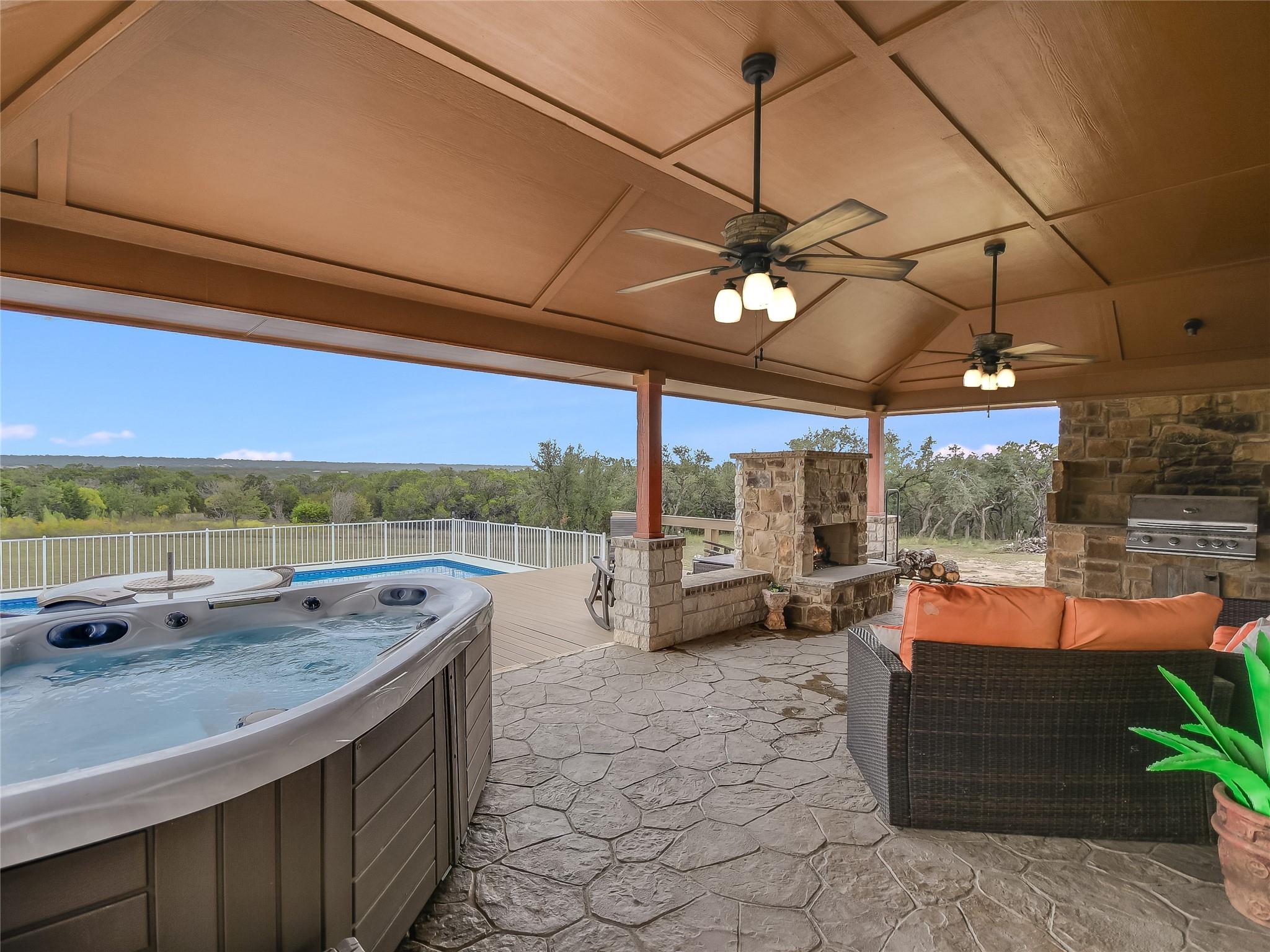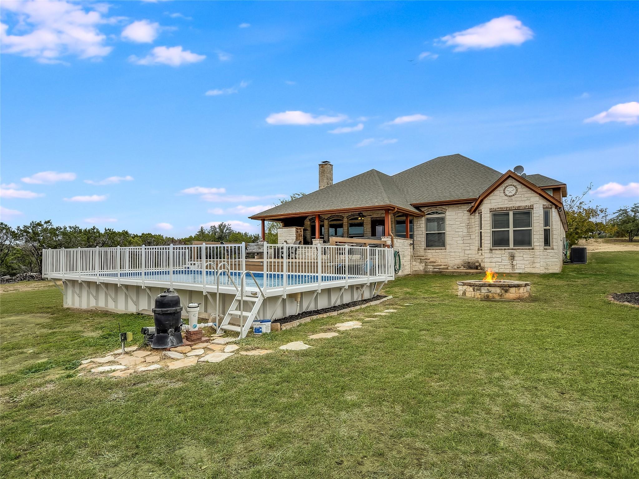This extraordinary private estate is only 25 min from Historic Downtown Georgetown. The almost 25 acres offers a lifestyle of luxury and exclusivity where there are no known restrictions (Buyer to verify). Explore the interior of the Home… a 4-bedroom, 2.5-bathroom layout, functionally segmented to include a private home office, an upstairs home theater, a massive front game room, and a family room with stone fireplace overlooking breathtaking sunrise views atop Rocky Creek & Stillman Valley. Step outside under the covered porch… entertain at the BBQ grill, on the sunning deck, in the pool, or relax by the firepit listening to the beautiful water feature. Practicality meets elegance with the large utility mudroom and additional storage spaces, keeping the home organized and clutter-free. The grandeur of this property is evident from the moment you step inside, with a beautiful Texas rotunda welcoming your guests in style to a kitchen brimming with modern luxuries, including a convenient pot filler, a wine fridge for your collection, and a thoughtfully designed space reserved for a commercial refrigerator. Whether you're a culinary artist or simply enjoy cooking for loved ones, this kitchen offers the tools and space you need to create masterful meals. More exceptional features include: a detached workshop with overhead door, a fenced dog run, basketball court, and a remarkably low tax rate of only 1.4546%, an outstanding financial advantage.