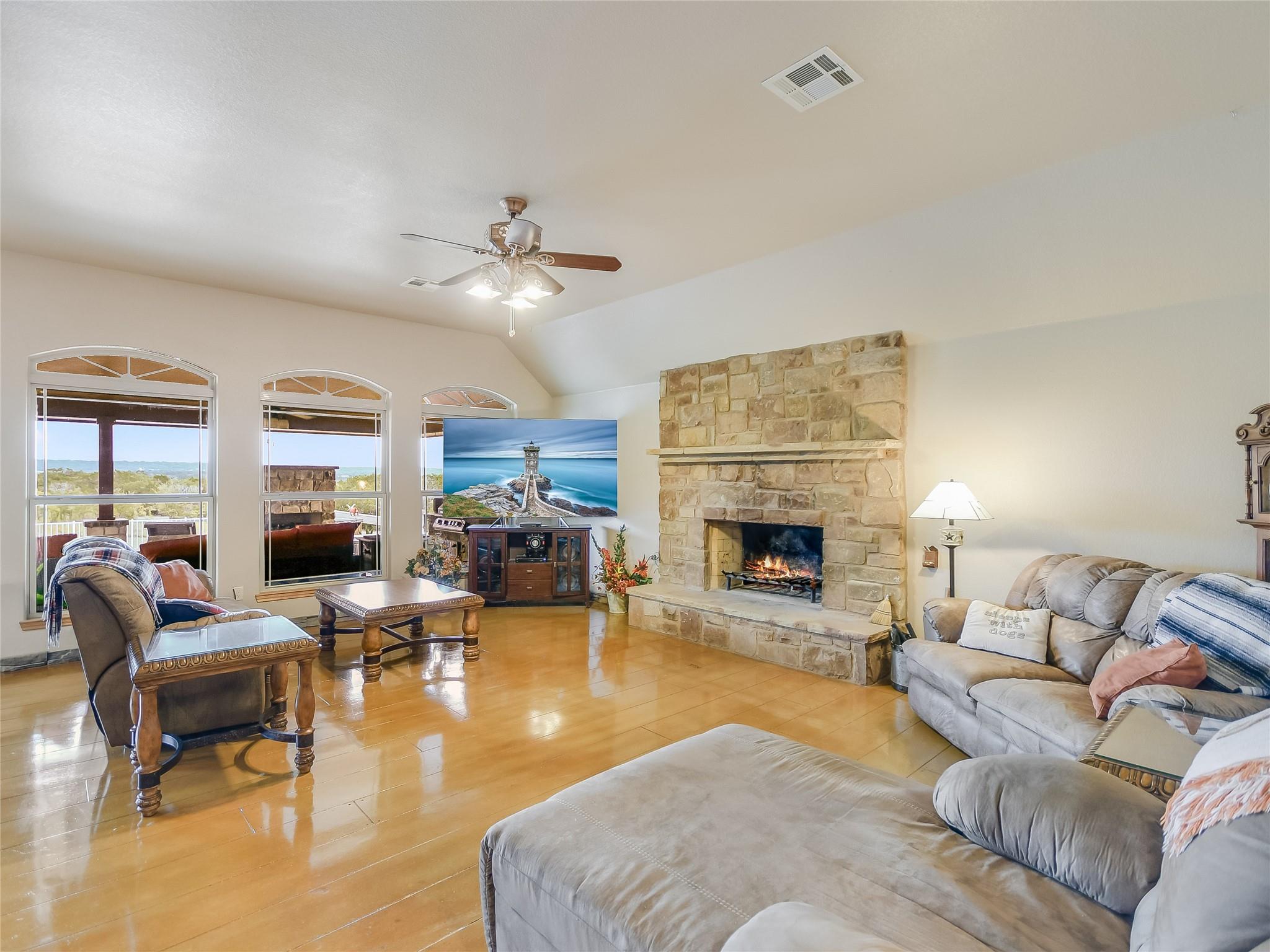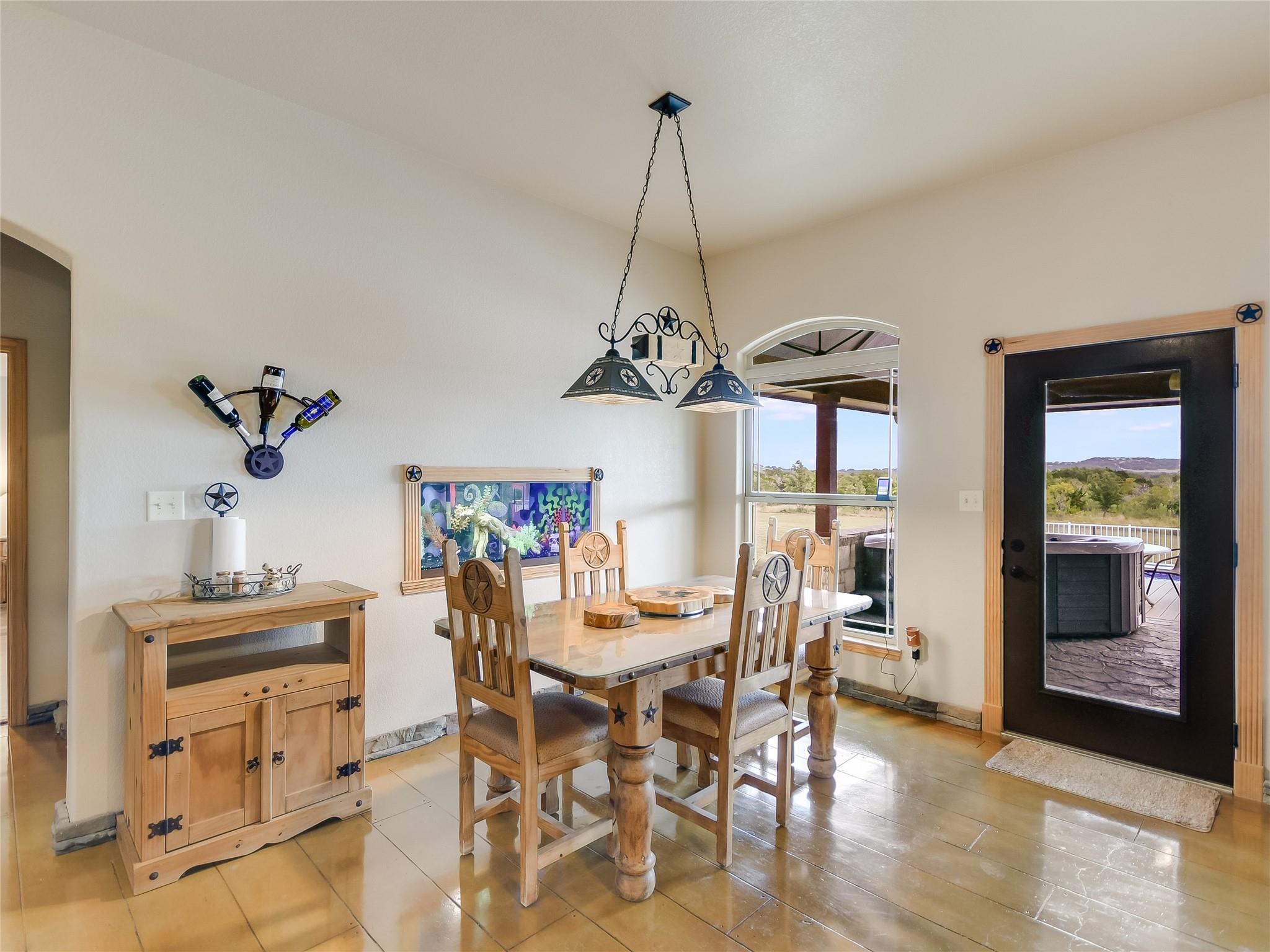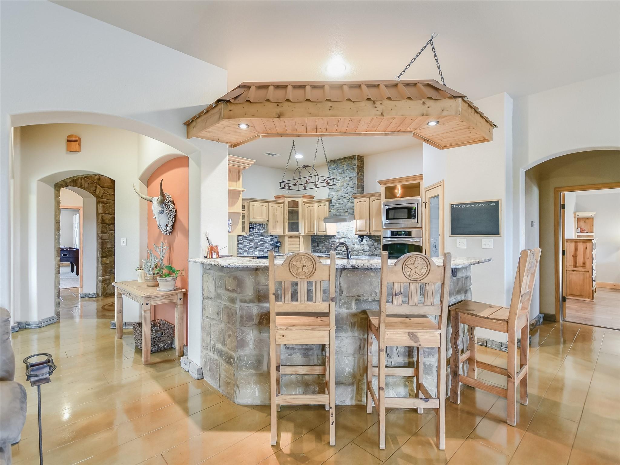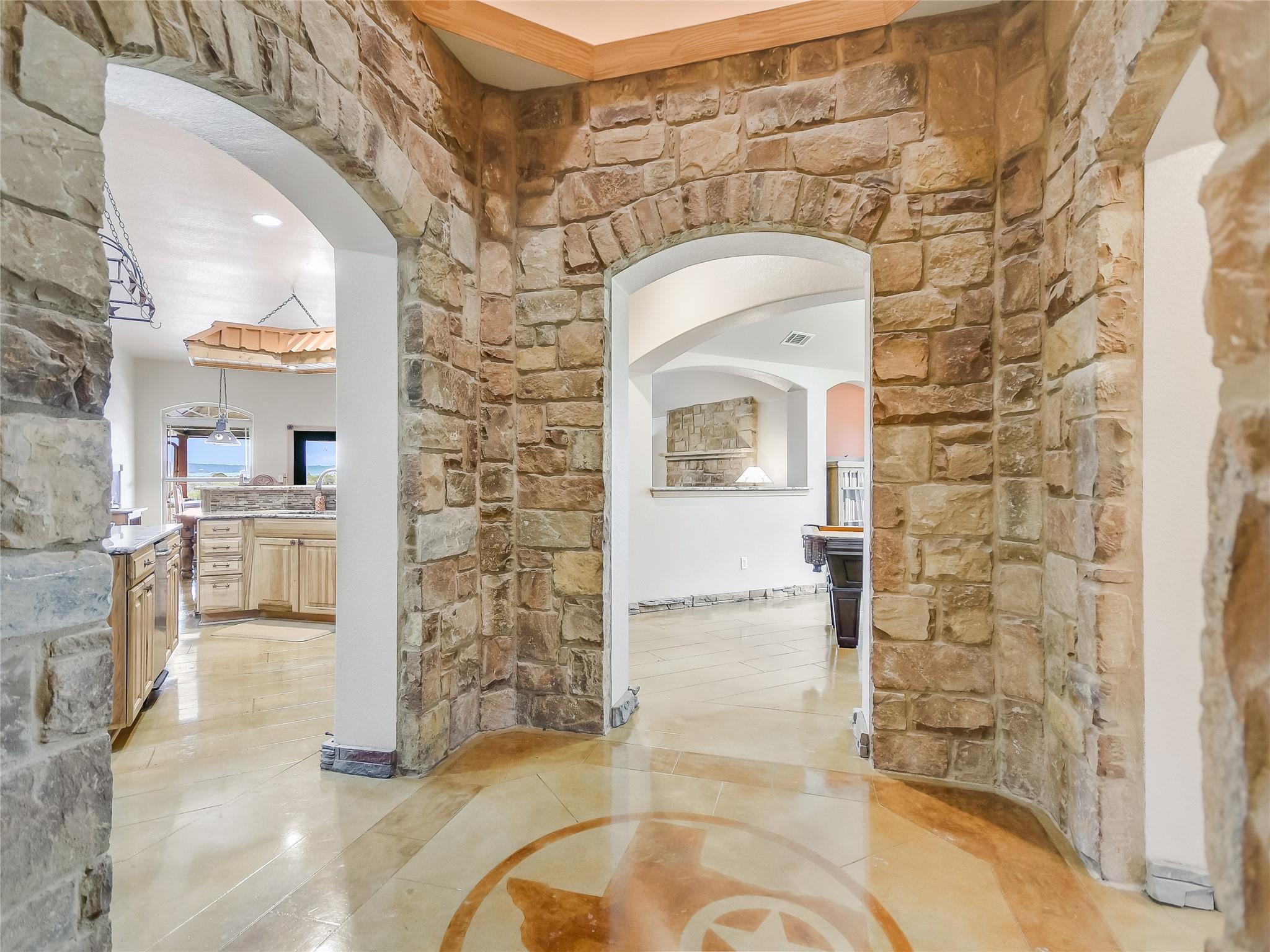 This extraordinary private estate is only 25 min from Historic Downtown Georgetown. The almost 25 acres offers a lifestyle of luxury and exclusivity where there are no known restrictions (Buyer to verify). Explore the interior of the Home… a 4-bedroom, 2.5-bathroom layout, functionally segmented to include a private home office, an upstairs home theater, a massive front game room, and a family room with stone fireplace overlooking breathtaking sunrise views atop Rocky Creek & Stillman Valley. Step outside under the covered porch… entertain at the BBQ grill, on the sunning deck, in the pool, or relax by the firepit listening to the beautiful water feature. Practicality meets elegance with the large utility mudroom and additional storage spaces, keeping the home organized and clutter-free. The grandeur of this property is evident from the moment you step inside, with a beautiful Texas rotunda welcoming your guests in style to a kitchen brimming with modern luxuries, including a convenient pot filler, a wine fridge for your collection, and a thoughtfully designed space reserved for a commercial refrigerator. Whether you're a culinary artist or simply enjoy cooking for loved ones, this kitchen offers the tools and space you need to create masterful meals. More exceptional features include: a detached workshop with overhead door, a fenced dog run, basketball court, and a remarkably low tax rate of only 1.4546%, an outstanding financial advantage.