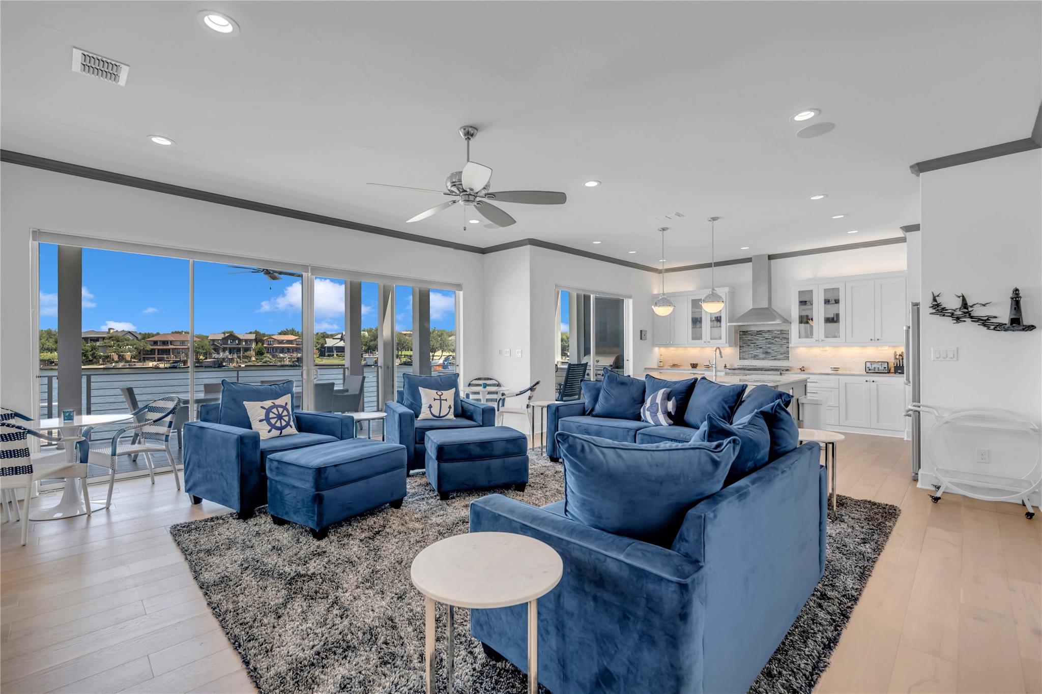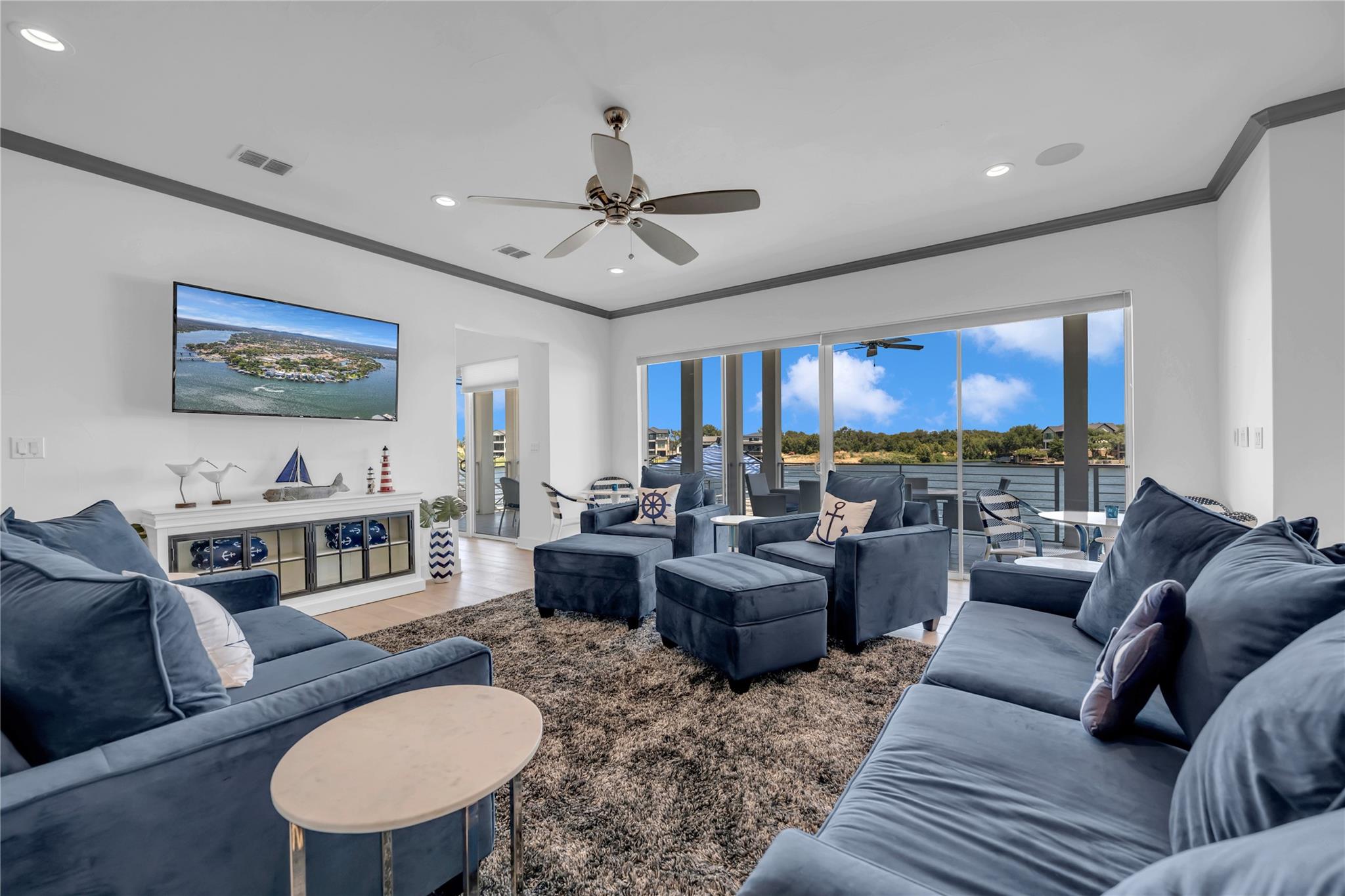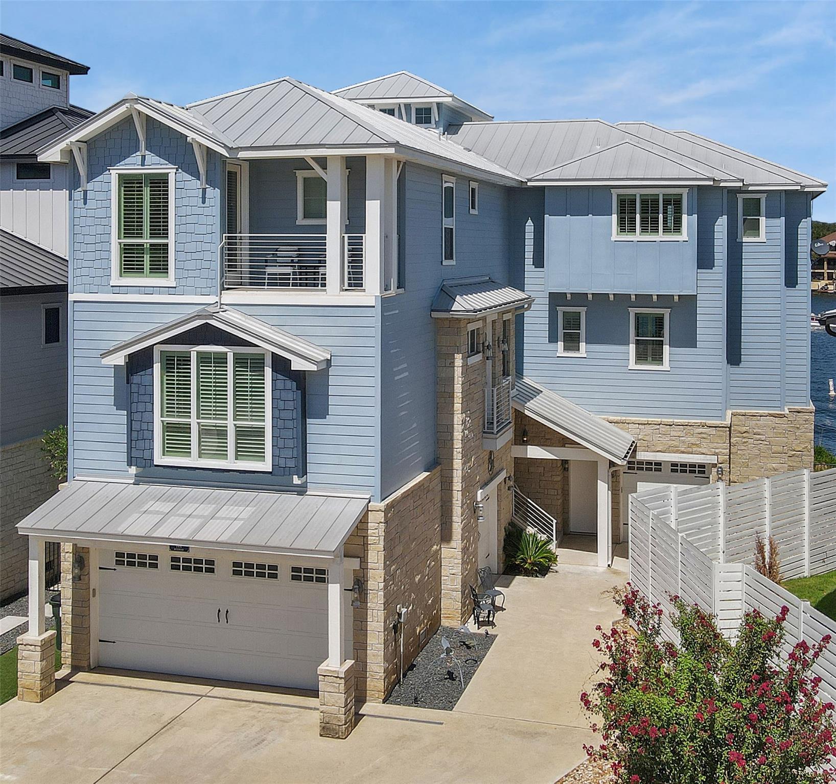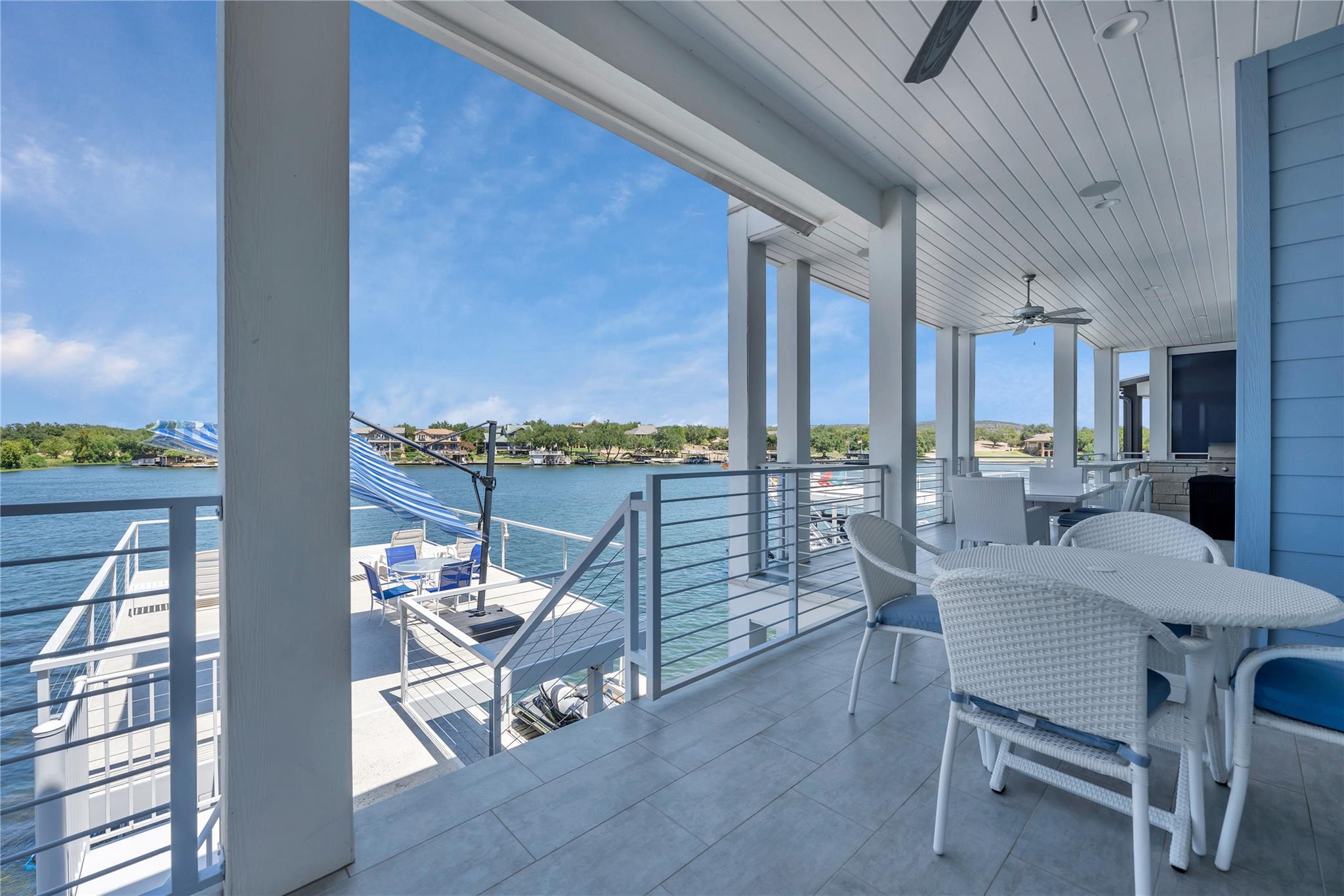 Welcome to your dream home on Lake LBJ, where luxury meets tranquility. This stunning waterfront property boasts breathtaking panoramic views of the serene lake and offers an unparalleled lifestyle of entertainment, relaxation and recreation. Nestled on a zero-scaped lot, this meticulously crafted residence features four bedrooms, including 2 lavish master suites each with an en-suite bathroom and access to outdoor patios. With three full bathrooms and two half bathrooms, every detail of comfort and convenience has been thoughtfully considered. Step outside onto the expansive outdoor oasis, where a sparkling pool and a covered fully screened outdoor entertainment area awaits, inviting you to cool off on hot summer days or unwind under the Texas sun on the top deck of the boat dock. Entertain guests on one of the many sprawling patio areas this home offers, complete with 2 built-in grills and ample seating throughout, perfect for hosting unforgettable gatherings with loved ones. Enjoy seamless indoor-outdoor living with multiple access points from the living spaces to the outdoor areas, creating a seamless flow for relaxation and entertainment. Whether you're savoring morning coffee as the sun rises over the lake or gathering around the fire pit on cool evenings, this home offers an idyllic setting for every occasion. Located in a coveted lakeside community, residents enjoy access to a wealth of amenities, including boating, fishing, and water sports right from their own backyard. With its prime location and luxurious features, this Lake LBJ retreat offers a rare opportunity to experience the ultimate in waterfront living. Don't miss your chance to make this extraordinary property your own slice of paradise.