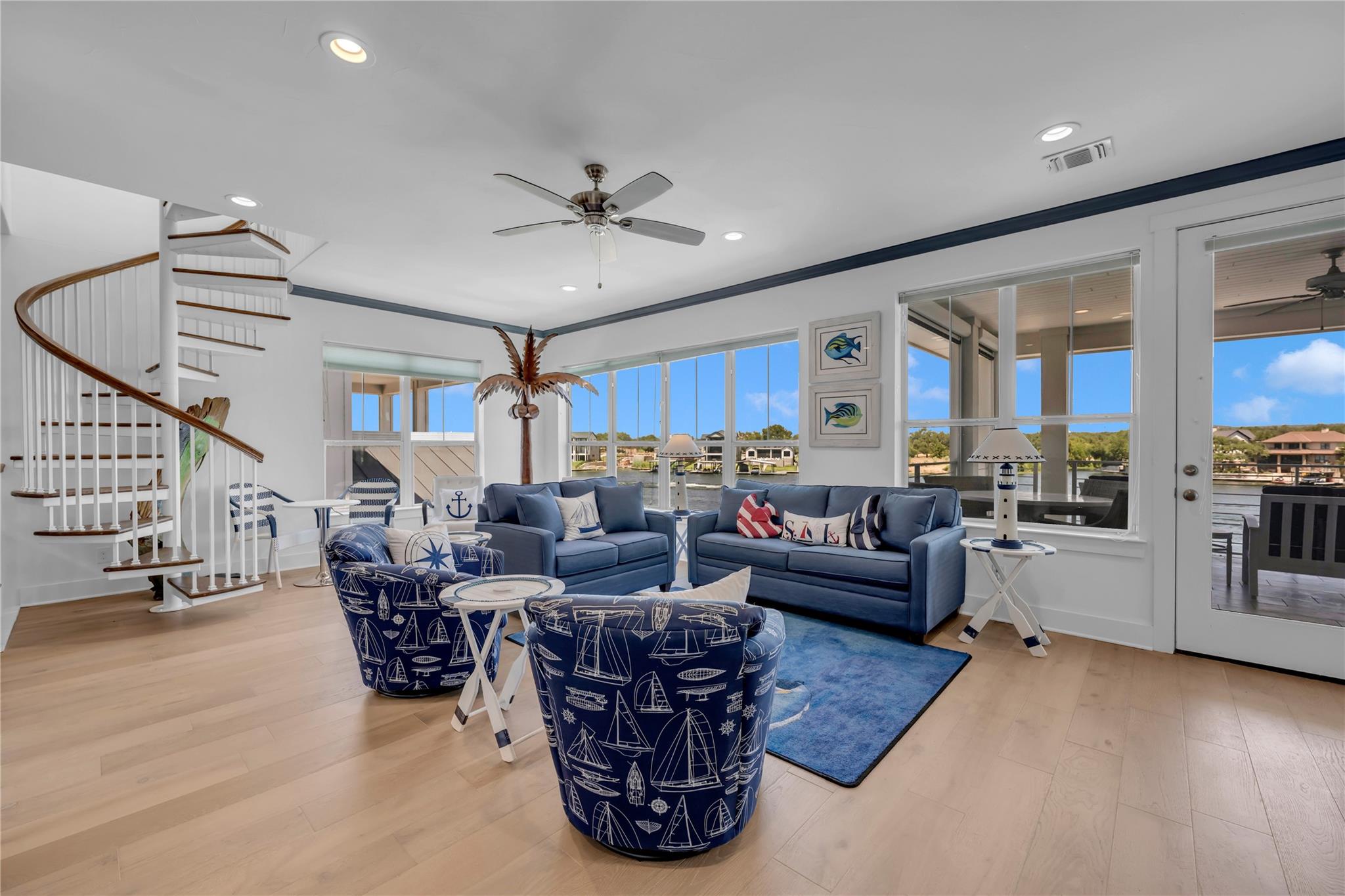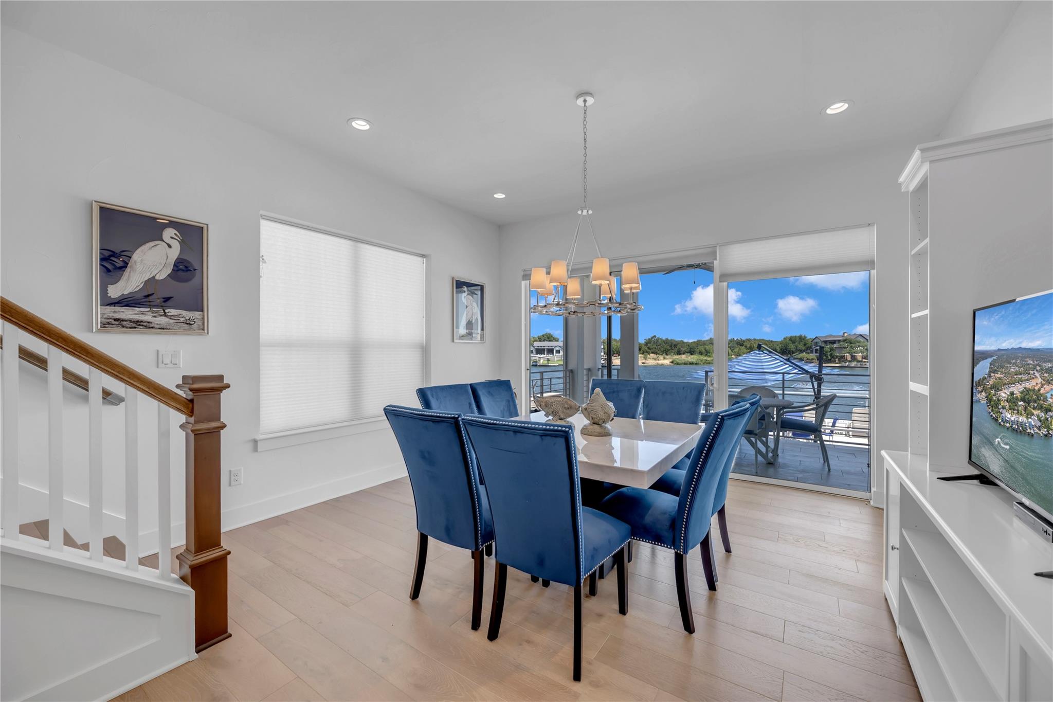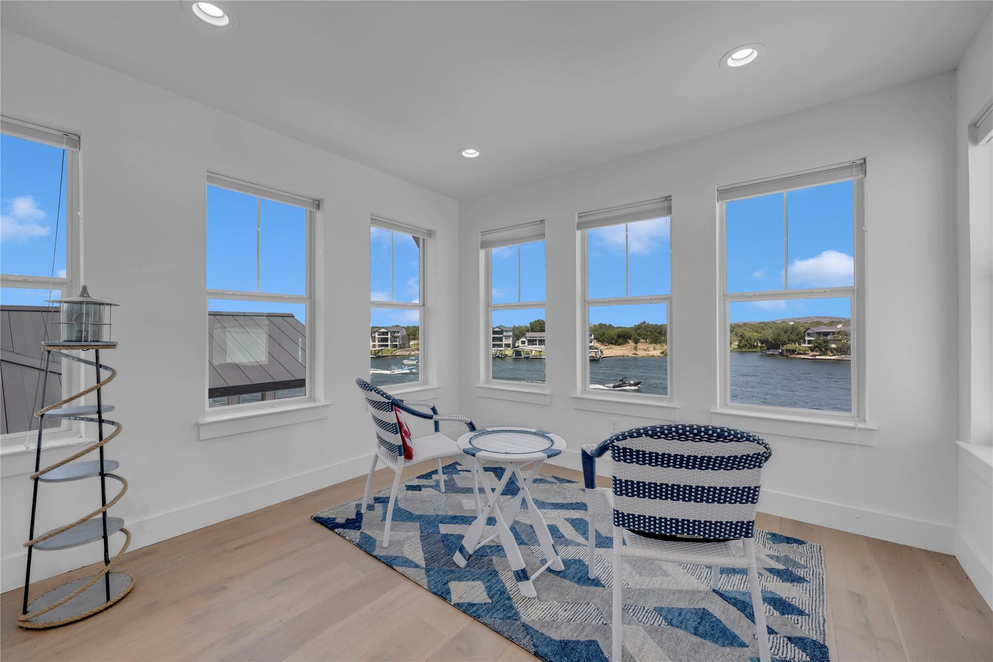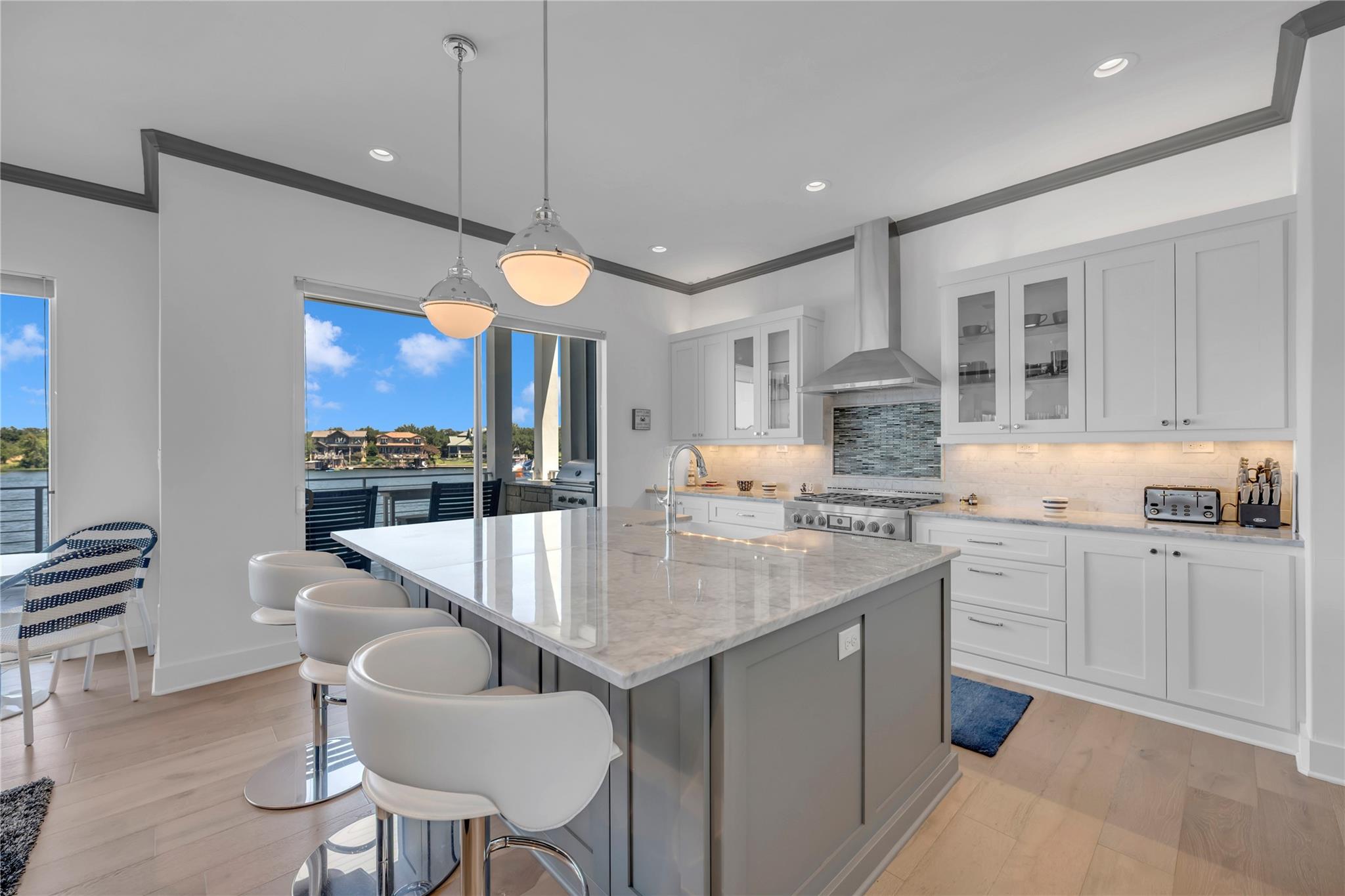 Welcome to your dream home on Lake LBJ, where luxury meets tranquility. This stunning waterfront property boasts breathtaking panoramic views of the serene lake and offers an unparalleled lifestyle of entertainment, relaxation and recreation. Nestled on a zero-scaped lot, this meticulously crafted residence features four bedrooms, including 2 lavish master suites each with an en-suite bathroom and access to outdoor patios. With three full bathrooms and two half bathrooms, every detail of comfort and convenience has been thoughtfully considered. Step outside onto the expansive outdoor oasis, where a sparkling pool and a covered fully screened outdoor entertainment area awaits, inviting you to cool off on hot summer days or unwind under the Texas sun on the top deck of the boat dock. Entertain guests on one of the many sprawling patio areas this home offers, complete with 2 built-in grills and ample seating throughout, perfect for hosting unforgettable gatherings with loved ones. Enjoy seamless indoor-outdoor living with multiple access points from the living spaces to the outdoor areas, creating a seamless flow for relaxation and entertainment. Whether you're savoring morning coffee as the sun rises over the lake or gathering around the fire pit on cool evenings, this home offers an idyllic setting for every occasion. Located in a coveted lakeside community, residents enjoy access to a wealth of amenities, including boating, fishing, and water sports right from their own backyard. With its prime location and luxurious features, this Lake LBJ retreat offers a rare opportunity to experience the ultimate in waterfront living. Don't miss your chance to make this extraordinary property your own slice of paradise.