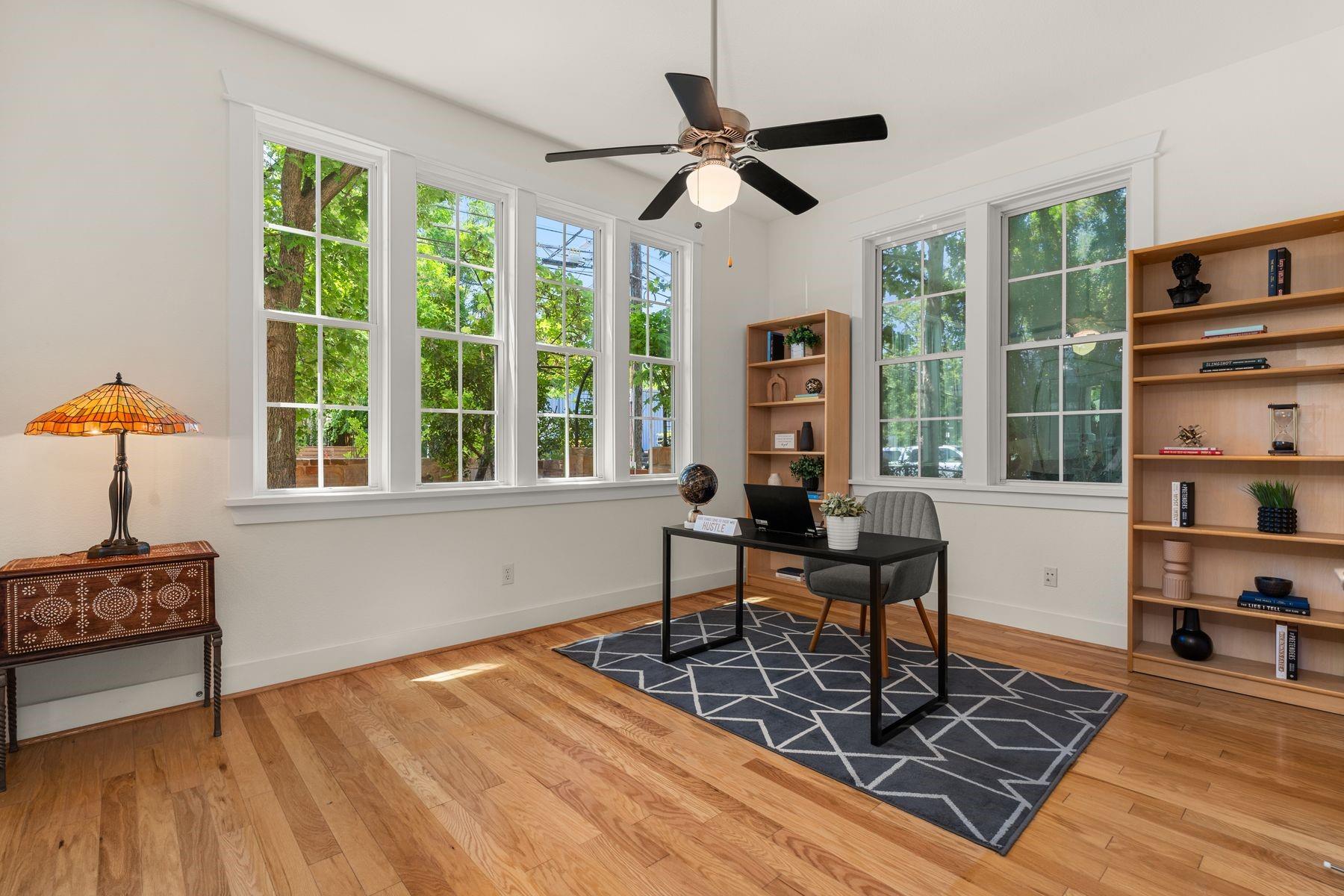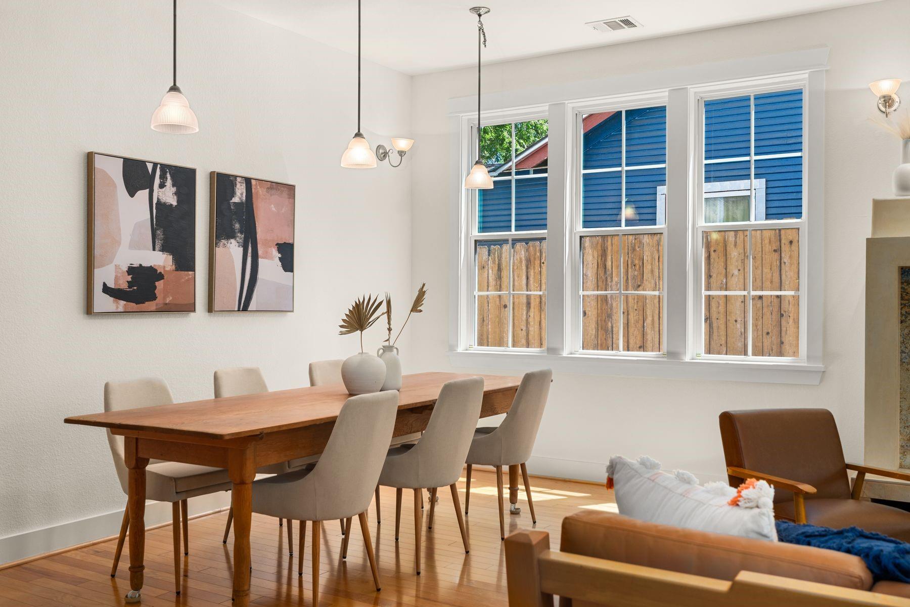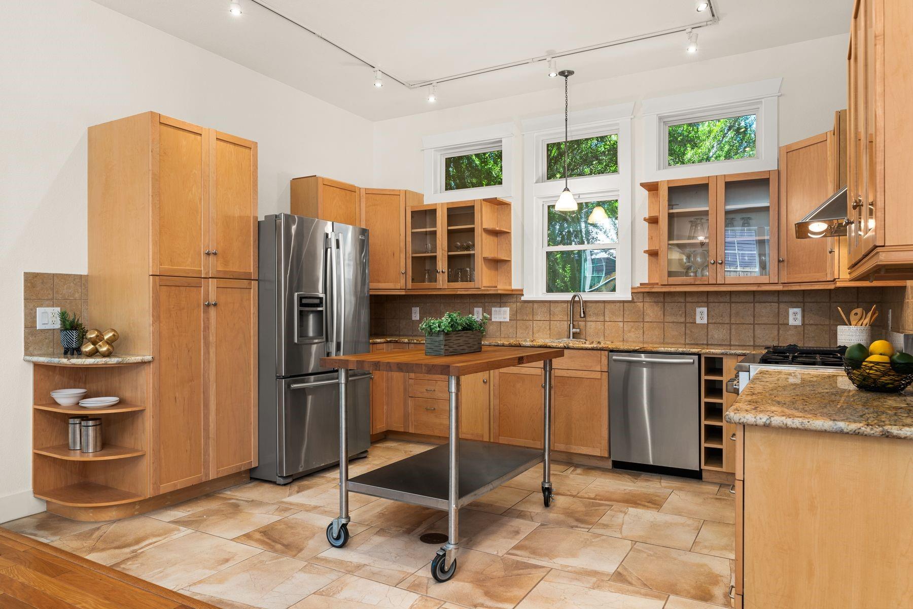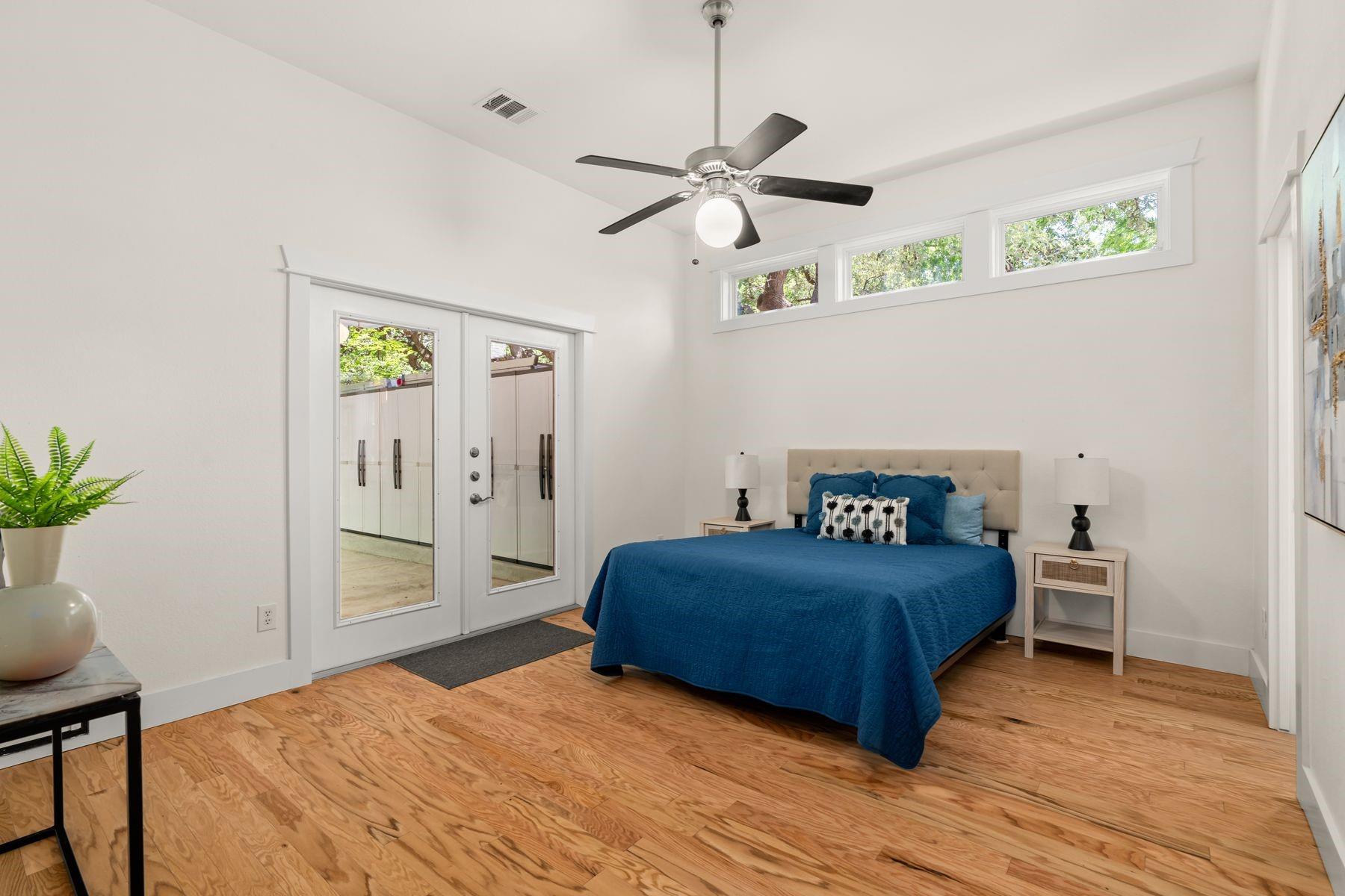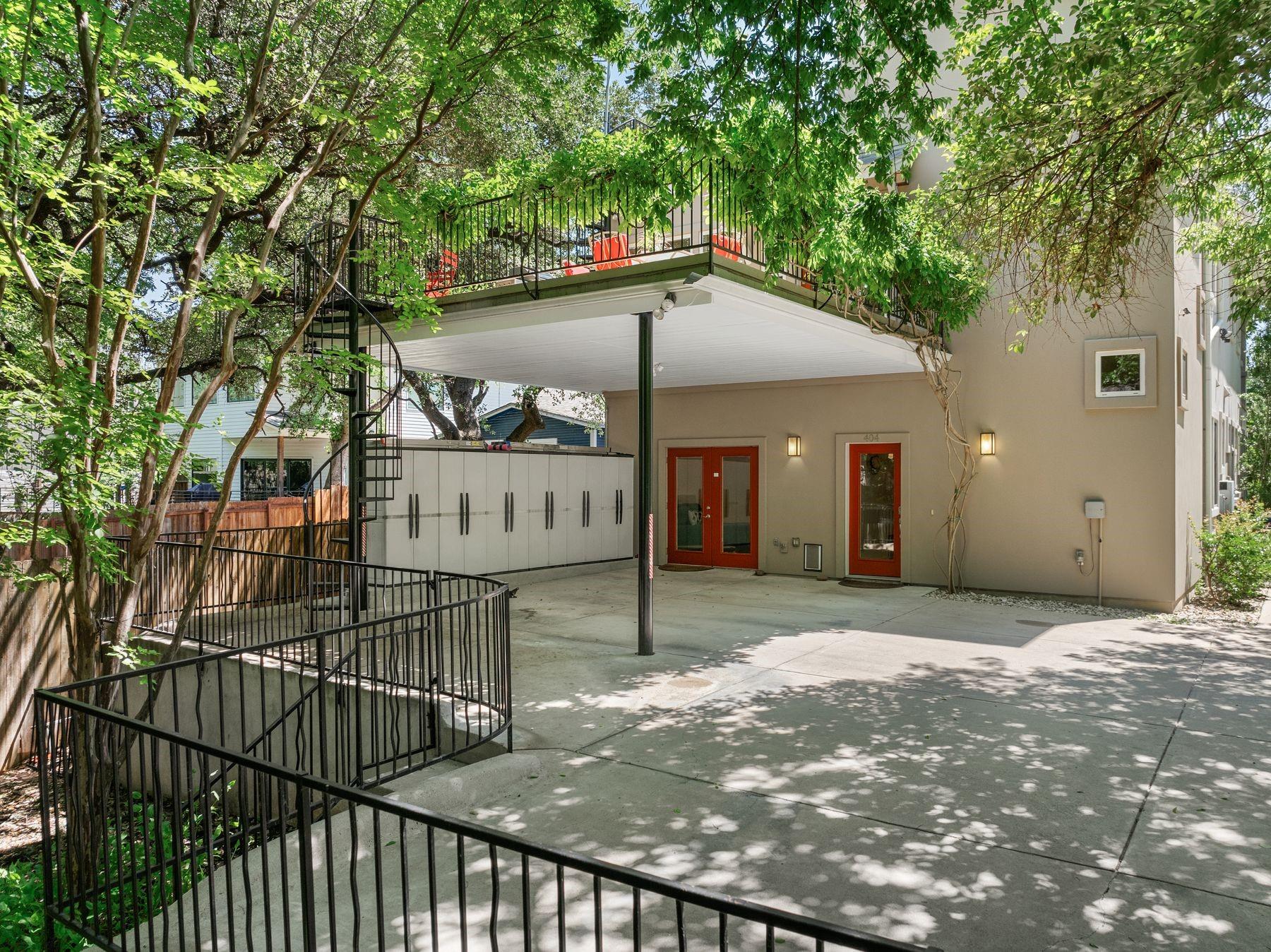 "Convertible Single Family Home" magically becomes a duplex when just one interior door is changed to a fire door! And the 33x16 attic with a large rooftop deck is a canvas for a hide away apartment above it all. Whether you envision a multi-family dwelling generating income and poised for future growth, or a single-family residence with fully equipped guest accommodations, this versatility is unmatched! Located in the Bouldin neighborhood, mere steps from the famed South Congress district in revered 78704 surrounded by loads of dining, boutiques and cafes. 7800+ sf lot along with the home with nearly 3000 sf of living space is like a private haven immersed in the pulse of the city. Each level has a kitchen, dining area, living space, bedrooms, and bathrooms. Separate utilities ensure efficiency. Solar panels provide electricity for the top two floors with low winter time bills. Elevator ascends to all 3 levels. First level contains living area with fireplace, kitchen, 3 bedrooms, one operating as a study with separate entrance and half bath. Extra-large bedroom in back of home with its own entrance has a new bathroom with walk in shower. Third bedroom has attached bathroom. Large pantry closet with washer/dryer hookups. All interior walls are of ¾ “ sheetrock and fully insulated, making the interior very quiet. Take elevator to the second level and discover back patio overlooking yard. Inside is another sitting area, kitchen (awaiting range installation) dining space, two bedrooms each with doors leading to covered patio. Primary bedroom with walk in closet and en suite bath with double sinks. Secondary bathroom also has laundry facilities. Front courtyard surrounded by stone wall includes a fountain, while electric gated driveway and fenced backyard is covered in trees. Covered carport with storage cabinets. Two RV hookups which can be converted for electric car charging stations. Abundant windows and skylights. Possible seller financing!