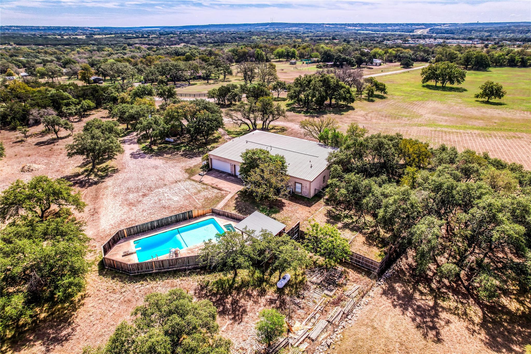 PENDING DATE IS 5/2/2024 Introducing a unique real estate opportunity in the heart of the Texas Hill Country! Nestled on a sprawling 26-acre parcel just north of Liberty Hill, Texas, this property boasts a one-of-a-kind blend of modern living and versatile event space. At the heart of this offering is an ~3,700 SF concrete block building, configured into a large comfortable one-story home. With a spacious interior and full kitchen, this building has may possible uses. But that's not all - this property also includes an ~8,000 SF conference center space, currently in the final stages of construction. This thoughtfully designed event center is perfect for weddings, reunions, church services, and gatherings of all kinds. Its expansive layout and modern amenities make it the perfect canvas for your event planning dreams. The 26-acres provide ample room for outdoor activities, potential expansion, or even the addition of an outdoor event space to complement both buildings.