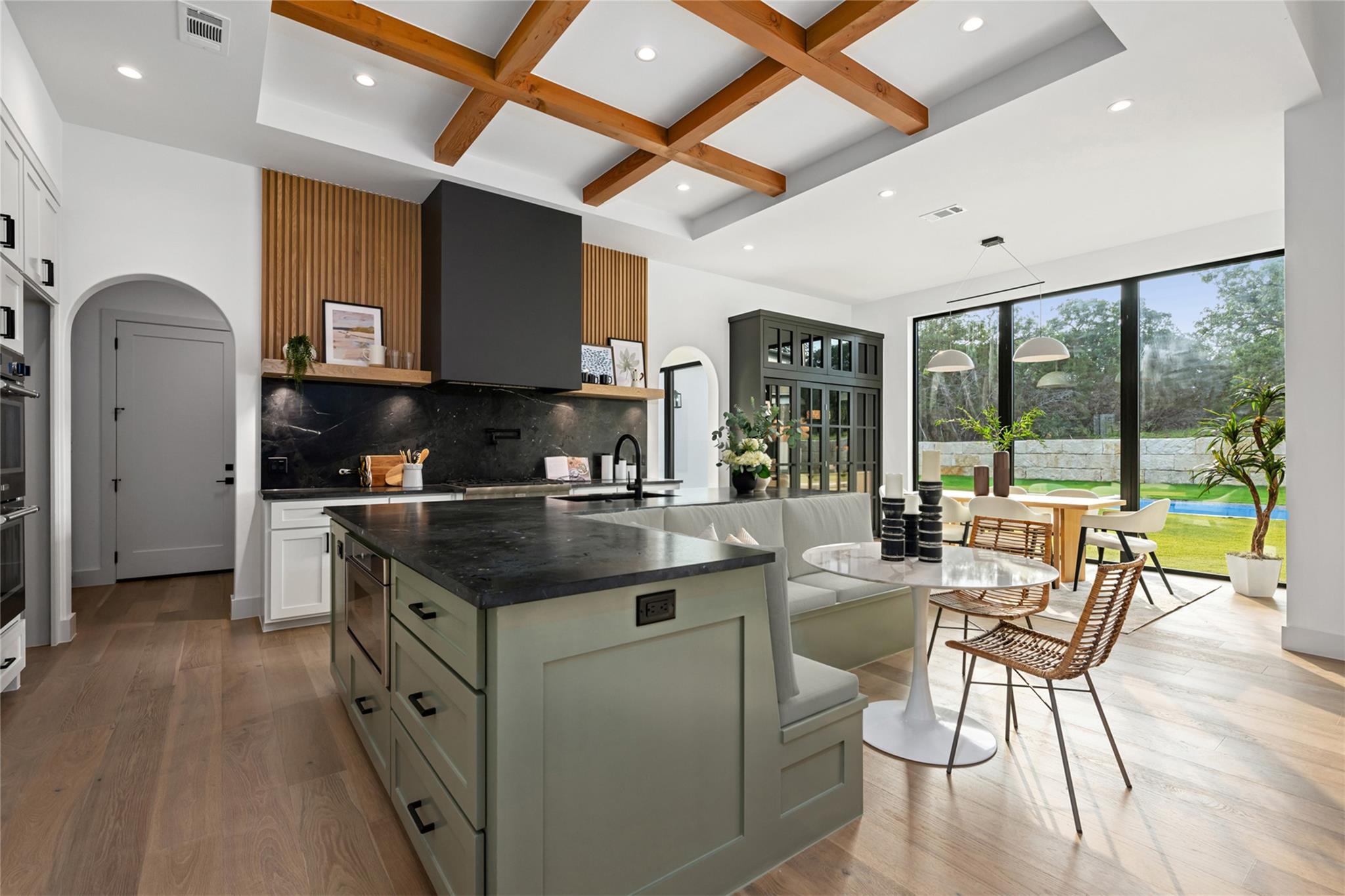 | Interior Features | Bookcases, Built-in Features, Ceiling Fan(s), Beamed Ceilings, Cathedral Ceiling(s), High Ceilings, Vaulted Ceiling(s), Chandelier, Quartz Counters, Stone Counters, Double Vanity, Electric Dryer Hookup, Eat-in Kitchen, Entrance Foyer, French Doors, High Speed Internet, In-Law Floorplan, Kitchen Island, Multiple Living Areas, Natural Woodwork, No Interior Steps, Open Floorplan, Pantry, Primary Bedroom on Main, Recessed Lighting, Smart Thermostat, Soaking Tub, Stackable W/D Connections, Two Primary Closets, Walk-In Closet(s), Washer Hookup, Wired for Data | |