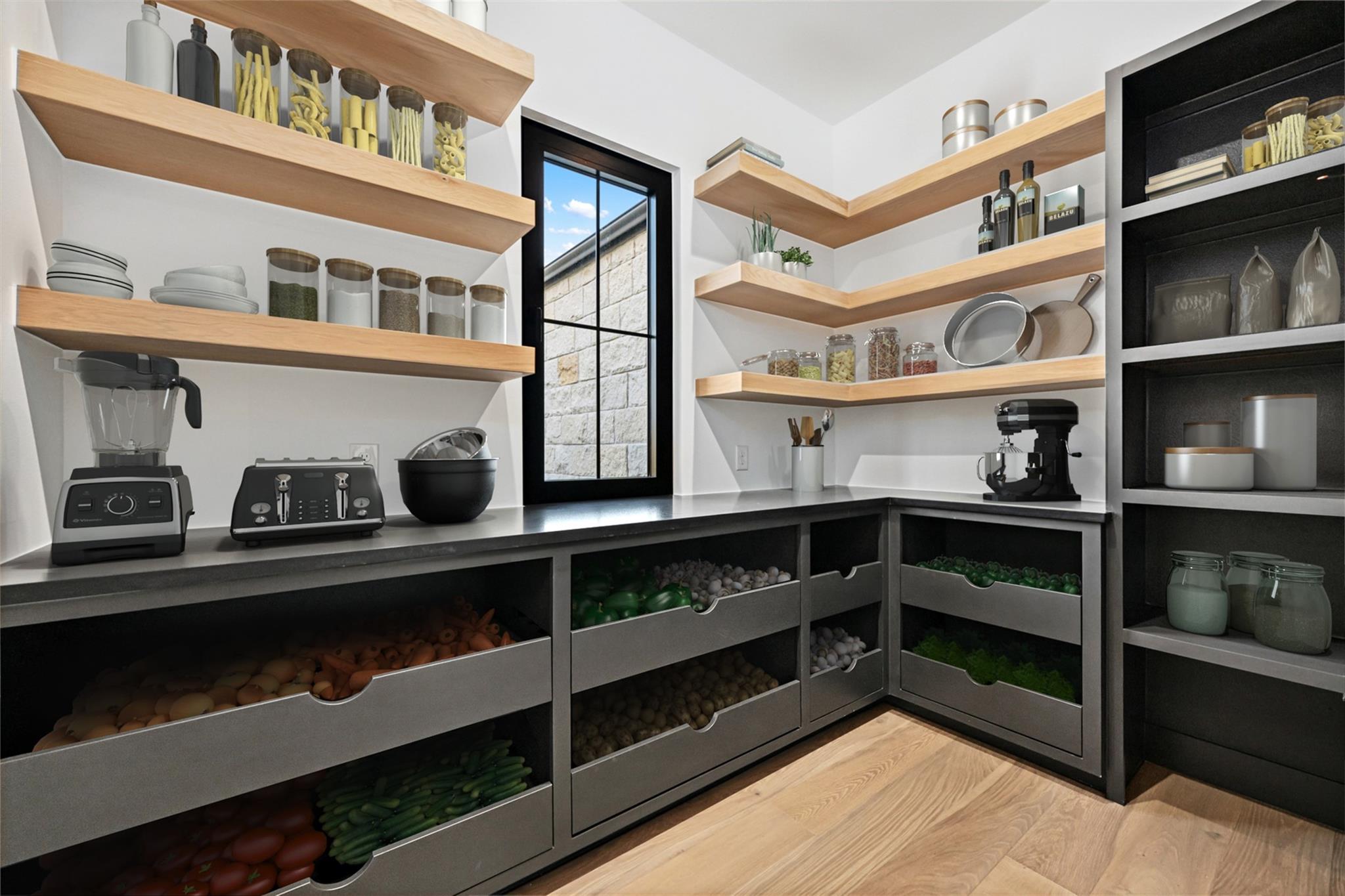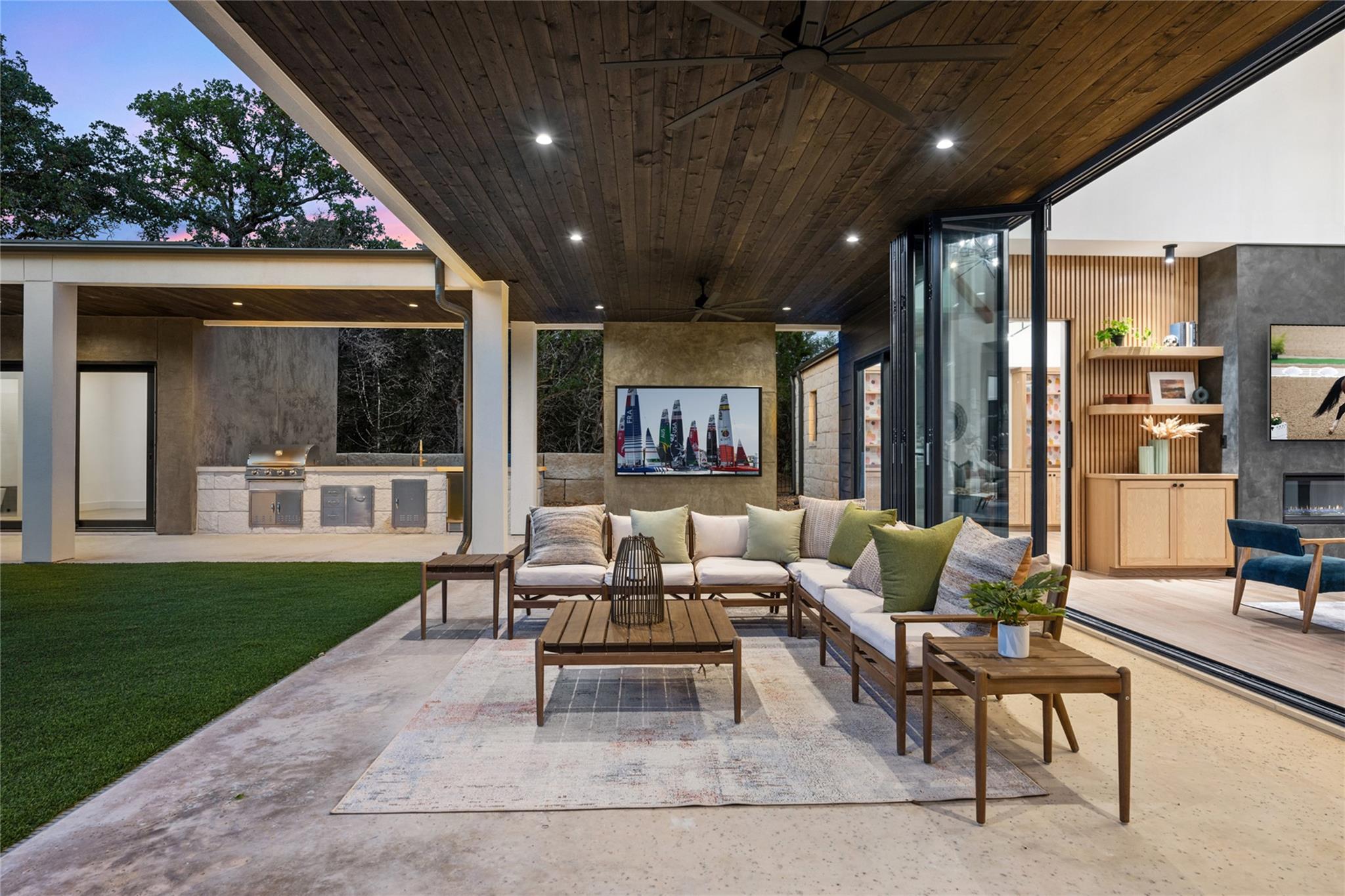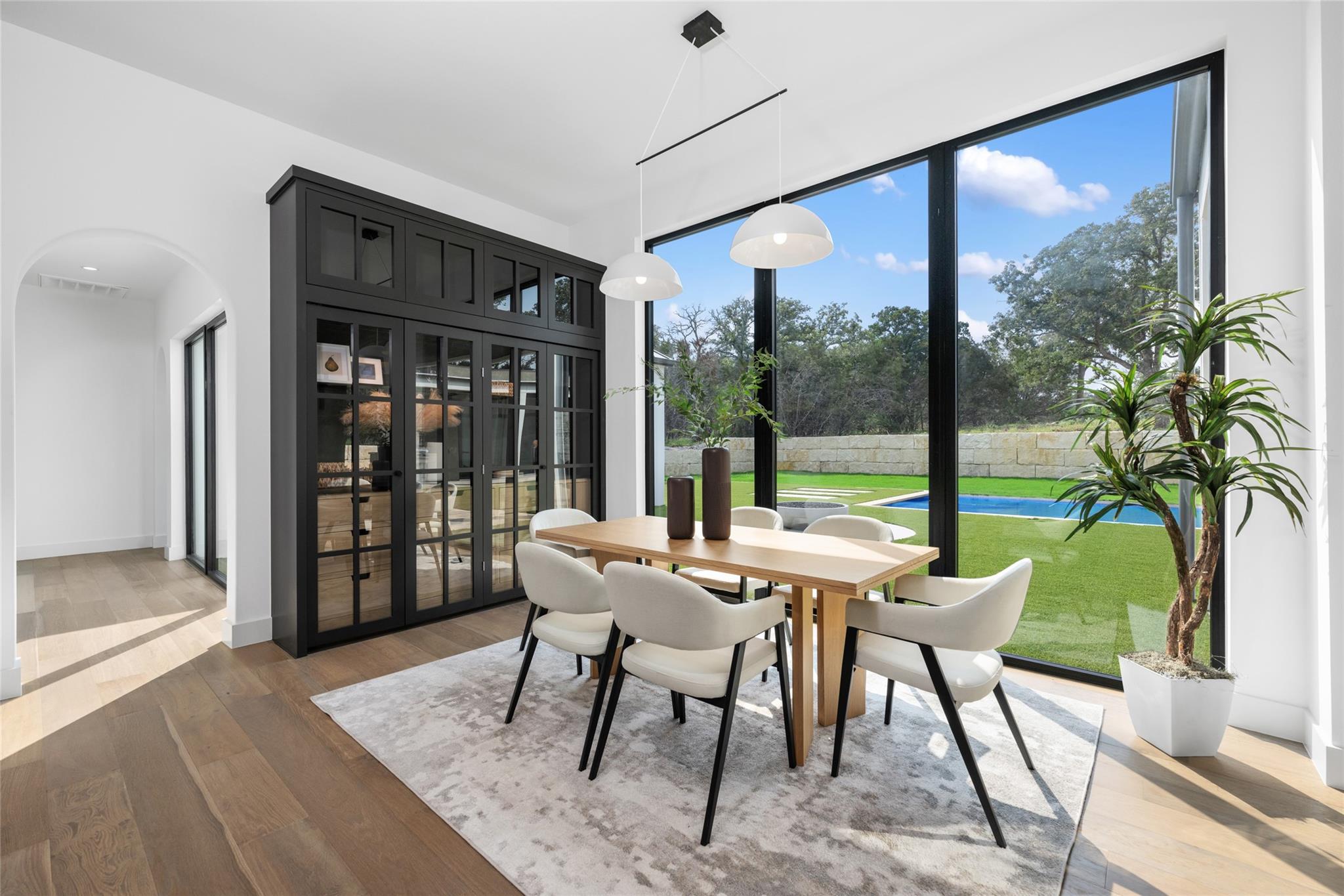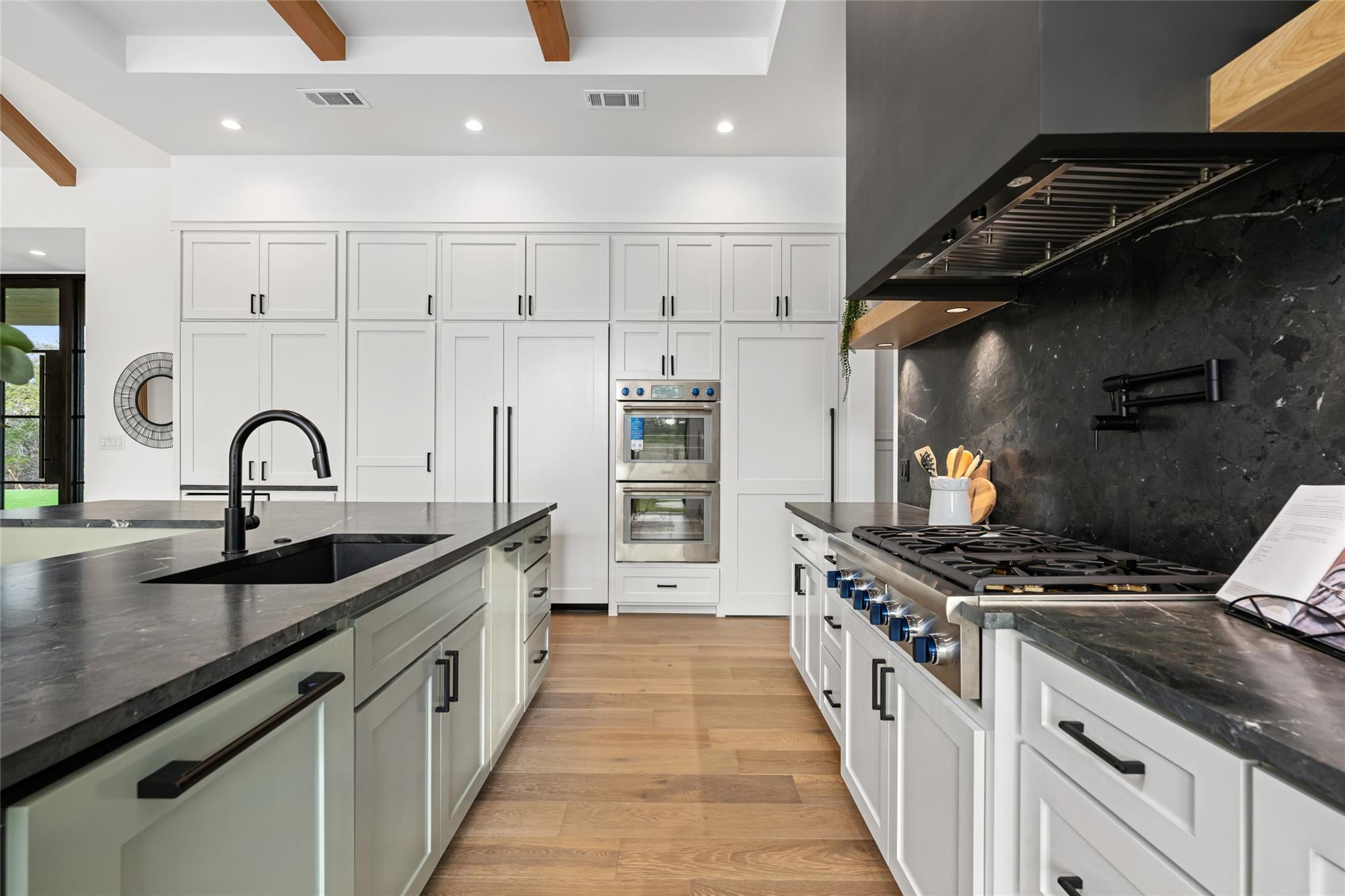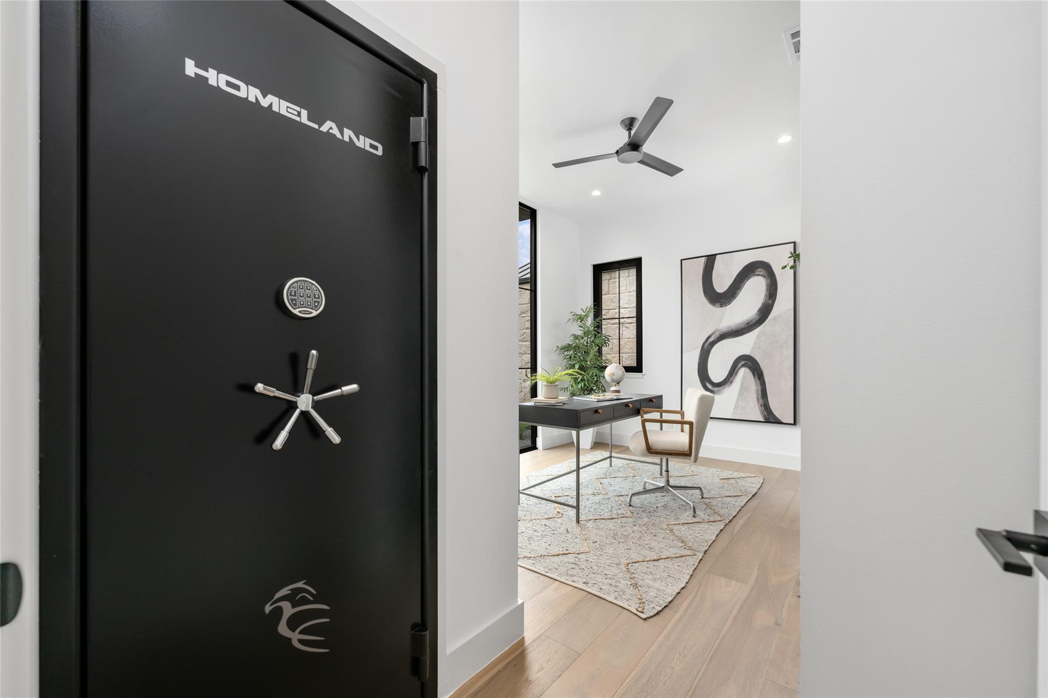 Experience the pinnacle of luxury living in this newly built, exquisite single-story residence nestled within the prestigious gated estate community of Paleface Ranch in Spicewood, Texas. Spanning an impressive 3,900 square feet on a sprawling five-acre lot, this architectural masterpiece designed by Kelley Design Group, built by Riverbend Homes, and perfected by Saltbox Studio offers an unparalleled blend of sophistication and tranquility. Inside, discover French white oak floors and cathedral ceilings that create a bright, expansive ambiance. The interior showcases exquisite taste, featuring a striking linear burner fireplace with a Venetian plaster set against an oak board and batten wall. The kitchen boasts leather-finish black quartzite atop shaker-style crafted cabinets and is equipped with high-end Thermador appliances, ensuring culinary excellence. The main house offers four generously sized bedrooms that offer serene views and are complemented by 4.5 luxurious bathrooms. The detached casita with a bedroom and full bathroom provides perfect guest accommodations. A vibrant private office with a walk-in safe off the main foyer offers the perfect workspace. A thoughtfully placed playroom off the great room caters to family needs, while a wall of collapsible glass doors in the great room opens to an outdoor living area, merging indoor elegance with outdoor relaxation. This area includes a pristine swimming pool and meticulously maintained artificial turf grounds, minimizing maintenance and water usage. Located in the Lake Travis School District and equipped with energy-efficient technologies like spray foam insulation, this property ensures comfort, efficiency, and educational excellence. Just moments from Lake Travis, it offers peace without sacrificing access to urban conveniences. This home is not just a residence—it’s a retreat designed for those who appreciate beauty, privacy, and a connection to nature.