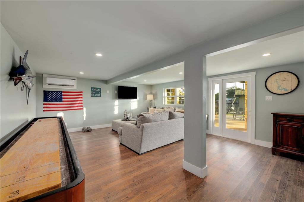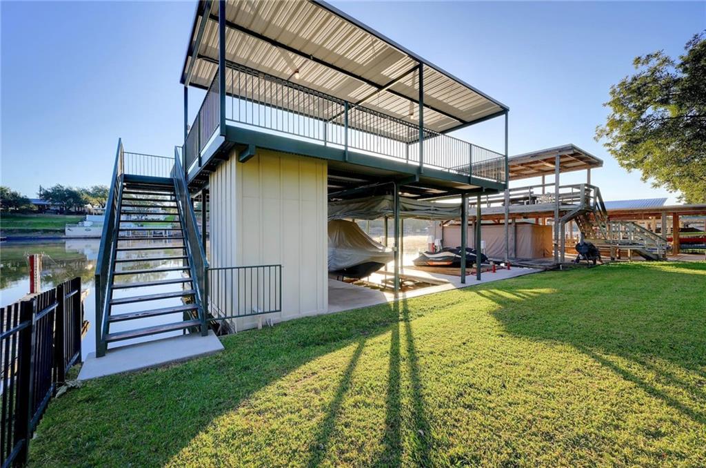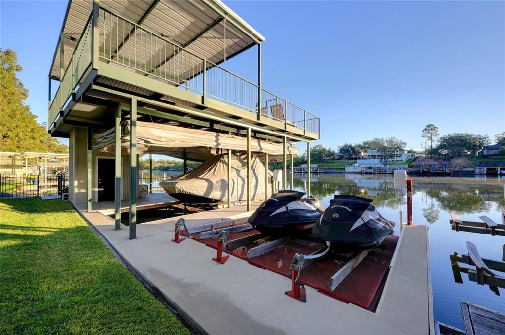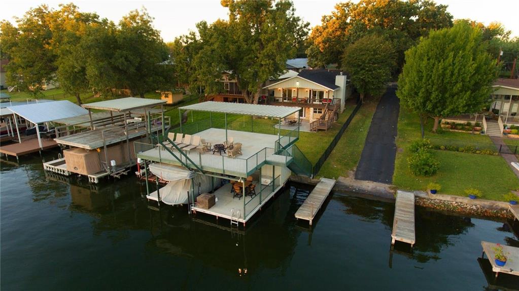 Beautifully renovated, from the ground up! 4 bedroom, 3 full baths plus downstairs flex room with half bath on prime Colorado River frontage on Lake LBJ! Gorgeous finishes selected here including a well-equipped, gourmet kitchen, wide open, with access to living and dining room for a cozy Lake House feel. Tongue and groove ceilings, wide-plank hardwood floors, and a luxurious appliance package add to the ambiance and create a inviting waterfront escape you will want to share with everyone! (and you will have the room to do so) Master bedroom has sliding glass door with big views of the lake and private, en-suite bathroom. 3 additional bedrooms, including a bunkroom with sleeping loft, share two full bathrooms all on the main level with minimal steps. Pllenty of room here for family and friends. The lower level is made up of a spacious basement, currently used as a secondary living room with half bath; a great place to relax, out of the sun, after a long day on the lake. Steel-constructed boat dock sized for most any boat plus a partially covered rooftop deck with rope swing for some extra fun in the sun! Deep waterfrontage on the Upper Colorado River provides the ideal spot to surf and board without all the traffic found closer to the bridge. This total package can be purchased fully furnished, with a few exclusions, for a very turn-key, move-in ready experience. This home has short-term rental potential for those looking for some cash flow at the lake. Great homes, that are ready to go, so that you don't have to lift a finger, on good water, are hard to come by. Here is your opportunity to start realizing your dreams at the lake. Come see what the HYPE is all about! This one is GOOD
