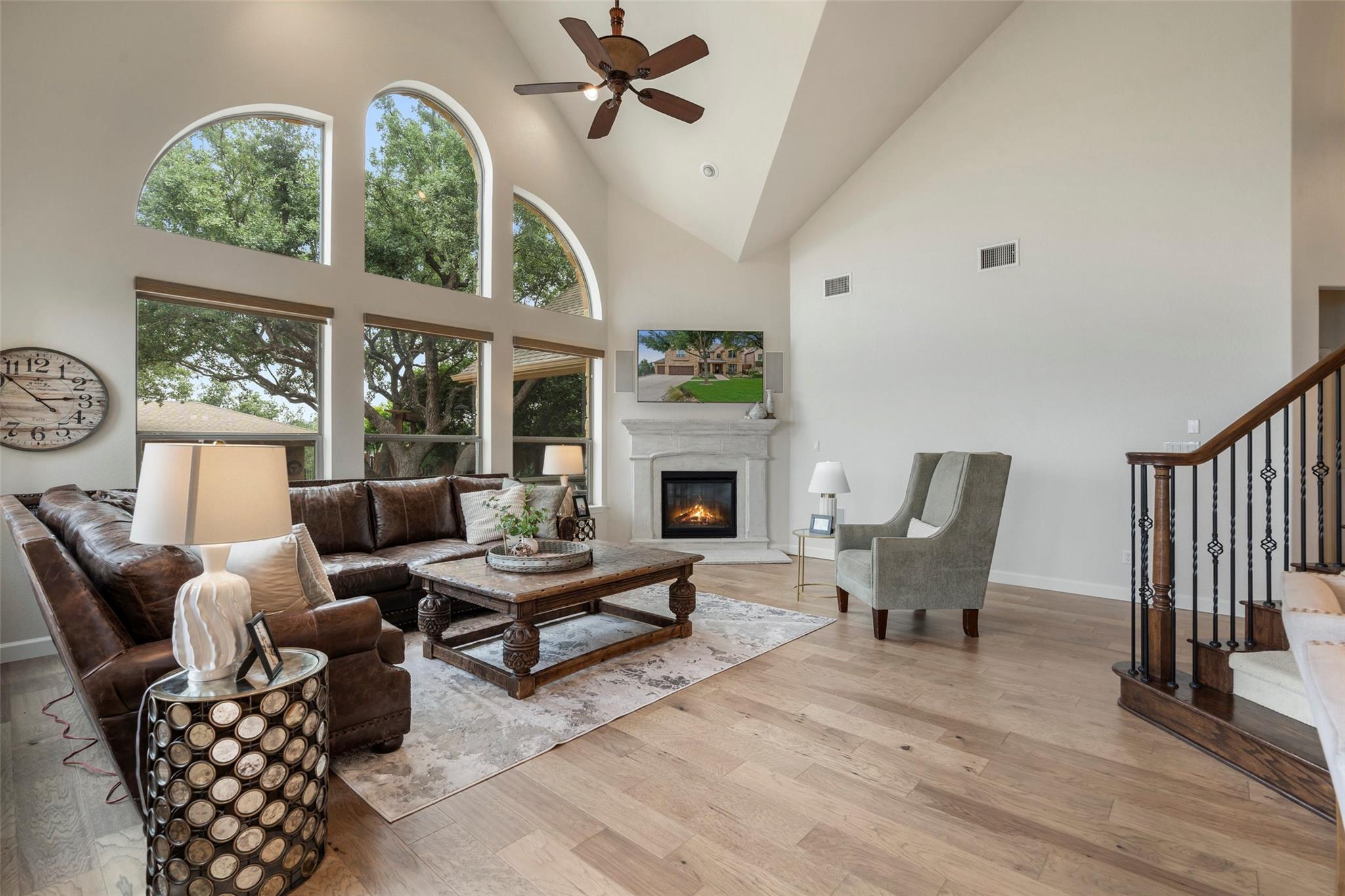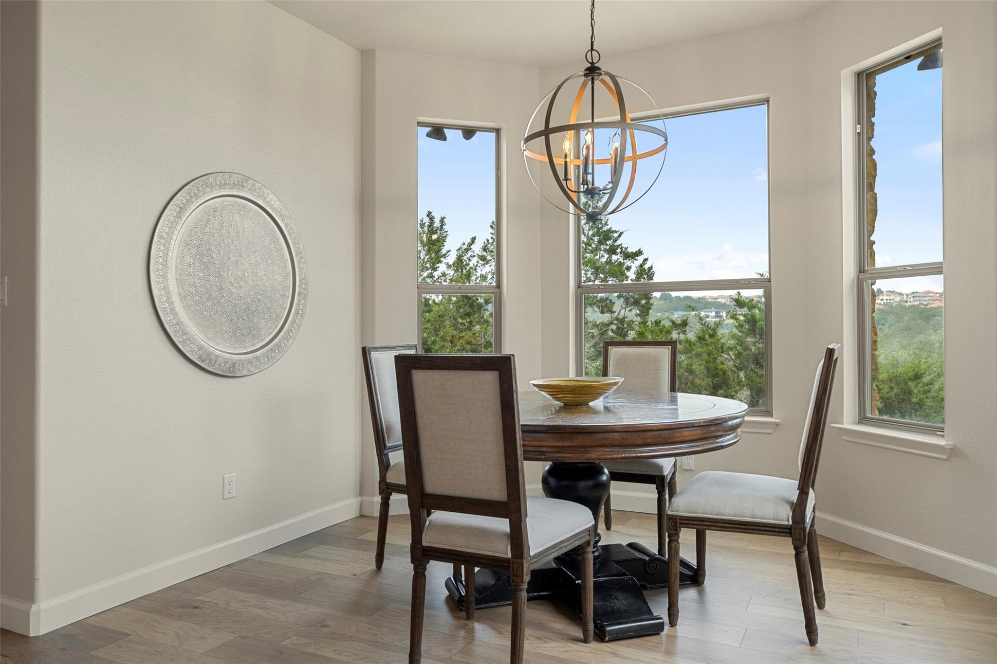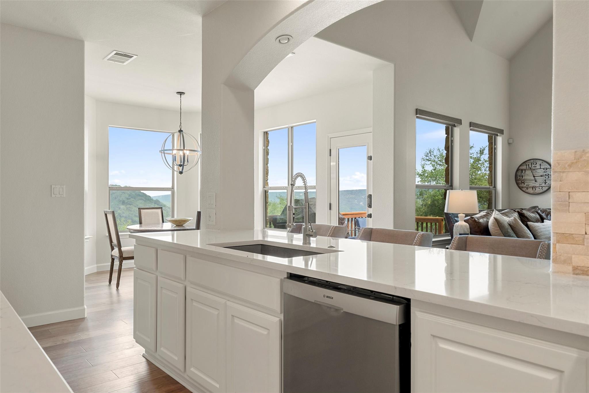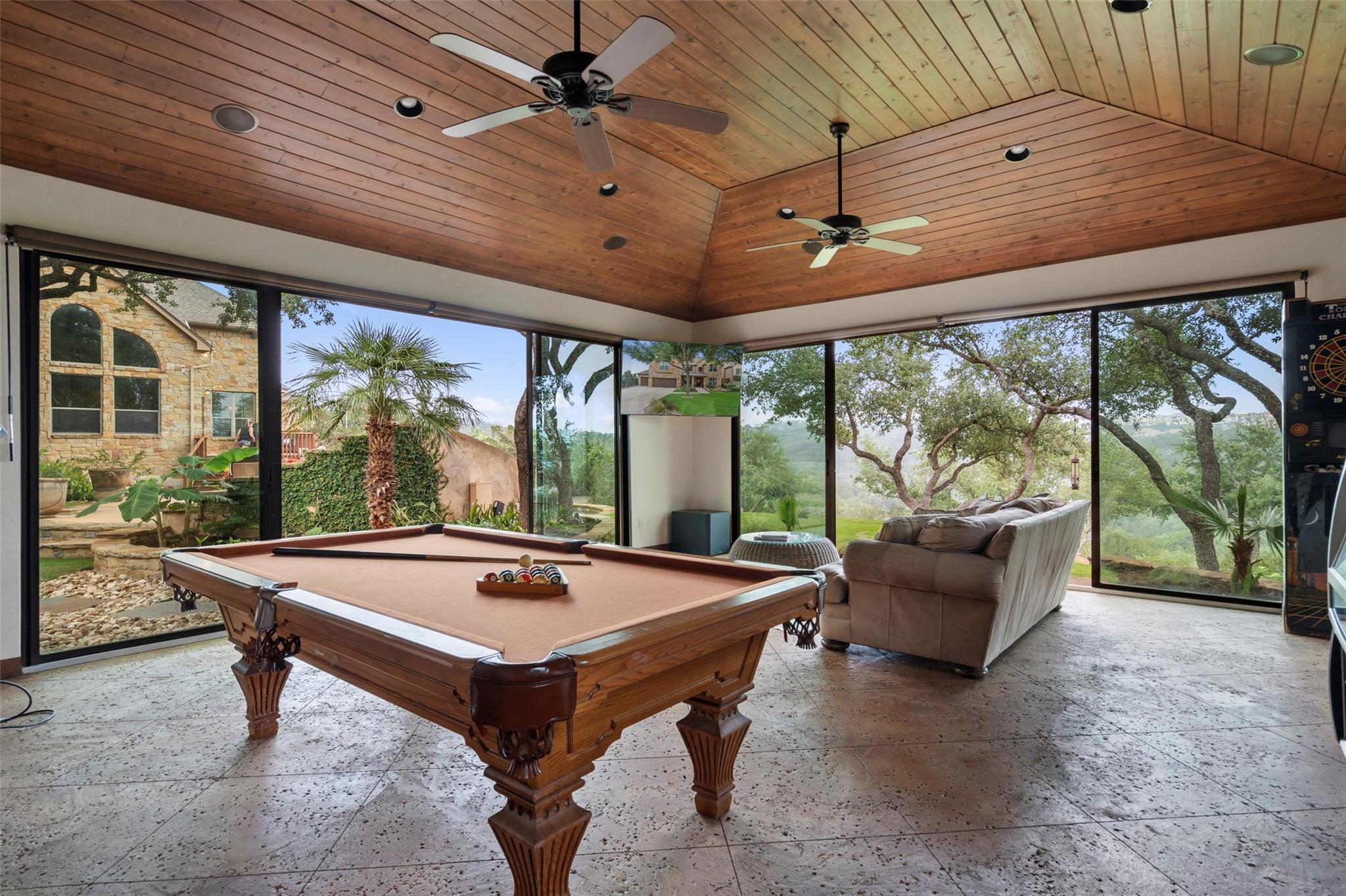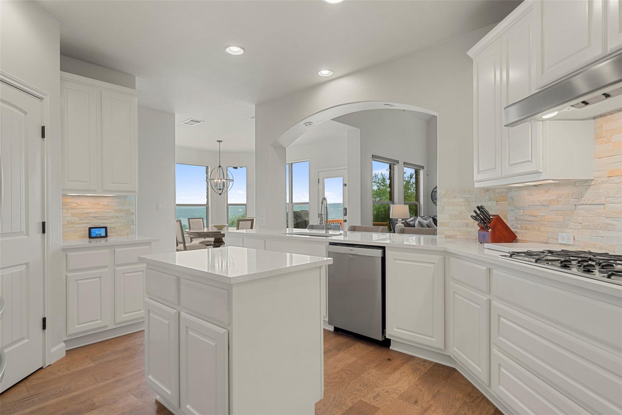 Don't miss this rare Steiner Ranch home with SPRAWLING Lake Austin and Hill Country Views.5 bedroom,3.5 bath plus office,media room,gaming room,AND detached approx 610 sq. ft. casita (walls of windows, kitchenette,full bath and closet)is one-of-a-kind and a rare market opportunity!This picturesque property sits on .36 acres at the bottom of a Bella Mar private drive,but also boasts an additional .42 acre greenbelt easement, exclusive to owners, for a total of .78 acres of space.Open floor plan with freshly painted white walls,spacious island kitchen,light and bright cabinets,quartz counters,stainless appliances,and is open to living area,which is surrounded by walls of windows capturing lake views!Downstairs primary bedroom with wood flooring and custom barn door into primary bath has dual vanities,jetted tub,separate shower,& french doors open to outdoor patio and pool/spa to enjoy those sunsets in the evenings.Upstairs media room with pocket doors,& 4 bedrooms split on either side,each with a shared bath.Secret flex space off hallway.One upstairs bedroom is oversized over garage for multiple children or multi-generational living as an additional primary bedroom.As you enter the backyard off the recent decking,your breath is taken away by the incredible Lake Austin views!This southeast facing backyard boasts beautiful sunrises,and is shaded by early afternoon.In addition,adjacent .42 acre exclusive easement surrounded by bird preserve provides plenty of space around you for extra privacy!Beautiful pool/spa with waterfalls & tile slide leaves room for hours of enjoyment in these hot Texas summers!Approx. 616 sq. ft detached pool house with full bath and kitchenette surrounded by sliding doors that open,is a space that offers endless possibilities!Epoxied floor 3 car garage off oversized driveway.Four attic spaces,hot water circulating pumps for instant hot water throughout,integrated home automation,6 camera security system,zwave locks,and so much more.