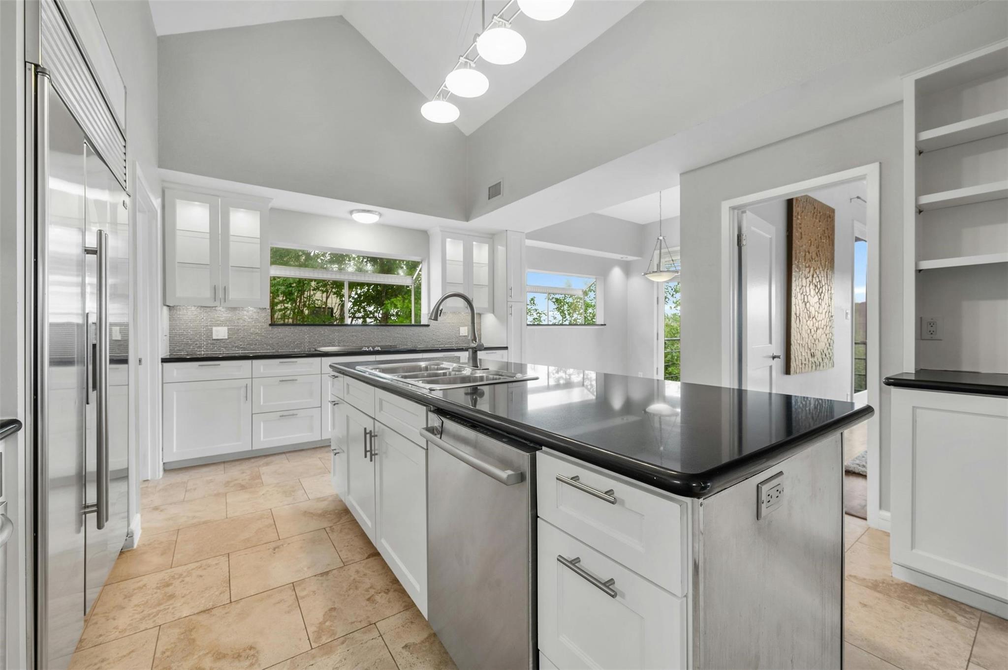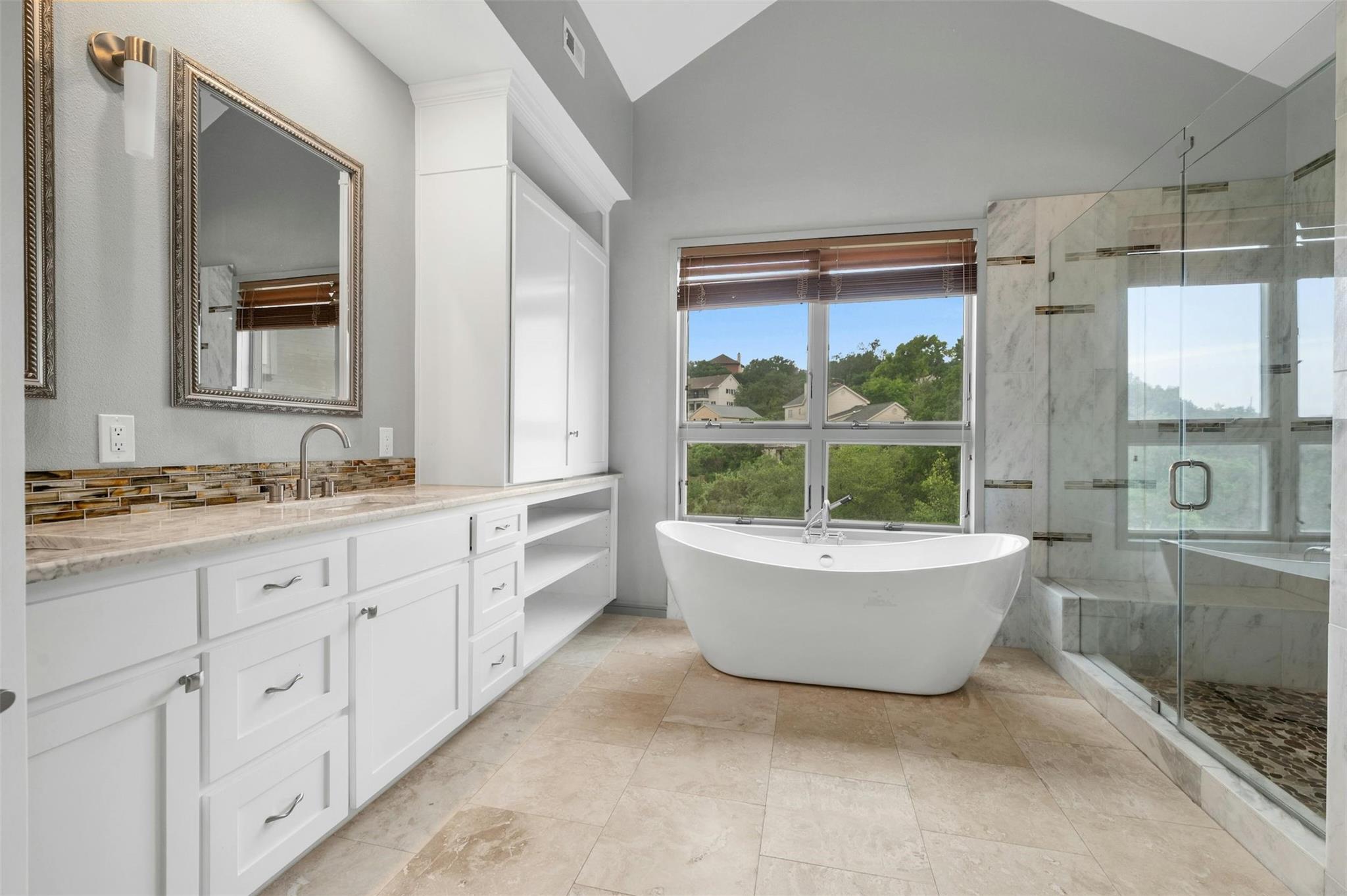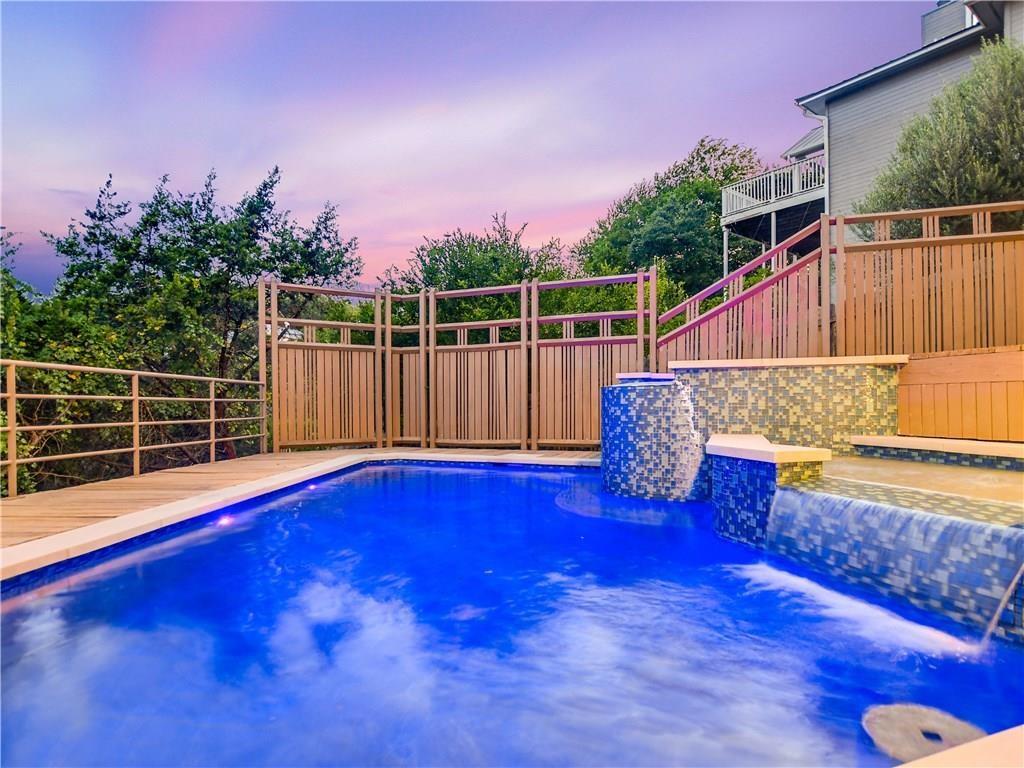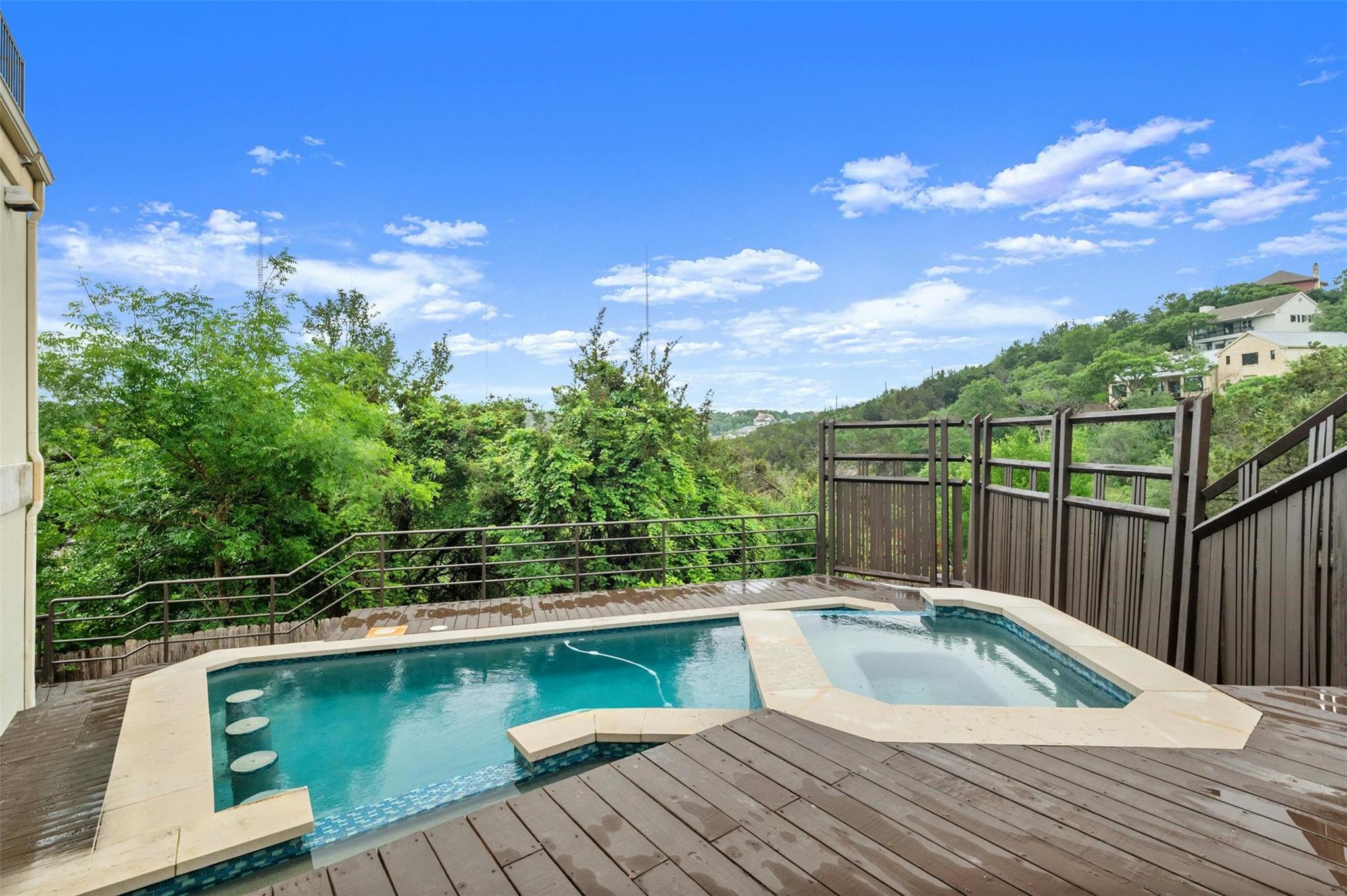 Step into the embrace of refined living within the esteemed Davenport Ranch community, where tranquility meets sophistication in the heart of Westlake. Nestled on a secluded cul-de-sac, this residence offers sweeping panoramic views. Spanning a generous 4,702 square feet, this home embodies a harmonious fusion of grace and comfort. Featuring 4 bedrooms and 3 full baths alongside 2 half baths, it provides an abundance of space for both relaxation and entertainment. Upon entry, you are greeted by canyon views, complemented by a chef-inspired kitchen adorned with modern cabinetry, granite countertops, and Bosch appliances. Adjacent, a quaint breakfast nook and an elegant dining room set the stage for intimate gatherings. The primary suite, also on this level, boasts a fireplace, a sprawling terrace, dual closets, and an opulent ensuite bathroom with a deep soaking tub and a seamless walk-in shower. Descend to the middle level, where a cozy family room awaits, complete with a fireplace and a kitchenette with built-ins, ideal for hosting. Through French doors lies an outdoor haven, featuring a sparkling pool and spa with glass tile and quartz finishes, surrounded by new decking. Fully automated with iAqualink technology. Venture to the lower level, where additional living space unfolds, presenting three secondary bedrooms and two full baths, offering privacy and comfort for family and guests alike. The mechanicals were upgraded in 2021, including the AC unit, sewage pump, and water heater. With its proximity to top-rated Eanes ISD schools, Davenport Village, Austin Country Club, St. Stephens School, and the Lake Austin boat ramp, this home epitomizes convenience and refined living.