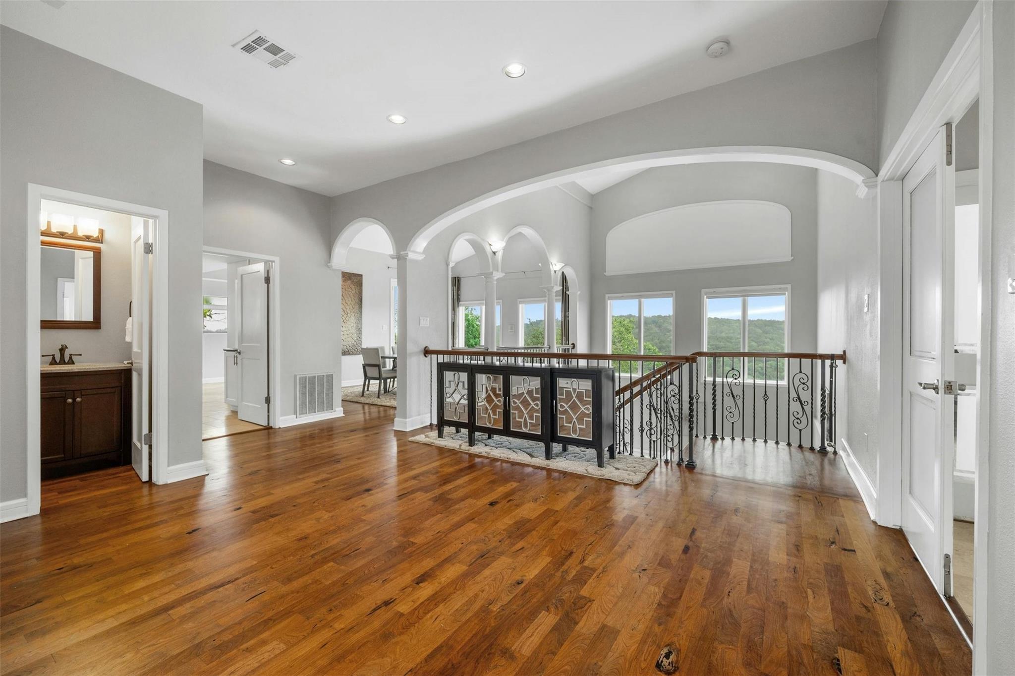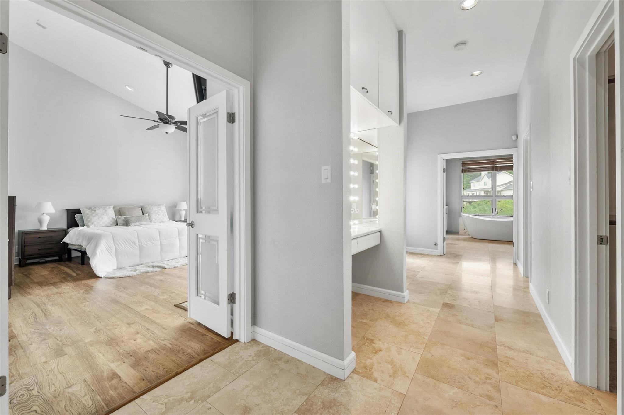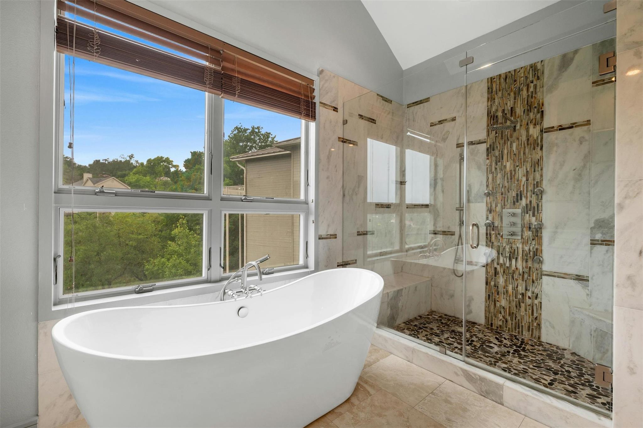 Step into the embrace of refined living within the esteemed Davenport Ranch community, where tranquility meets sophistication in the heart of Westlake. Nestled on a secluded cul-de-sac, this residence offers sweeping panoramic views. Spanning a generous 4,702 square feet, this home embodies a harmonious fusion of grace and comfort. Featuring 4 bedrooms and 3 full baths alongside 2 half baths, it provides an abundance of space for both relaxation and entertainment. Upon entry, you are greeted by canyon views, complemented by a chef-inspired kitchen adorned with modern cabinetry, granite countertops, and Bosch appliances. Adjacent, a quaint breakfast nook and an elegant dining room set the stage for intimate gatherings. The primary suite, also on this level, boasts a fireplace, a sprawling terrace, dual closets, and an opulent ensuite bathroom with a deep soaking tub and a seamless walk-in shower. Descend to the middle level, where a cozy family room awaits, complete with a fireplace and a kitchenette with built-ins, ideal for hosting. Through French doors lies an outdoor haven, featuring a sparkling pool and spa with glass tile and quartz finishes, surrounded by new decking. Fully automated with iAqualink technology. Venture to the lower level, where additional living space unfolds, presenting three secondary bedrooms and two full baths, offering privacy and comfort for family and guests alike. The mechanicals were upgraded in 2021, including the AC unit, sewage pump, and water heater. With its proximity to top-rated Eanes ISD schools, Davenport Village, Austin Country Club, St. Stephens School, and the Lake Austin boat ramp, this home epitomizes convenience and refined living.