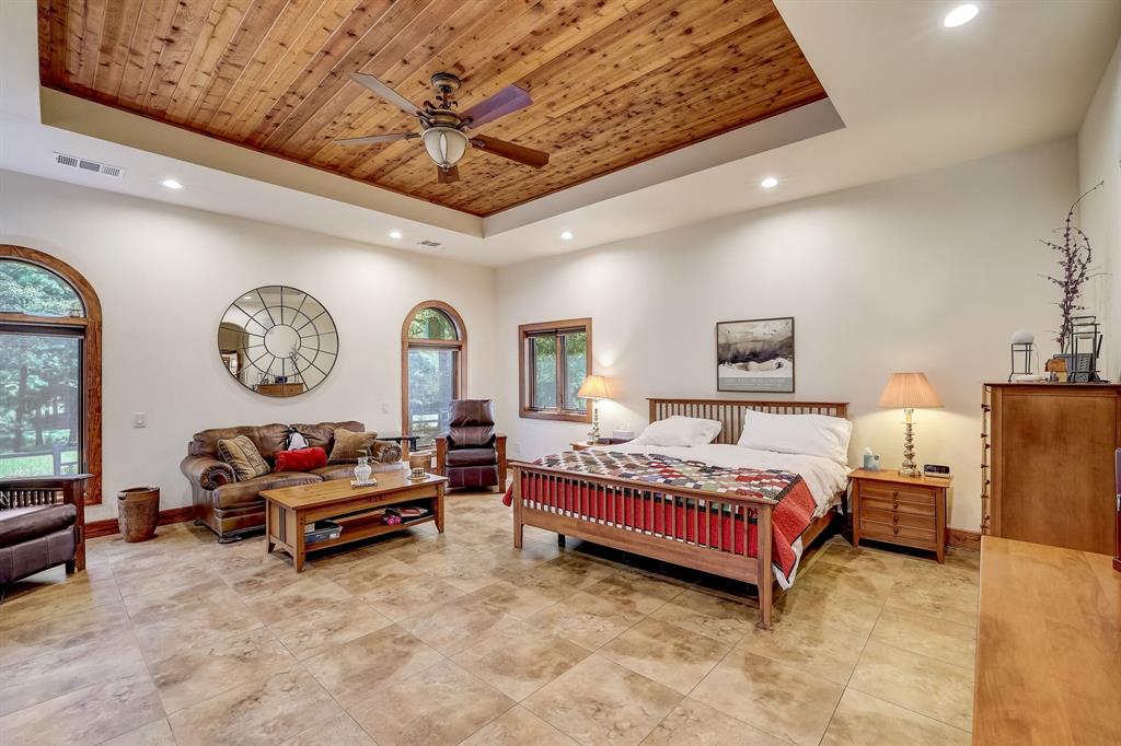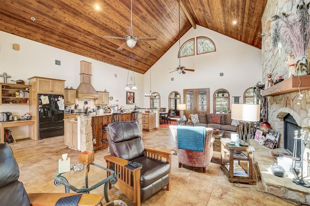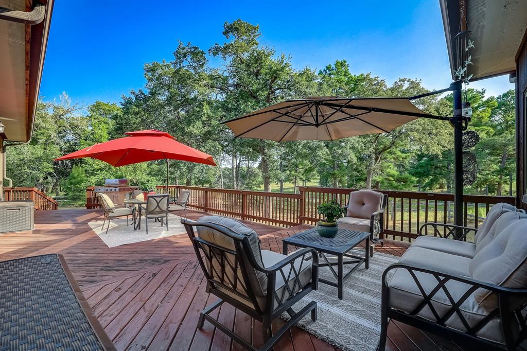 Welcome to your dream home! This stunning property boasts a plethora of modern amenities and stylish upgrades. Enjoy the convenience of a tankless water heater, smart switches that control lighting, thermostat, and fans, ensuring comfort at your fingertips. This custom built house is filled with top-notch features, including Marvin windows, Delongie range in the kitchen, and an NXR on the porch, making everyday living a breeze. You'll love the spacious dual kitchen sinks, granite countertops throughout, and custom cabinets that elevate the elegance of the space. This is a kitchen ready to romance anyone who loves to cook and entertain! Step onto the beautifully tiled floors and gaze up at the soaring stained wood tray ceilings, adding warmth and character to each room. The master suite beckons with its indulgent soaking tub, offering the perfect oasis for relaxation. Rest assured, this home is built to last with its 50-year roof and comes with the bonus of an Ag exemption. The outdoor delights include a picturesque 2-acre pond stocked with bass, perfect for fishing enthusiasts. The irrigation system ensures the lush landscape is well-maintained with ease. Lastly, don't miss the guest quarters and shop, providing versatile spaces for guests or hobbies. Don't let this gem slip away - schedule a viewing today and make this extraordinary property yours!