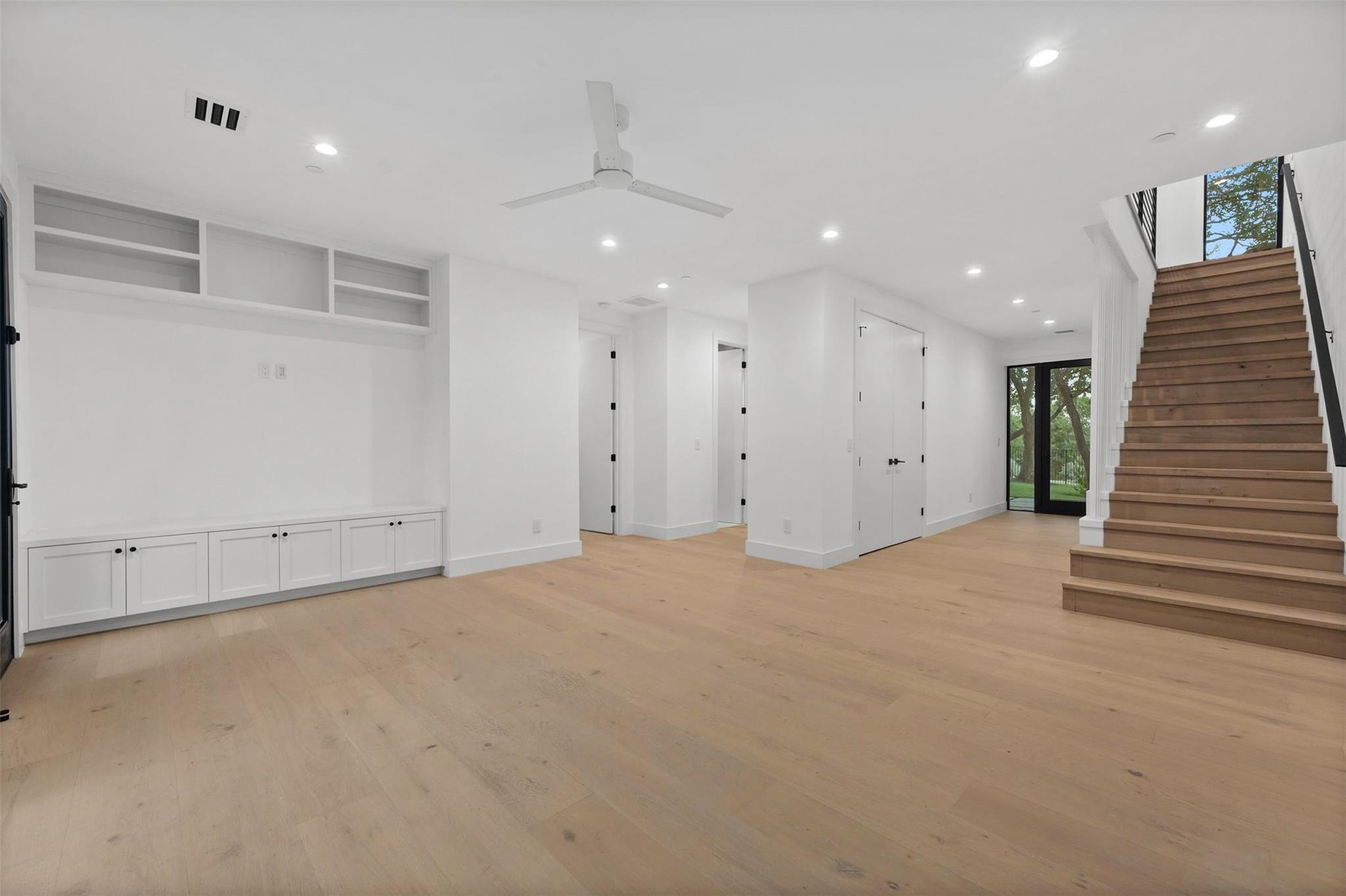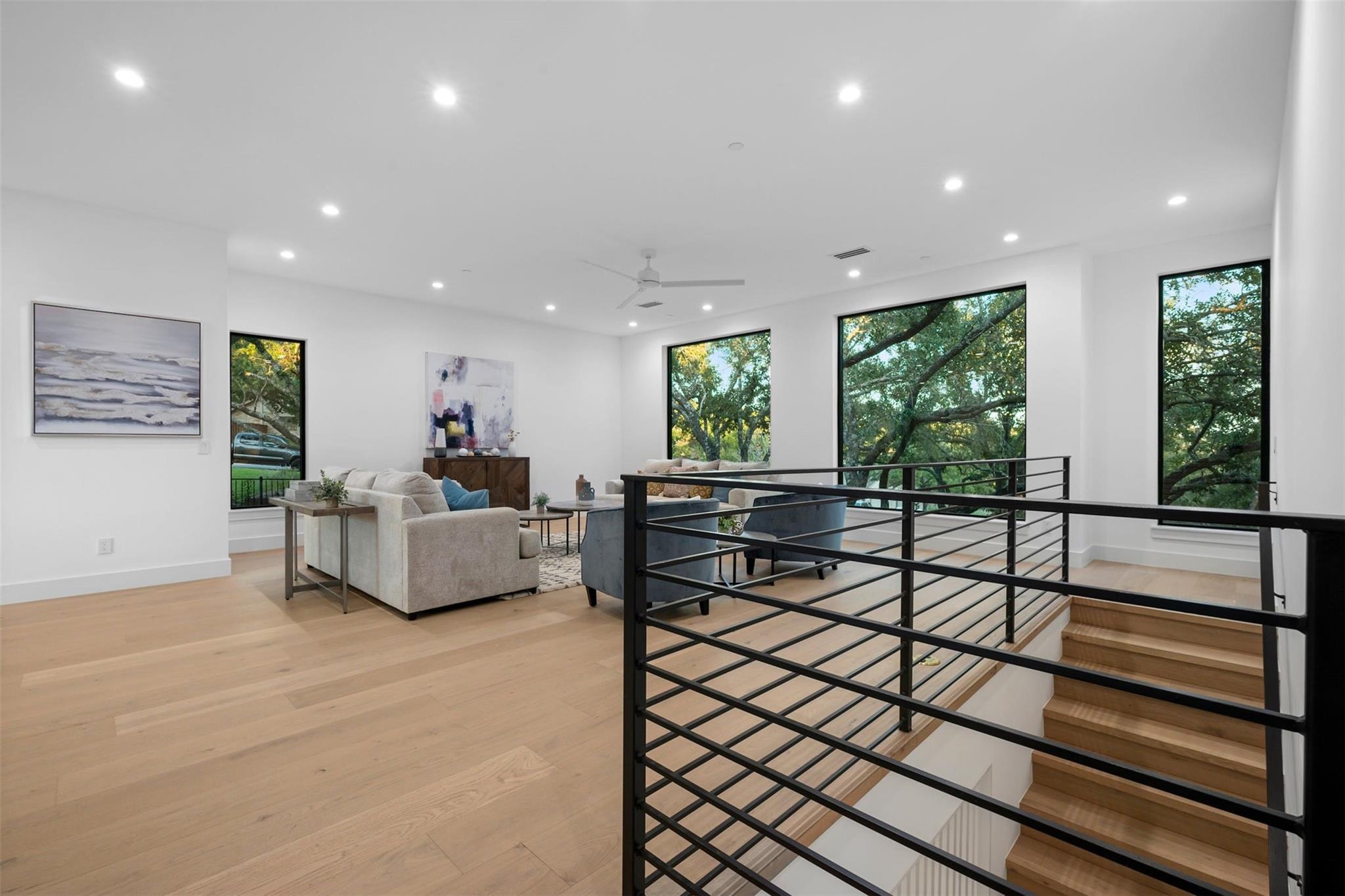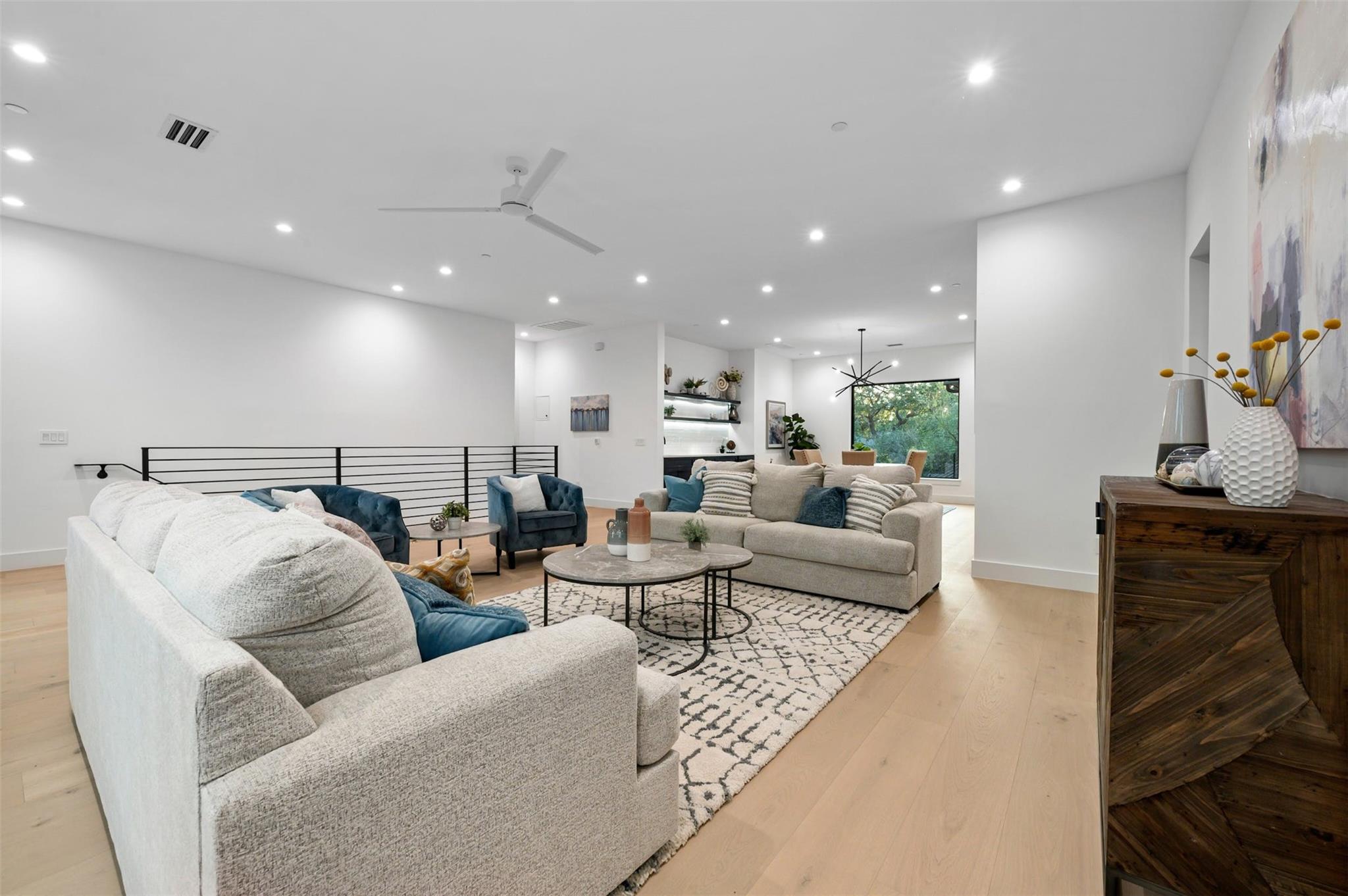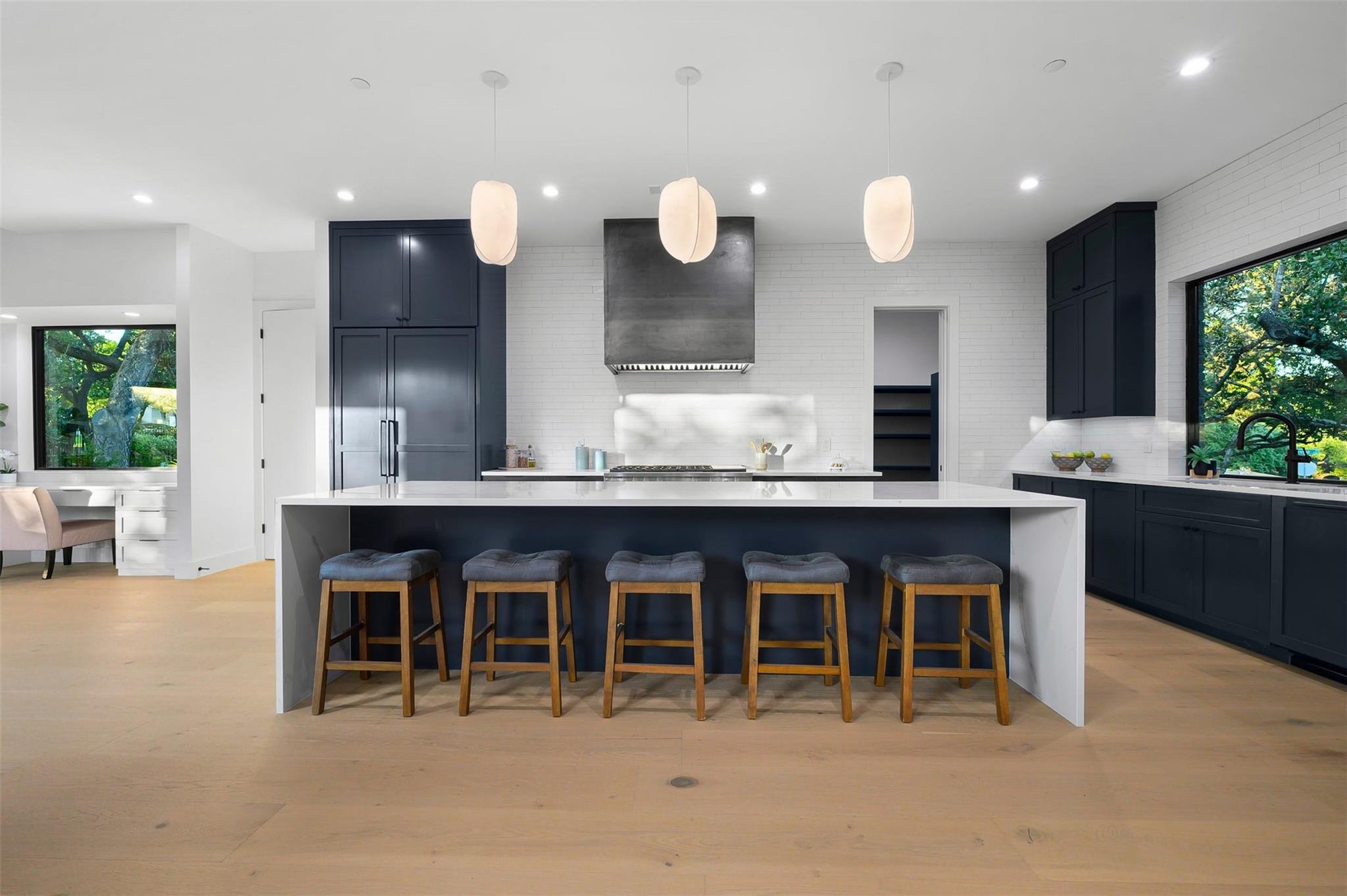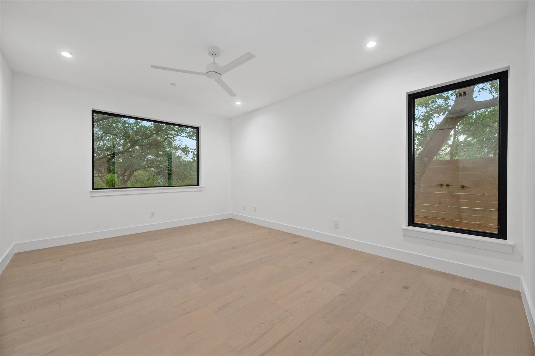 *This home is completely new construction other than garage slab and pool structure, although pool was remodeled by Liquid Assets during construction.* On a sprawling tree-lined lot in iconic Lost Creek this 4,490 SF NEW home designed by Erin Kant of ESK Studio and Parkside Homes is ready for occupancy. Whether it’s the flood of natural light from the expansive Pella windows or the casual luxury of the 9” European white oak floors that run throughout, this property perfectly blends upscale fixtures and finishes with functional family living in Eanes ISD. As you approach this stacked limestone house, a welcoming circular drive provides ample parking for family and guests while a plush, fenced-in zoysia lawn adorned with professionally landscaped steel beds makes for gorgeous views from both the home’s exterior and interior. The home’s main floor boasts a gorgeous entryway that could be utilized in a variety of ways: a cozy sitting area, a library nook, or overflow space for entertaining. The gorgeous kitchen features high-end GE Luxury Monogram appliances including a cabinet-front refrigerator and dishwasher, 8-burner gas range with double oven, dual cabinet-front trash bins, and even a work pantry that houses the microwave, a built-in coffee maker, and plenty of storage tucked away out of sight, keeping the waterfall quartz counters and shaker style cabinets sleek and clean. The dining room and additional living/family room flank the kitchen, supplying even more light and bright space for a family to gather and special occasions. Also on the main floor, the home’s spacious primary bedroom provides a perfectly peaceful retreat, and the spa-like primary bathroom is the ideal addition to this space. Moving downstairs, a game room with an entire wall of sliding glass doors adjoins four additional bedrooms, two ensuite and two that share a Jack-and-Jill bathroom. Around the corner, a cozy office with built-ins will be the favorite place for everyone in the house to work.